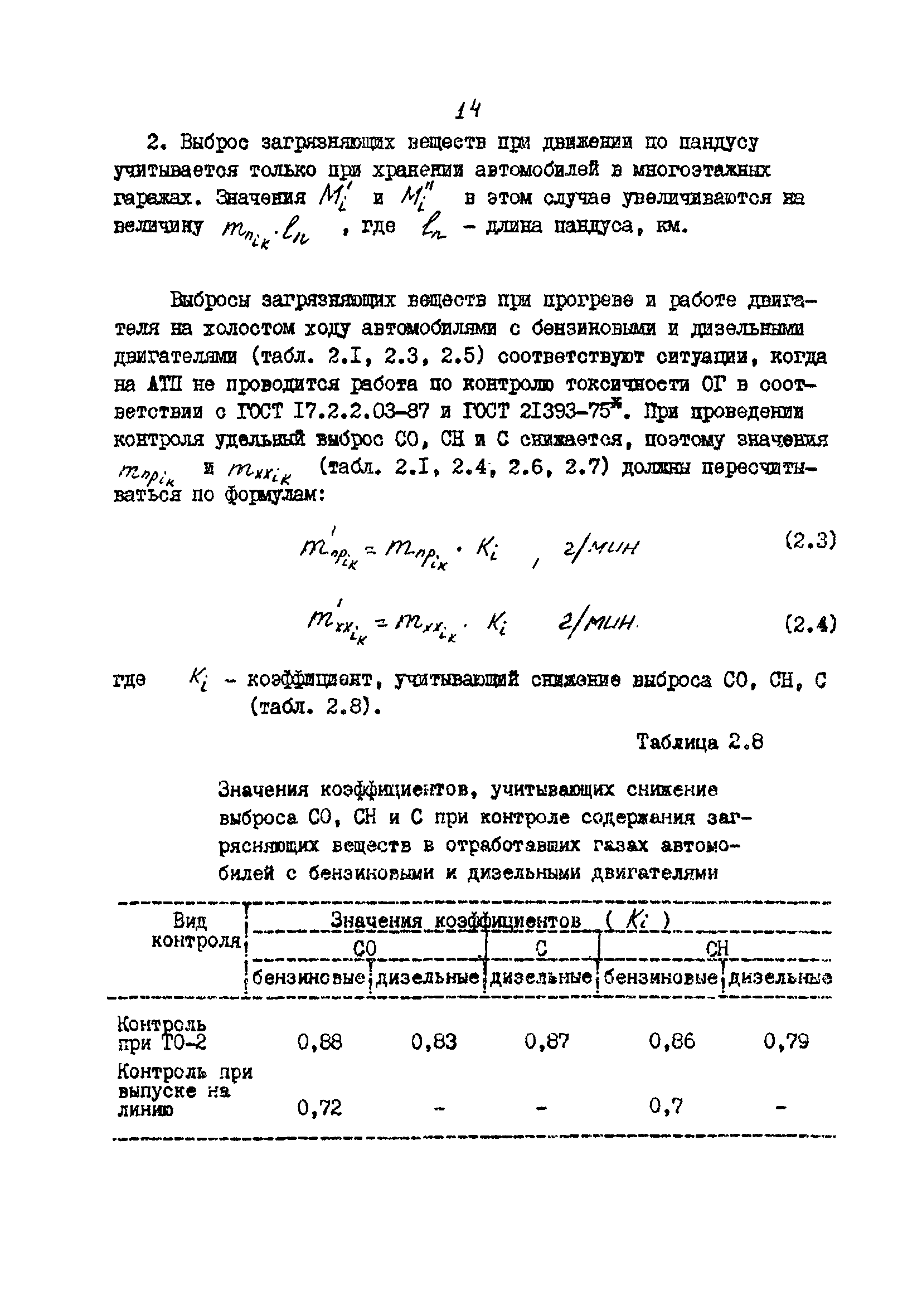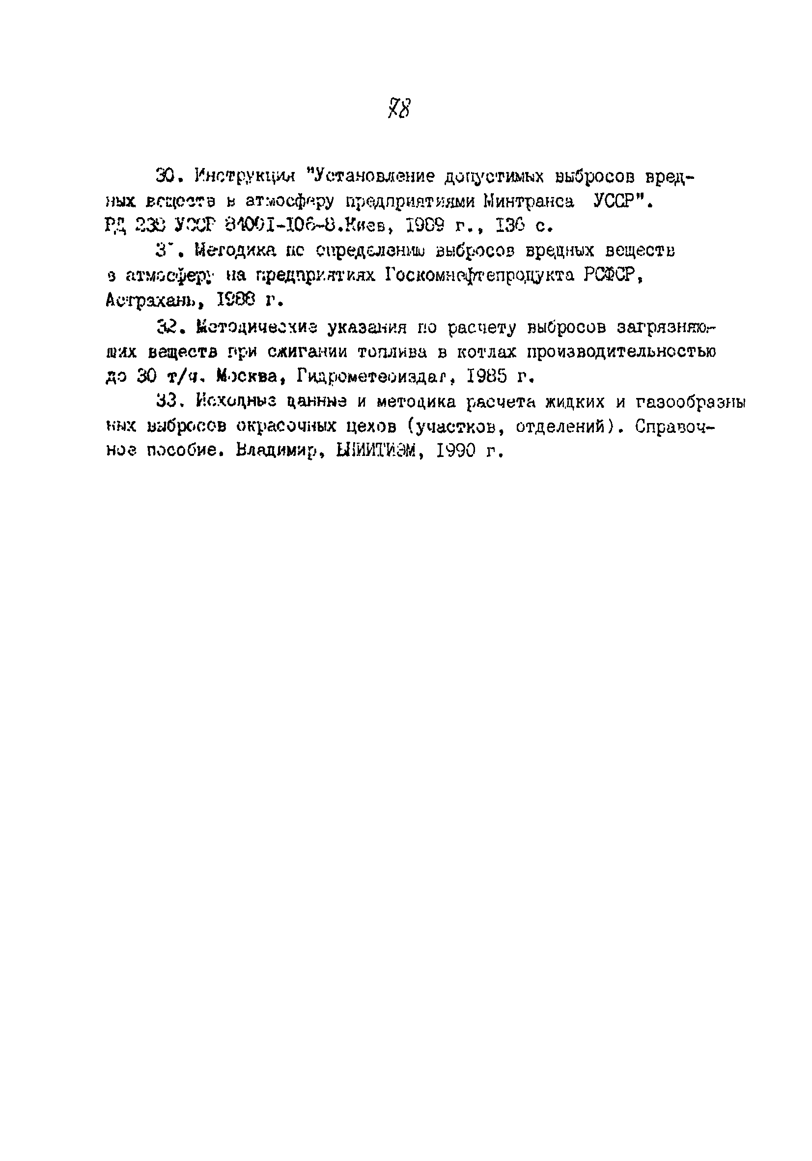 | Название рус.: | Методика проведения инвентаризации выбросов загрязняющих веществ в атмосферу для автотранспортных предприятий (расчетным методом) |