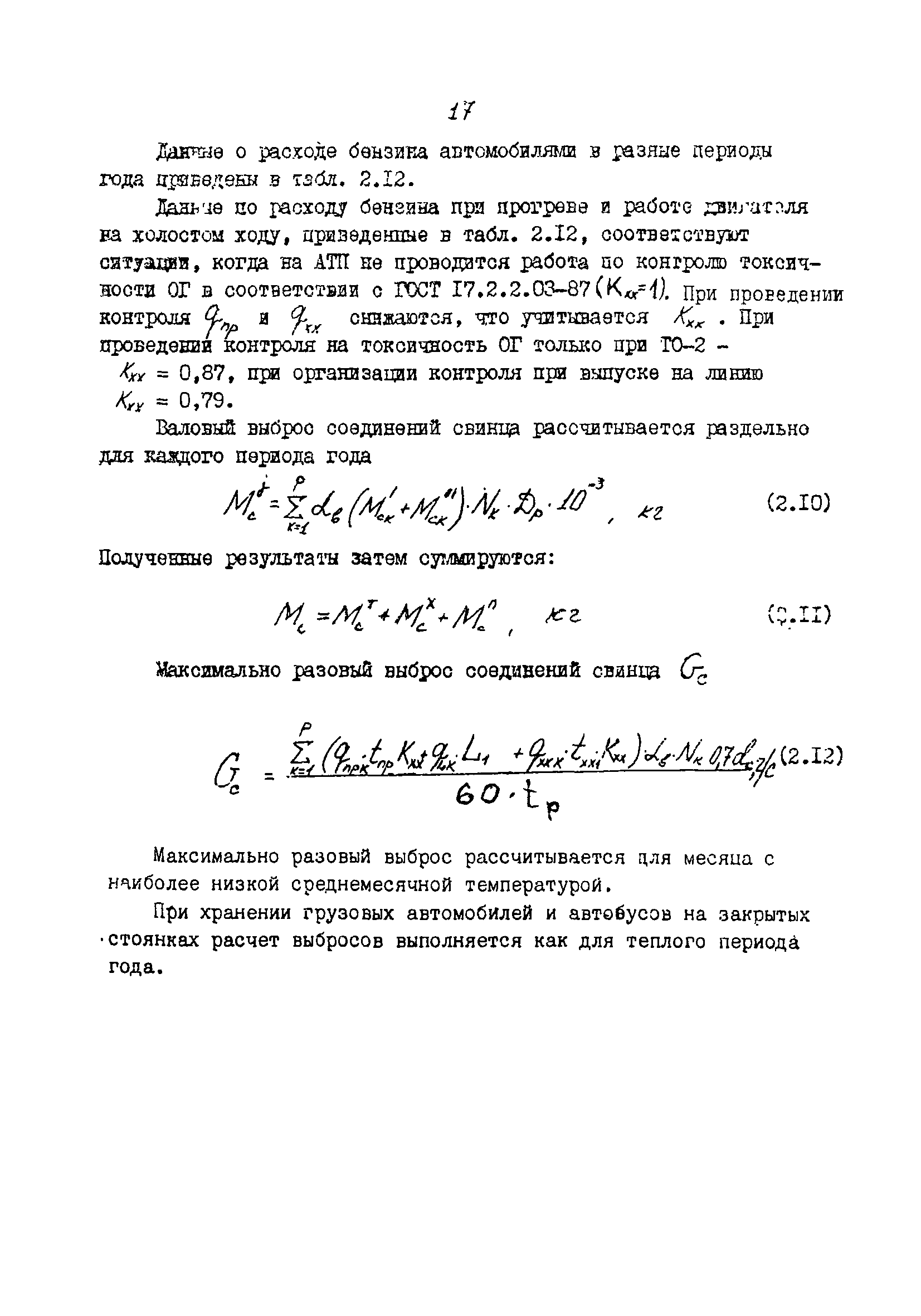 | Область применения: | Методика устанавливает порядок расчета выделений и выбросов загрязняющих веществ от передвижных и стационарных источников действующих автотранспортных предприятий |