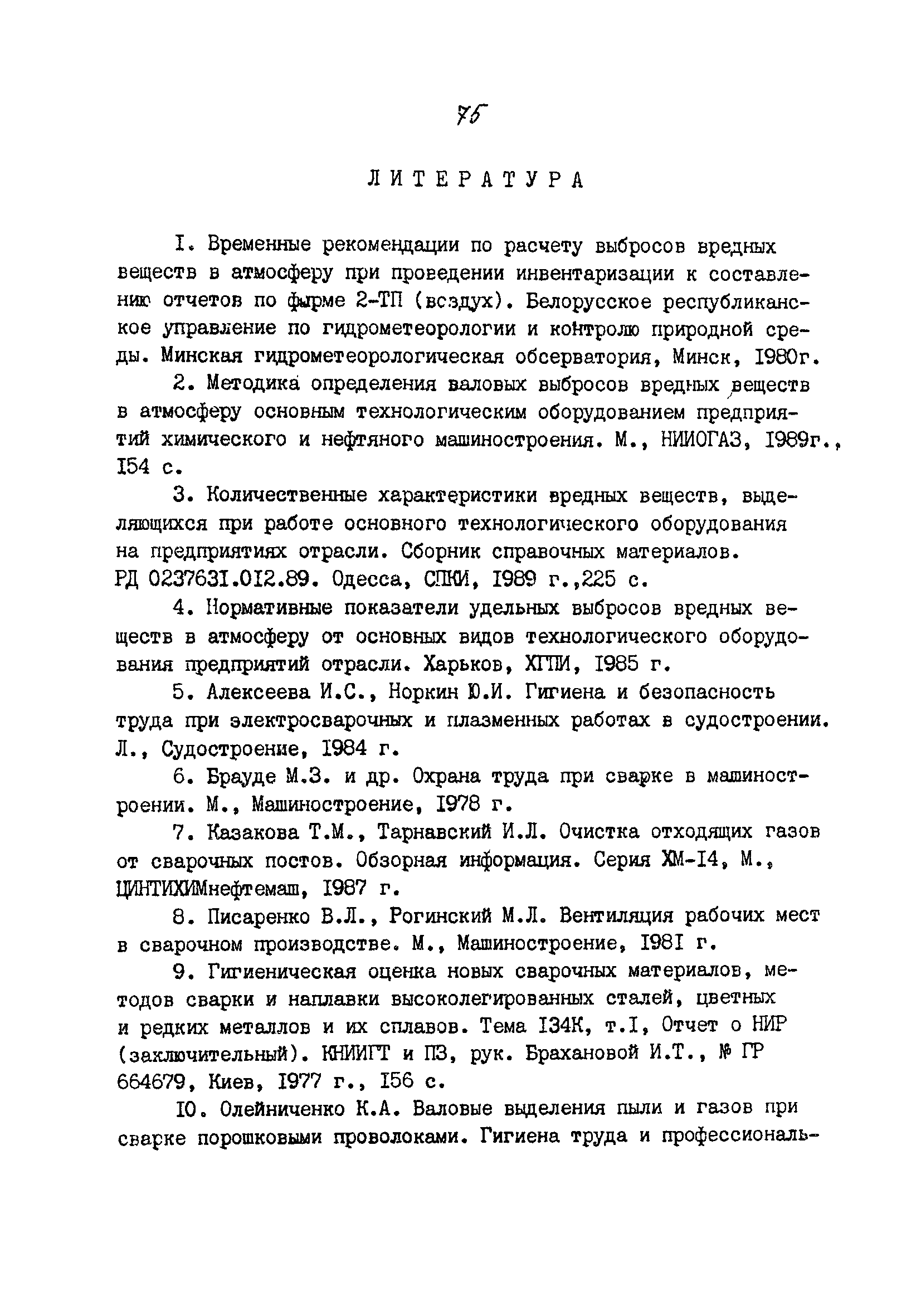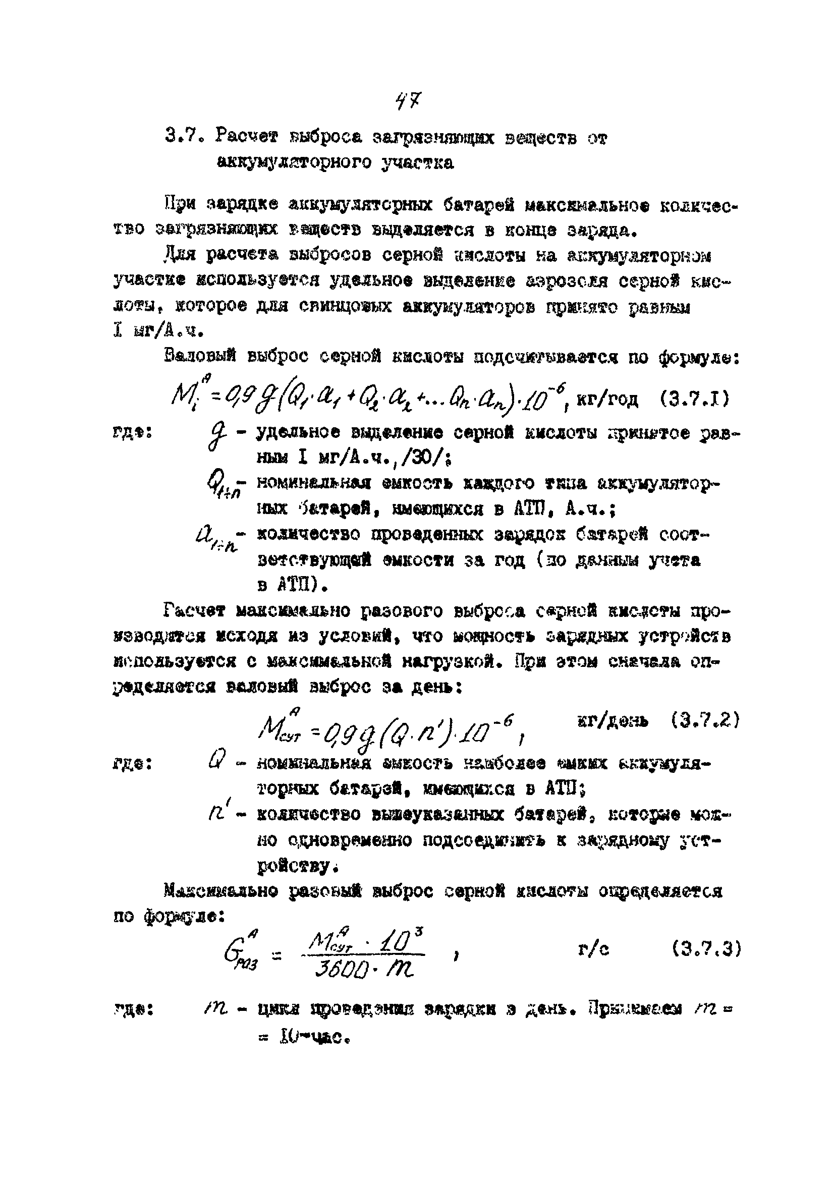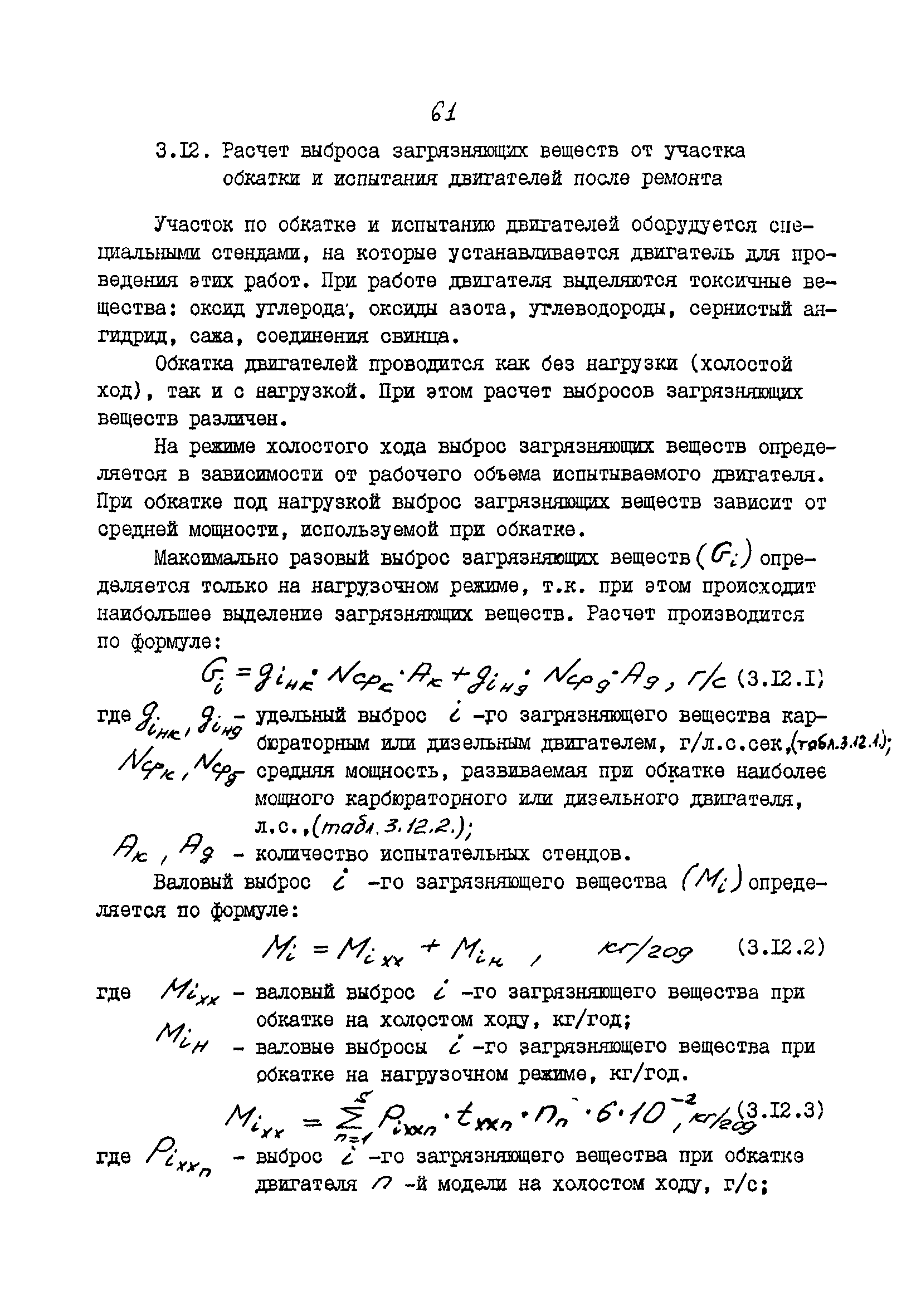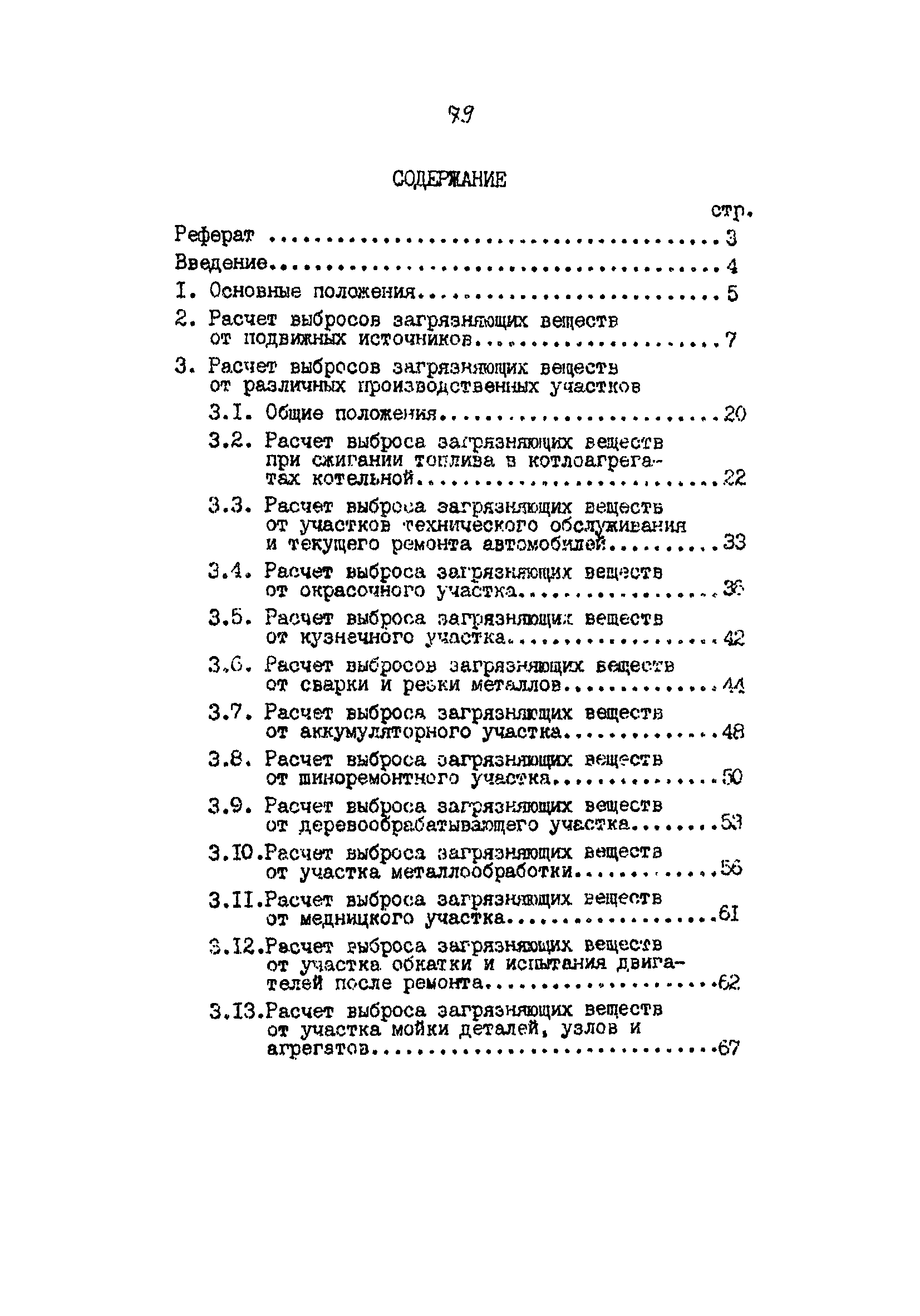 | Оглавление: | Введение 1. Основные положения 2. Расчет выбросов загрязняющих веществ от подвижных источников 3. Расчет выбросов загрязняющих веществ от различных производственных участков 3.1 Общие положения 3.2 Расчет выброса загрязняющих веществ при сжигании топлива в котлоагрегатах котельной 3.3 Расчет выброса загрязняющих веществ от участков технического обслуживания и текущего ремонта автомобилей 3.4 Расчет выброса загрязняющих веществ от окрасочного участка 3.5 Расчет выброса загрязняющих веществ от кузнечного участка 3.6 Расчет выброса загрязняющих веществ от сварки и резки металла 3.7 Расчет выброса загрязняющих веществ от аккумуляторного участка 3.8 Расчет выброса загрязняющих веществ от шиноремонтного участка 3.9 Расчет выброса загрязняющих веществ от деревообрабатывающего участка 3.10 Расчет выброса загрязняющих веществ от участка металлообработки 3.11 Расчет выброса загрязняющих веществ от медницкого участка 3.12 Расчет выброса загрязняющих веществ от участка обкатки и испытания двигателей после ремонта 3.13 Расчет выброса загрязняющих веществ от участка мойки деталей, узлов и агрегатов 3.14 Расчет выброса загрязняющих веществ от участка испытания и ремонта топливной аппаратуры 3.15 Расчет выброса загрязняющих веществ от автозаправочных станций (АЗС) Литература |