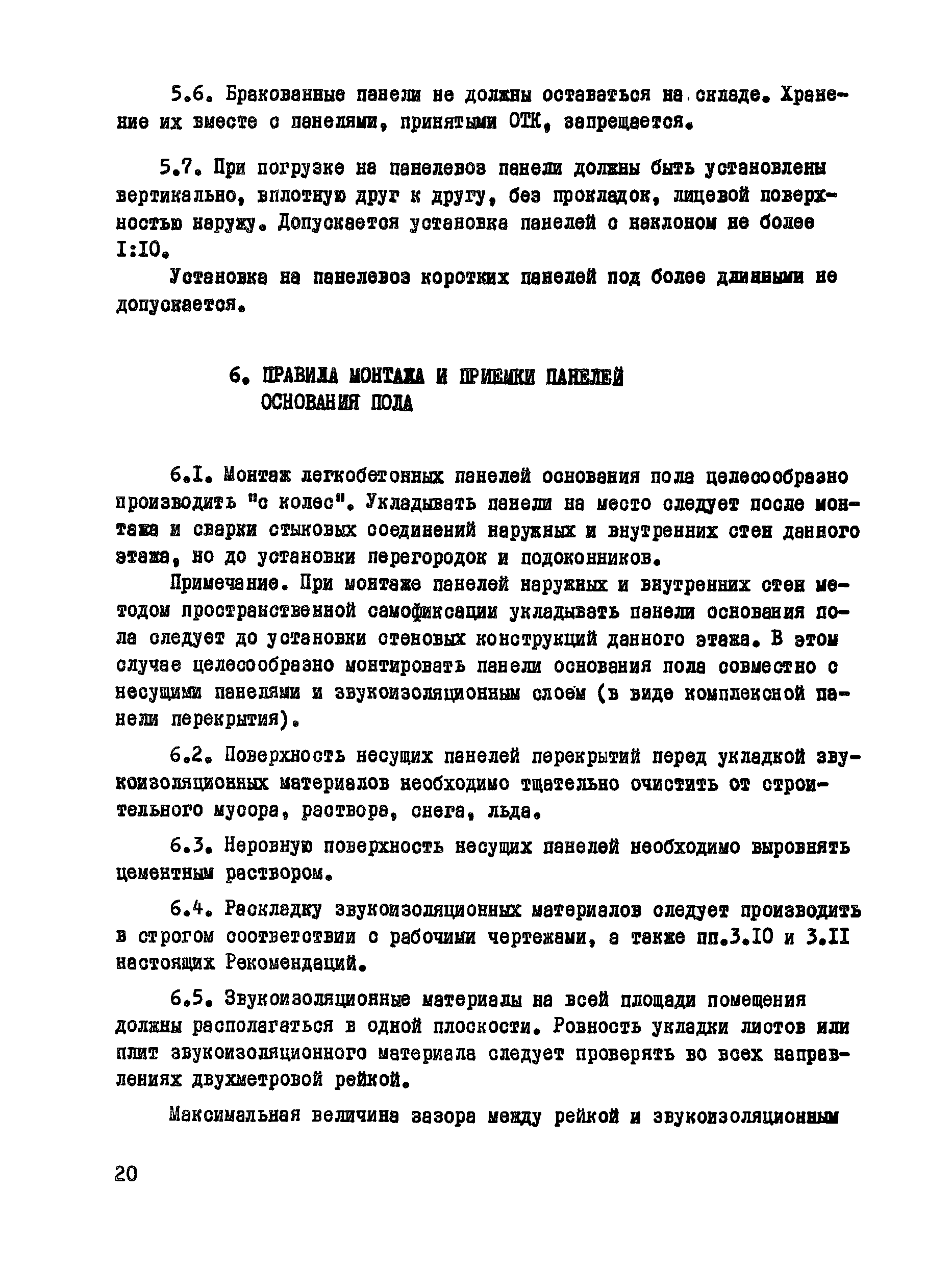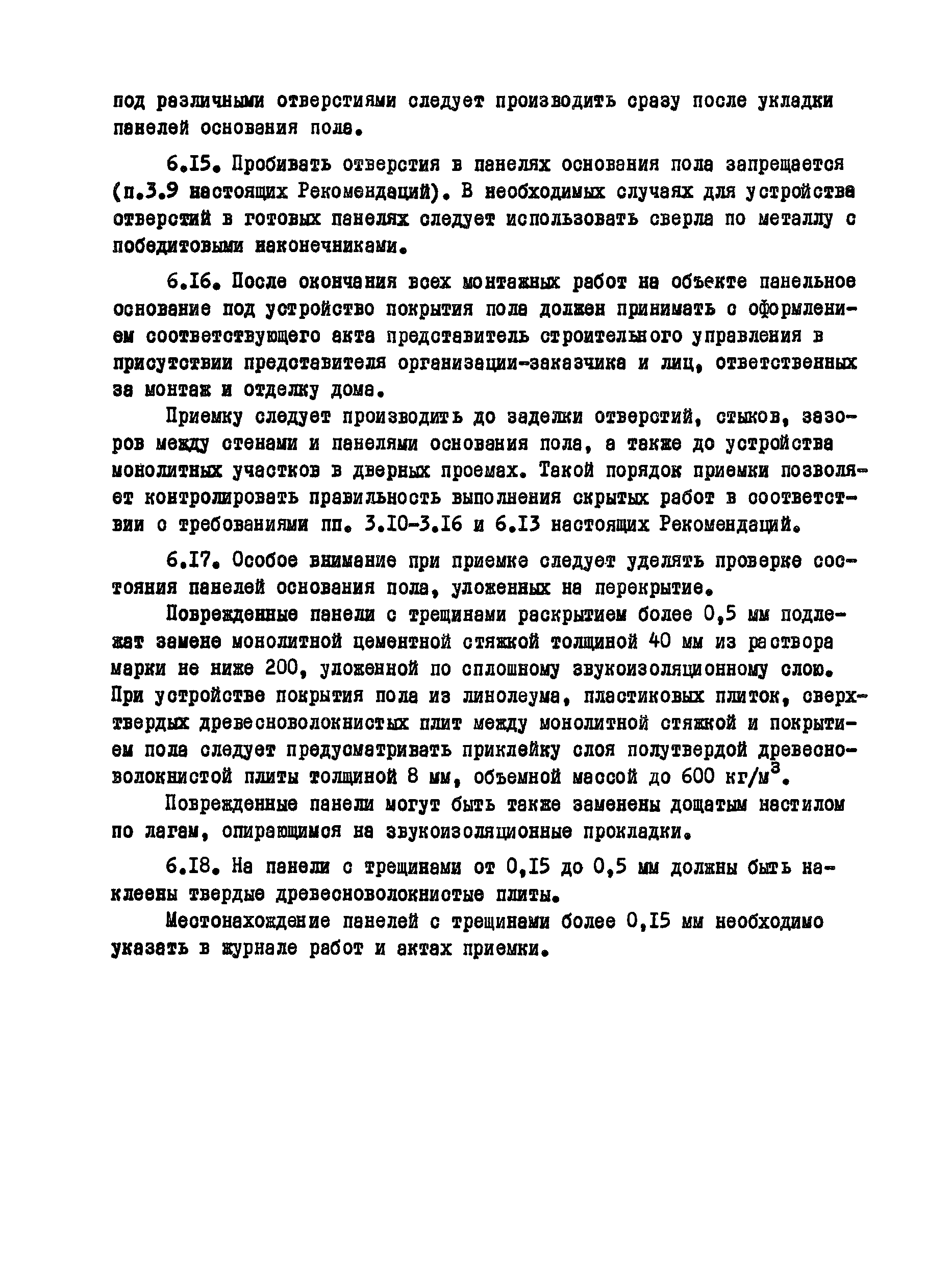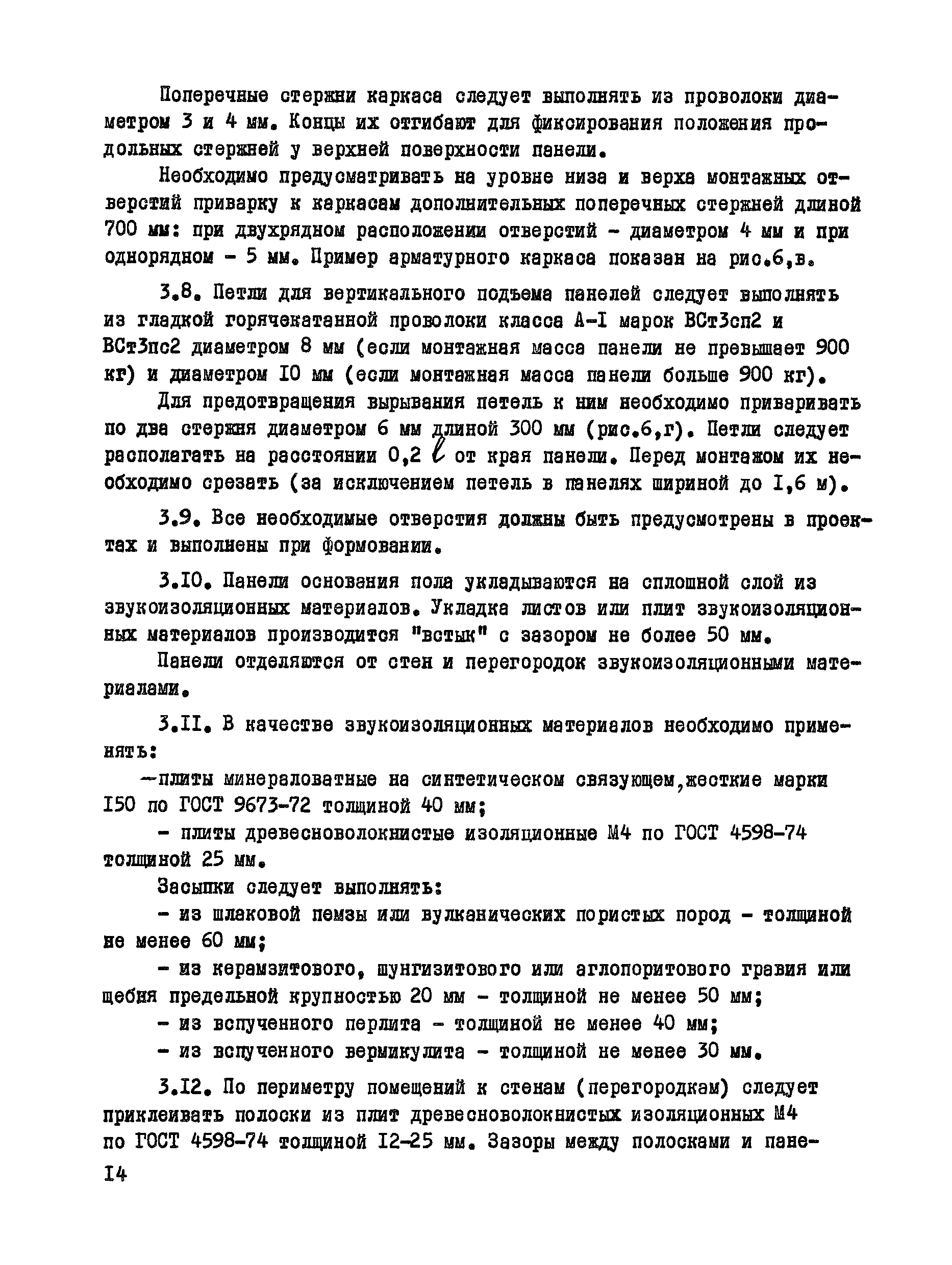 | Оглавление: | Введение 1. Общие положения 2. Технические требования к легкобетонным панелям основания пола 3. Правила проектирования легкобетонных панелей основания пола 4. Правила изготовления легкобетонных панелей основания пола в кассетных установках 5. Правила приемки, маркировки, хранения и транспортирования панелей основания пола 6. Правила монтажа и приемки панелей основания пола |