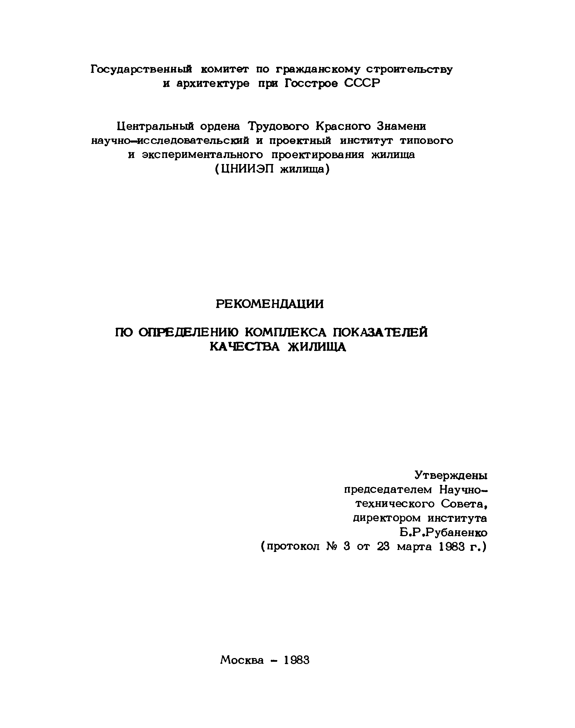 | Название рус.: | Рекомендации по определению комплекса показателей качества жилища |