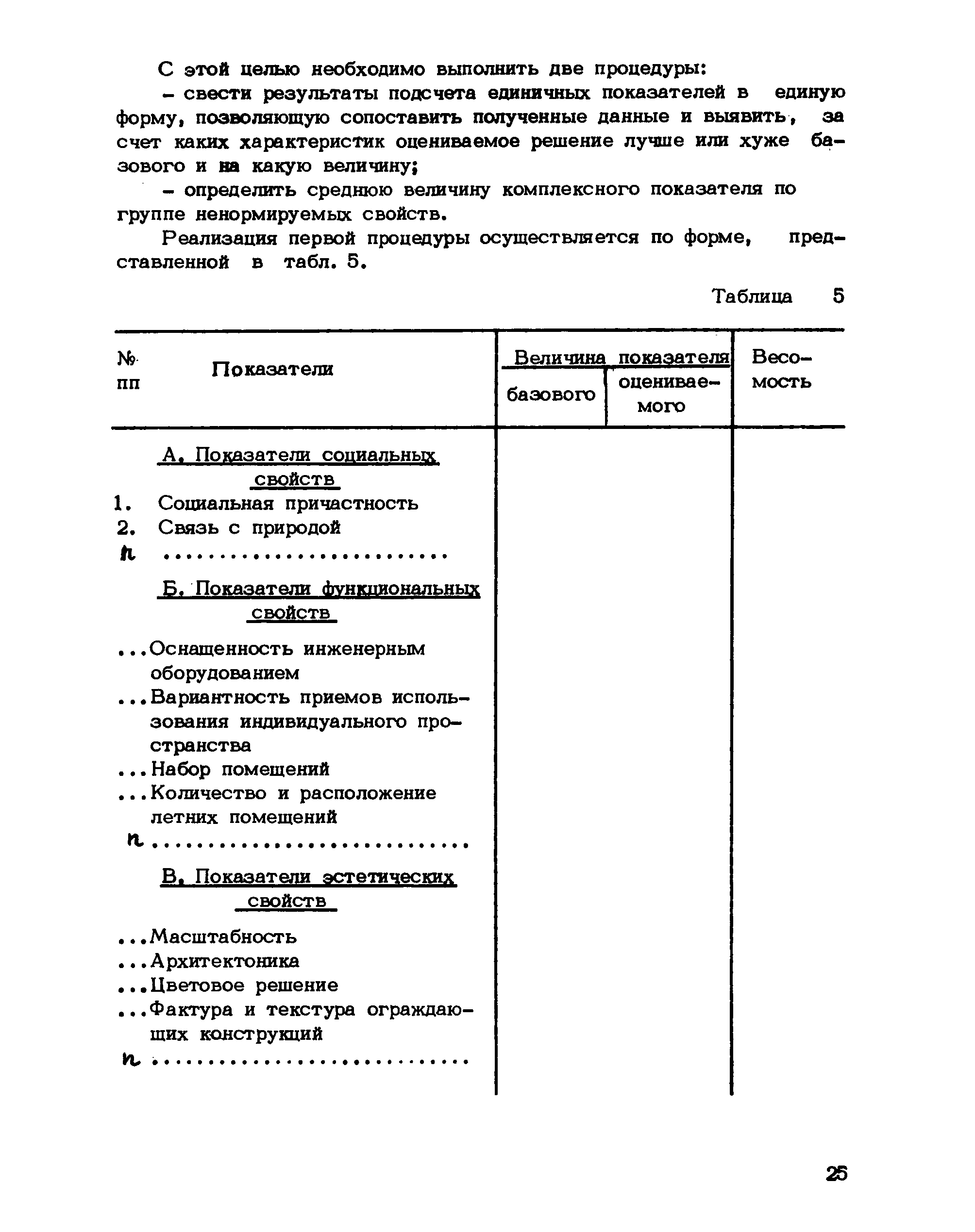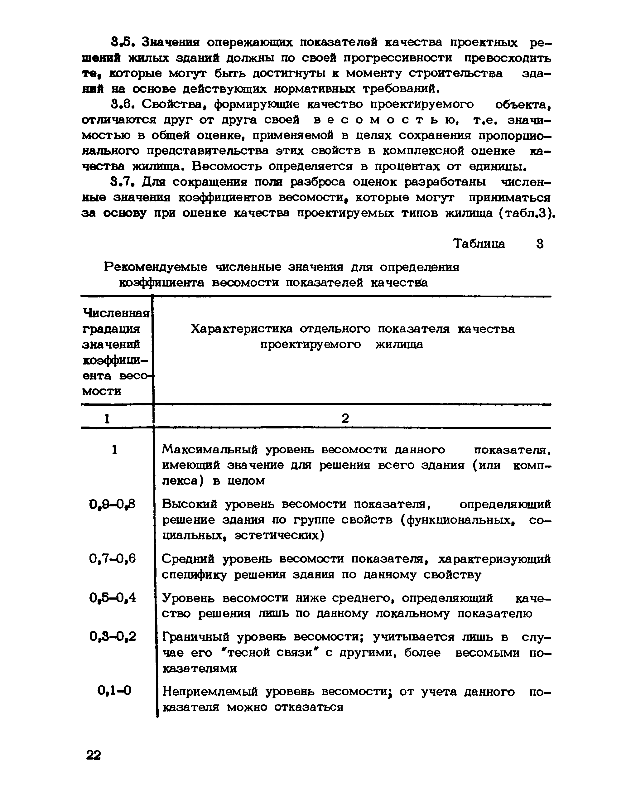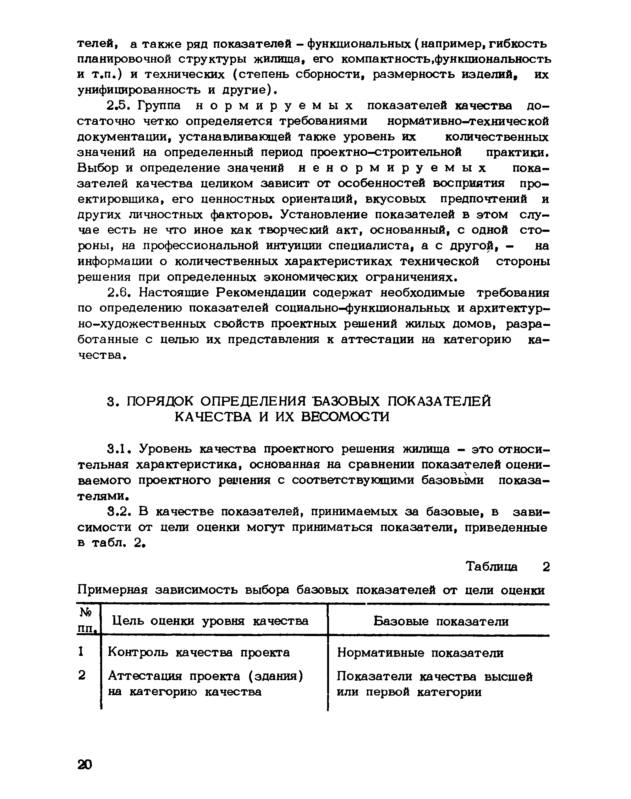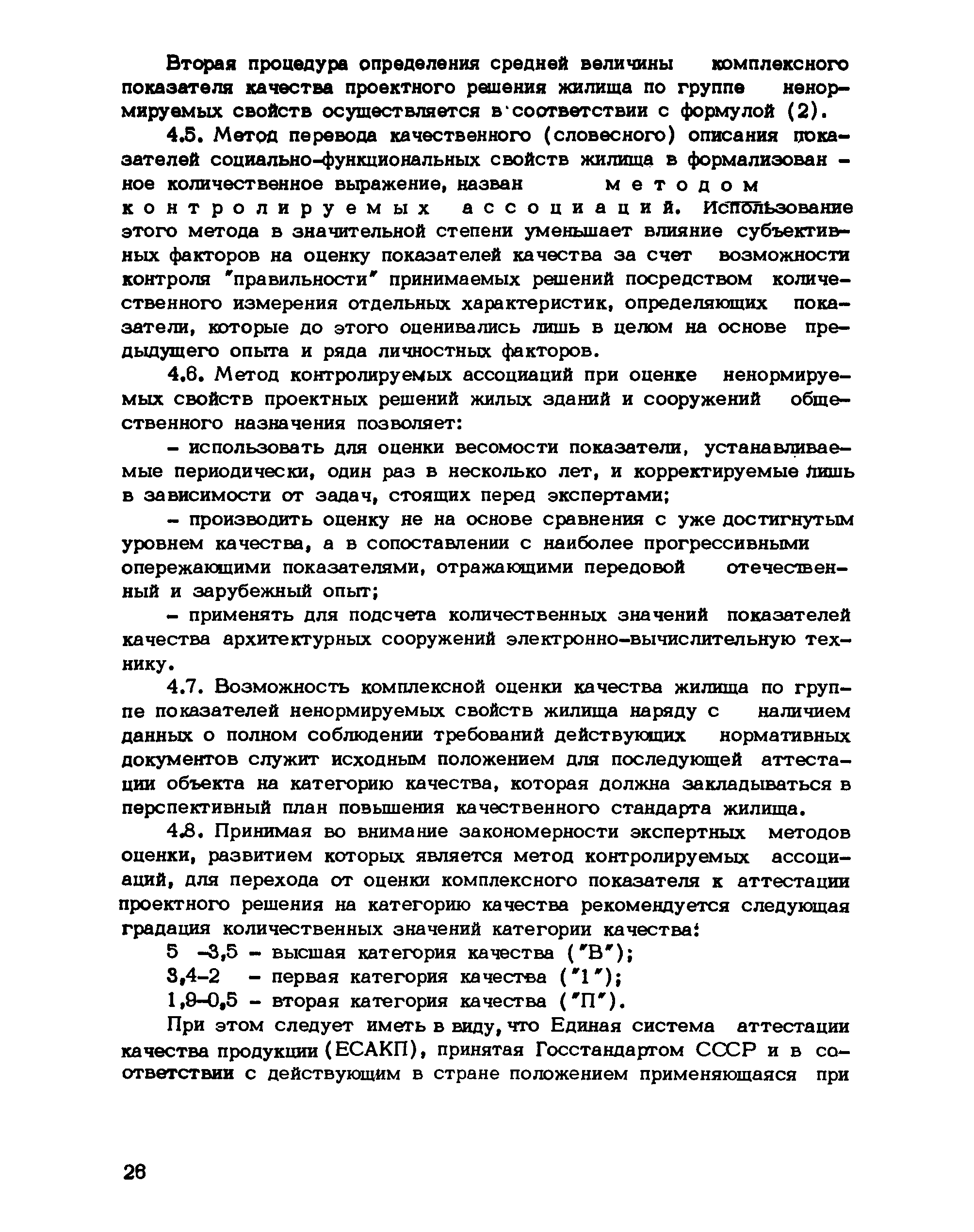 | Оглавление: | Введение 1. Общие положения 2. Номенклатура показателей качества жилища 3. Порядок определения базовых показателей качества и их весомости 4. Определение расчетных значений показателей ненормируемых свойств жилища Приложение 1. Базисный перечень пар биполярных характеристик ненормируемых свойств жилых зданий и сооружений общественного назначения Приложение 2. Пример оценки качества проектного решения 16-этажного крупнопанельного жилого дома серии ПЗ/16 (МНИИТЭП) по комплексу ненормируемых показателей (метод контролируемых ассоциаций) |