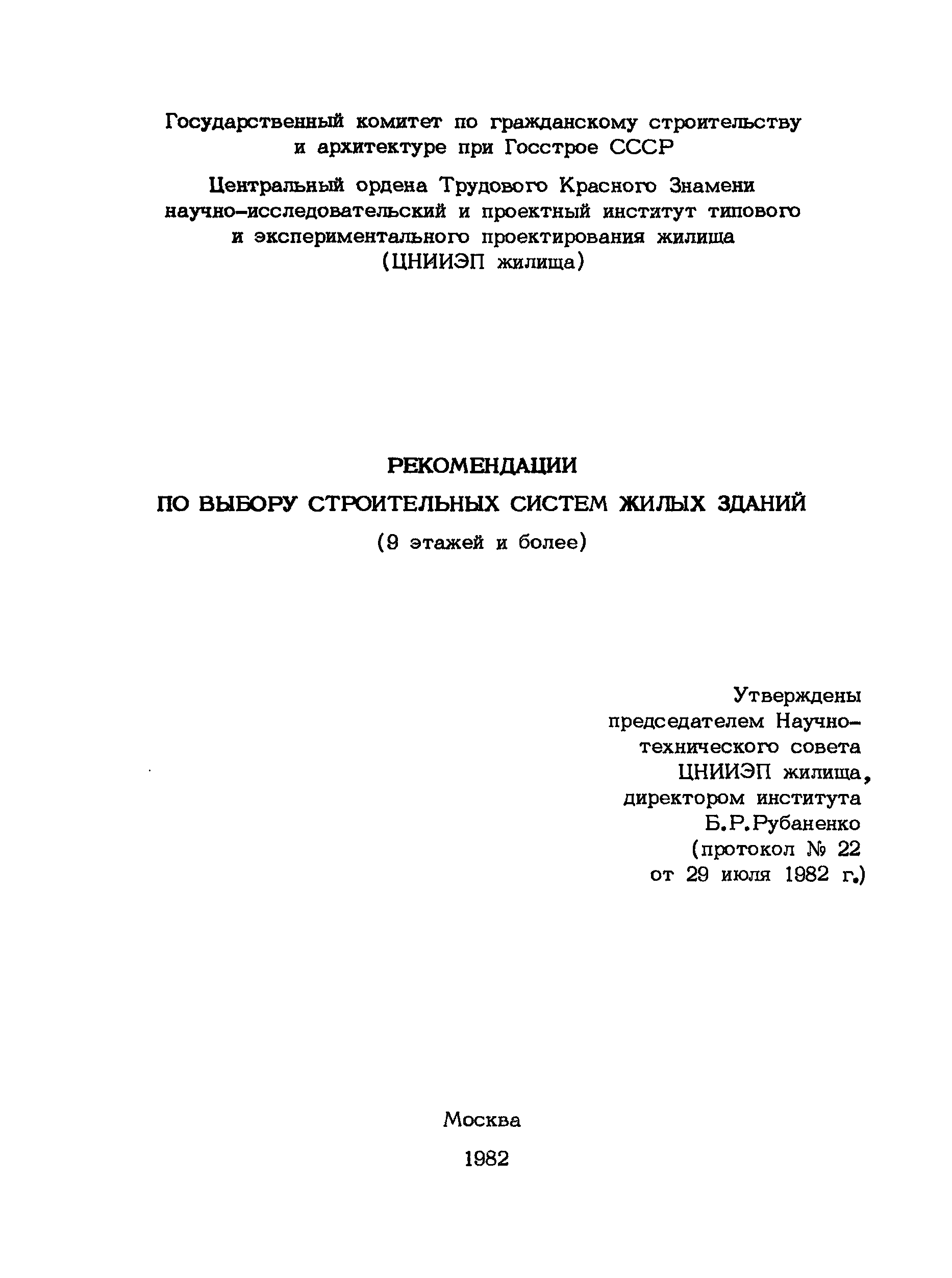 | Название рус.: | Рекомендации по выбору строительных систем жилых зданий (9 этажей и более) |