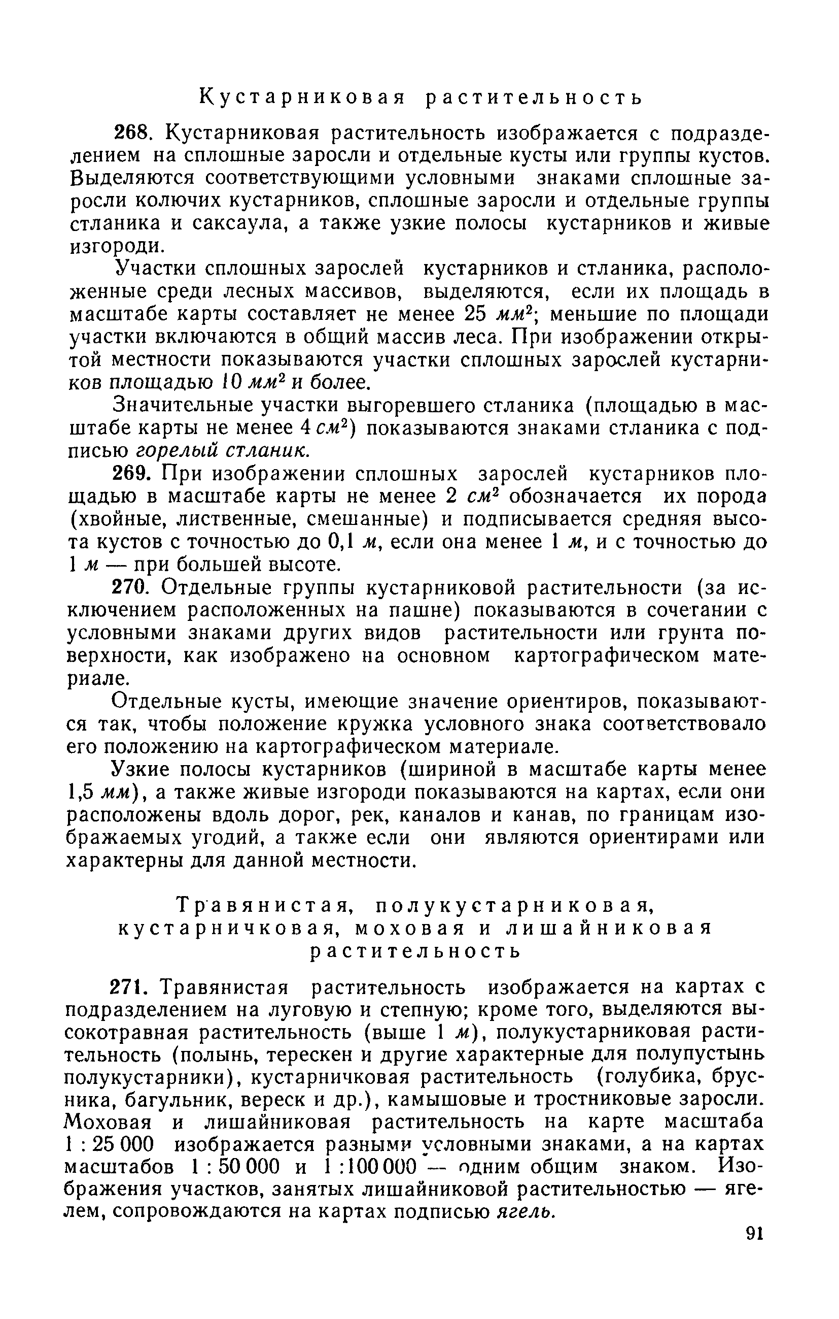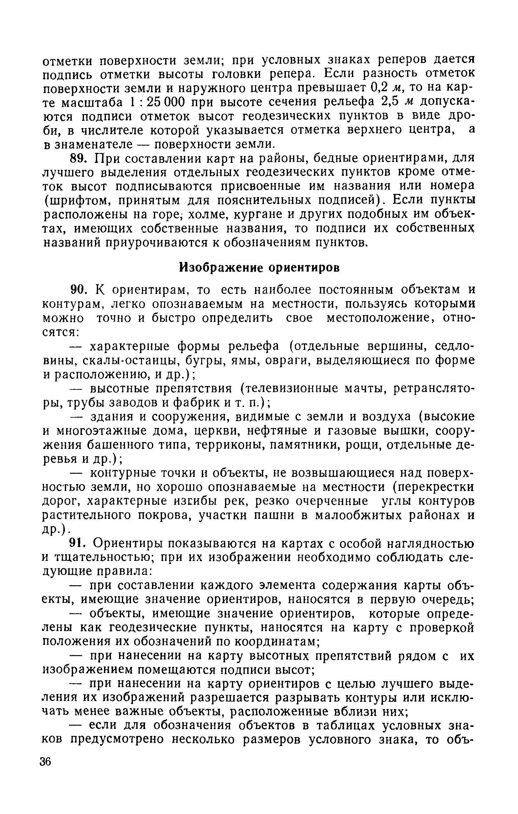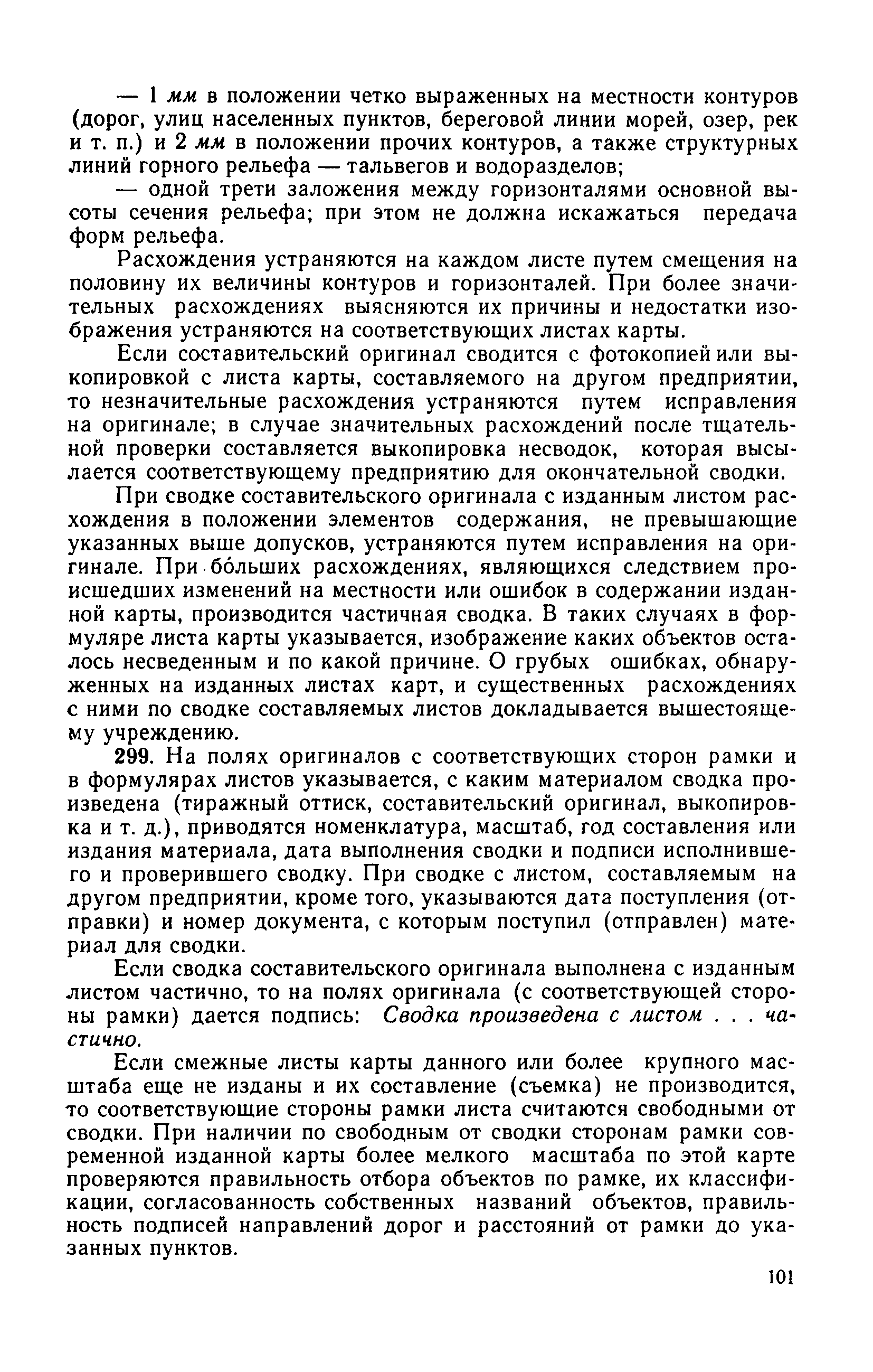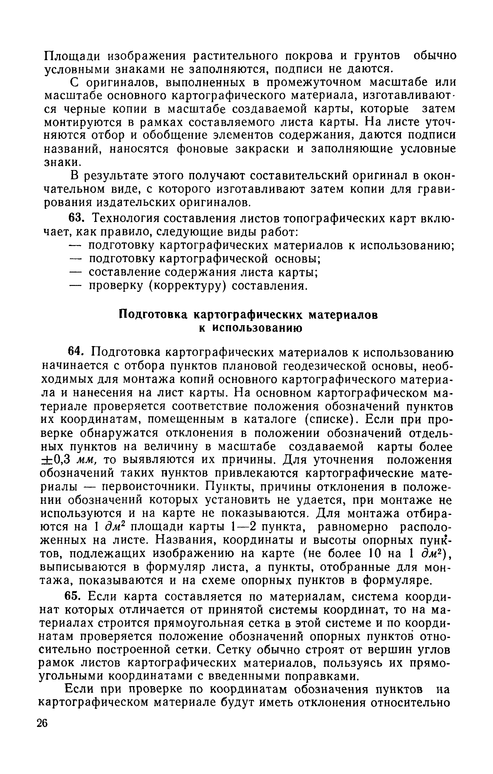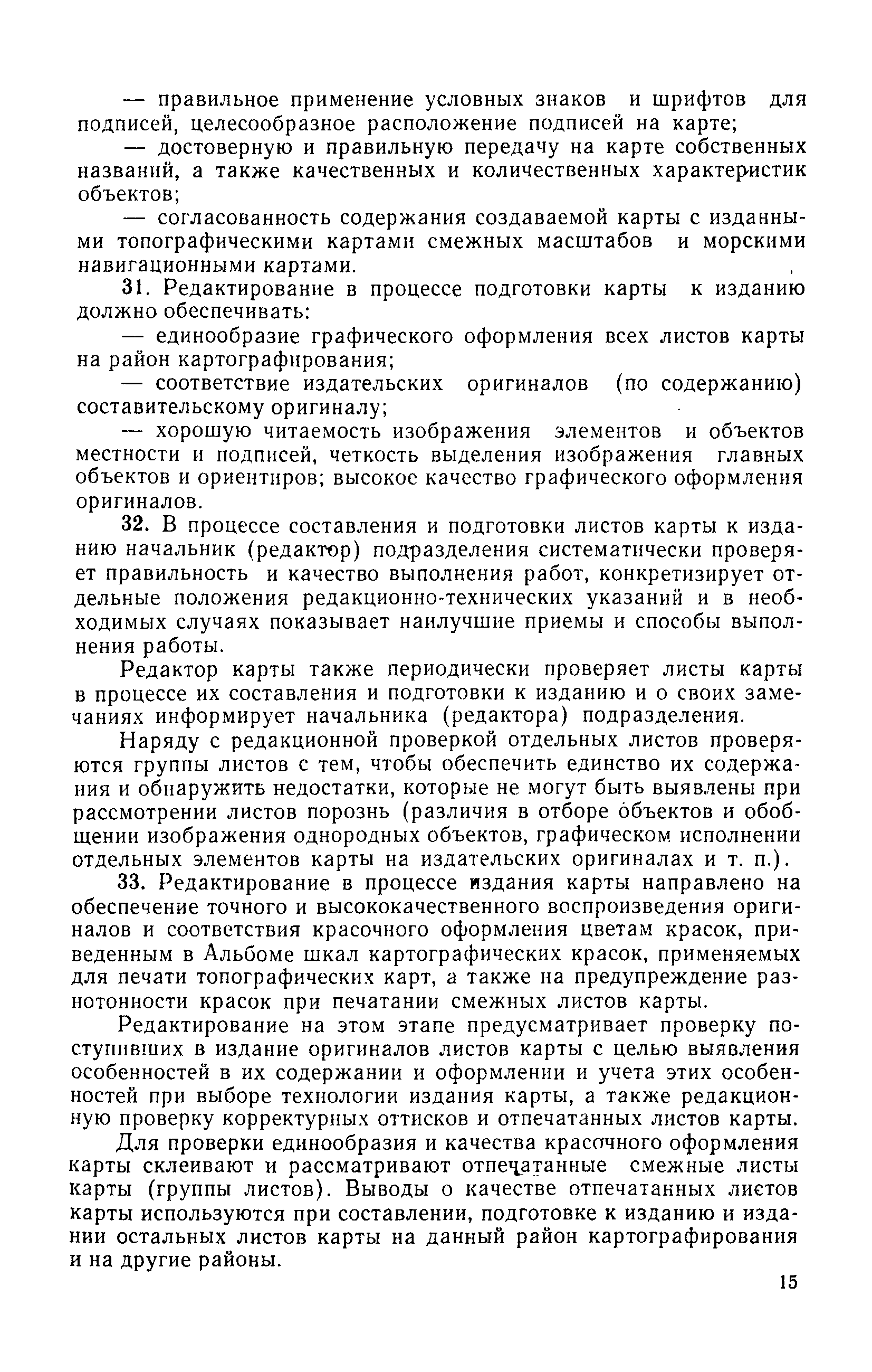 | Оглавление: | Глава 1. Общие положения Назначение топографических карт масштабов 1: 25000, 1: 50000, 1:100000 и основные требования к ним Проекция, разграфка и номенклатуры листов топографических карт Геодезическая основа карт. Точность карт Содержание и оформление карт Глава II. Редактирование карт Цель и содержание редакционных работ Редакционно-подготовительные работы Содержание редакционно-подготовительных работ Сбор картографических материалов Изучение района картографирования и картографических материалов Отработка редакционных и редакционно-технических указаний, образцового листа карты и образцов составления Подготовка исполнителей к выполнению работ Редактирование в процессе составления, подготовки к изданию и издания карт Проверка и приемка законченных видов работ и готовой продукции Использование материалов, поступивших в процессе создания карт Согласование составляемых карт с топографическими и морскими навигационными картами Глава III. Способы составления карт. Общие указания по составлению Способы составления карт Подготовка картографических материалов к использованию Подготовка картографической основы Общие указания по составлению карт Общие требования к подписям Установление написания названий Размещение подписей на картах Глава IV. Составление элементов содержания карт Математические элементы карт Опорные пункты Изображение ориентиров Гидрография и гидротехнические сооружения Прибрежная полоса морей; озера, водохранилища, острова Реки и каналы Рельеф дна морей, крупных озер, водохранилищ и рек. Отметки уровней воды Водопроводы, колодцы, источники Гидротехнические сооружения Подписи названий объектов гидрографии Населенные пункты Классификация населенных пунктов Изображение населенных пунктов Подписи названий населенных пунктов Промышленные, сельскохозяйственные и социально-культурные объекты Дорожная сеть и дорожные сооружения Железные дороги Шоссейные и грунтовые дороги, тропы Дорожные сооружения Подписи характеристик проходимости местности и направлений дорог Рельеф Высоты сечения рельефа, требования к изображению рельефа горизонталями Изображение основных типов рельефа Отметки высот Подписи названий объектов рельефа Растительный покров и грунты Древесная растительность Кустарниковая растительность Травянистая, полукустарниковая, кустарничковая, моховая и лишайниковая растительность Искусственные насаждения Болота, солончаки, грунты Границы и ограждения Сводка составительских оригиналов Оформление рамок листов карт Выписка названий для набора подписей Глава V. Подготовка карт к изданию Способы подготовки карт к изданию Последовательность выполнения работ Порядок гравирования штриховых элементов содержания карт Изготовление оригиналов фоновых закрасок (заливок и сеток) и макета заливки кварталов населенных пунктов и дорог Требования к оригинальным диапозитивам Сводка издательских оригиналов Комплектность материалов для издания карт Глава VI. Общие указания по обновлению карт Общие положения Проверка точности обновляемой карты Определение степени устарелости карты и отработка редакционных (редакционно-технических) указаний Технология обновления оригиналов карты и подготовки ее к изданию Приложения: 1. Разграфка, номенклатуры и шифры листов топограф