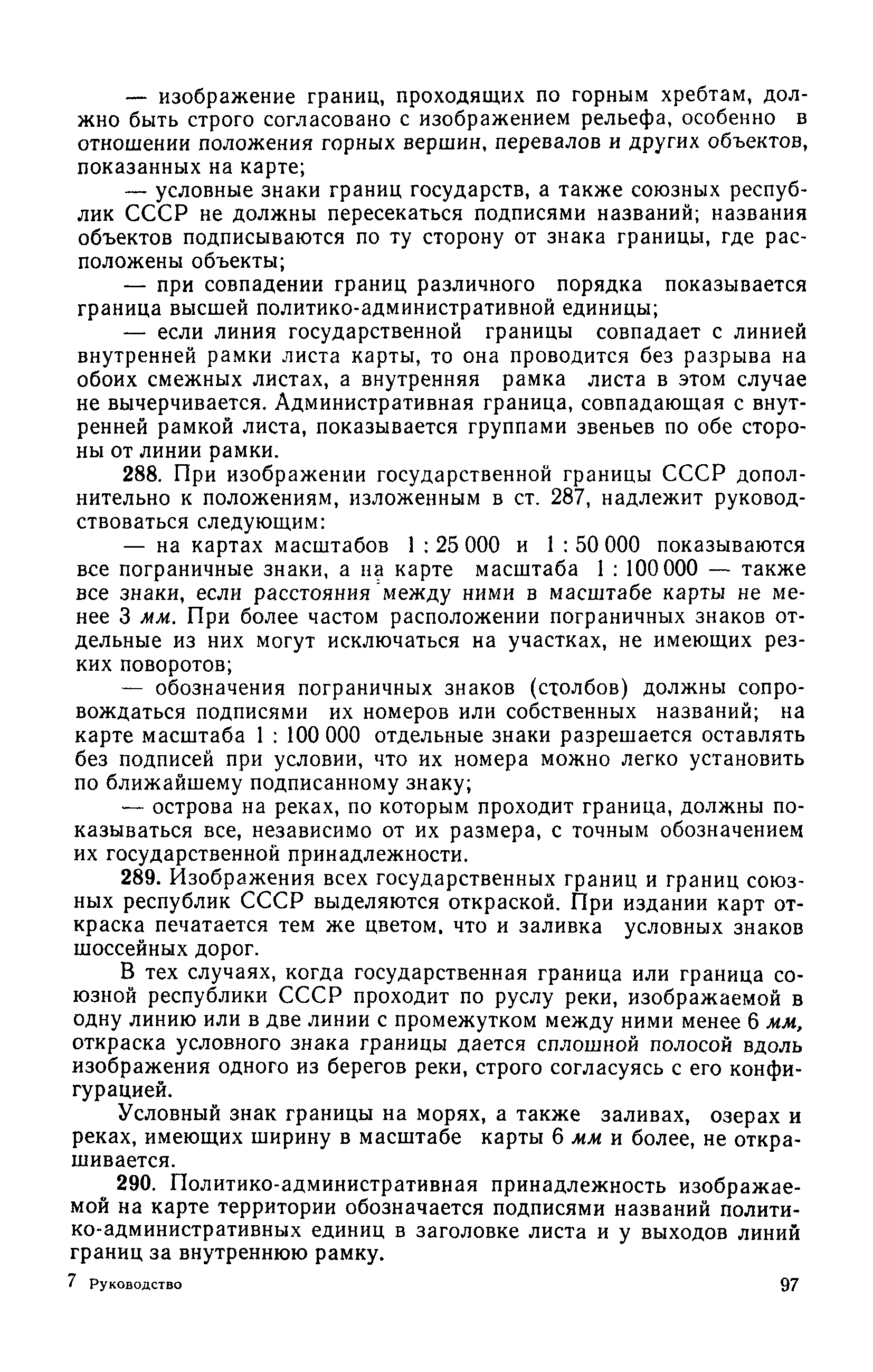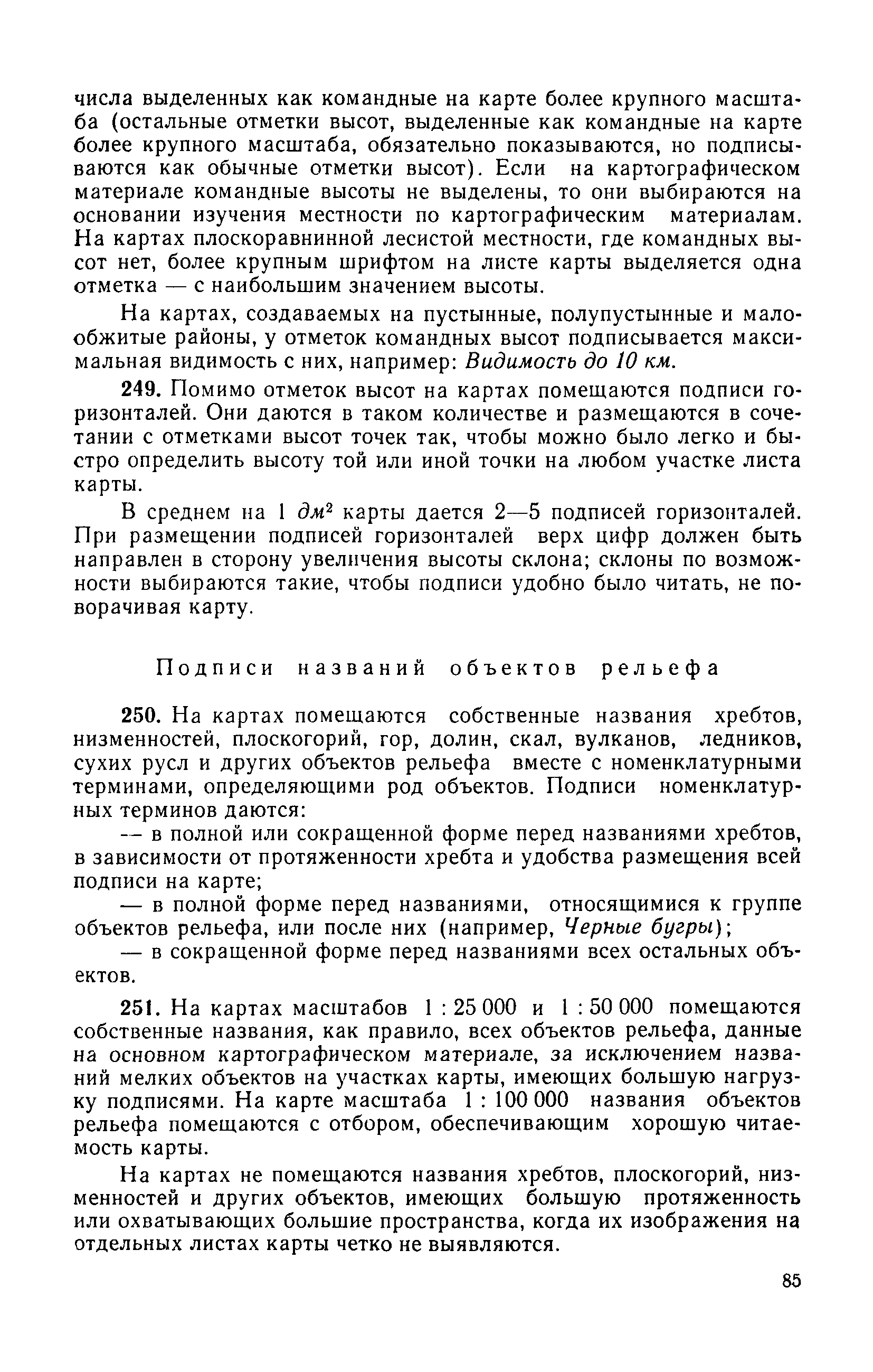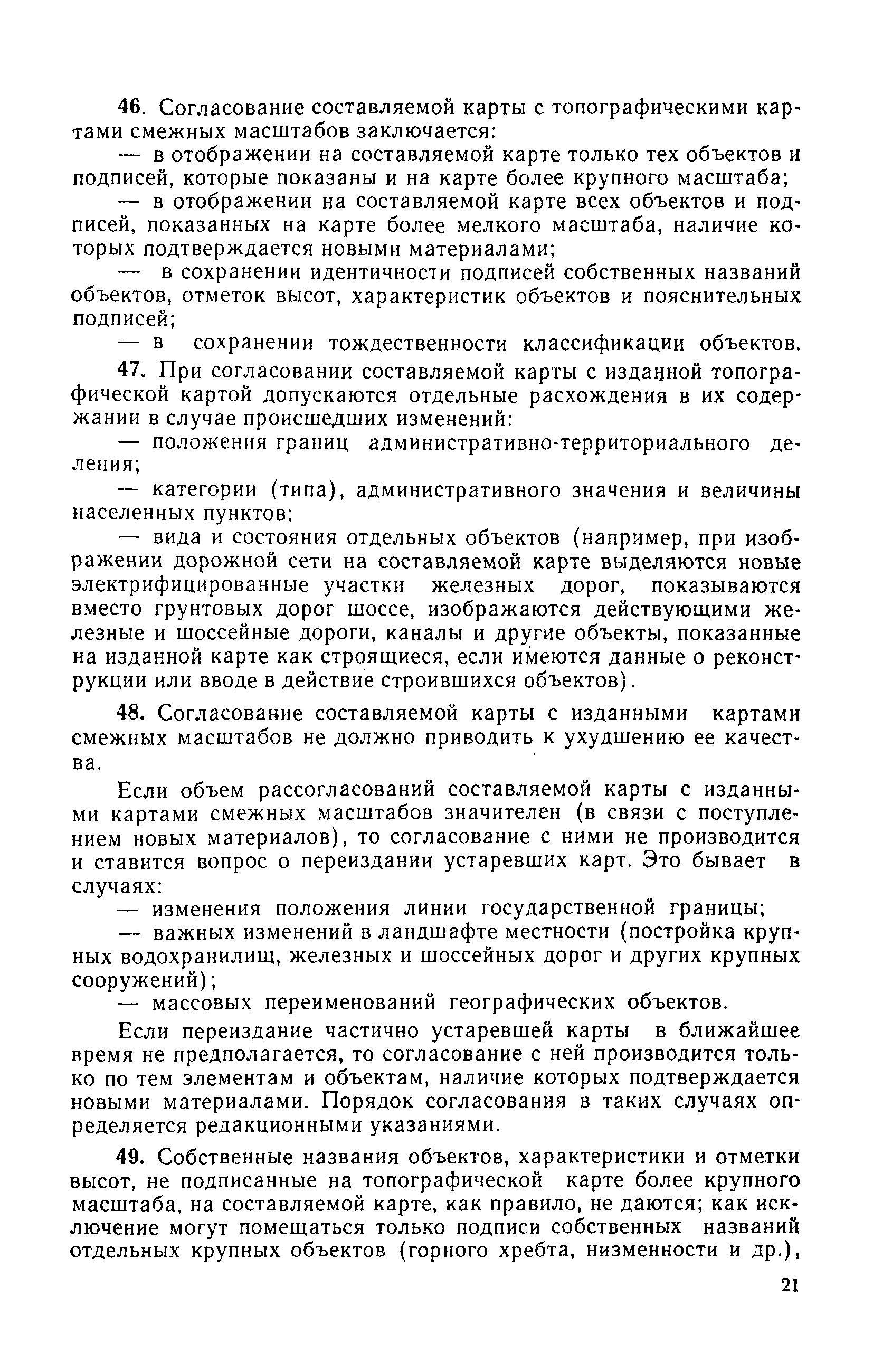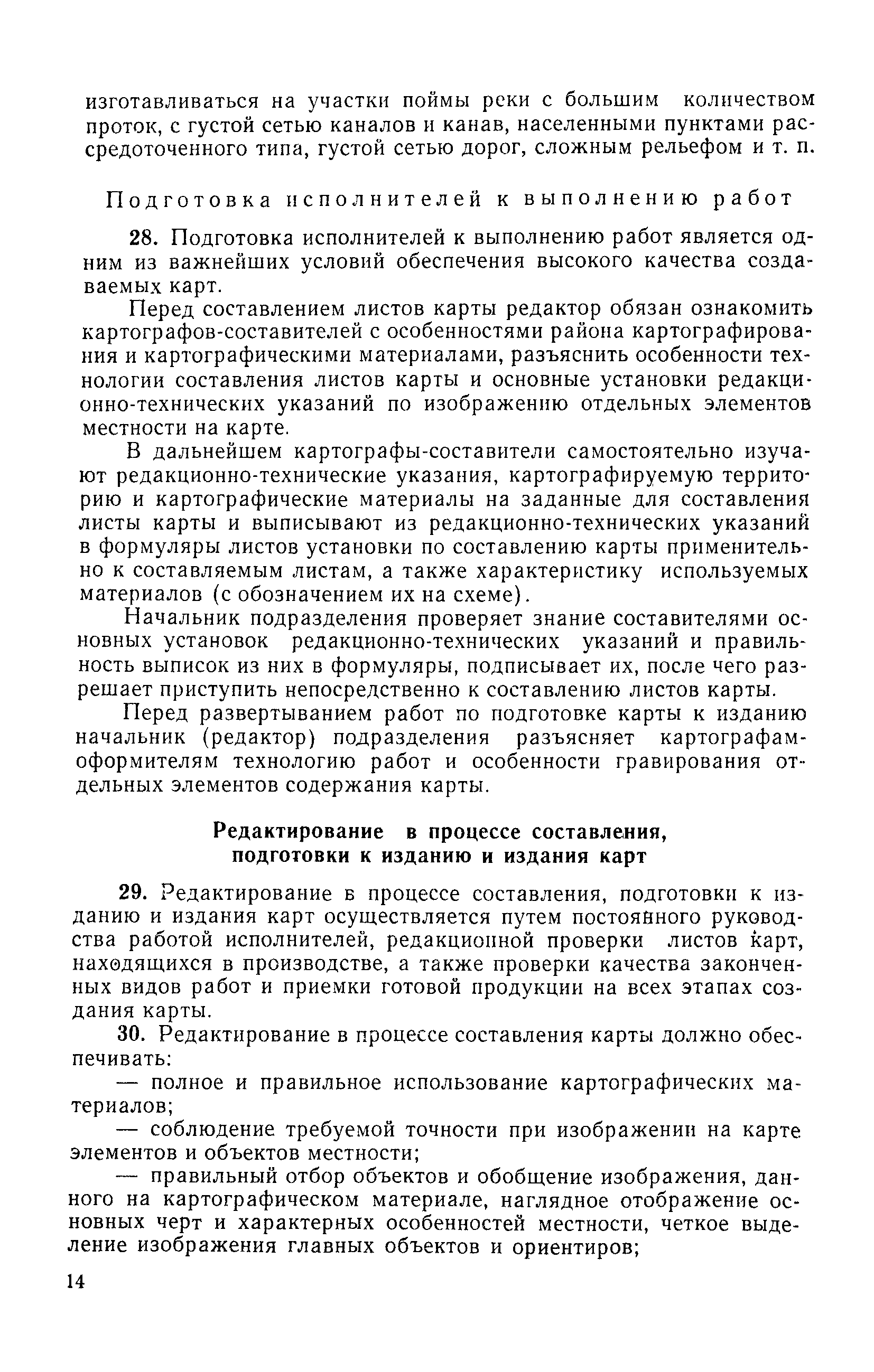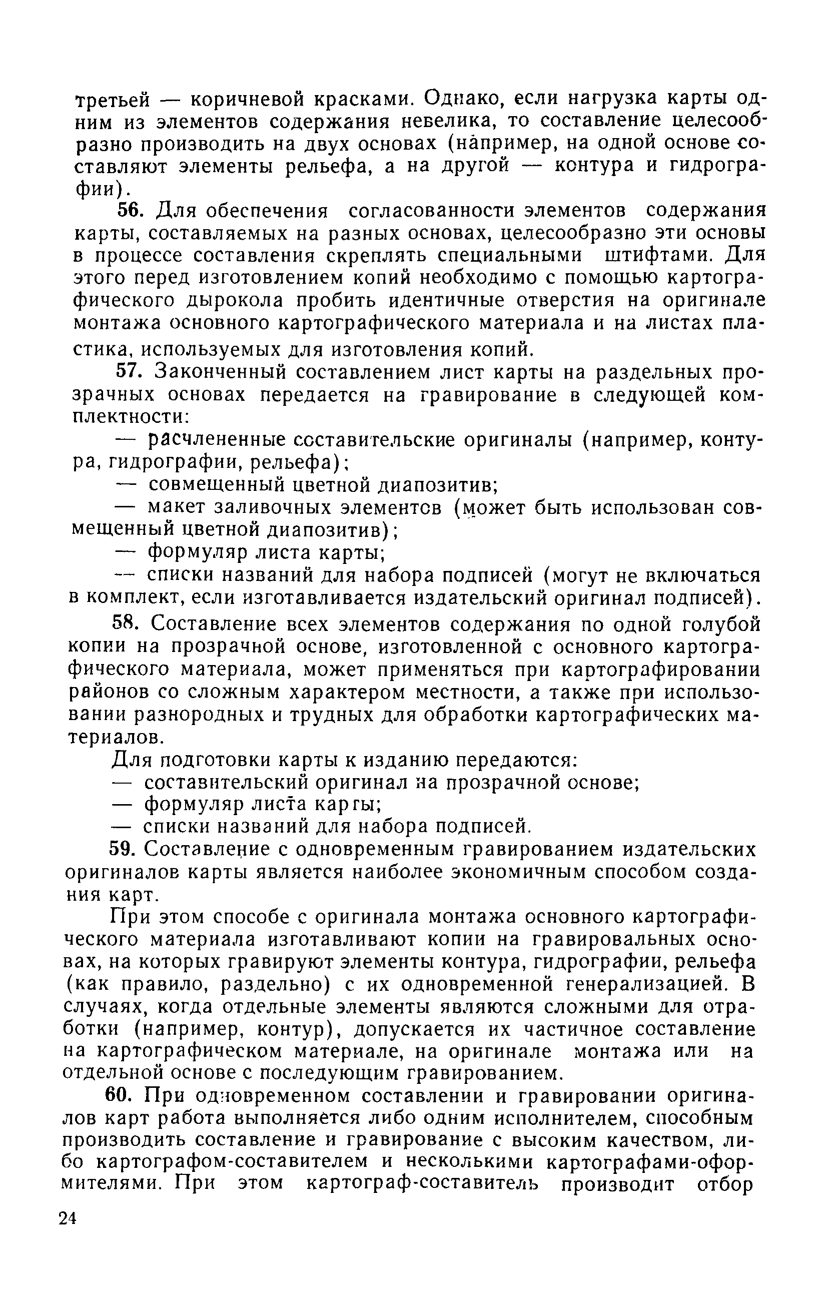 | Оглавление: | Глава 1. Общие положения Назначение топографических карт масштабов 1: 25000, 1: 50000, 1:100000 и основные требования к ним Проекция, разграфка и номенклатуры листов топографических карт Геодезическая основа карт. Точность карт Содержание и оформление карт Глава II. Редактирование карт Цель и содержание редакционных работ Редакционно-подготовительные работы Содержание редакционно-подготовительных работ Сбор картографических материалов Изучение района картографирования и картографических материалов Отработка редакционных и редакционно-технических указаний, образцового листа карты и образцов составления Подготовка исполнителей к выполнению работ Редактирование в процессе составления, подготовки к изданию и издания карт Проверка и приемка законченных видов работ и готовой продукции Использование материалов, поступивших в процессе создания карт Согласование составляемых карт с топографическими и морскими навигационными картами Глава III. Способы составления карт. Общие указания по составлению Способы составления карт Подготовка картографических материалов к использованию Подготовка картографической основы Общие указания по составлению карт Общие требования к подписям Установление написания названий Размещение подписей на картах Глава IV. Составление элементов содержания карт Математические элементы карт Опорные пункты Изображение ориентиров Гидрография и гидротехнические сооружения Прибрежная полоса морей; озера, водохранилища, острова Реки и каналы Рельеф дна морей, крупных озер, водохранилищ и рек. Отметки уровней воды Водопроводы, колодцы, источники Гидротехнические сооружения Подписи названий объектов гидрографии Населенные пункты Классификация населенных пунктов Изображение населенных пунктов Подписи названий населенных пунктов Промышленные, сельскохозяйственные и социально-культурные объекты Дорожная сеть и дорожные сооружения Железные дороги Шоссейные и грунтовые дороги, тропы Дорожные сооружения Подписи характеристик проходимости местности и направлений дорог Рельеф Высоты сечения рельефа, требования к изображению рельефа горизонталями Изображение основных типов рельефа Отметки высот Подписи названий объектов рельефа Растительный покров и грунты Древесная растительность Кустарниковая растительность Травянистая, полукустарниковая, кустарничковая, моховая и лишайниковая растительность Искусственные насаждения Болота, солончаки, грунты Границы и ограждения Сводка составительских оригиналов Оформление рамок листов карт Выписка названий для набора подписей Глава V. Подготовка карт к изданию Способы подготовки карт к изданию Последовательность выполнения работ Порядок гравирования штриховых элементов содержания карт Изготовление оригиналов фоновых закрасок (заливок и сеток) и макета заливки кварталов населенных пунктов и дорог Требования к оригинальным диапозитивам Сводка издательских оригиналов Комплектность материалов для издания карт Глава VI. Общие указания по обновлению карт Общие положения Проверка точности обновляемой карты Определение степени устарелости карты и отработка редакционных (редакционно-технических) указаний Технология обновления оригиналов карты и подготовки ее к изданию Приложения: 1. Разграфка, номенклатуры и шифры листов топограф