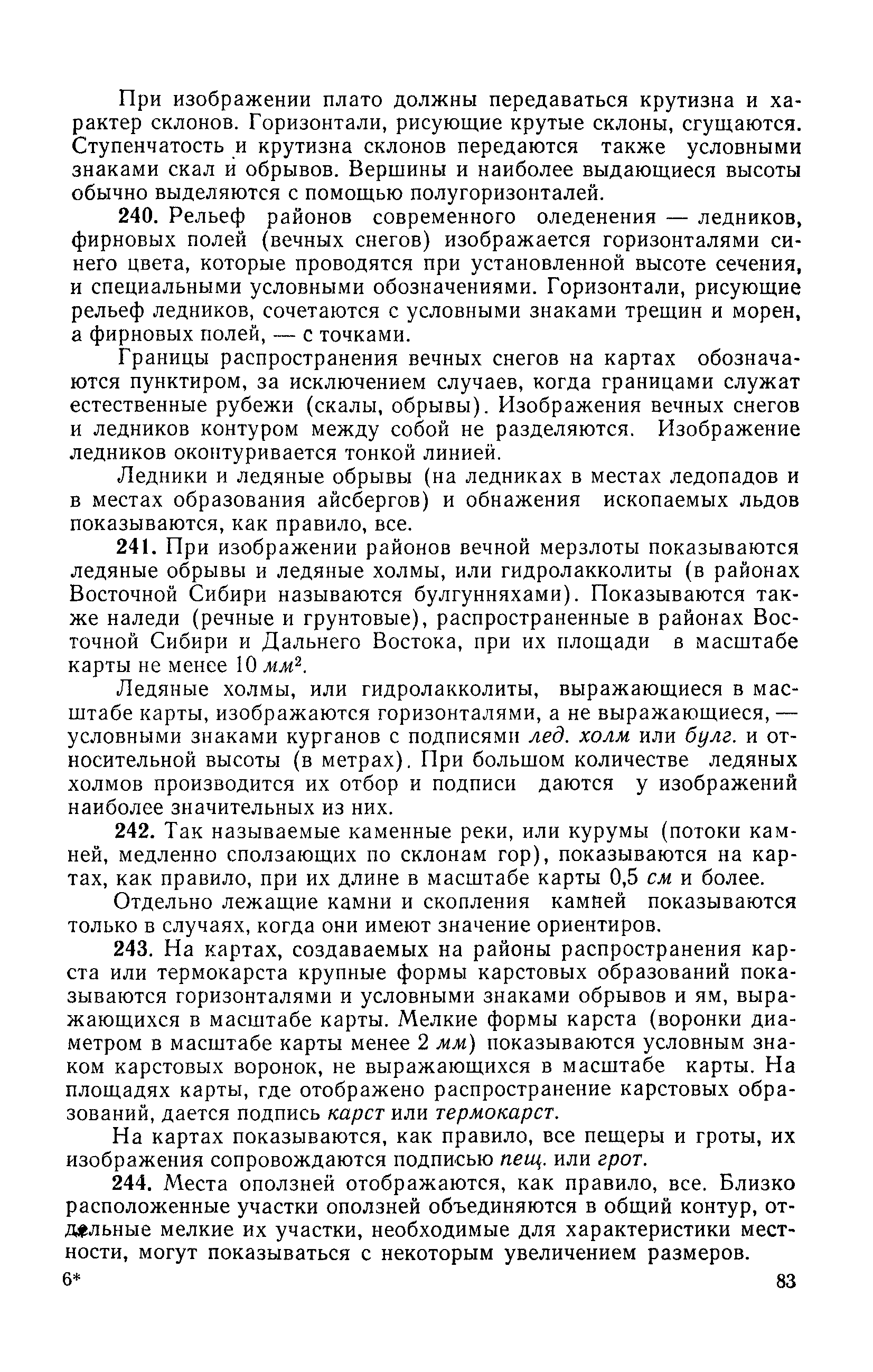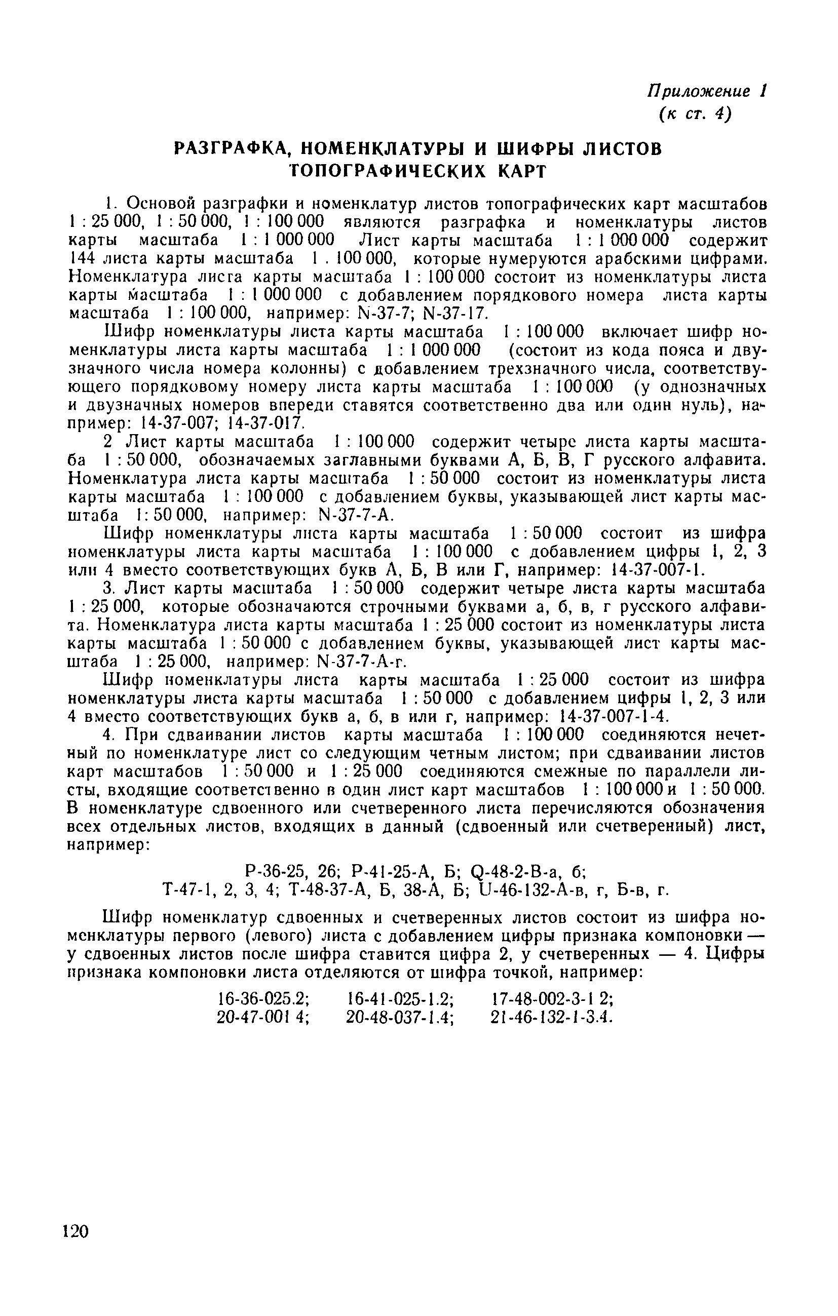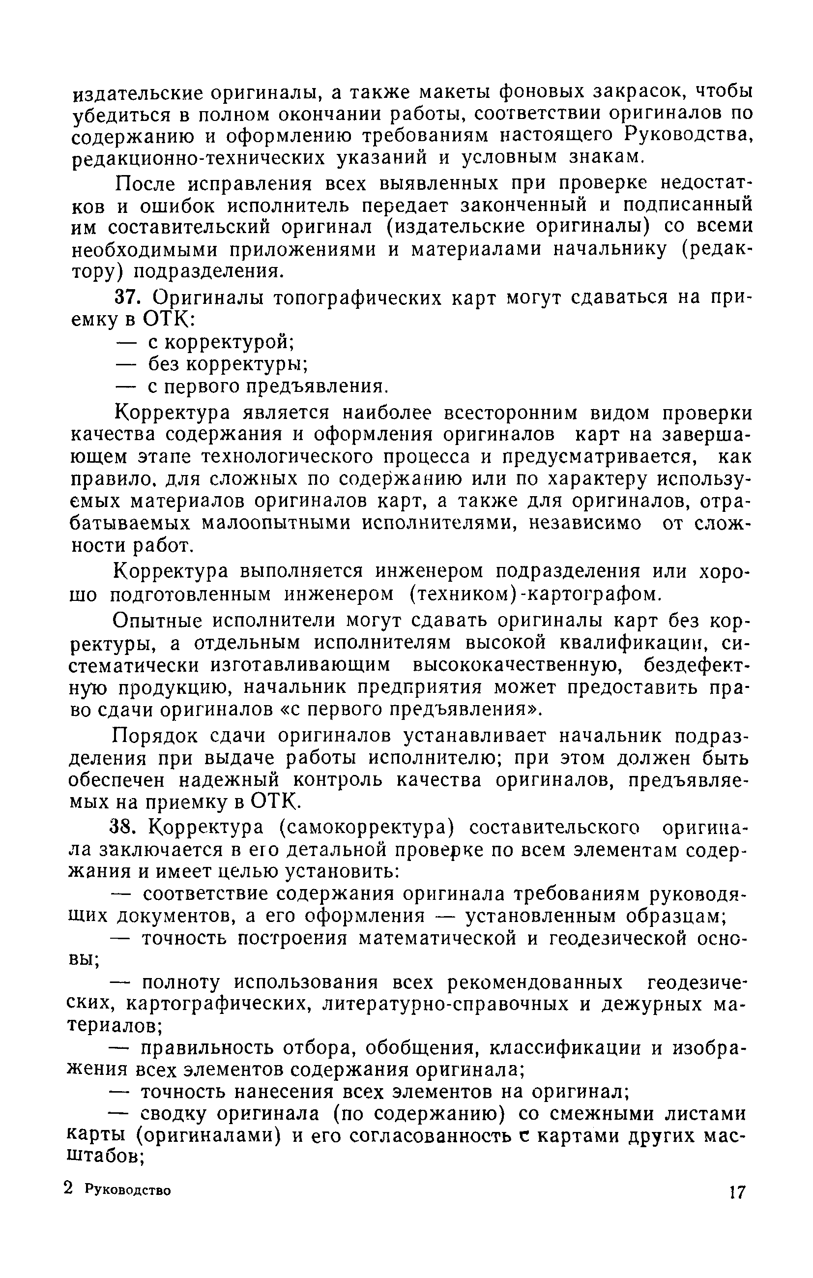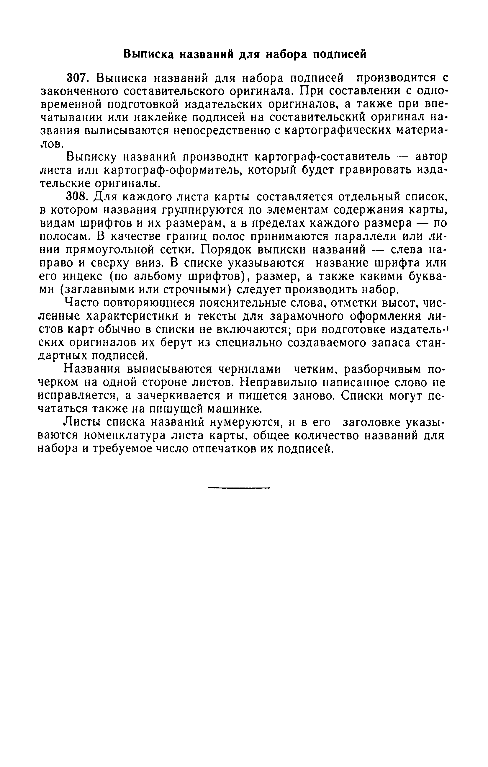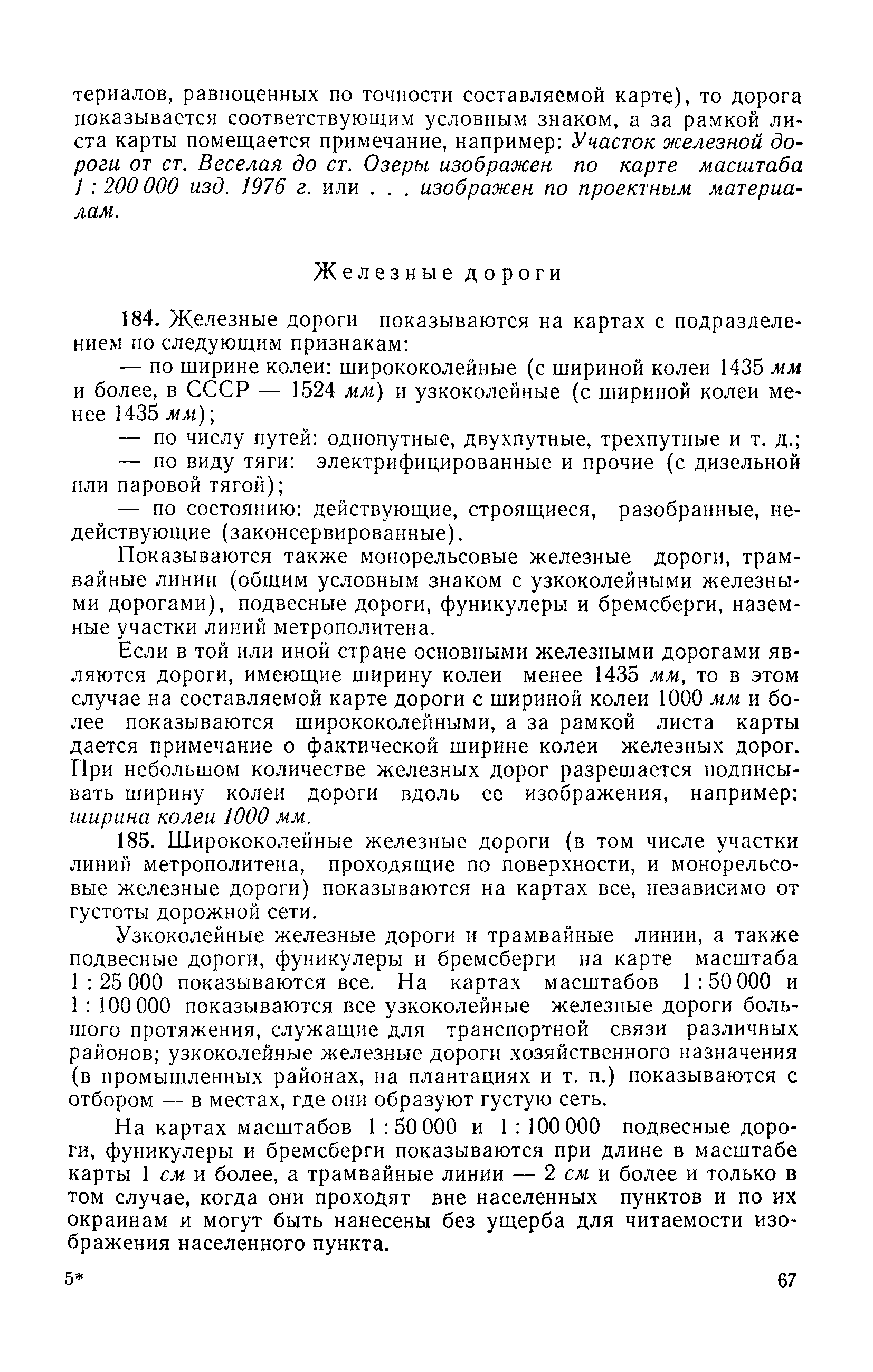 | Оглавление: | Глава 1. Общие положения Назначение топографических карт масштабов 1: 25000, 1: 50000, 1:100000 и основные требования к ним Проекция, разграфка и номенклатуры листов топографических карт Геодезическая основа карт. Точность карт Содержание и оформление карт Глава II. Редактирование карт Цель и содержание редакционных работ Редакционно-подготовительные работы Содержание редакционно-подготовительных работ Сбор картографических материалов Изучение района картографирования и картографических материалов Отработка редакционных и редакционно-технических указаний, образцового листа карты и образцов составления Подготовка исполнителей к выполнению работ Редактирование в процессе составления, подготовки к изданию и издания карт Проверка и приемка законченных видов работ и готовой продукции Использование материалов, поступивших в процессе создания карт Согласование составляемых карт с топографическими и морскими навигационными картами Глава III. Способы составления карт. Общие указания по составлению Способы составления карт Подготовка картографических материалов к использованию Подготовка картографической основы Общие указания по составлению карт Общие требования к подписям Установление написания названий Размещение подписей на картах Глава IV. Составление элементов содержания карт Математические элементы карт Опорные пункты Изображение ориентиров Гидрография и гидротехнические сооружения Прибрежная полоса морей; озера, водохранилища, острова Реки и каналы Рельеф дна морей, крупных озер, водохранилищ и рек. Отметки уровней воды Водопроводы, колодцы, источники Гидротехнические сооружения Подписи названий объектов гидрографии Населенные пункты Классификация населенных пунктов Изображение населенных пунктов Подписи названий населенных пунктов Промышленные, сельскохозяйственные и социально-культурные объекты Дорожная сеть и дорожные сооружения Железные дороги Шоссейные и грунтовые дороги, тропы Дорожные сооружения Подписи характеристик проходимости местности и направлений дорог Рельеф Высоты сечения рельефа, требования к изображению рельефа горизонталями Изображение основных типов рельефа Отметки высот Подписи названий объектов рельефа Растительный покров и грунты Древесная растительность Кустарниковая растительность Травянистая, полукустарниковая, кустарничковая, моховая и лишайниковая растительность Искусственные насаждения Болота, солончаки, грунты Границы и ограждения Сводка составительских оригиналов Оформление рамок листов карт Выписка названий для набора подписей Глава V. Подготовка карт к изданию Способы подготовки карт к изданию Последовательность выполнения работ Порядок гравирования штриховых элементов содержания карт Изготовление оригиналов фоновых закрасок (заливок и сеток) и макета заливки кварталов населенных пунктов и дорог Требования к оригинальным диапозитивам Сводка издательских оригиналов Комплектность материалов для издания карт Глава VI. Общие указания по обновлению карт Общие положения Проверка точности обновляемой карты Определение степени устарелости карты и отработка редакционных (редакционно-технических) указаний Технология обновления оригиналов карты и подготовки ее к изданию Приложения: 1. Разграфка, номенклатуры и шифры листов топограф