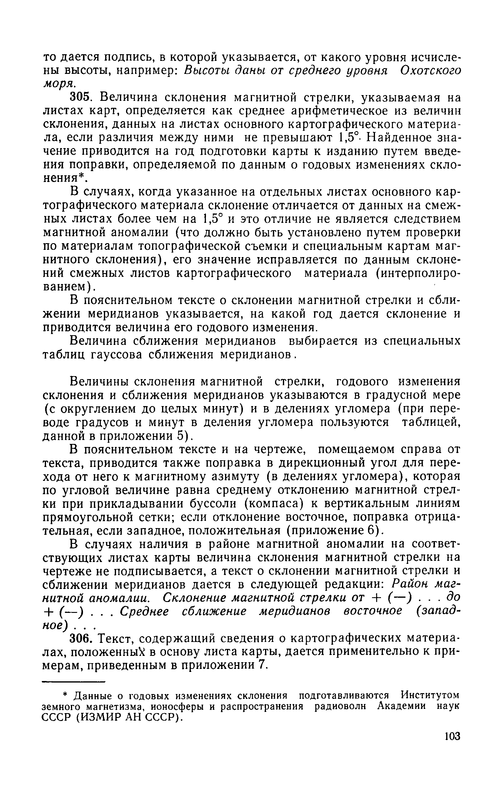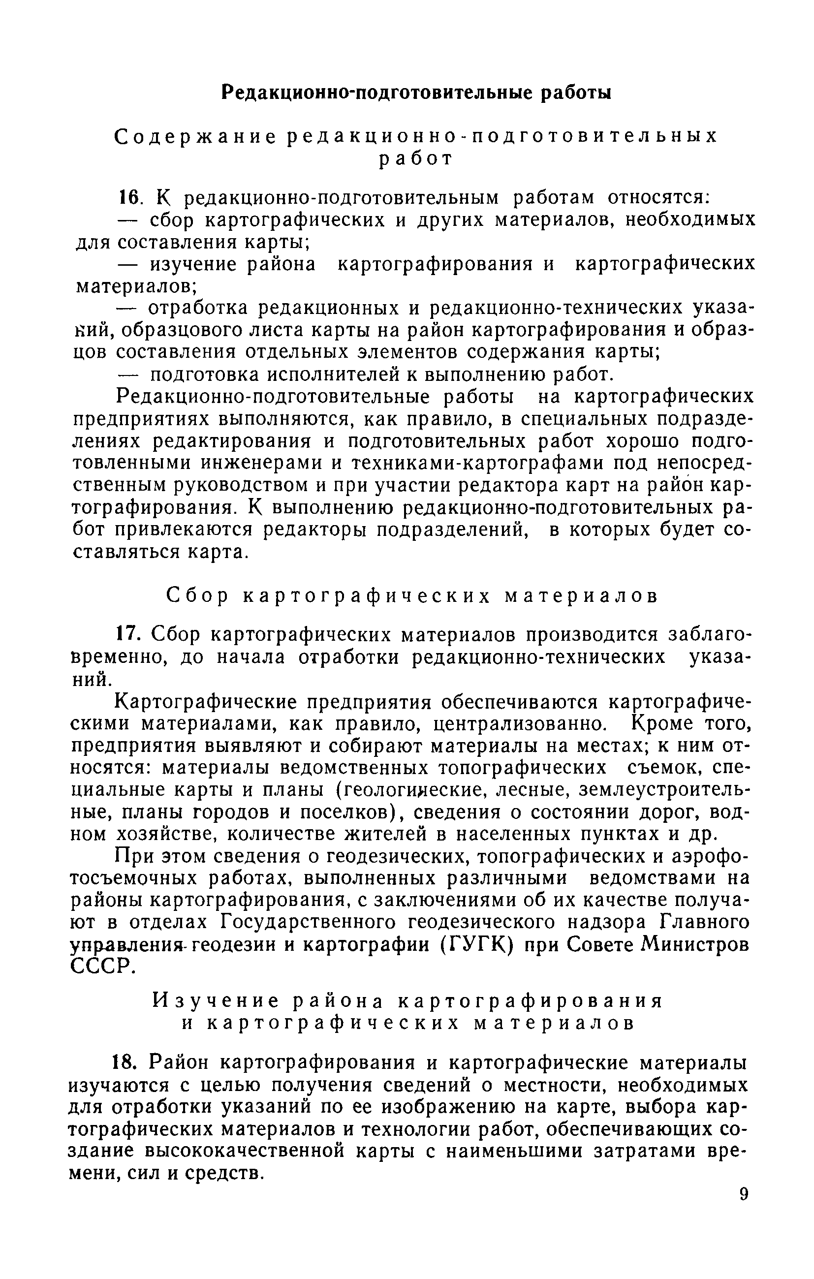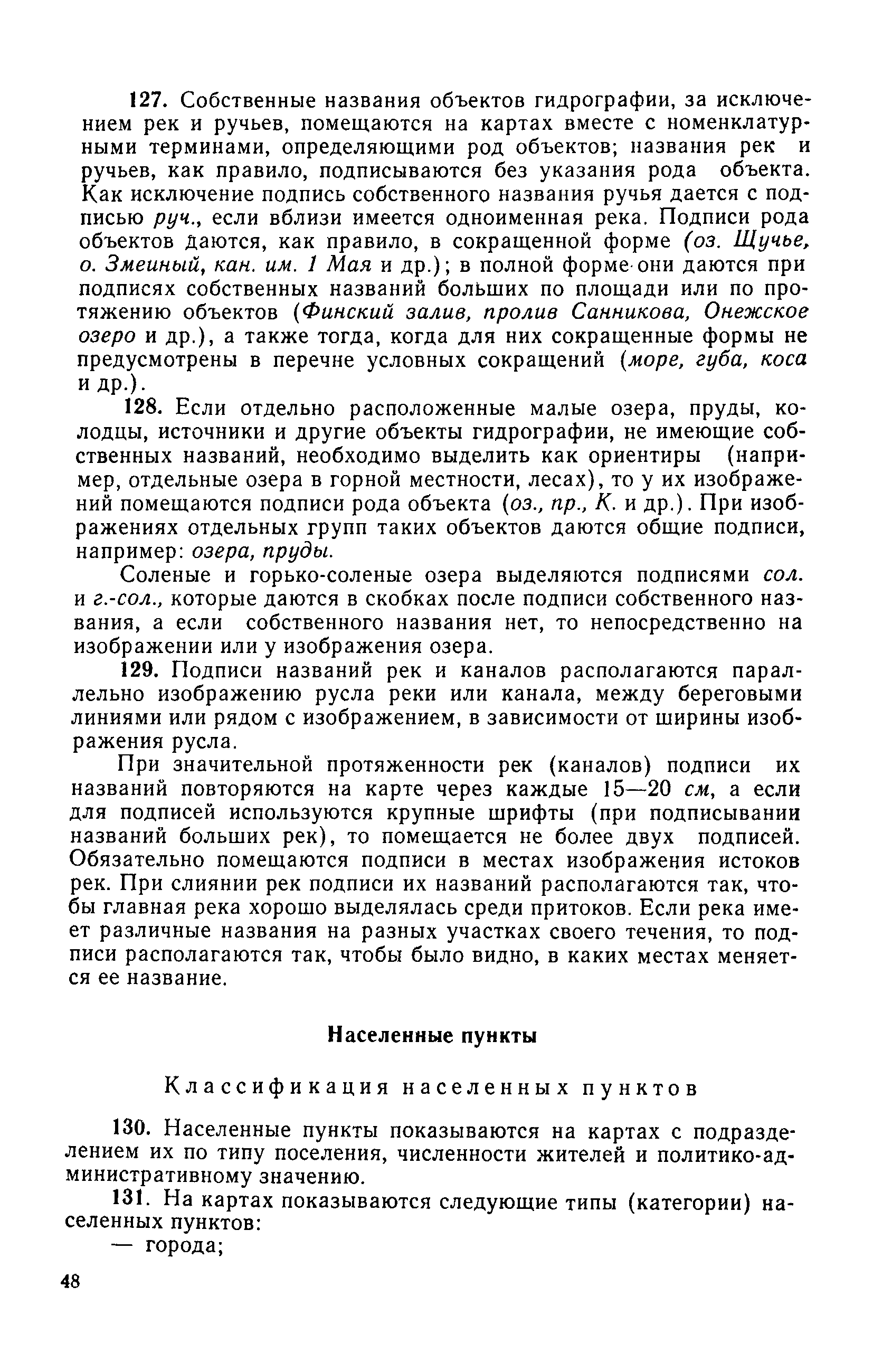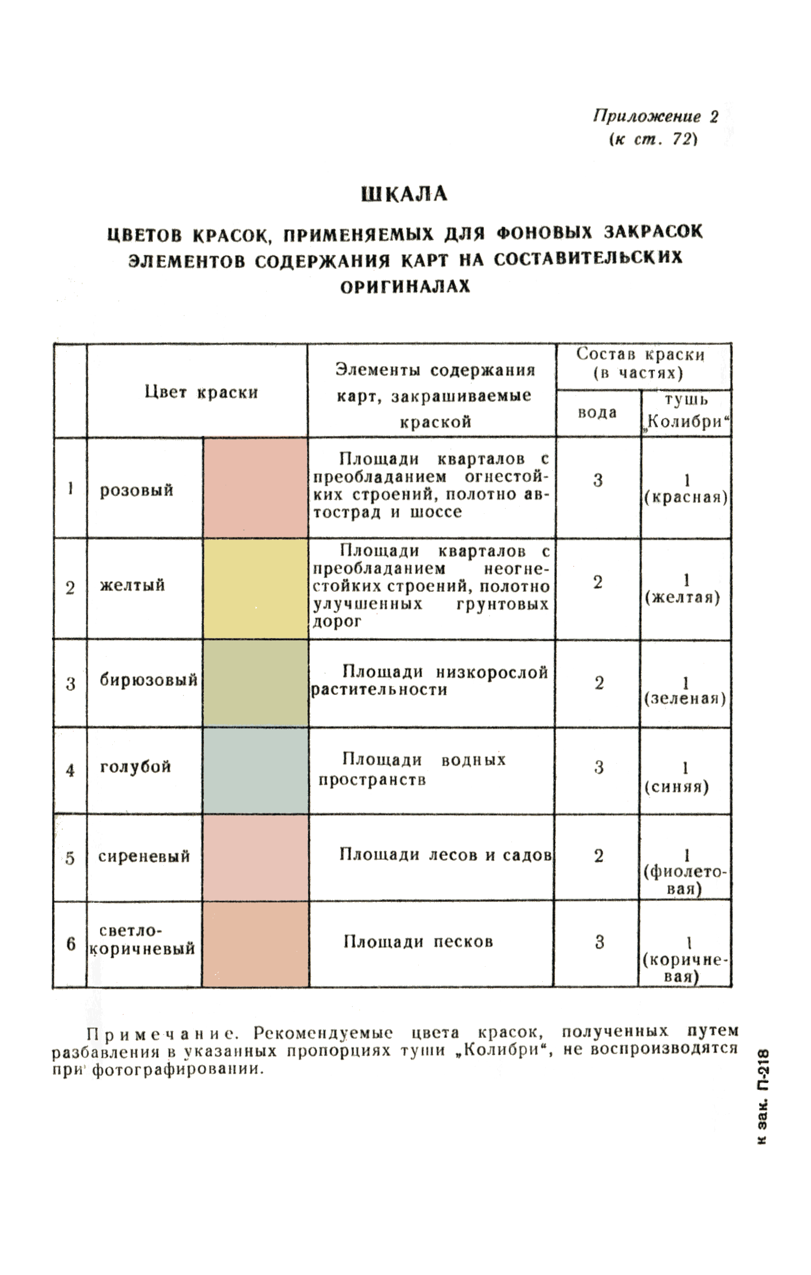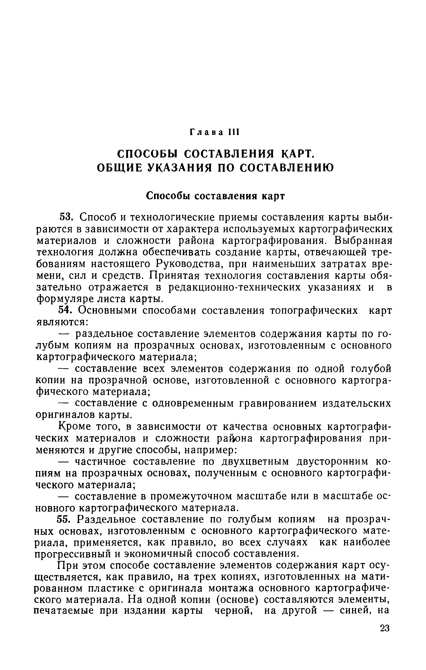 | Оглавление: | Глава 1. Общие положения Назначение топографических карт масштабов 1: 25000, 1: 50000, 1:100000 и основные требования к ним Проекция, разграфка и номенклатуры листов топографических карт Геодезическая основа карт. Точность карт Содержание и оформление карт Глава II. Редактирование карт Цель и содержание редакционных работ Редакционно-подготовительные работы Содержание редакционно-подготовительных работ Сбор картографических материалов Изучение района картографирования и картографических материалов Отработка редакционных и редакционно-технических указаний, образцового листа карты и образцов составления Подготовка исполнителей к выполнению работ Редактирование в процессе составления, подготовки к изданию и издания карт Проверка и приемка законченных видов работ и готовой продукции Использование материалов, поступивших в процессе создания карт Согласование составляемых карт с топографическими и морскими навигационными картами Глава III. Способы составления карт. Общие указания по составлению Способы составления карт Подготовка картографических материалов к использованию Подготовка картографической основы Общие указания по составлению карт Общие требования к подписям Установление написания названий Размещение подписей на картах Глава IV. Составление элементов содержания карт Математические элементы карт Опорные пункты Изображение ориентиров Гидрография и гидротехнические сооружения Прибрежная полоса морей; озера, водохранилища, острова Реки и каналы Рельеф дна морей, крупных озер, водохранилищ и рек. Отметки уровней воды Водопроводы, колодцы, источники Гидротехнические сооружения Подписи названий объектов гидрографии Населенные пункты Классификация населенных пунктов Изображение населенных пунктов Подписи названий населенных пунктов Промышленные, сельскохозяйственные и социально-культурные объекты Дорожная сеть и дорожные сооружения Железные дороги Шоссейные и грунтовые дороги, тропы Дорожные сооружения Подписи характеристик проходимости местности и направлений дорог Рельеф Высоты сечения рельефа, требования к изображению рельефа горизонталями Изображение основных типов рельефа Отметки высот Подписи названий объектов рельефа Растительный покров и грунты Древесная растительность Кустарниковая растительность Травянистая, полукустарниковая, кустарничковая, моховая и лишайниковая растительность Искусственные насаждения Болота, солончаки, грунты Границы и ограждения Сводка составительских оригиналов Оформление рамок листов карт Выписка названий для набора подписей Глава V. Подготовка карт к изданию Способы подготовки карт к изданию Последовательность выполнения работ Порядок гравирования штриховых элементов содержания карт Изготовление оригиналов фоновых закрасок (заливок и сеток) и макета заливки кварталов населенных пунктов и дорог Требования к оригинальным диапозитивам Сводка издательских оригиналов Комплектность материалов для издания карт Глава VI. Общие указания по обновлению карт Общие положения Проверка точности обновляемой карты Определение степени устарелости карты и отработка редакционных (редакционно-технических) указаний Технология обновления оригиналов карты и подготовки ее к изданию Приложения: 1. Разграфка, номенклатуры и шифры листов топограф