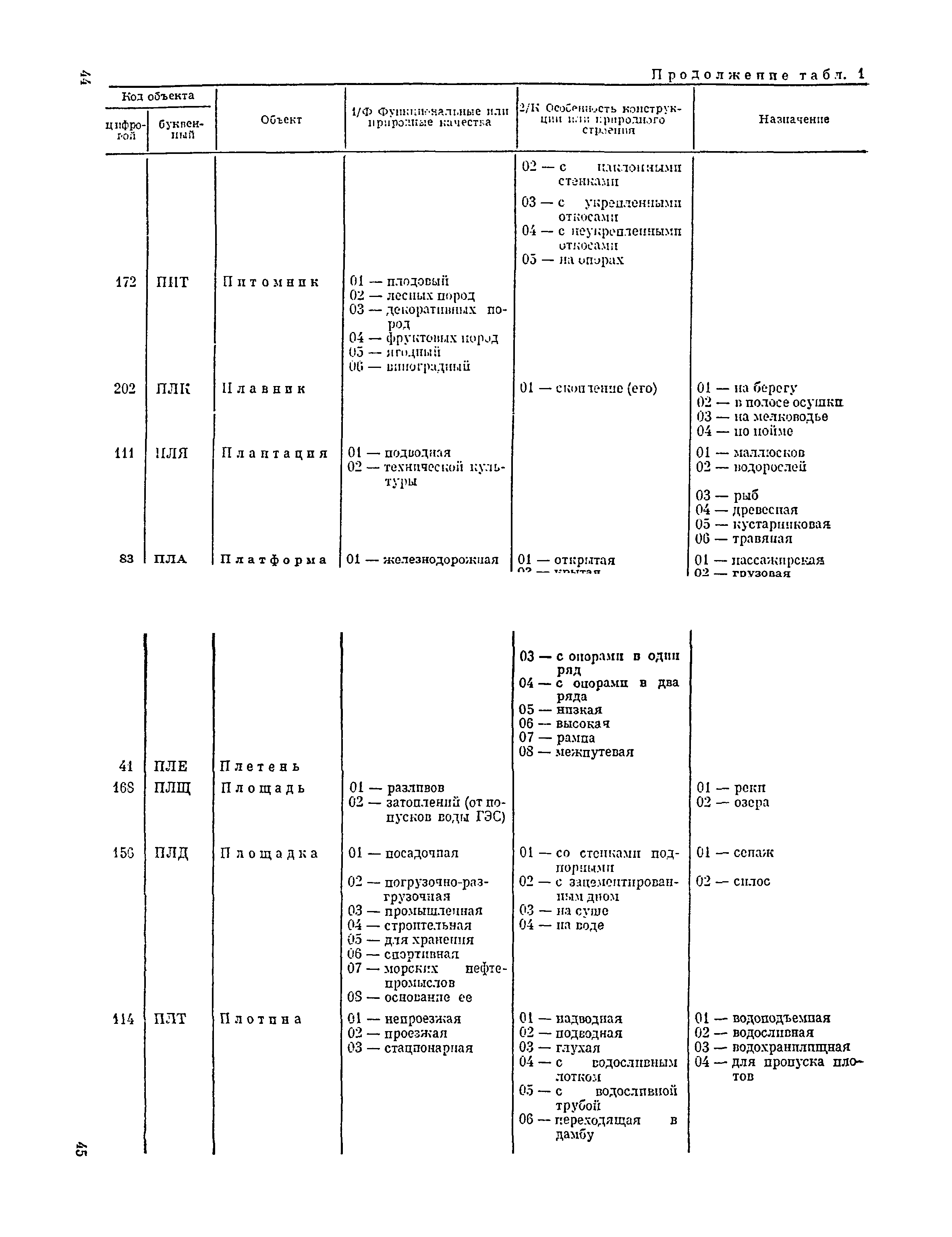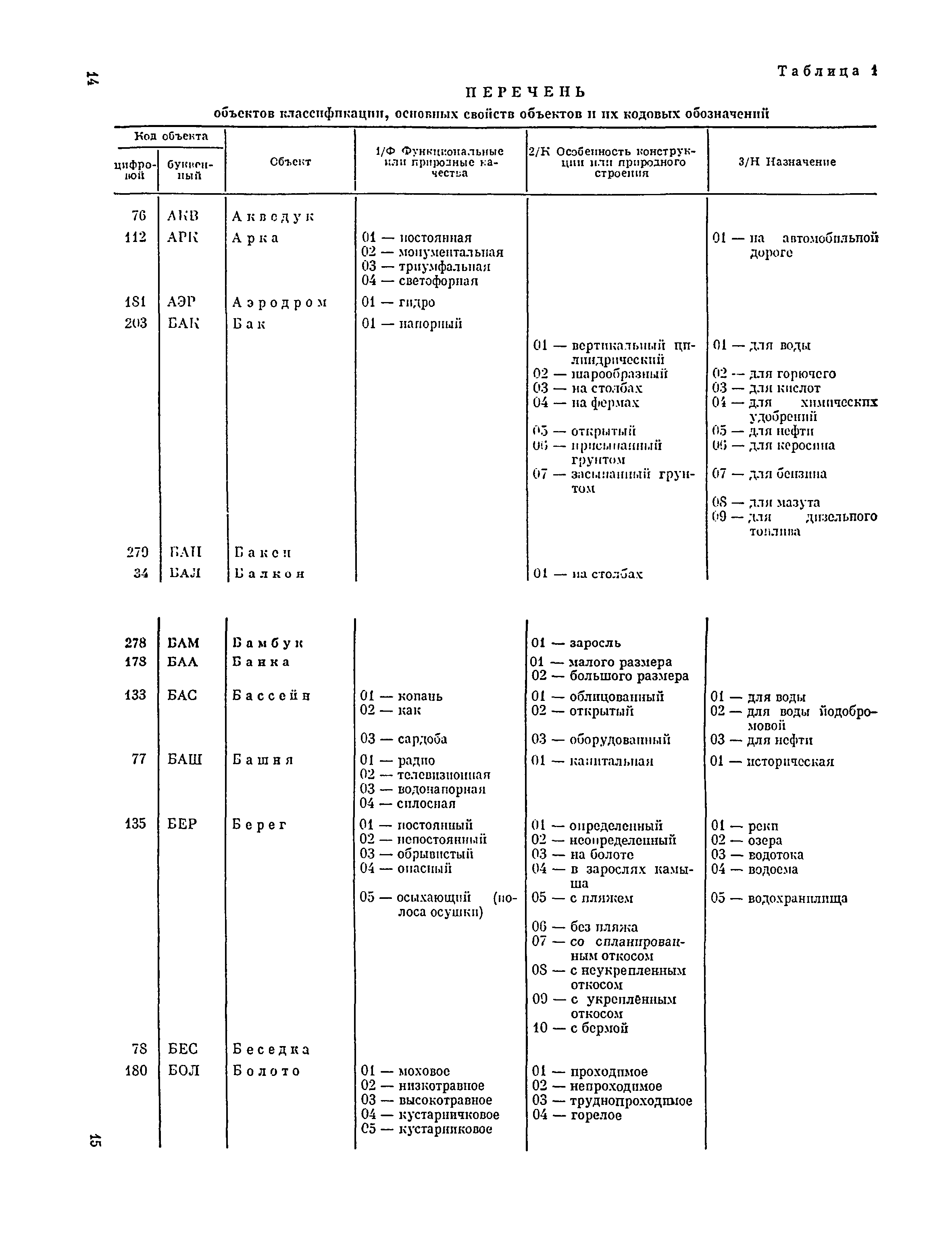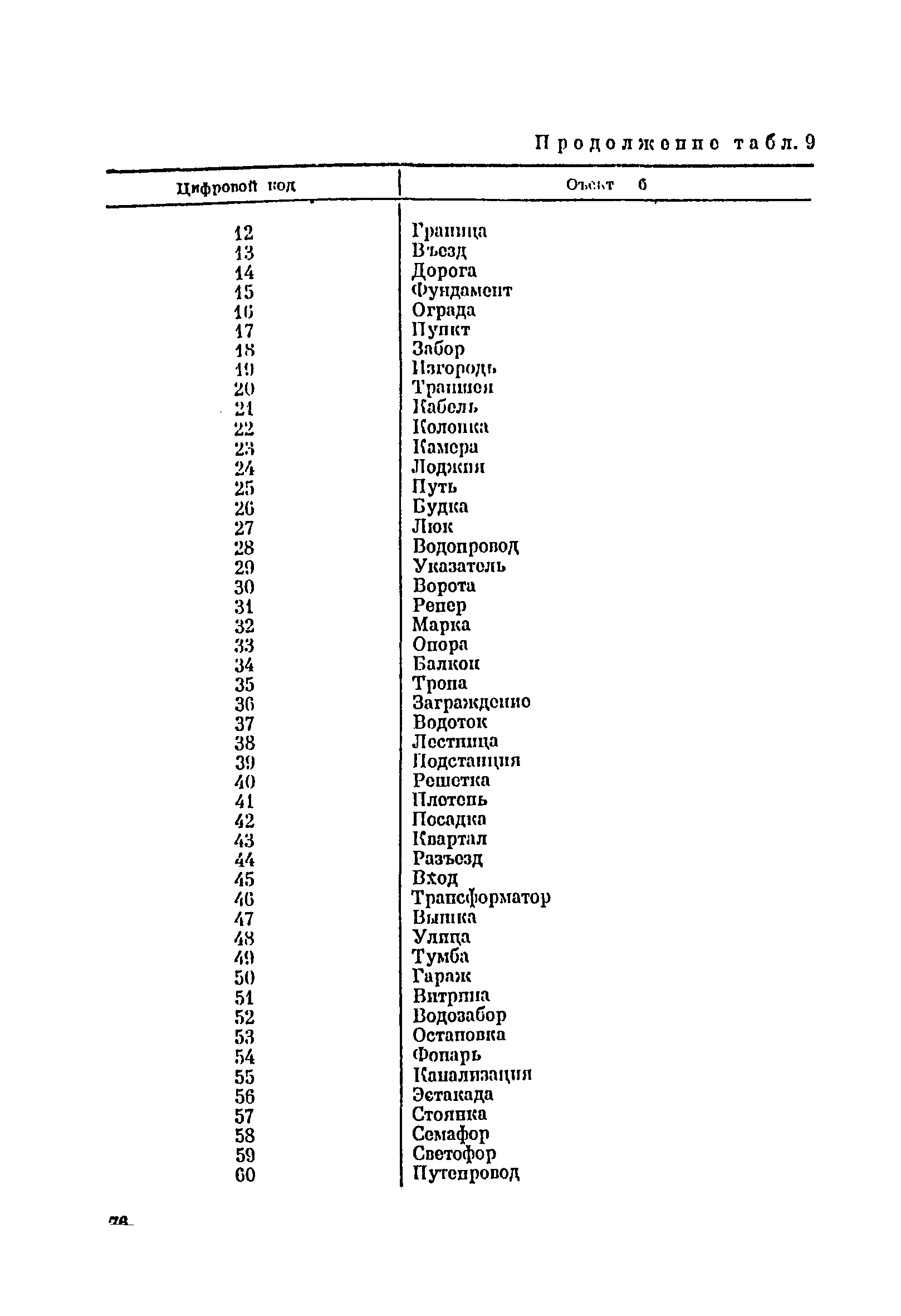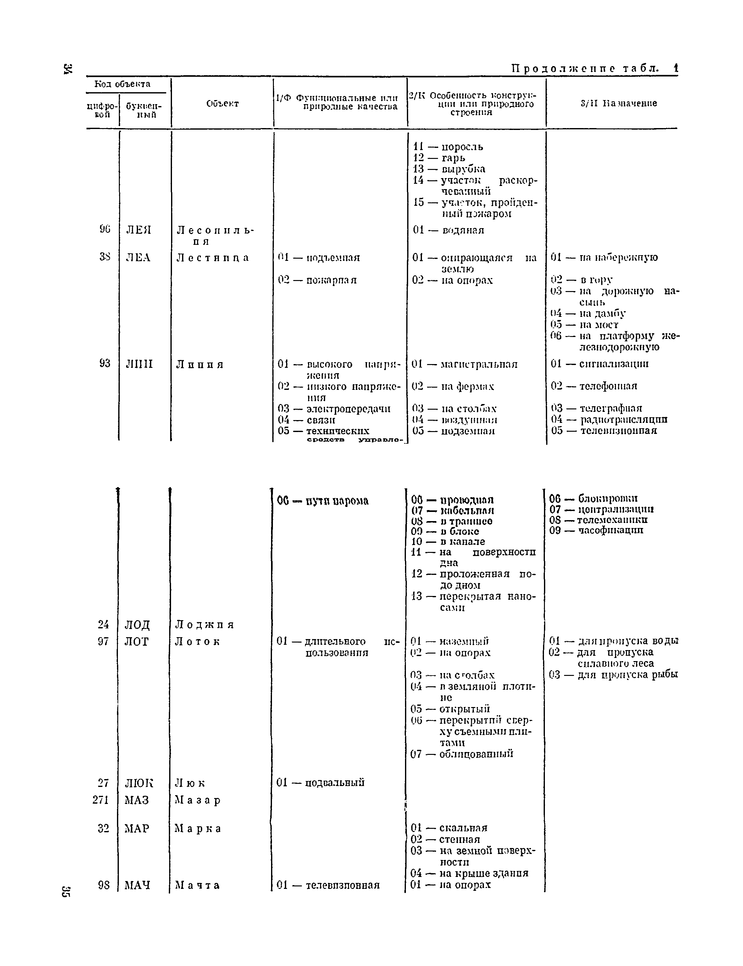 Классификатор топографической информации. (Информация, отображаемая на картах и планах масштабов 1:500, 1:1000, 1:2000, 1:5000, 1:10000)| Статус: | утратил силу | | Название рус.: | Классификатор топографической информации. (Информация, отображаемая на картах и планах масштабов 1:500, 1:1000, 1:2000, 1:5000, 1:10000) | | Дата добавления в базу: | 01.09.2013 | | Дата актуализации: | 01.01.2021 | | Дата окончания срока действия: | 01.01.2018 | | Область применения: | Классификатор топографической информации предназначен для использования в автоматизированных системах топографо-геодезического назначения и служит для представления топографической информации об объектах местности в формализованном виде для последующей обработки ее с помощью ЭВМ при создании ЦММ банков данных, при автоматизированном картографировании и других процессах автоматизированной обработки информации. | | Оглавление: | 1. Введение 2. Перечень объектов классификации, основных свойств объектов и их кодовых обозначений Таблица 1 3. Перечень значений состояний объектов и их кодовых обозначений Таблица 2 4. Перечень значений материалов объектов и их кодовых обозначений Таблица 3 5. Перечень геометрических свойств объектов, элементов объектов, для которых определяются значения свойств, и их кодовых обозначений Таблица 4 6. Перечень физико-технических свойств объектов, элементов объектов, для которых определяются значения свойств, и их кодовых обозначений Таблица 5 7. Перечень информации об объекте, связанных с объектами явлений, для которых определяются значения информации и их кодовых обозначений Таблица 6 8. Перечень точек объектов, для которых определяются значения информации, и их кодовых обозначений Таблица 7 9. Перечень объектов-синоптиков, не включенных в Классификатор Таблица 8 10. Перечень объектов и их цифровых кодов Таблица 9 11. Перечень объектов и их буквенных кодов Таблица 10 | | Разработан: | ЦНИИГАиК