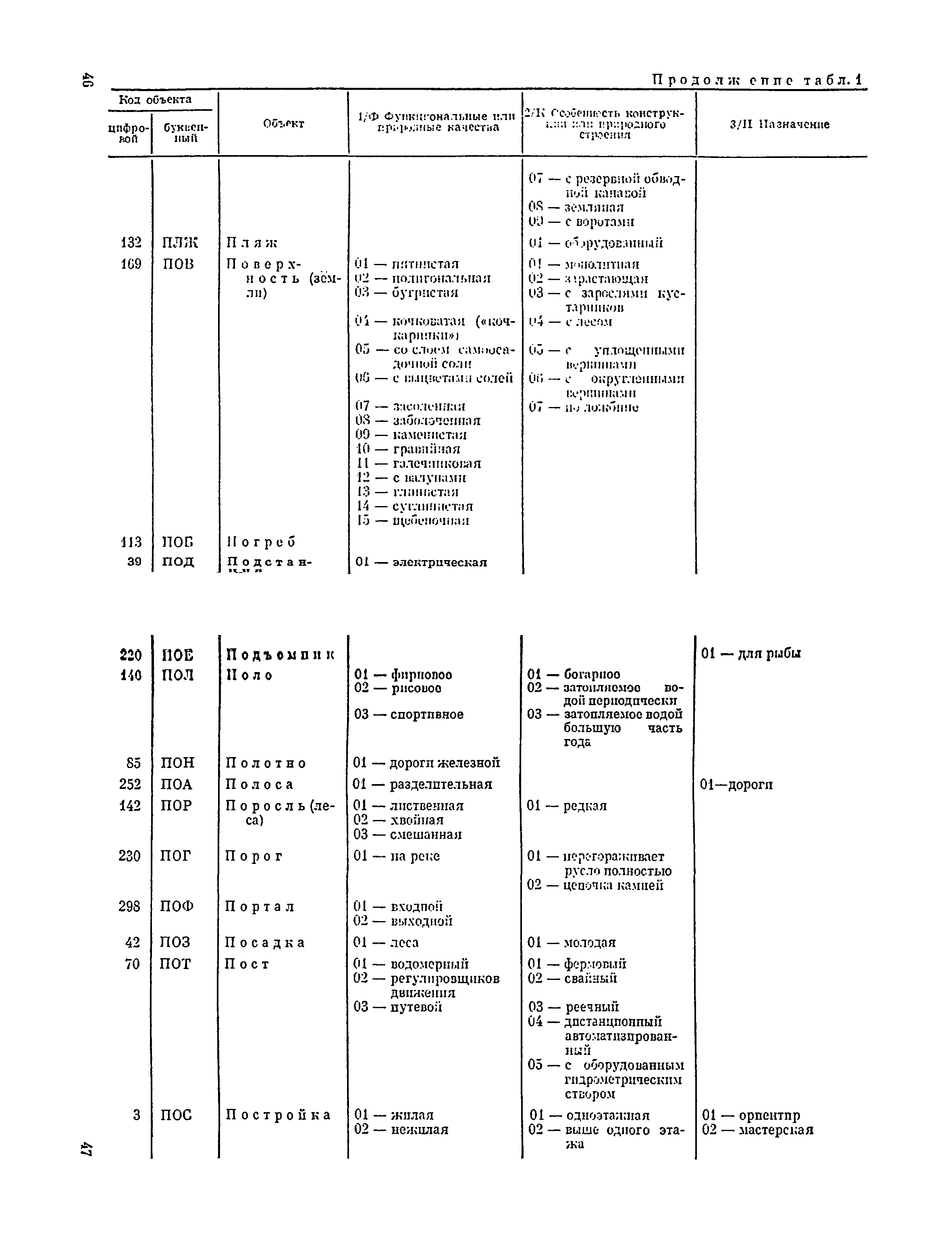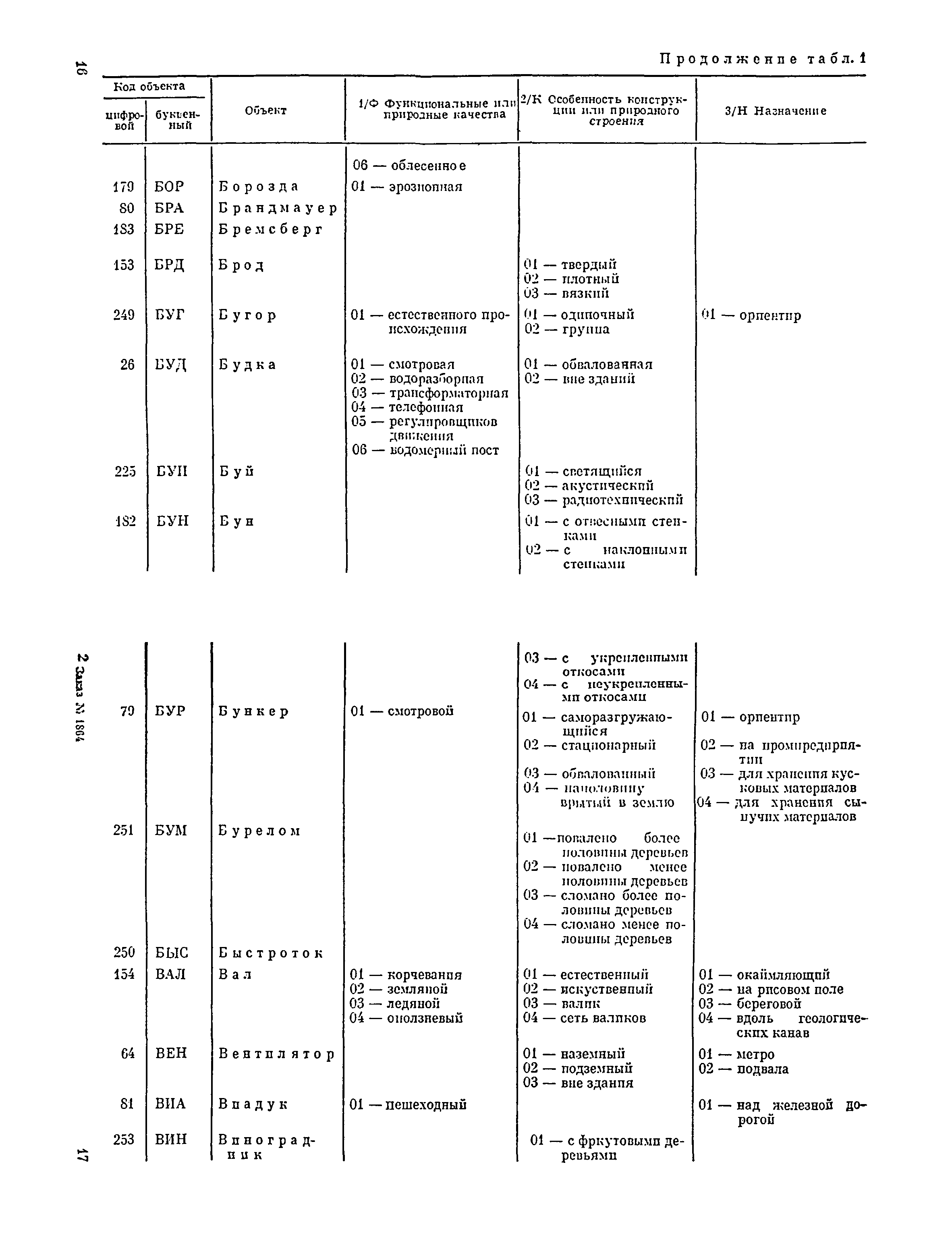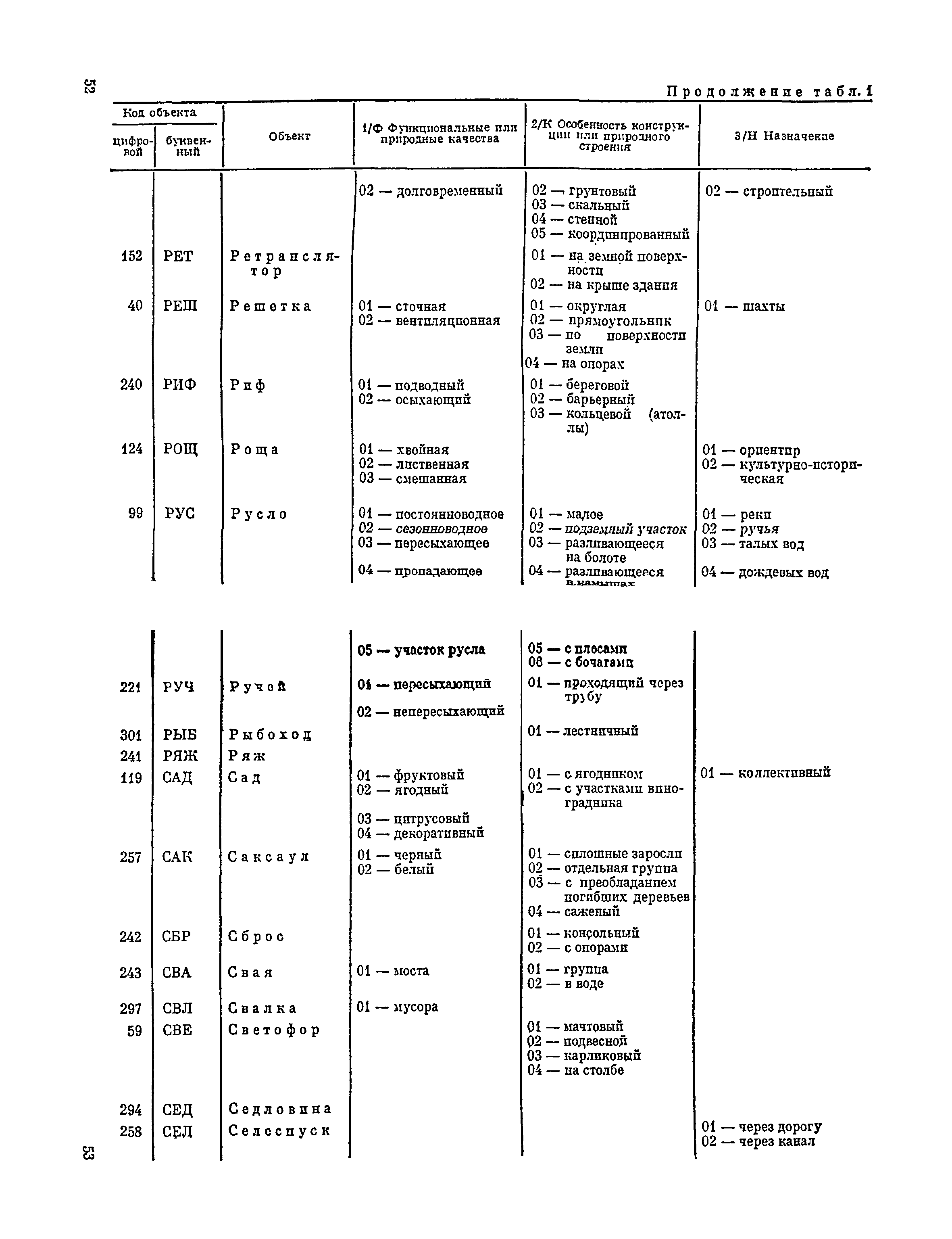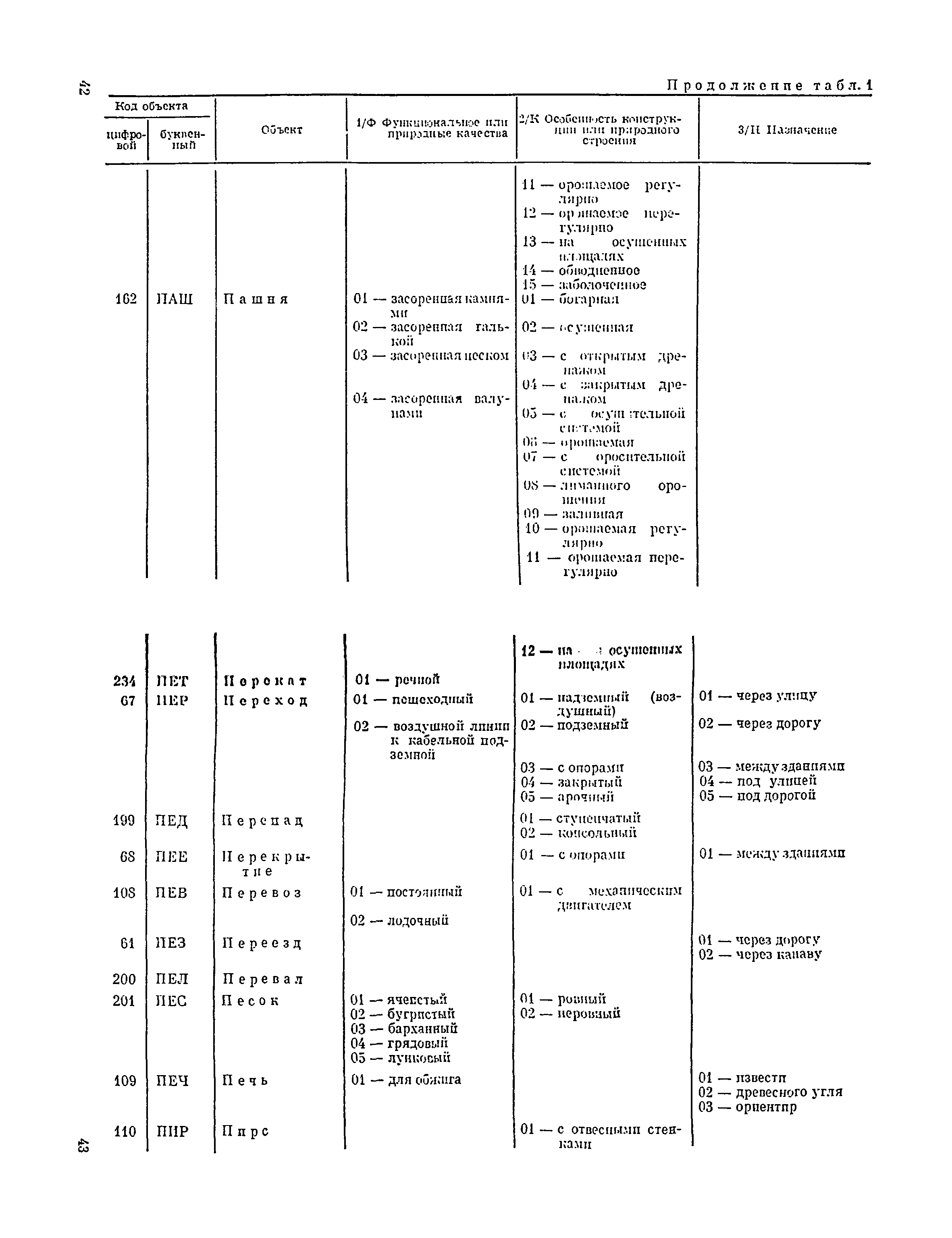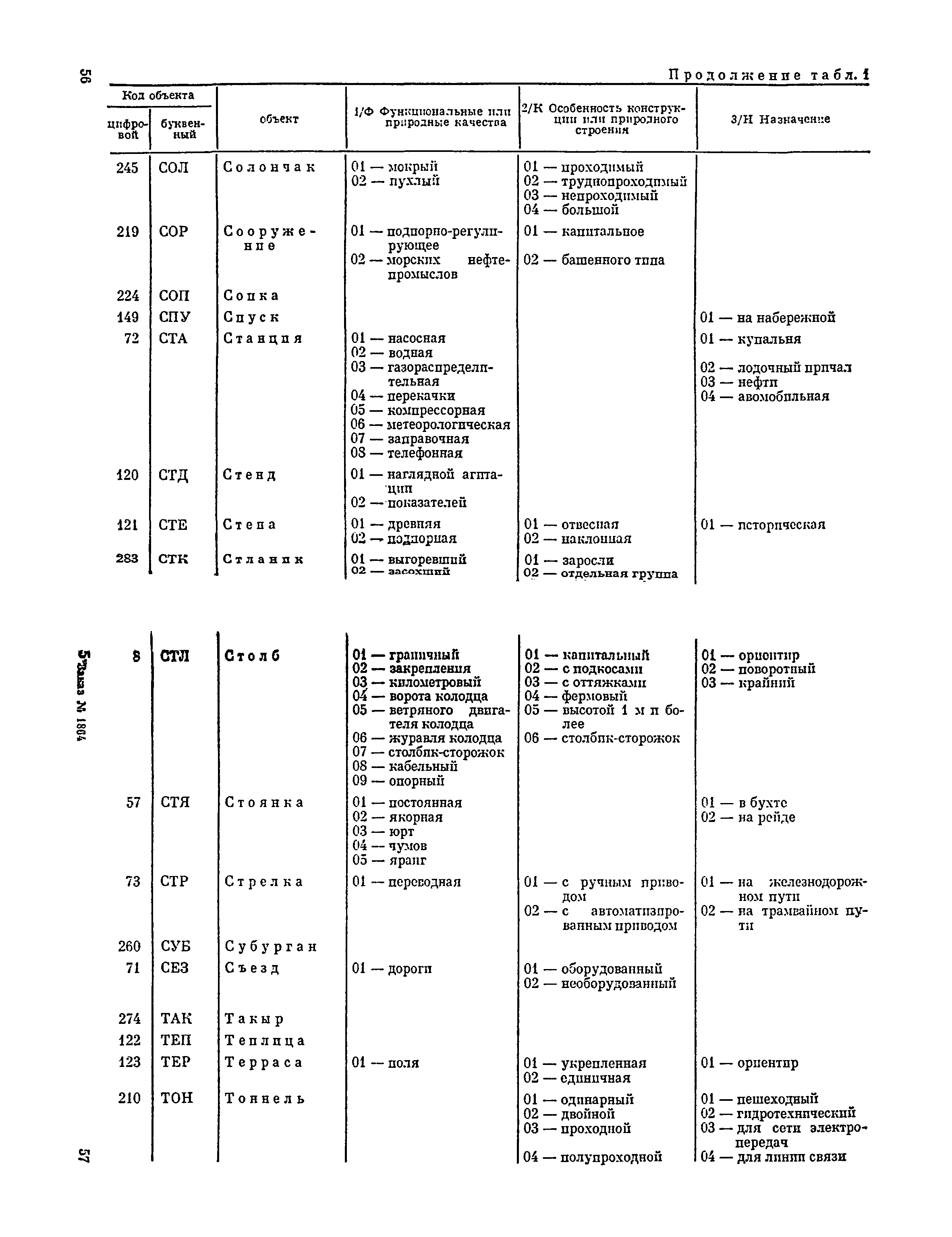 Классификатор топографической информации. (Информация, отображаемая на картах и планах масштабов 1:500, 1:1000, 1:2000, 1:5000, 1:10000)| Статус: | утратил силу | | Название рус.: | Классификатор топографической информации. (Информация, отображаемая на картах и планах масштабов 1:500, 1:1000, 1:2000, 1:5000, 1:10000) | | Дата добавления в базу: | 01.09.2013 | | Дата актуализации: | 01.01.2021 | | Дата окончания срока действия: | 01.01.2018 | | Область применения: | Классификатор топографической информации предназначен для использования в автоматизированных системах топографо-геодезического назначения и служит для представления топографической информации об объектах местности в формализованном виде для последующей обработки ее с помощью ЭВМ при создании ЦММ банков данных, при автоматизированном картографировании и других процессах автоматизированной обработки информации. | | Оглавление: | 1. Введение 2. Перечень объектов классификации, основных свойств объектов и их кодовых обозначений Таблица 1 3. Перечень значений состояний объектов и их кодовых обозначений Таблица 2 4. Перечень значений материалов объектов и их кодовых обозначений Таблица 3 5. Перечень геометрических свойств объектов, элементов объектов, для которых определяются значения свойств, и их кодовых обозначений Таблица 4 6. Перечень физико-технических свойств объектов, элементов объектов, для которых определяются значения свойств, и их кодовых обозначений Таблица 5 7. Перечень информации об объекте, связанных с объектами явлений, для которых определяются значения информации и их кодовых обозначений Таблица 6 8. Перечень точек объектов, для которых определяются значения информации, и их кодовых обозначений Таблица 7 9. Перечень объектов-синоптиков, не включенных в Классификатор Таблица 8 10. Перечень объектов и их цифровых кодов Таблица 9 11. Перечень объектов и их буквенных кодов Таблица 10 | | Разработан: | ЦНИИГАиК