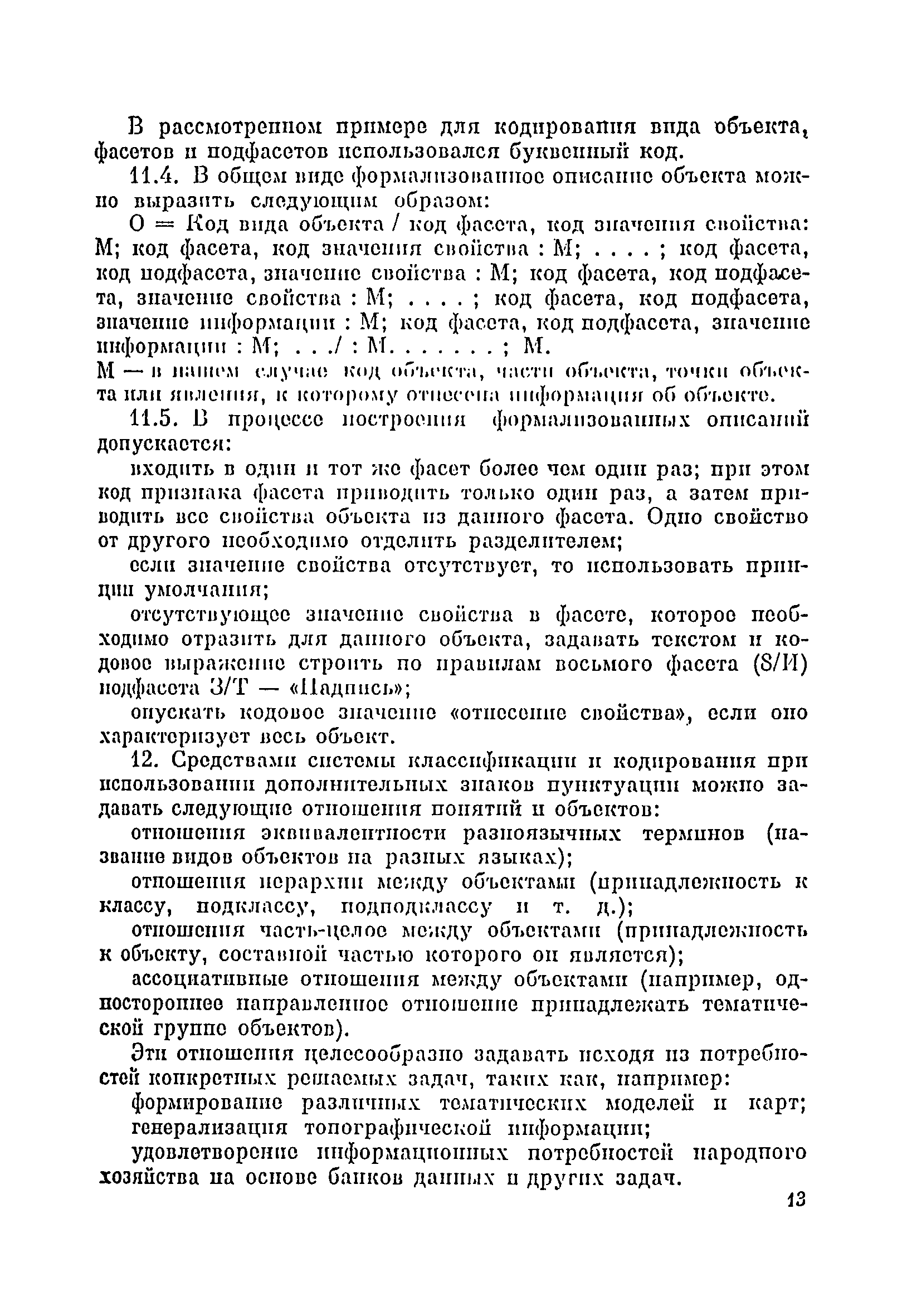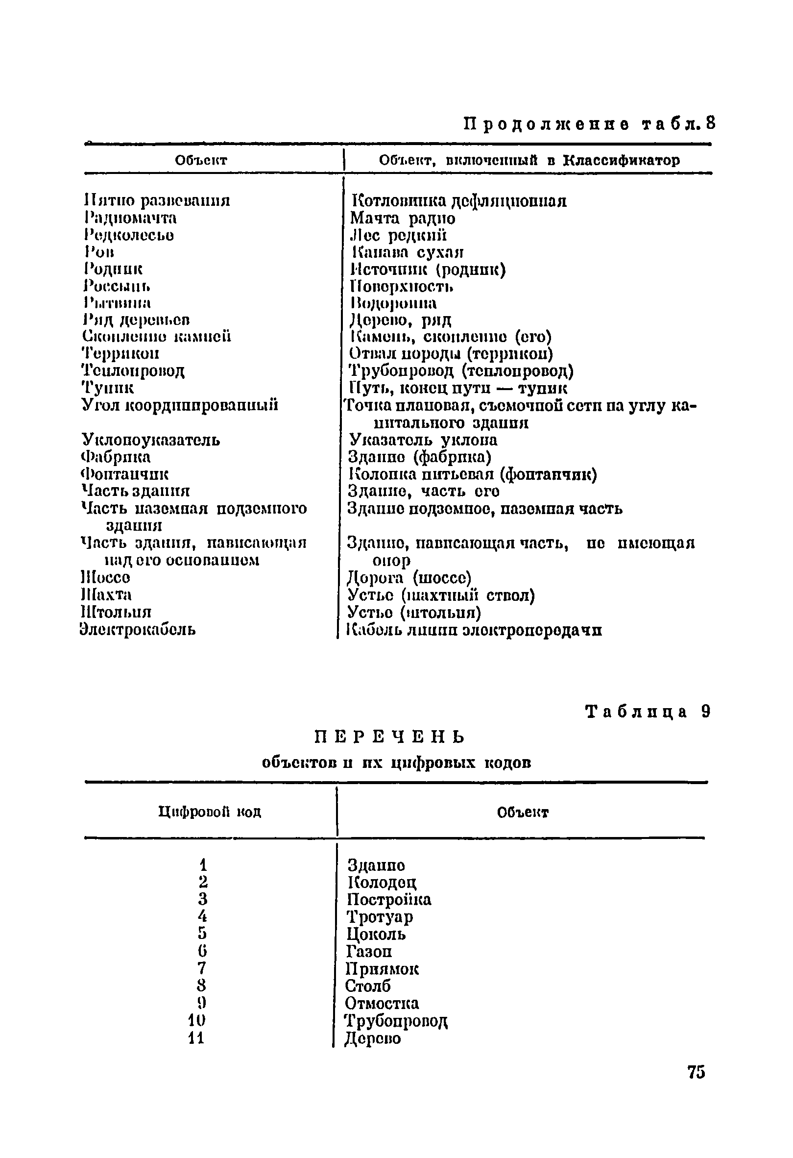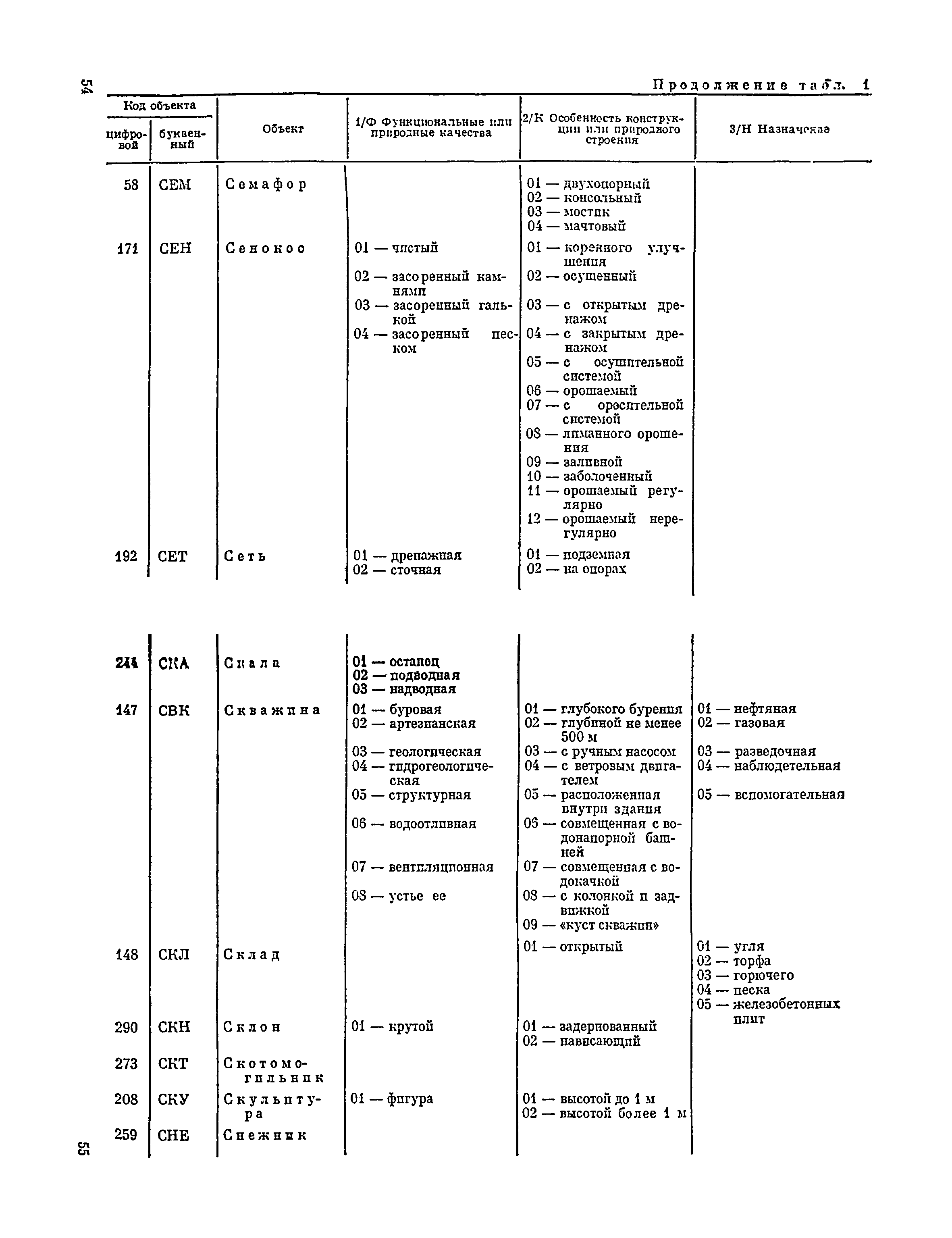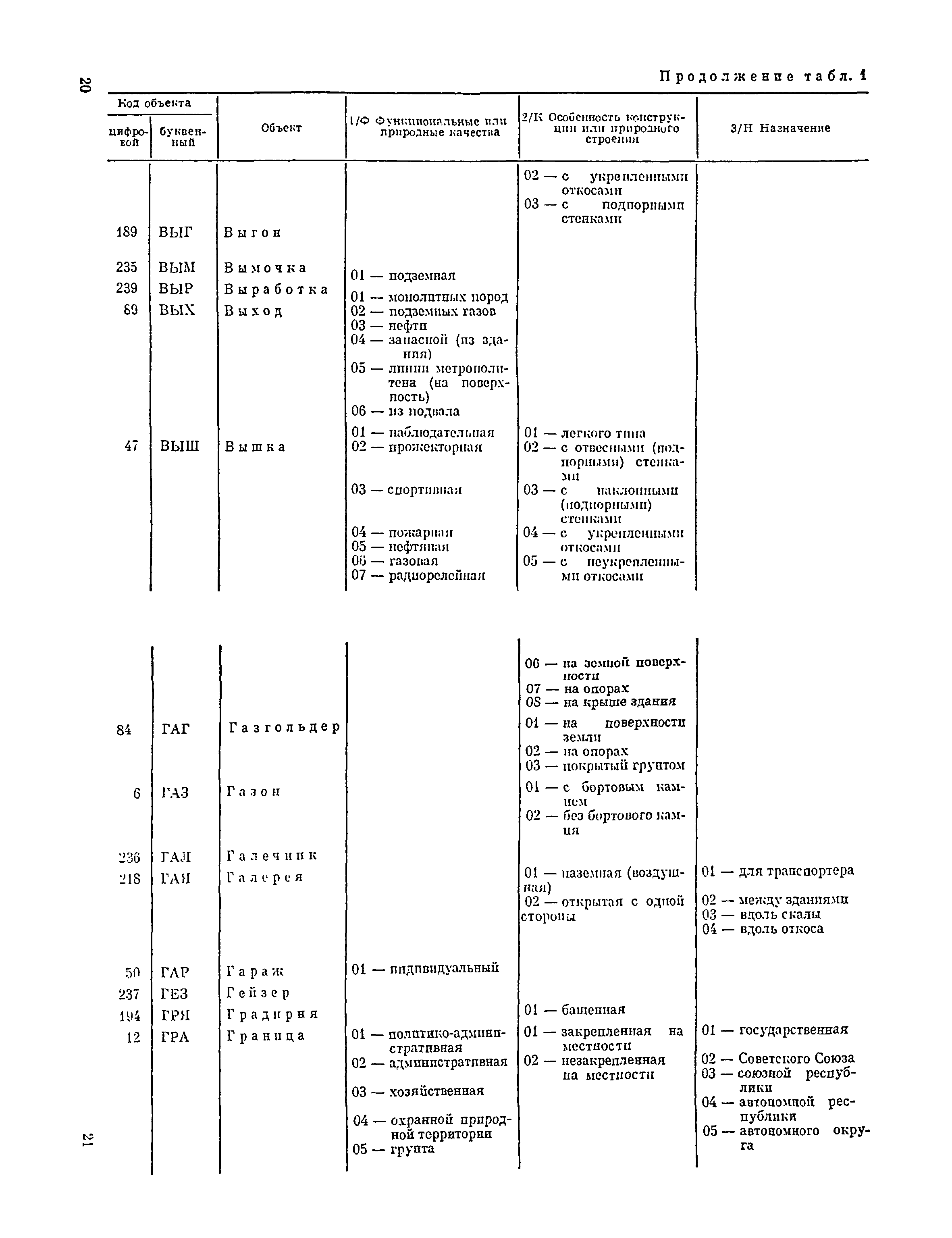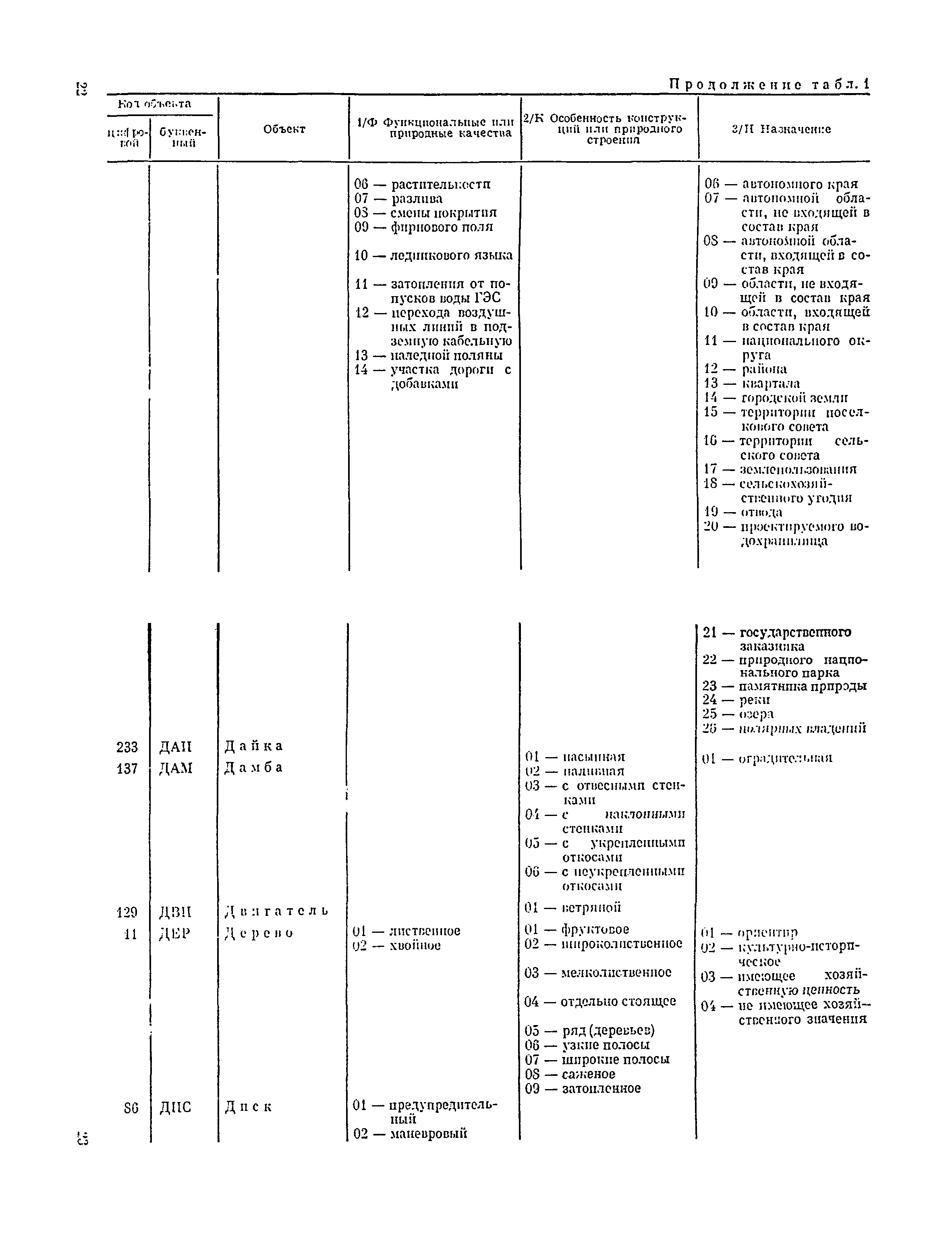 Классификатор топографической информации. (Информация, отображаемая на картах и планах масштабов 1:500, 1:1000, 1:2000, 1:5000, 1:10000)| Статус: | утратил силу | | Название рус.: | Классификатор топографической информации. (Информация, отображаемая на картах и планах масштабов 1:500, 1:1000, 1:2000, 1:5000, 1:10000) | | Дата добавления в базу: | 01.09.2013 | | Дата актуализации: | 01.01.2021 | | Дата окончания срока действия: | 01.01.2018 | | Область применения: | Классификатор топографической информации предназначен для использования в автоматизированных системах топографо-геодезического назначения и служит для представления топографической информации об объектах местности в формализованном виде для последующей обработки ее с помощью ЭВМ при создании ЦММ банков данных, при автоматизированном картографировании и других процессах автоматизированной обработки информации. | | Оглавление: | 1. Введение 2. Перечень объектов классификации, основных свойств объектов и их кодовых обозначений Таблица 1 3. Перечень значений состояний объектов и их кодовых обозначений Таблица 2 4. Перечень значений материалов объектов и их кодовых обозначений Таблица 3 5. Перечень геометрических свойств объектов, элементов объектов, для которых определяются значения свойств, и их кодовых обозначений Таблица 4 6. Перечень физико-технических свойств объектов, элементов объектов, для которых определяются значения свойств, и их кодовых обозначений Таблица 5 7. Перечень информации об объекте, связанных с объектами явлений, для которых определяются значения информации и их кодовых обозначений Таблица 6 8. Перечень точек объектов, для которых определяются значения информации, и их кодовых обозначений Таблица 7 9. Перечень объектов-синоптиков, не включенных в Классификатор Таблица 8 10. Перечень объектов и их цифровых кодов Таблица 9 11. Перечень объектов и их буквенных кодов Таблица 10 | | Разработан: | ЦНИИГАиК