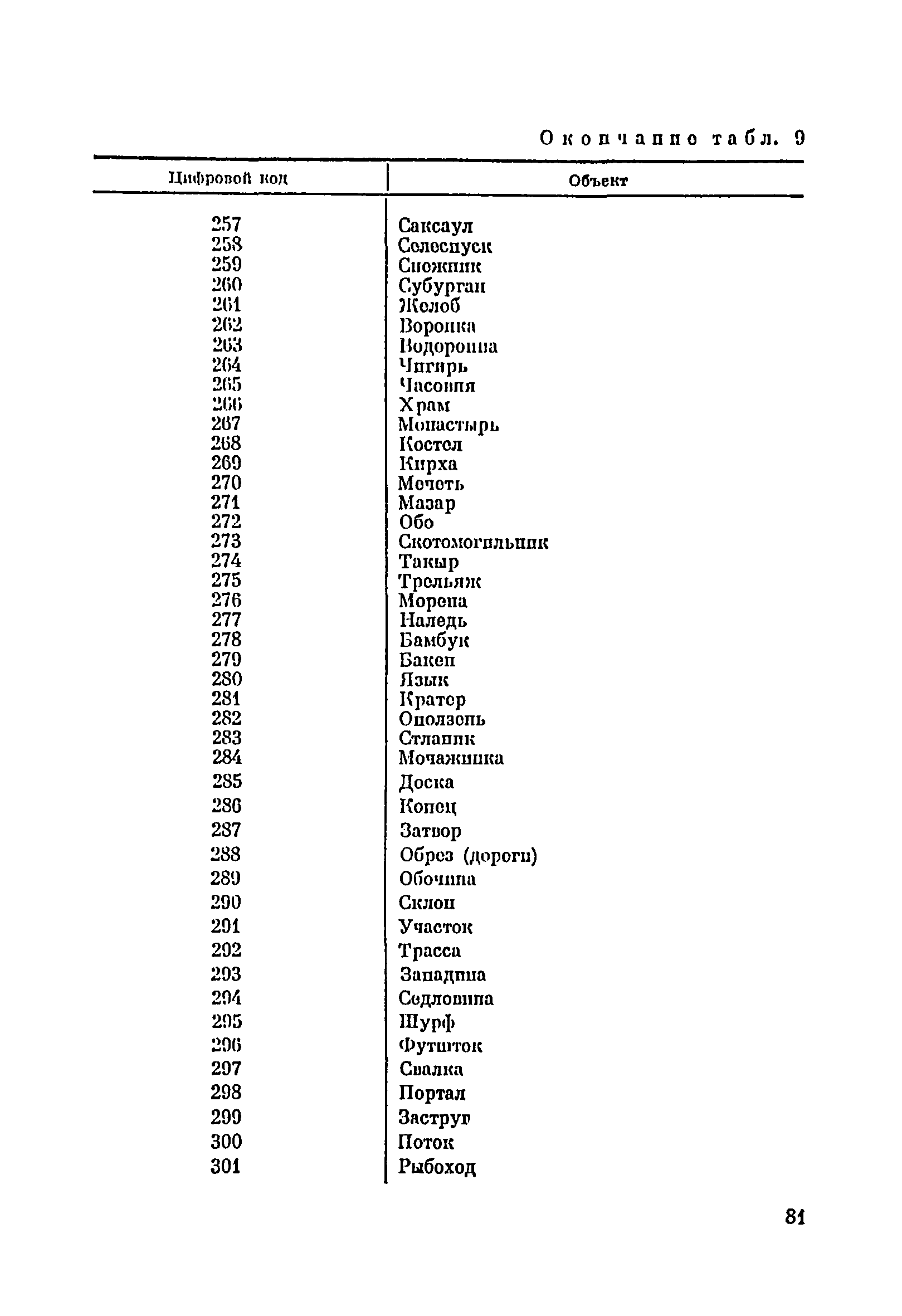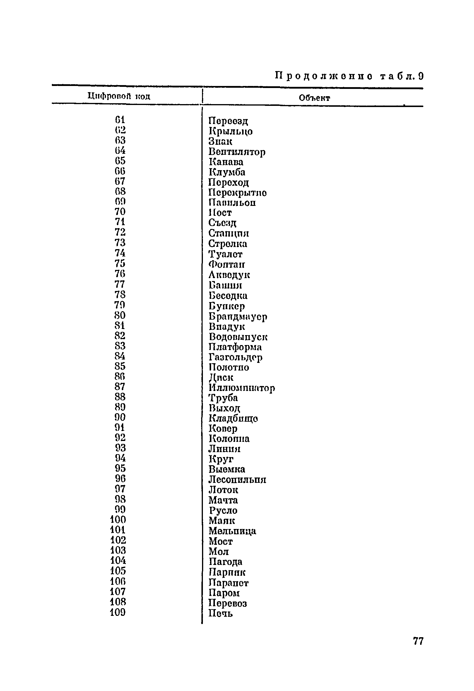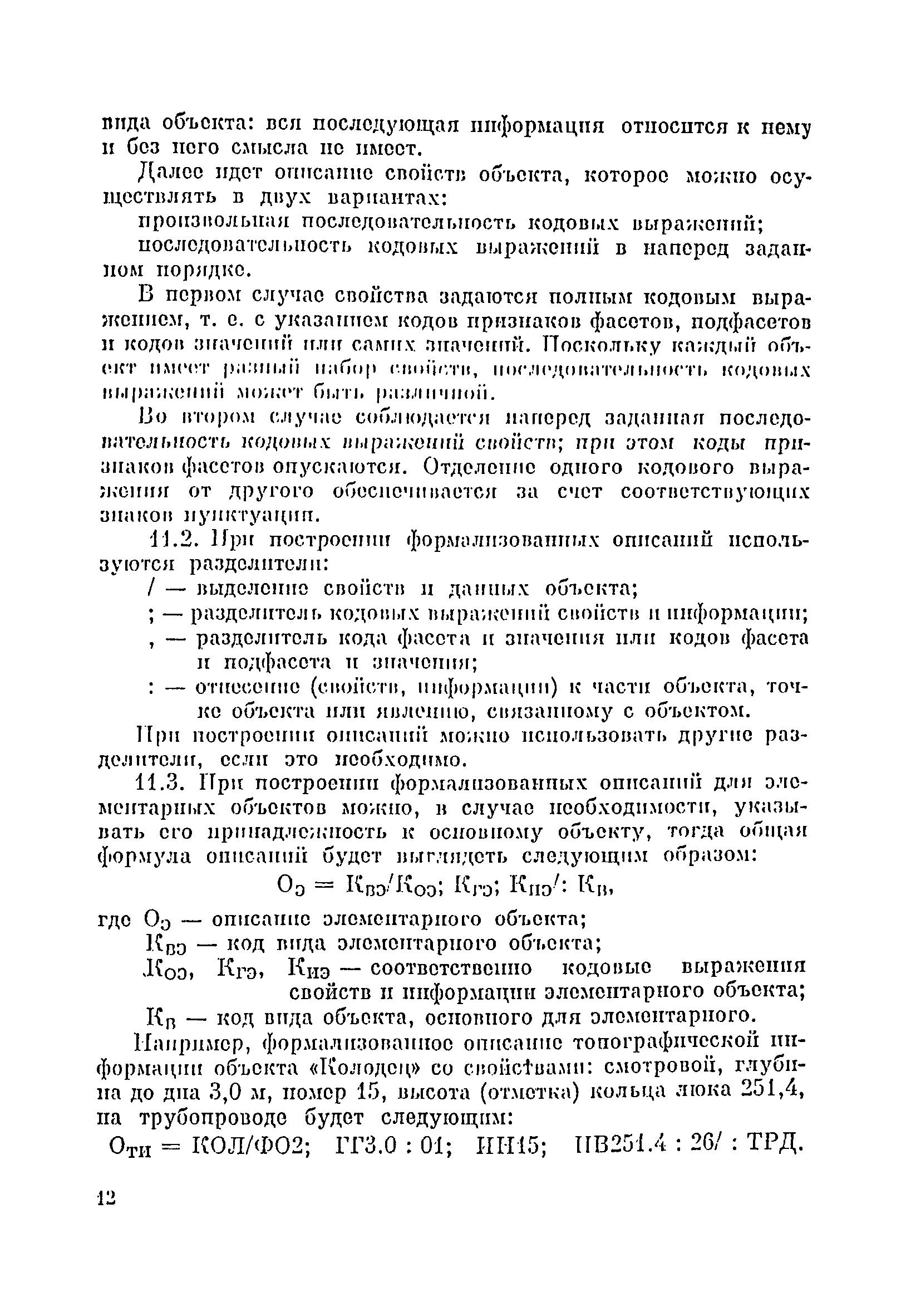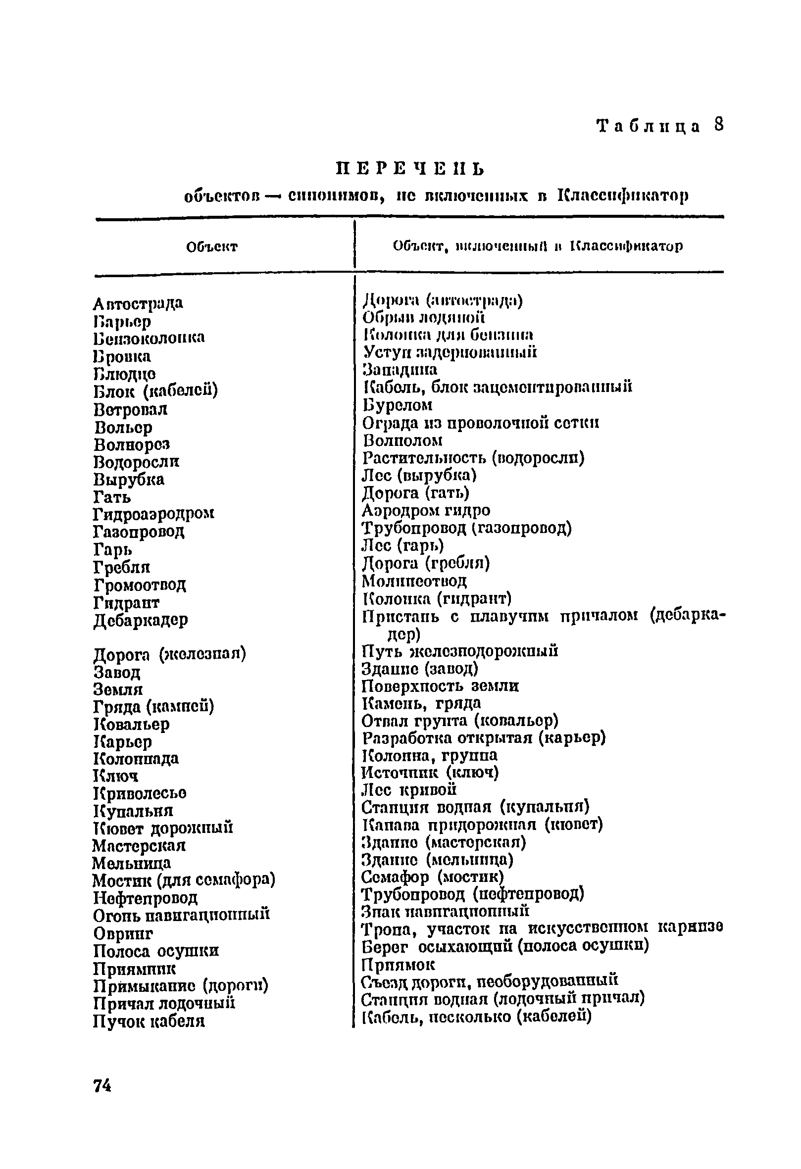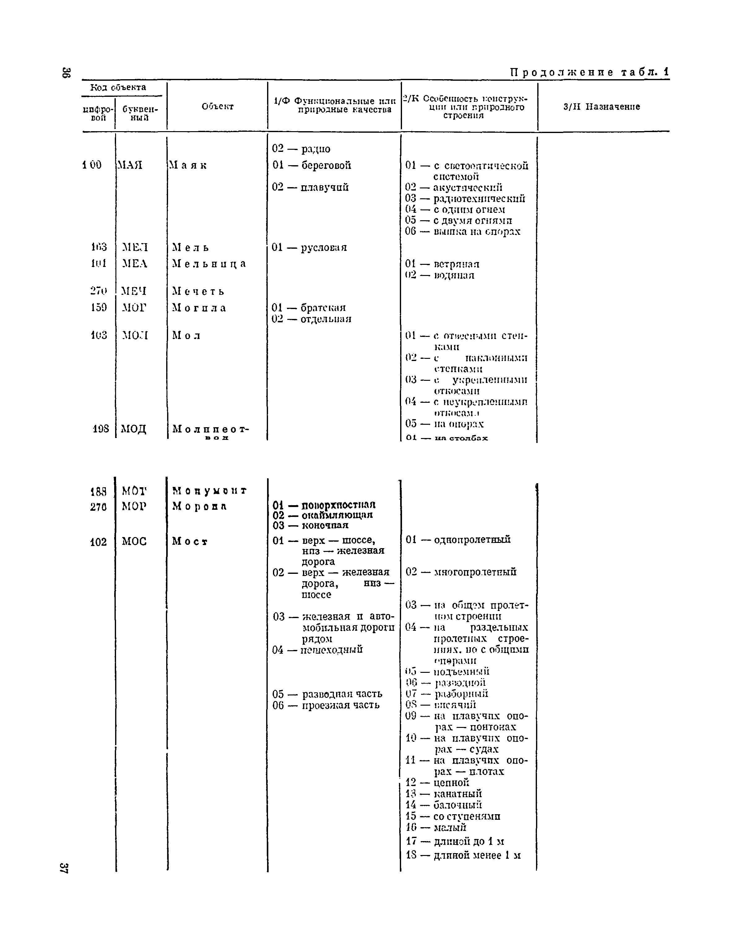 Классификатор топографической информации. (Информация, отображаемая на картах и планах масштабов 1:500, 1:1000, 1:2000, 1:5000, 1:10000)| Статус: | утратил силу | | Название рус.: | Классификатор топографической информации. (Информация, отображаемая на картах и планах масштабов 1:500, 1:1000, 1:2000, 1:5000, 1:10000) | | Дата добавления в базу: | 01.09.2013 | | Дата актуализации: | 01.01.2021 | | Дата окончания срока действия: | 01.01.2018 | | Область применения: | Классификатор топографической информации предназначен для использования в автоматизированных системах топографо-геодезического назначения и служит для представления топографической информации об объектах местности в формализованном виде для последующей обработки ее с помощью ЭВМ при создании ЦММ банков данных, при автоматизированном картографировании и других процессах автоматизированной обработки информации. | | Оглавление: | 1. Введение 2. Перечень объектов классификации, основных свойств объектов и их кодовых обозначений Таблица 1 3. Перечень значений состояний объектов и их кодовых обозначений Таблица 2 4. Перечень значений материалов объектов и их кодовых обозначений Таблица 3 5. Перечень геометрических свойств объектов, элементов объектов, для которых определяются значения свойств, и их кодовых обозначений Таблица 4 6. Перечень физико-технических свойств объектов, элементов объектов, для которых определяются значения свойств, и их кодовых обозначений Таблица 5 7. Перечень информации об объекте, связанных с объектами явлений, для которых определяются значения информации и их кодовых обозначений Таблица 6 8. Перечень точек объектов, для которых определяются значения информации, и их кодовых обозначений Таблица 7 9. Перечень объектов-синоптиков, не включенных в Классификатор Таблица 8 10. Перечень объектов и их цифровых кодов Таблица 9 11. Перечень объектов и их буквенных кодов Таблица 10 | | Разработан: | ЦНИИГАиК