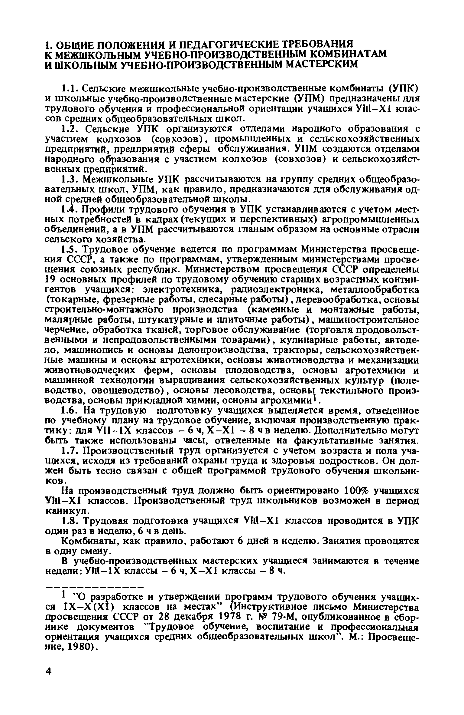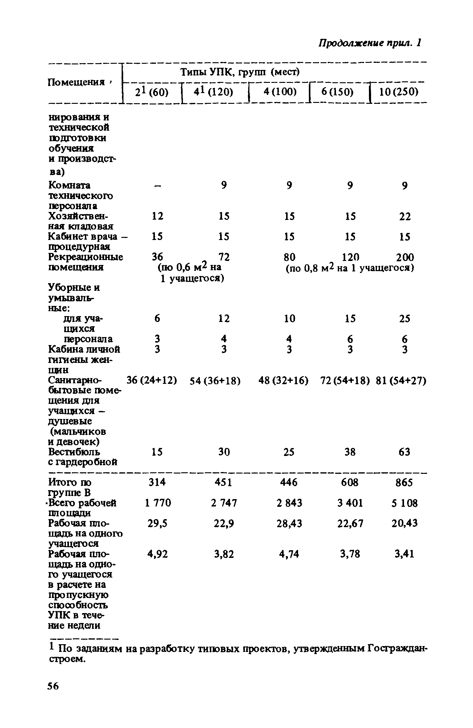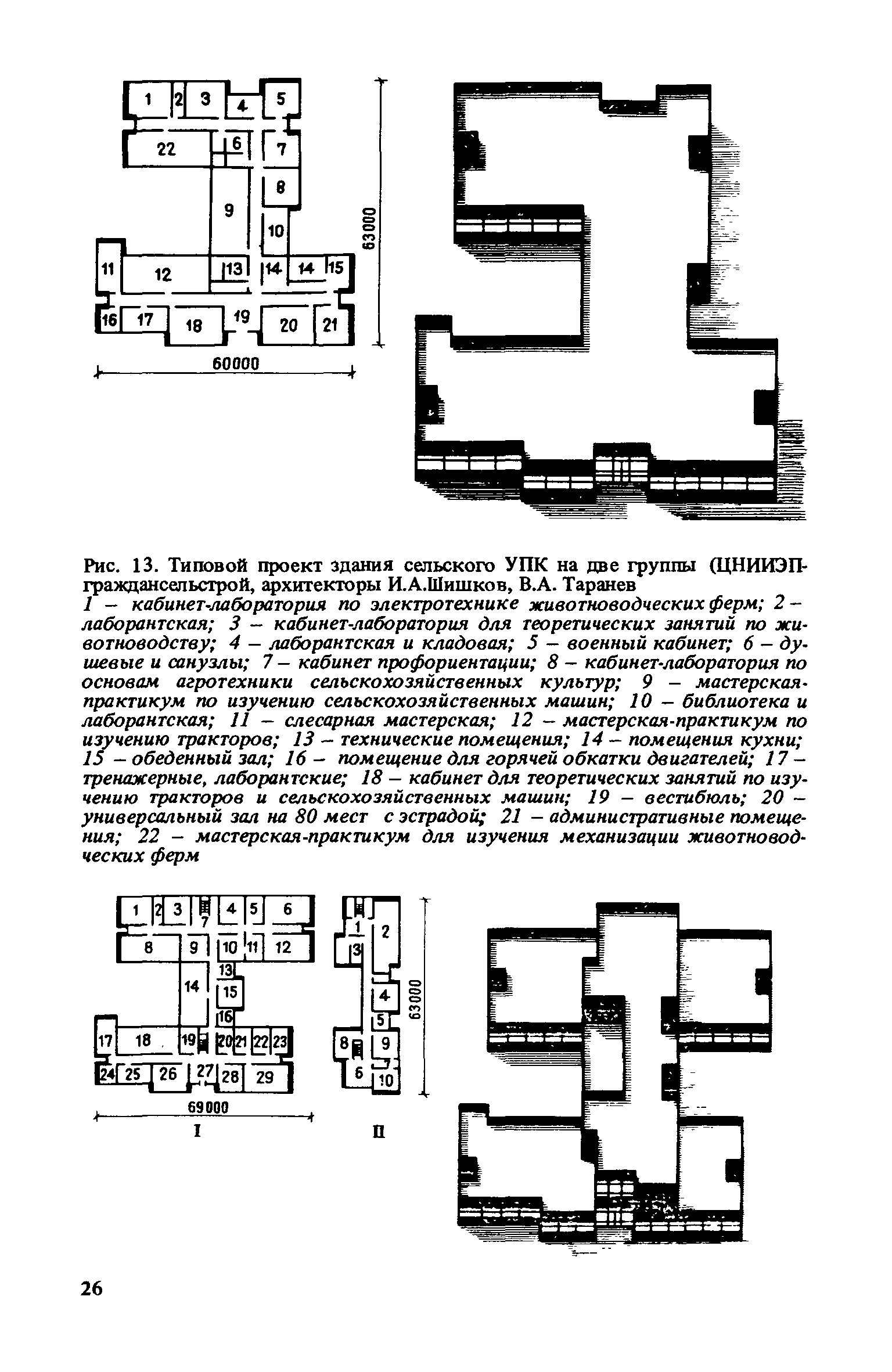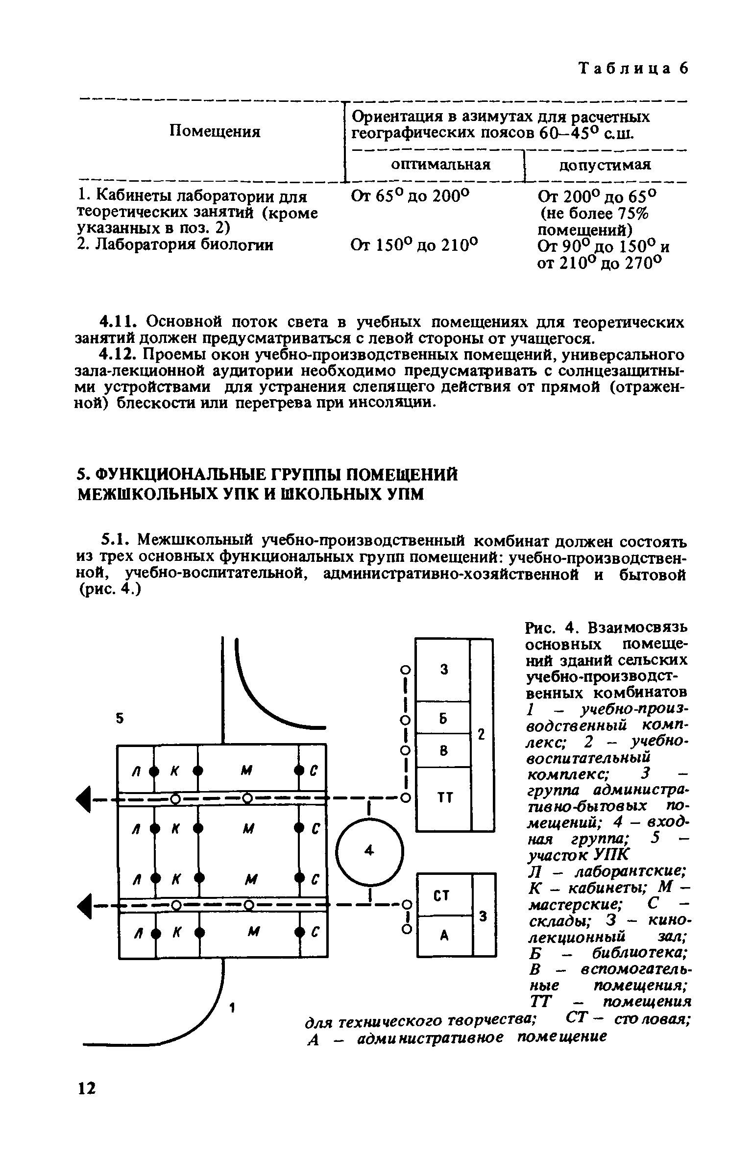 | Оглавление: | Предисловие 1. Общие положения и педагогические требования к межшкольным учебно-производственным комбинатам и школьным учебно-производственным мастерским 2. Организация сети и номенклатура типов зданий сельских УПК и УПМ 3. Земельные участки 4. Общие требования к проектированию зданий учебно-производственных комбинатов и учебно-производственных мастерских 5. Функциональные группы помещений межшкольных УПК и школьных УПМ 6. Особенности объемно-планировочной структуры зданий учебно-производственных комбинатов и учебно-производственных мастерских 7. Основные архитектурно-планировочные элементы зданий УПК и УПМ Приложение 1. Примерный состав и площади помещений зданий сельских УПК Приложение 2. Примерный состав и площади помещений зданий УПМ Приложение 3. Состав и площади помещений учебных гаражей |