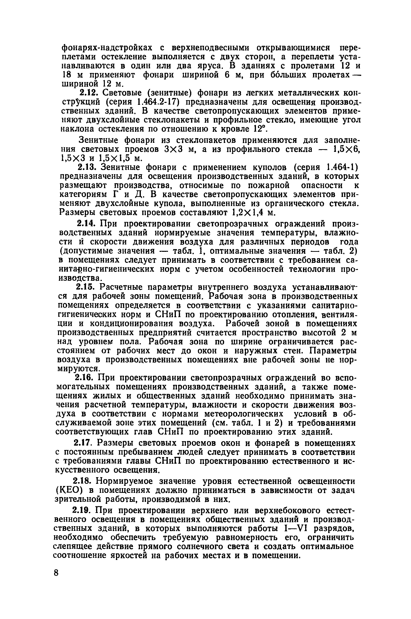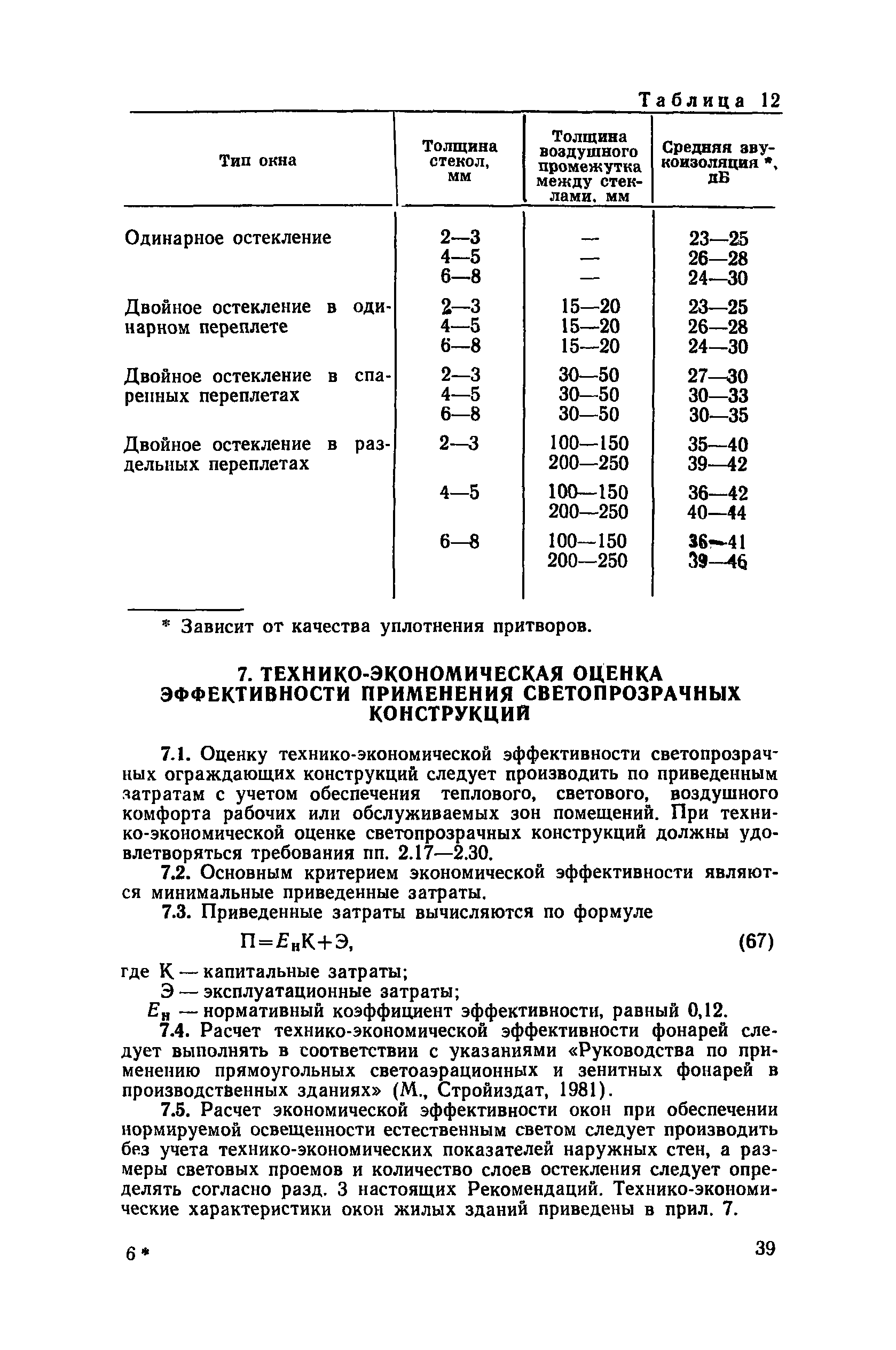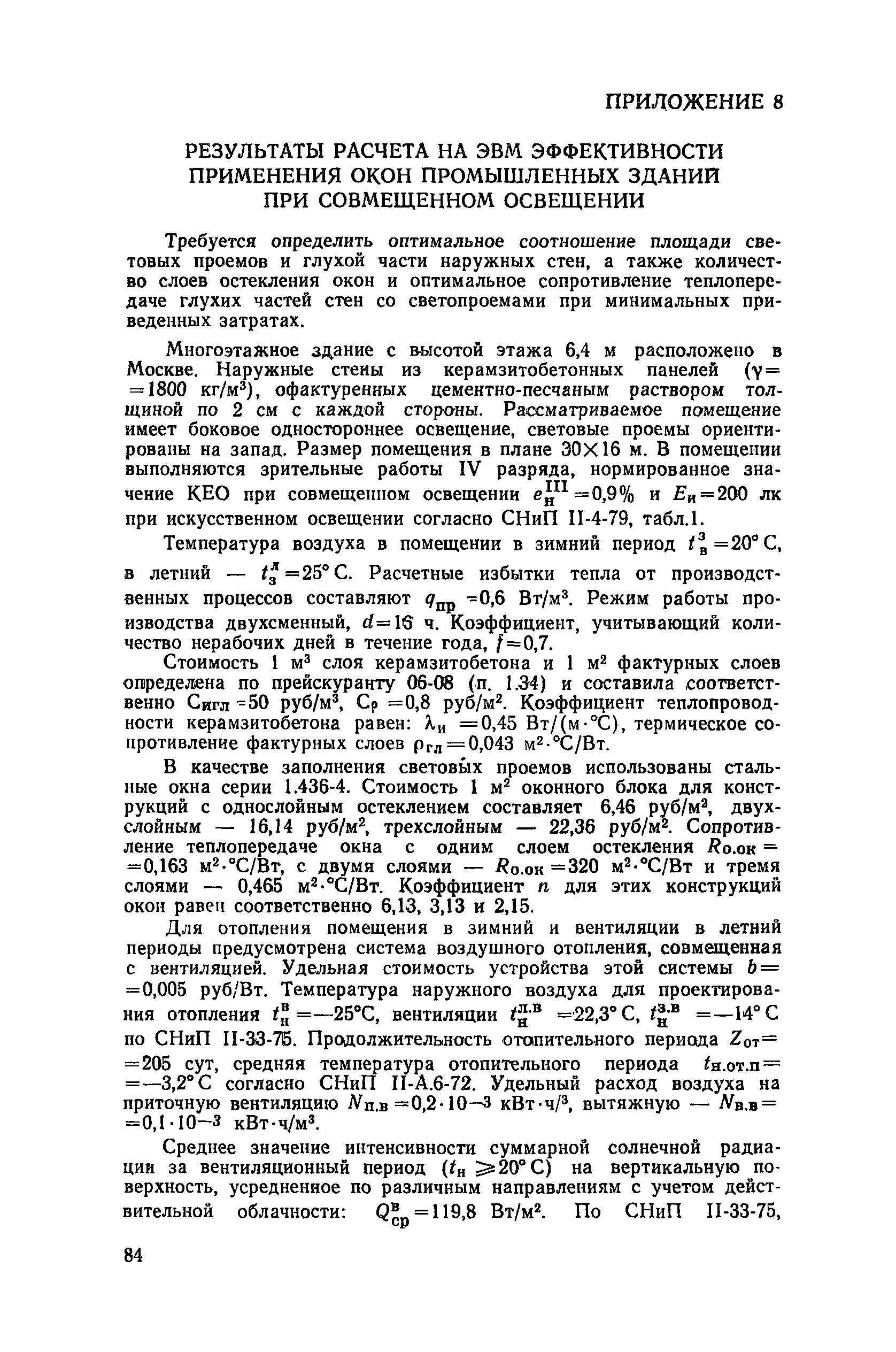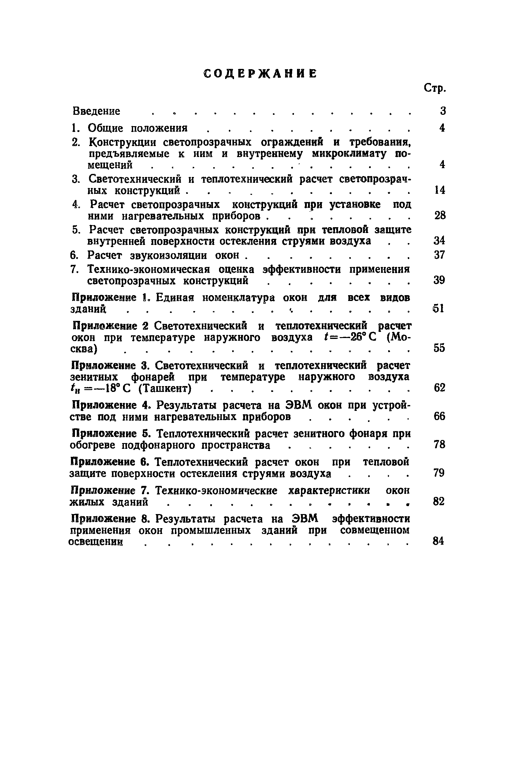 Рекомендации по расчету светопрозрачных конструкций зданий с учетом светотехнических, теплотехнических, звукоизоляционных качеств и технико-экономических показателей| Статус: | справочные материалы, мп, тпр | | Название рус.: | Рекомендации по расчету светопрозрачных конструкций зданий с учетом светотехнических, теплотехнических, звукоизоляционных качеств и технико-экономических показателей | | Дата добавления в базу: | 01.09.2013 | | Дата актуализации: | 01.01.2021 | | Область применения: | В документе рассмотрен комплексный метод расчета светопрозрачных конструкций на основе теплотехнических, светотехнических, аэродинамических и звукоизоляционных требований, предъявляемых к окнам, фонарям и микроклимату зданий; дан инженерный метод расчета количества слоев остекления и площади световых проемов. Содержит технико-экономическое обоснование выбора светопрозрачной конструкции для конкретного типа здания и района строительства. Для инженерно-технических работников проектных и научно-исследовательских организаций | | Оглавление: | Введение 1. Общие положения 2. Конструкции светопрозрачных ограждений и требования, предъявляемые к ним и внутреннему микроклимату помещений 3. Светотехнический и теплотехнический расчет светопрозрачных конструкций 4. Расчет светопрозрачных конструкций при установке под ними нагревательных приборов 5. Расчет светопрозрачных конструкций при тепловой защите внутренней поверхности остекления струями воздуха 6. Расчет звукоизоляции окон 7. Технико-экономическая оценка эффективности применения светопрозрачных конструкций Приложение 1. Единая номенклатура окон для всех видов здания Приложение 2. Светотехнический и теплотехнический расчет окон при температуре наружного воздуха t = -26 градусов Цельсия (Москва) Приложение 3. Светотехнический и теплотехнический расчет зенитных фонарей при температуре наружного воздуха t = -18 градусов Цельсия (Ташкент) Приложение 4. Результаты расчета на ЭВМ окон при устройстве под ними нагревательных приборов Приложение 5. Теплотехнический расчет зенитного фонаря при обогреве подфонарного пространства Приложение 6. Теплотехнический расчет окон при тепловой защите поверхности остекления струями воздуха Приложение 7. Технико-экономические характеристики окон жилых зданий Приложение 8. Результаты расчета на ЭВМ эффективности применения окон промышленных зданий при совмещенном освещении | | Разработан: | НИИСФ Госстроя СССР
