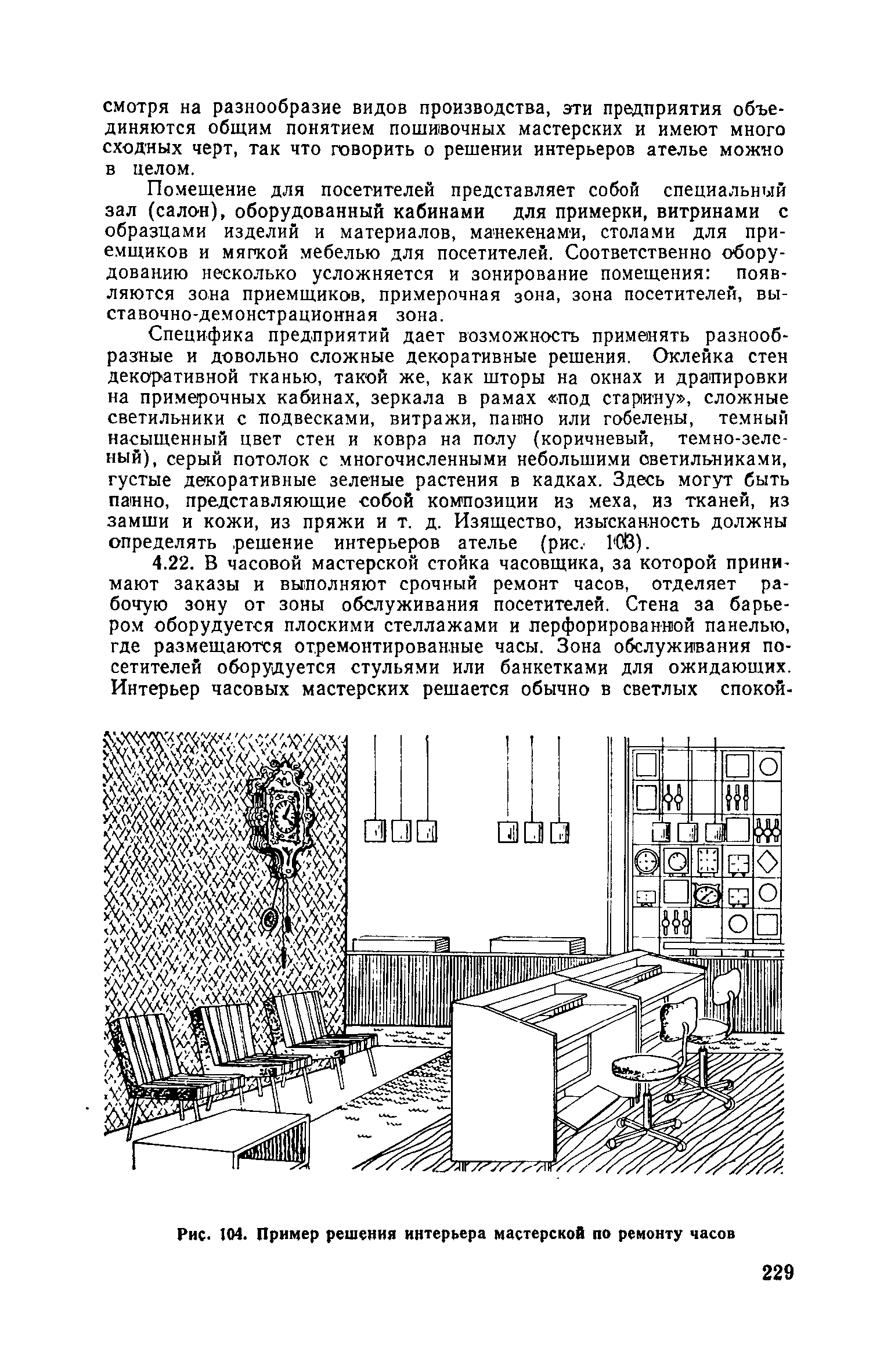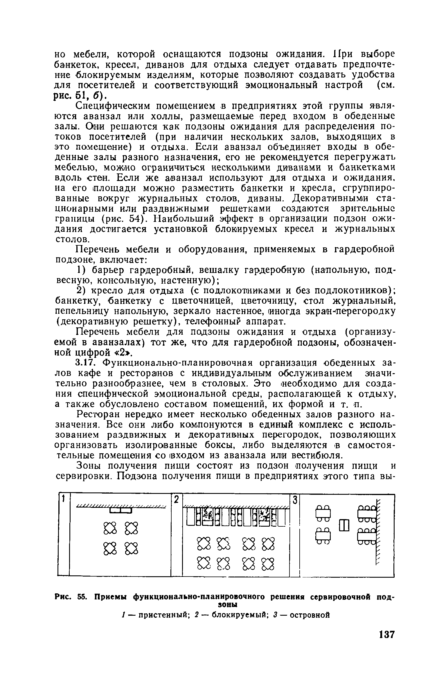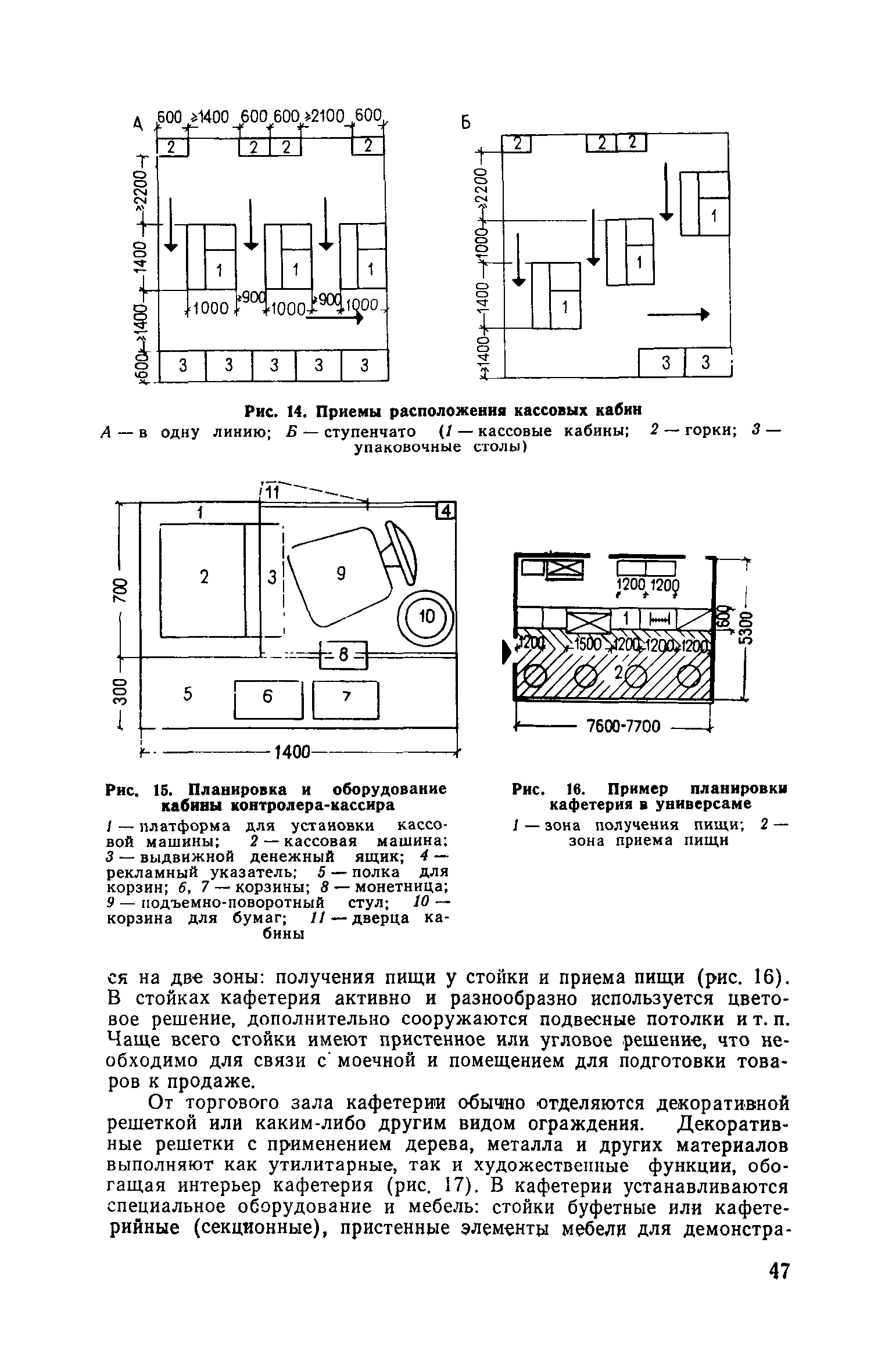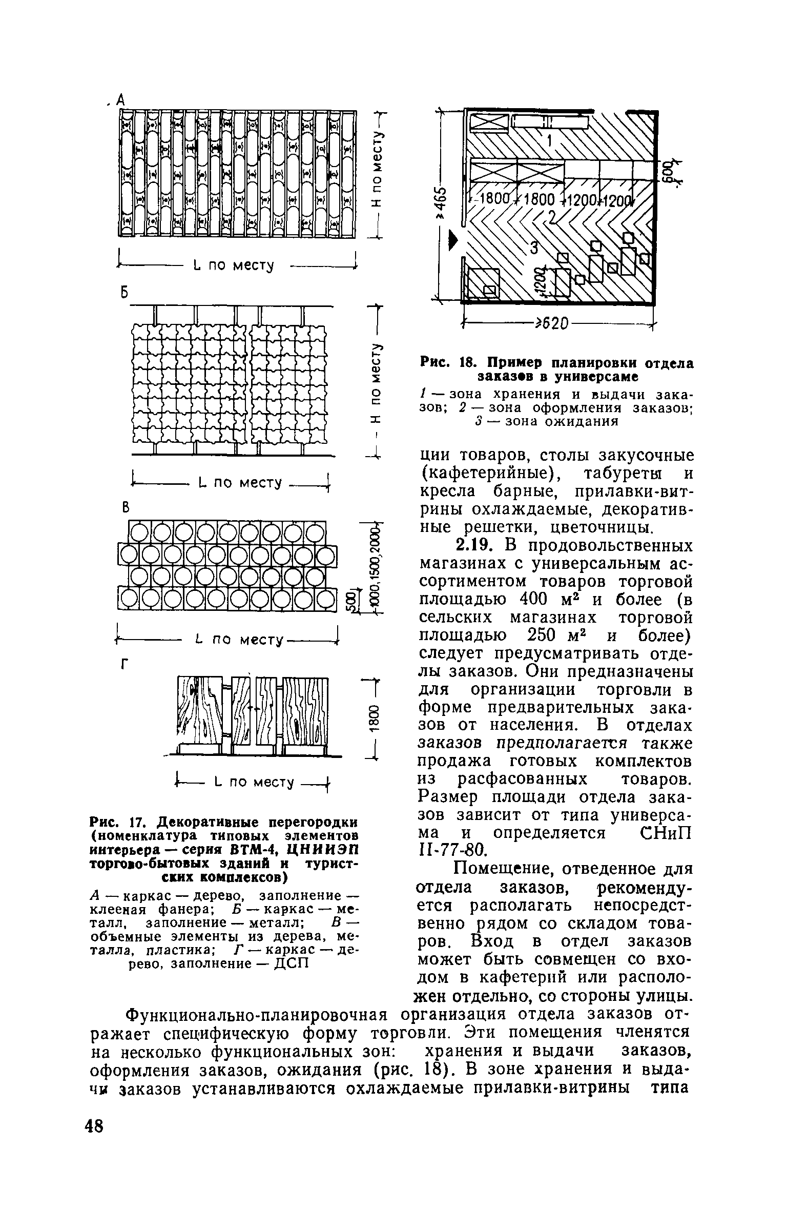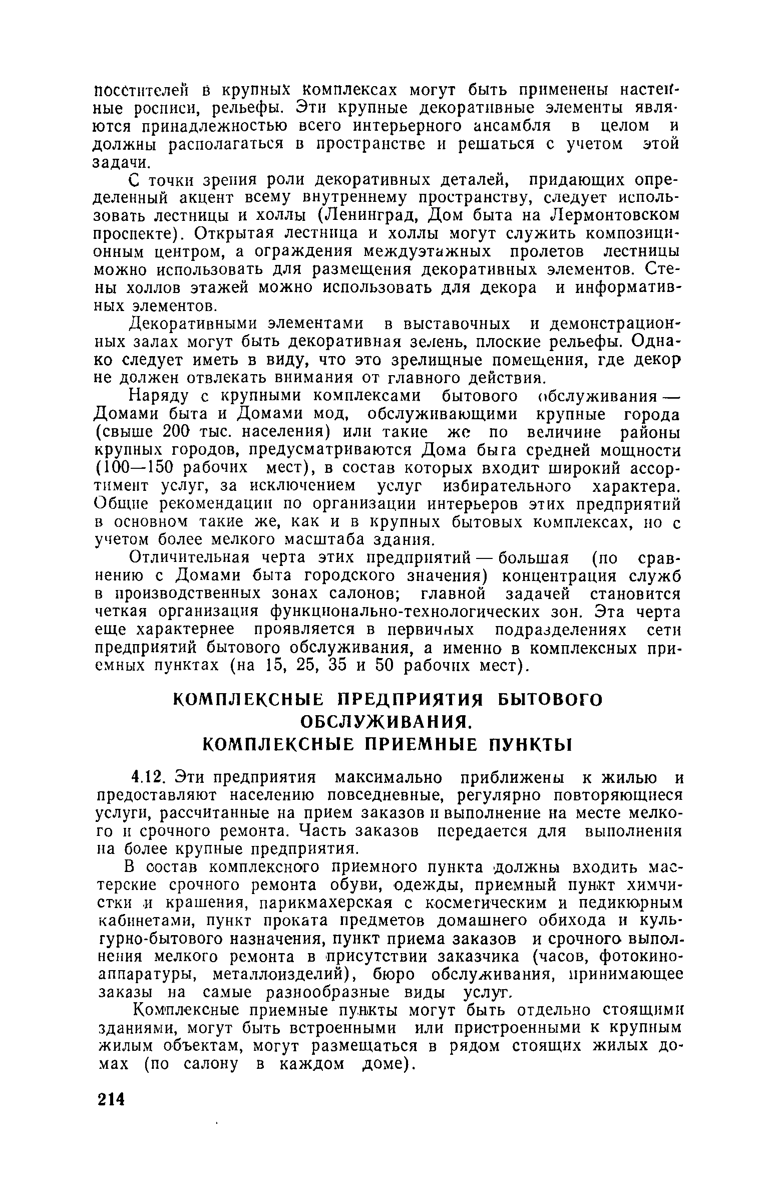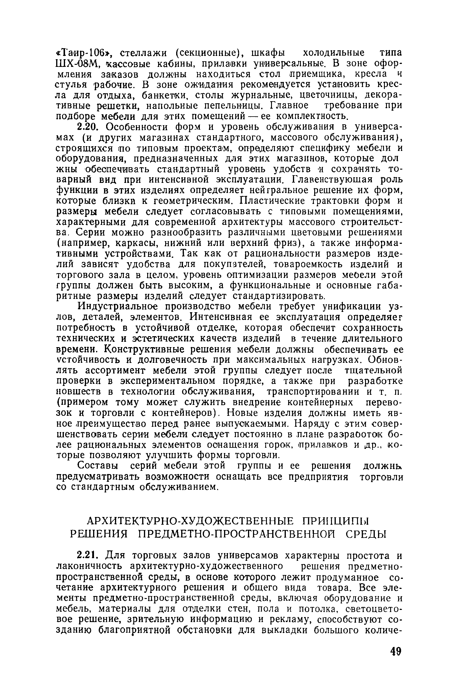 Руководство по проектированию внутренней среды предприятий торгово-бытового обслуживания| Статус: | справочные материалы, мп, тпр | | Название рус.: | Руководство по проектированию внутренней среды предприятий торгово-бытового обслуживания | | Дата добавления в базу: | 01.09.2013 | | Дата актуализации: | 01.01.2021 | | Область применения: | В документе приведены основные принципы формирования внутренней среды в зданиях предприятий торговли, общественного питания и бытового обслуживания, включая архитектурно-планировочные особенности, предметное насыщение. Собраны н систематизированы приемы решения и использования основных элементов, формирующих предметную среду (мебель, оборудование, декоративные элементы, визуальная информация и реклама). Составлена номенклатура элементов внутренней среды помещений для посетителей в предприятиях торгово-бытового обслуживания. Для специалистов в области проектирования, строительства и эксплуатации торгово-бытовых зданий. | | Оглавление: | Предисловие 1. Особенности внутренней среды в предприятиях торгово-бытового обслуживания (помещения для посетителей) Основные положения Функциональное зонирование, оборудование и мебель Отделочные материалы Цветовое решение Освещение Визуальные коммуникации и реклама Инженерное оборудование. Отопление и вентиляция Акустика 2. Здания торговли Универсамы Особенности организации внутренней среды Функциональная организация предметно-пространственной среды и мебель Архитектурно-художественные принципы решения предметно-пространственной среды Универмаги Особенности организации внутренней среды 3. Предприятия общественного питания Функциональная организация предметно-пространственной среды и мебель Архитектурно-художественные принципы решения предметно-пространственной среды Предприятия общественного питания, совмещающие функции питания и отдыха (кафе, рестораны общего типа и специализированные с индивидуальным обслуживанием) Функциональная организация предметно-пространственной среды Архитектурно-художественные принципы решения предметно-пространственной среды Предприятия "занимательного" питания Комплексные предприятия общественного питания 4. Предприятия бытового обслуживания Комплексные предприятия бытового обслуживания, Дома быта и Дома мод Особенности организации внутренней среды, функциональное зонирование Архитектурно-художественные принципы решения предметно-пространственной среды Комплексные предприятия бытового обслуживания. Комплексные приемные пункты Особенности организации внутренней среды, функциональное зонирование Архитектурно-художественные принципы решения предметно-пространственной среды Специализированные предприятия и мастерские по отдельным видам работ | | Разработан: | ЦНИИЭП торгово-бытовых зданий и туристских комплексов