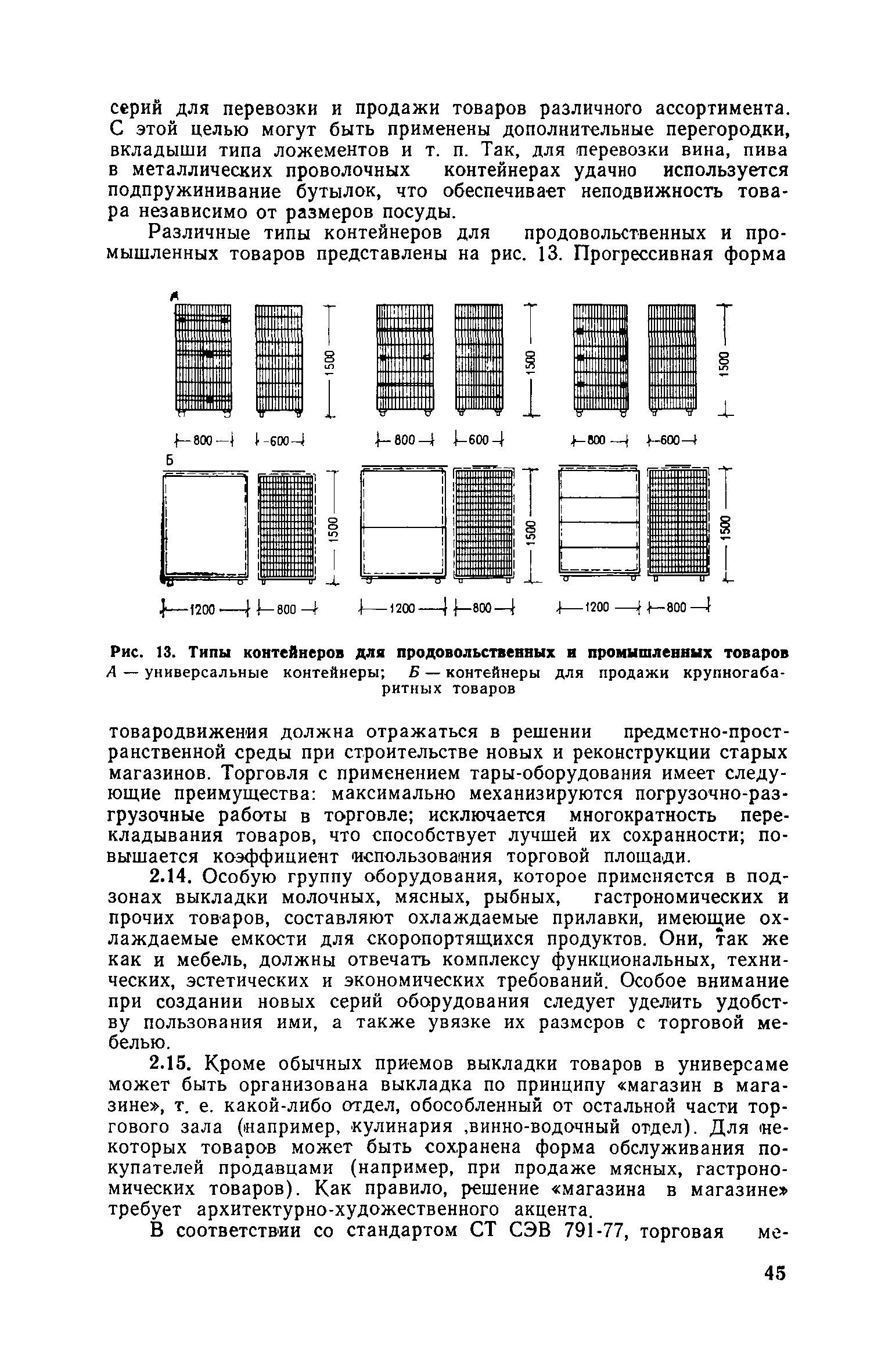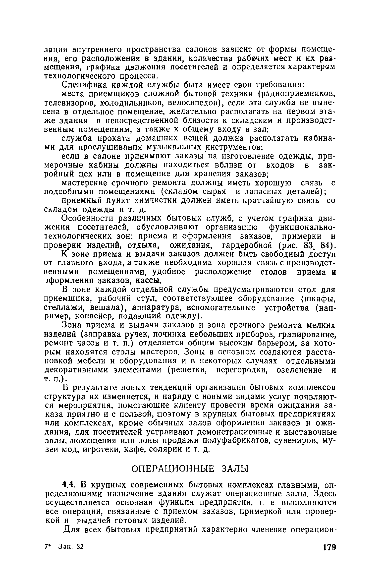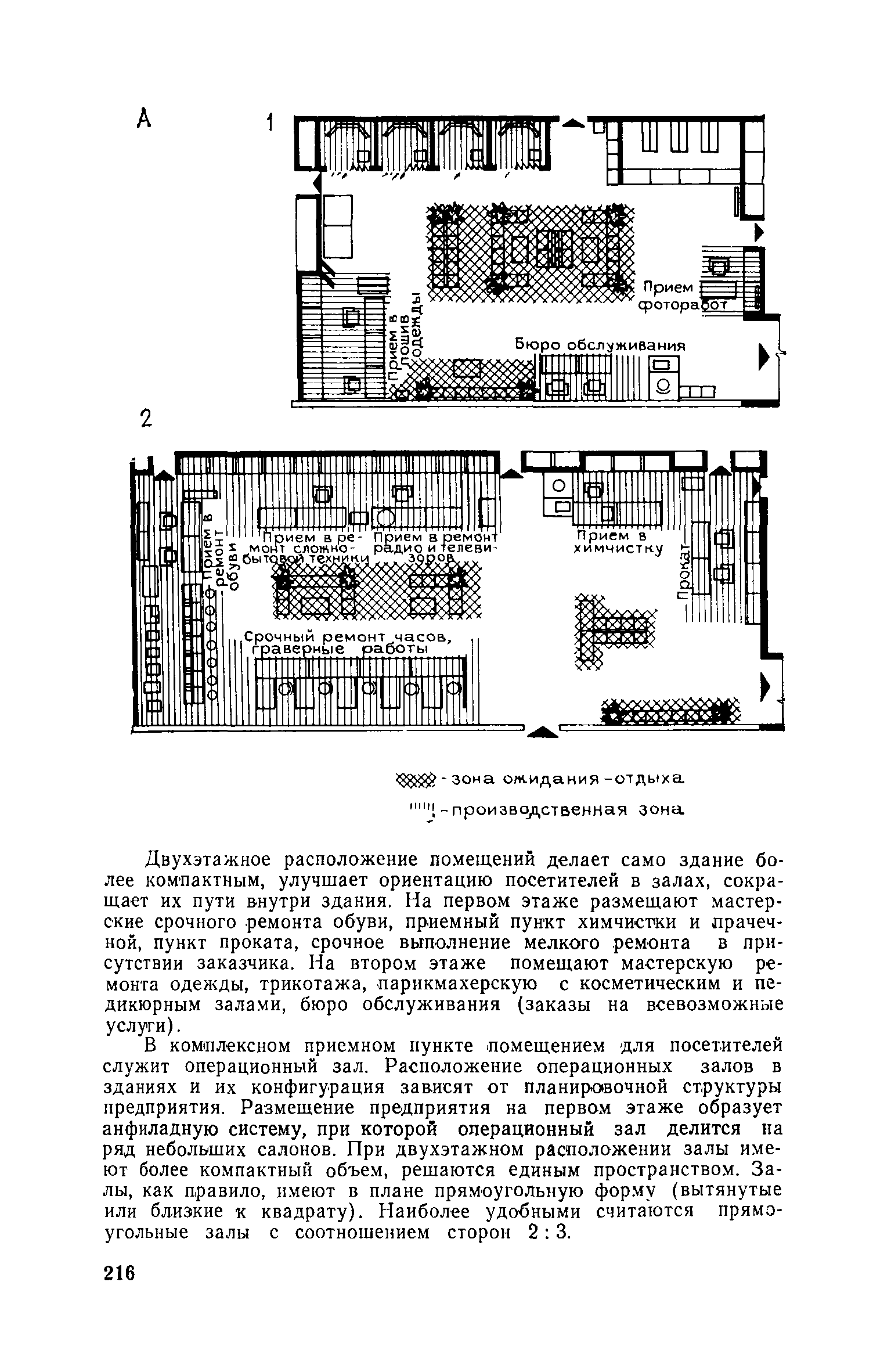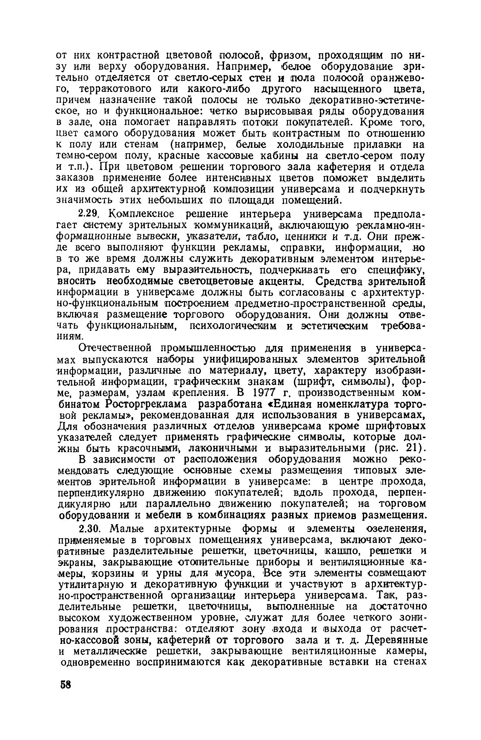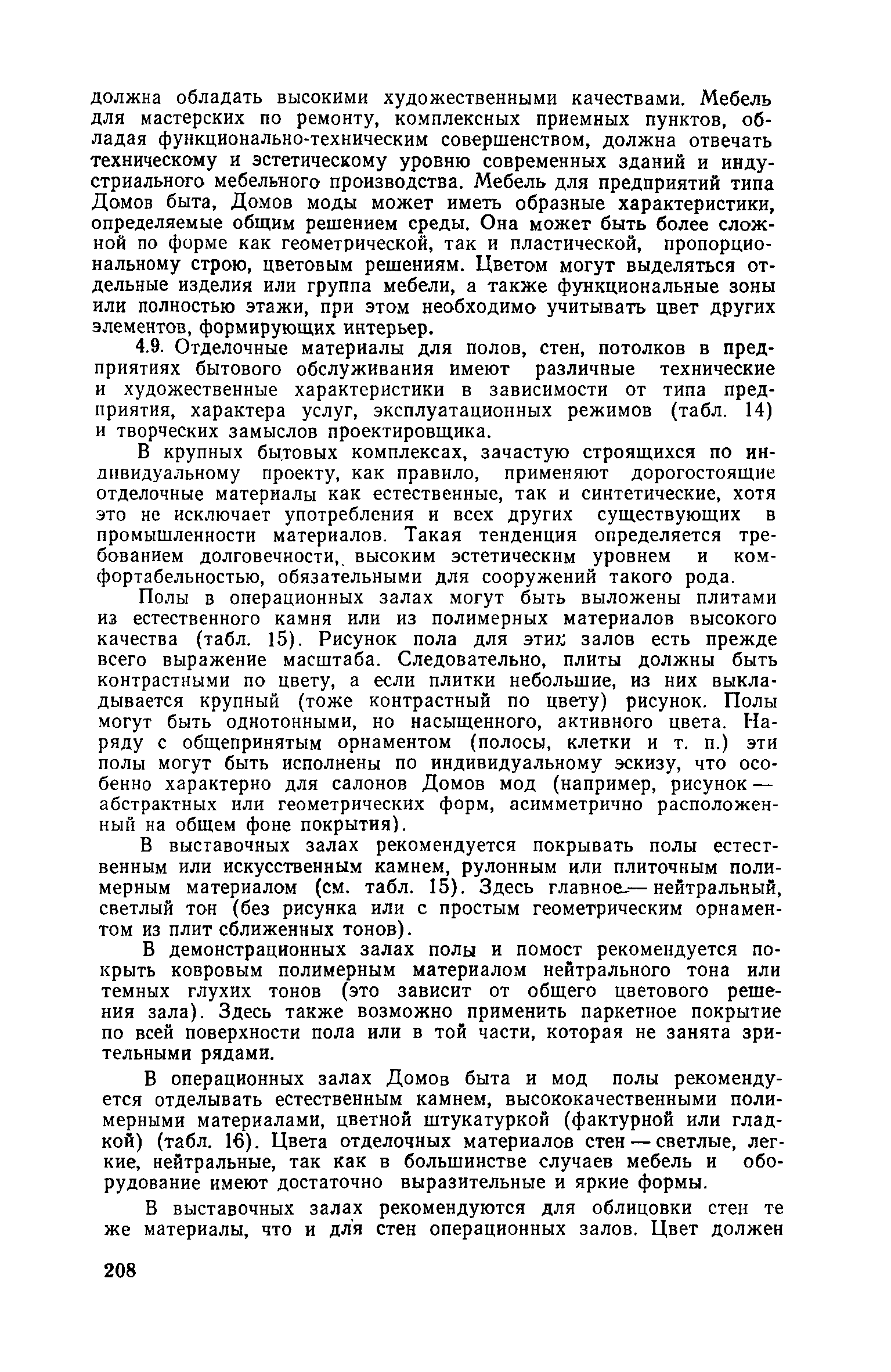 Руководство по проектированию внутренней среды предприятий торгово-бытового обслуживания| Статус: | справочные материалы, мп, тпр | | Название рус.: | Руководство по проектированию внутренней среды предприятий торгово-бытового обслуживания | | Дата добавления в базу: | 01.09.2013 | | Дата актуализации: | 01.01.2021 | | Область применения: | В документе приведены основные принципы формирования внутренней среды в зданиях предприятий торговли, общественного питания и бытового обслуживания, включая архитектурно-планировочные особенности, предметное насыщение. Собраны н систематизированы приемы решения и использования основных элементов, формирующих предметную среду (мебель, оборудование, декоративные элементы, визуальная информация и реклама). Составлена номенклатура элементов внутренней среды помещений для посетителей в предприятиях торгово-бытового обслуживания. Для специалистов в области проектирования, строительства и эксплуатации торгово-бытовых зданий. | | Оглавление: | Предисловие 1. Особенности внутренней среды в предприятиях торгово-бытового обслуживания (помещения для посетителей) Основные положения Функциональное зонирование, оборудование и мебель Отделочные материалы Цветовое решение Освещение Визуальные коммуникации и реклама Инженерное оборудование. Отопление и вентиляция Акустика 2. Здания торговли Универсамы Особенности организации внутренней среды Функциональная организация предметно-пространственной среды и мебель Архитектурно-художественные принципы решения предметно-пространственной среды Универмаги Особенности организации внутренней среды 3. Предприятия общественного питания Функциональная организация предметно-пространственной среды и мебель Архитектурно-художественные принципы решения предметно-пространственной среды Предприятия общественного питания, совмещающие функции питания и отдыха (кафе, рестораны общего типа и специализированные с индивидуальным обслуживанием) Функциональная организация предметно-пространственной среды Архитектурно-художественные принципы решения предметно-пространственной среды Предприятия "занимательного" питания Комплексные предприятия общественного питания 4. Предприятия бытового обслуживания Комплексные предприятия бытового обслуживания, Дома быта и Дома мод Особенности организации внутренней среды, функциональное зонирование Архитектурно-художественные принципы решения предметно-пространственной среды Комплексные предприятия бытового обслуживания. Комплексные приемные пункты Особенности организации внутренней среды, функциональное зонирование Архитектурно-художественные принципы решения предметно-пространственной среды Специализированные предприятия и мастерские по отдельным видам работ | | Разработан: | ЦНИИЭП торгово-бытовых зданий и туристских комплексов