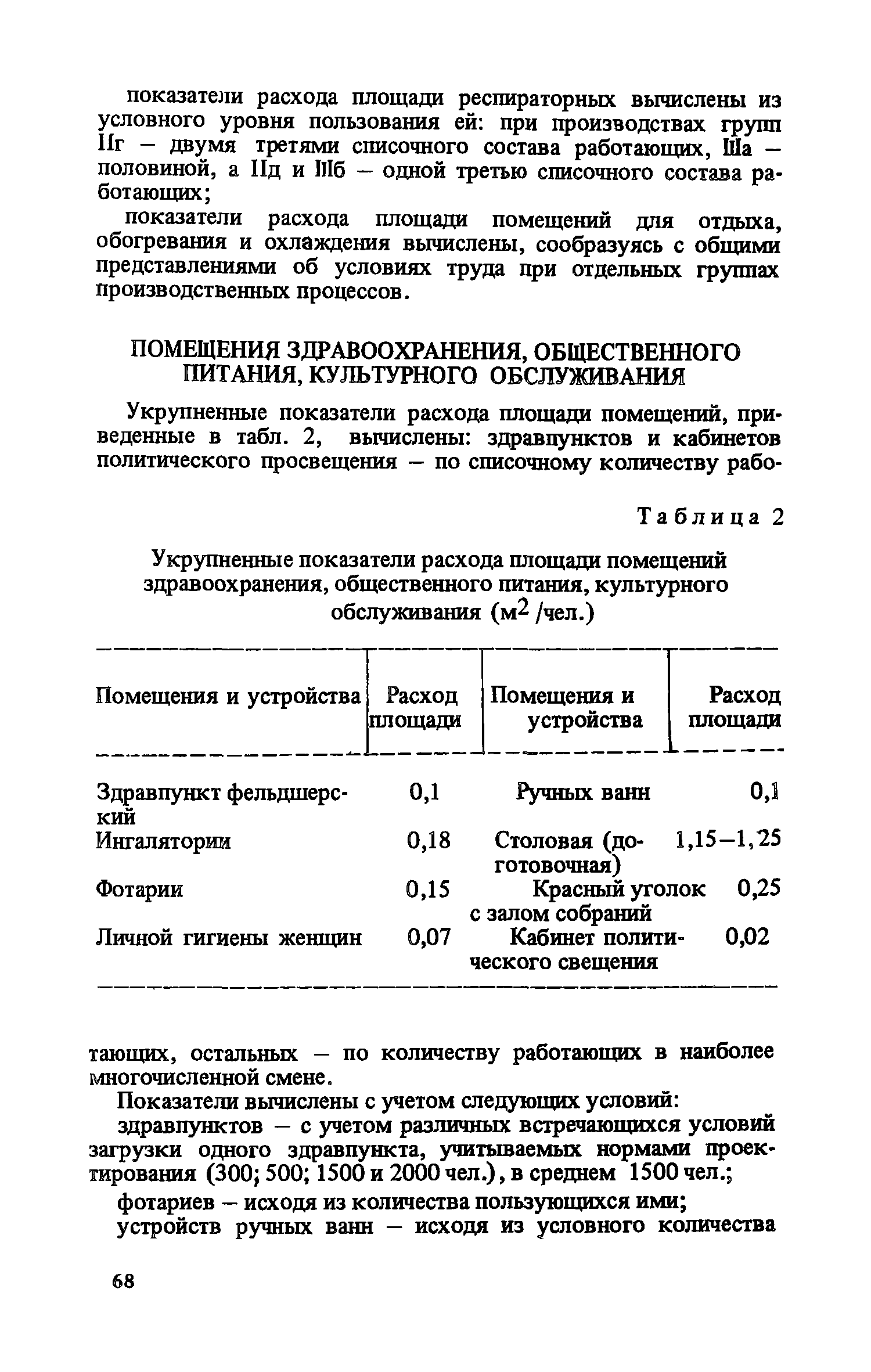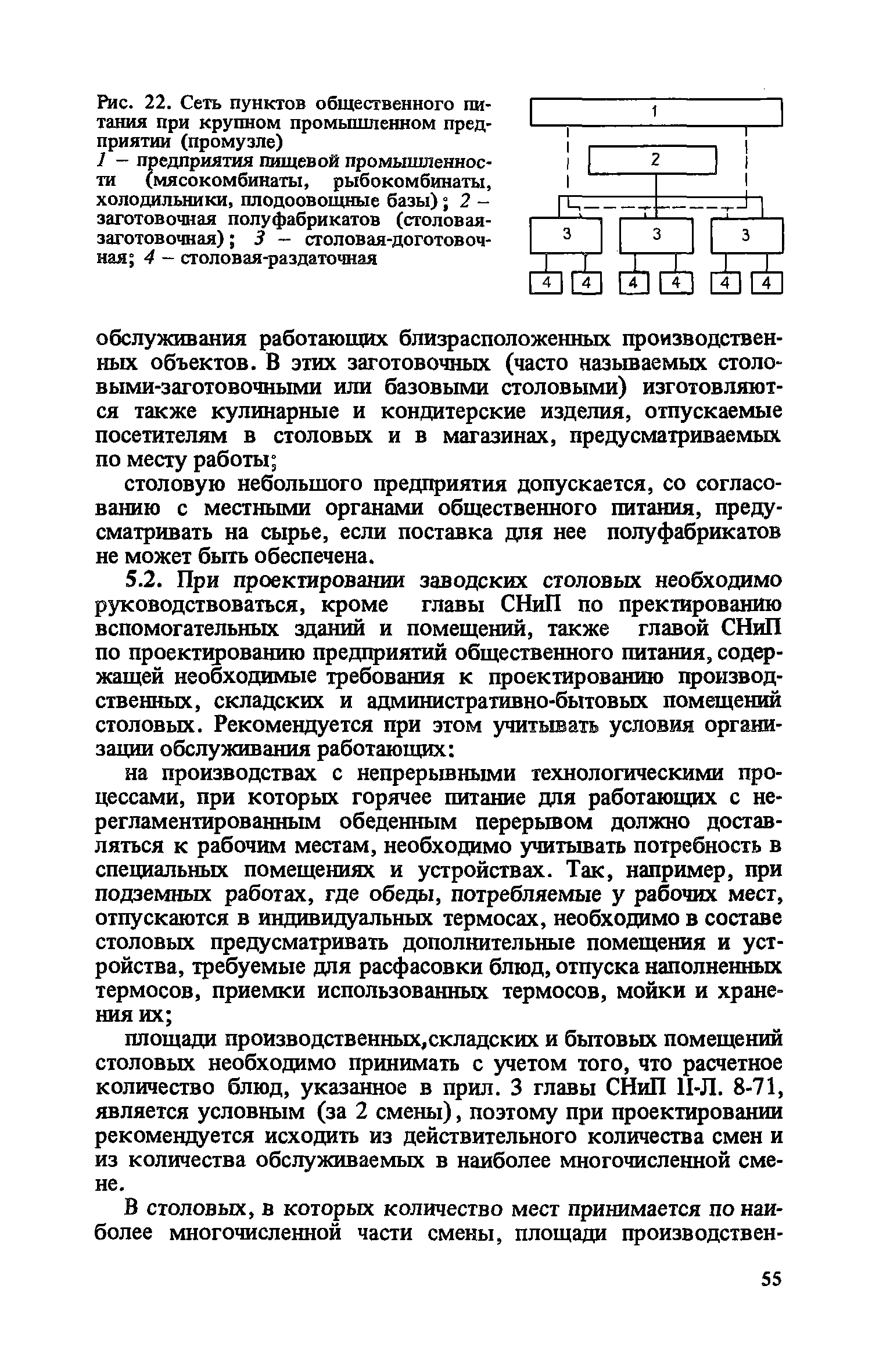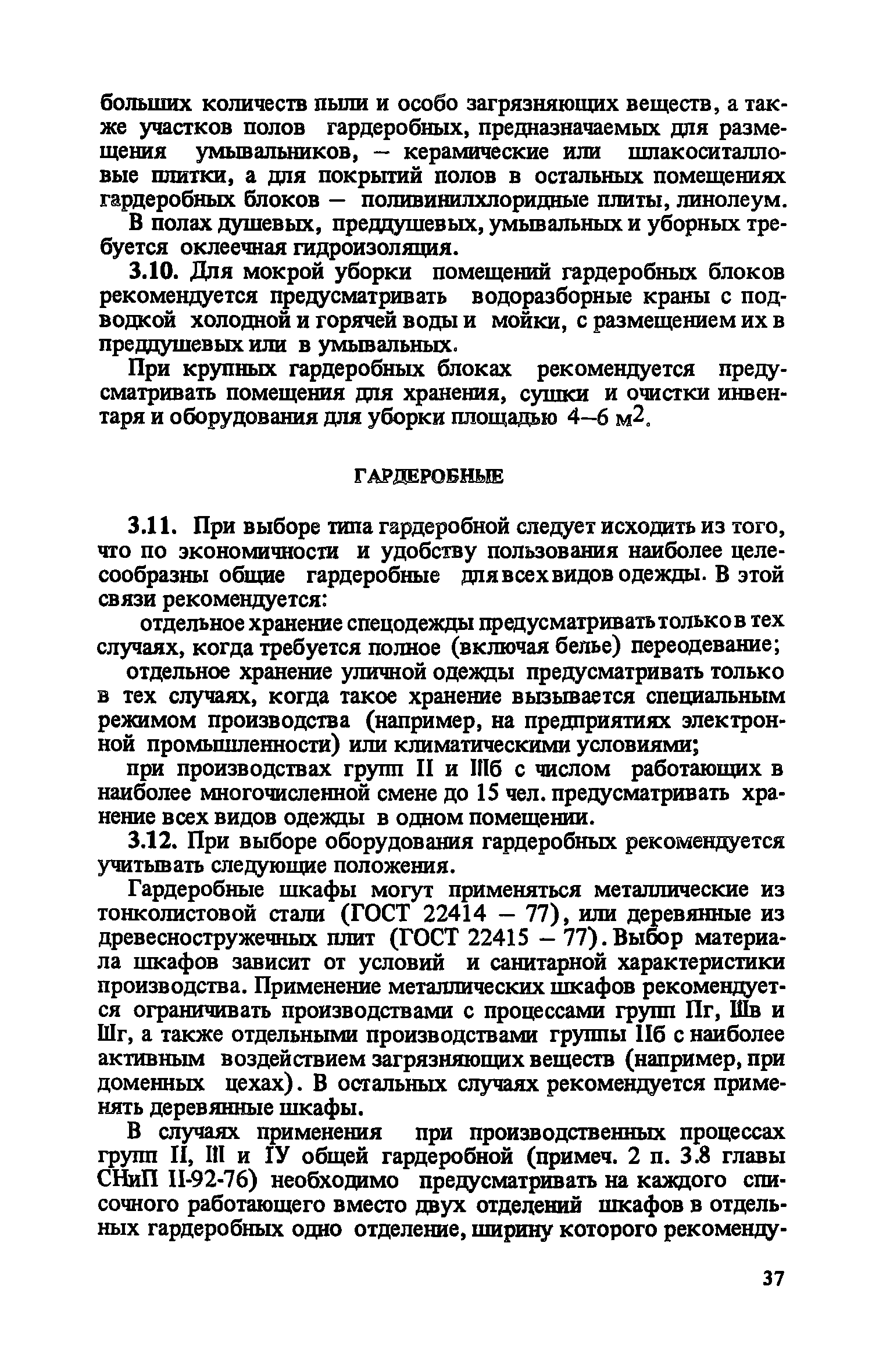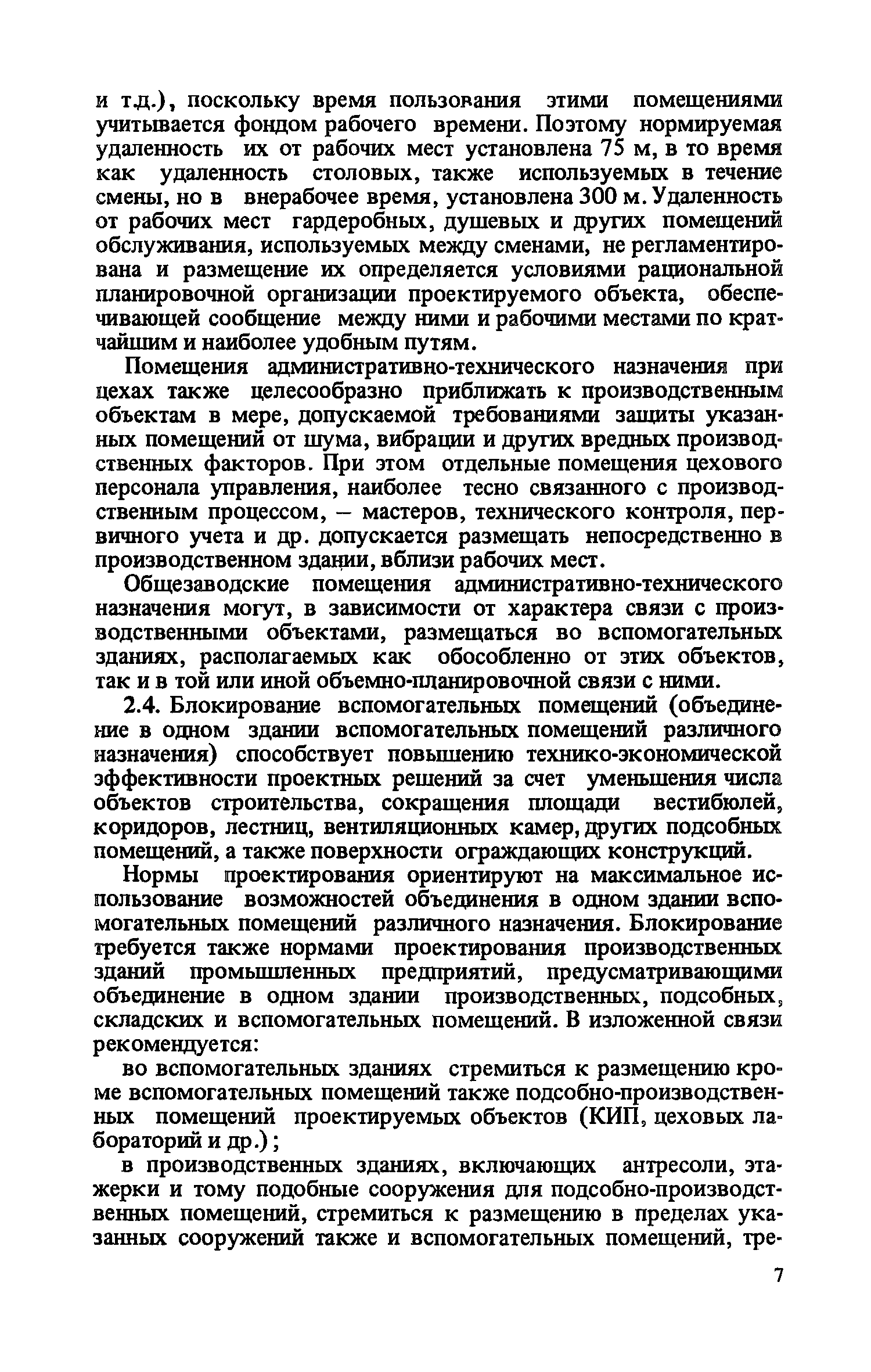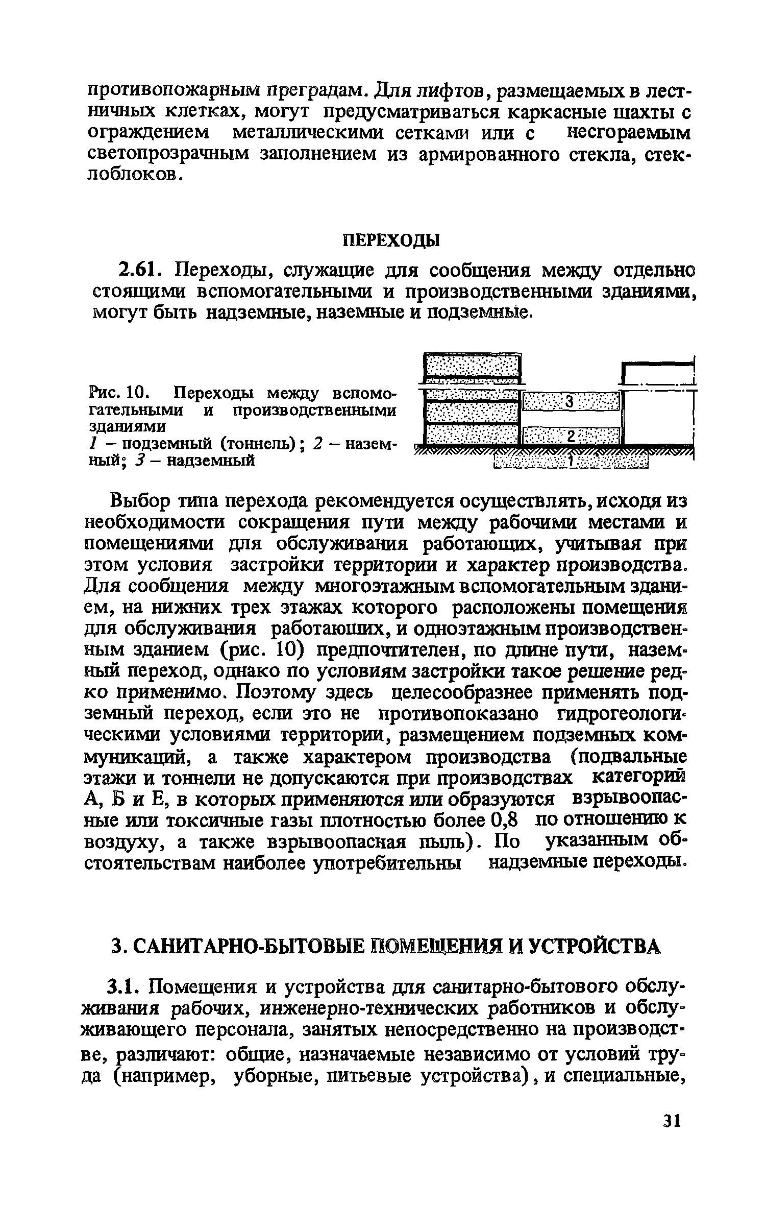 | Оглавление: | 1. Общие положения Условия и организация труда 2. Объемно-планировочные и конструктивные решения Основные планировочные принципы Разновидности вспомогательных зданий Основные параметры вспомогательных зданий Планировочная организация людских потоков Эвакуация людей из зданий и помещений Помещения и устройства людских коммуникаций 3. Санитарно-бытовые помещения и устройства Гардеробные блоки Гардеробные Душевые Умывальные Полудуши Уборные Курительные Помещения для отдыха в рабочее время, помещения и устройства для обогревания и охлаждения Помещения для стирки, химической щетки, сушки, обеспыливания, обезвреживания и ремонта специальной одежды и обуви 4. Помещения здравоохранения Здравпункты Ингалятории Фотарии Помещения для личной гигиены женщин 5. Помещения общественного питания 6. Помещения культурного обслуживания Красные уголки Залы собраний Площадки для гимнастических упражнений и спортивных игр Кабинеты политического просвещения 7. Помещения административно-технического назначения. Рабочие помещения Технические библиотеки Технические архивы Помещения копировально-множительных служб Приложение 1. Укрупненные показатели расхода площади вспомогательных помещений Приложение 2. Санитарная характеристика производственных процессов Приложение 3. Перечень профессий работающих с указанием групп производственных процессов и необходимых санитарно-бытовых помещений и устройств (форма) Приложение 4. Перечень профессий работающих с указанием групп производственных процессов и необходимых санитарно-бытовых помещений и устройств (пример заполнения) |