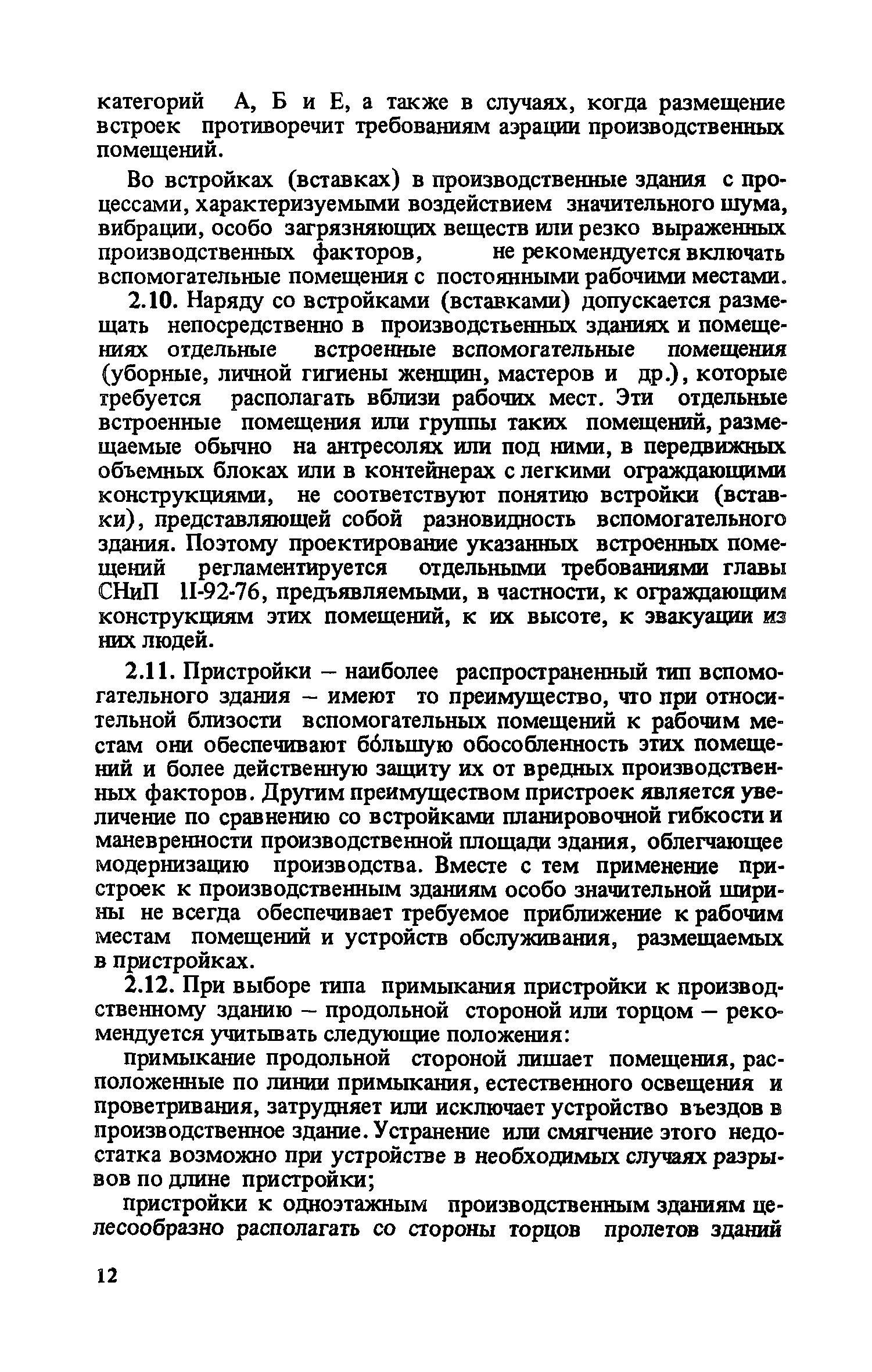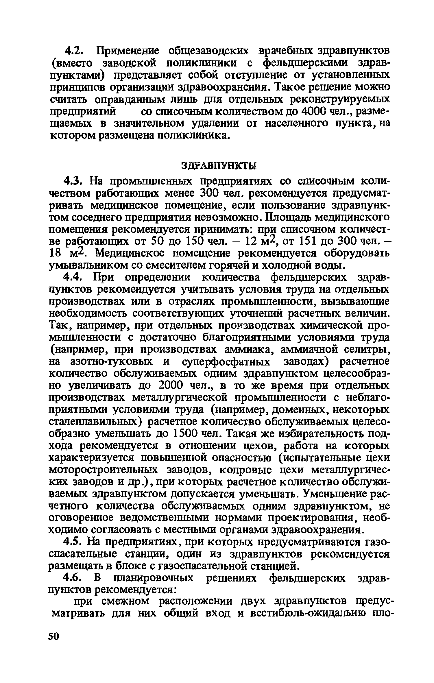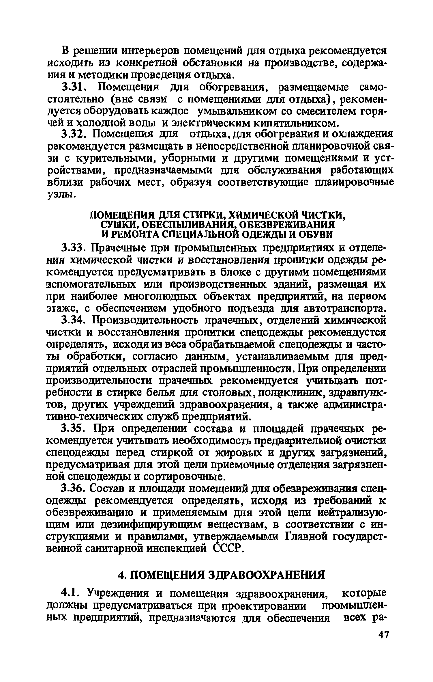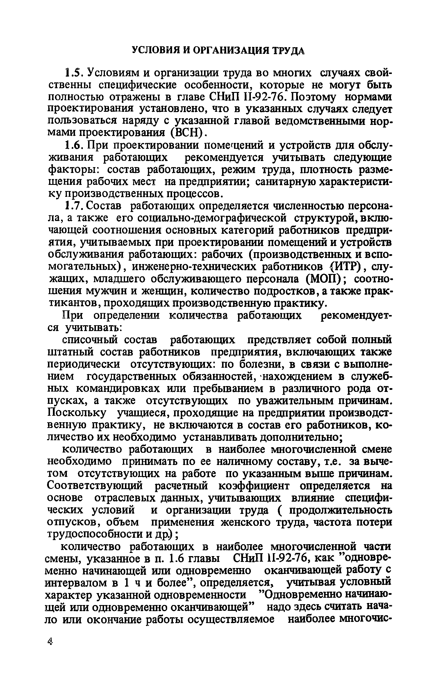 | Оглавление: | 1. Общие положения Условия и организация труда 2. Объемно-планировочные и конструктивные решения Основные планировочные принципы Разновидности вспомогательных зданий Основные параметры вспомогательных зданий Планировочная организация людских потоков Эвакуация людей из зданий и помещений Помещения и устройства людских коммуникаций 3. Санитарно-бытовые помещения и устройства Гардеробные блоки Гардеробные Душевые Умывальные Полудуши Уборные Курительные Помещения для отдыха в рабочее время, помещения и устройства для обогревания и охлаждения Помещения для стирки, химической щетки, сушки, обеспыливания, обезвреживания и ремонта специальной одежды и обуви 4. Помещения здравоохранения Здравпункты Ингалятории Фотарии Помещения для личной гигиены женщин 5. Помещения общественного питания 6. Помещения культурного обслуживания Красные уголки Залы собраний Площадки для гимнастических упражнений и спортивных игр Кабинеты политического просвещения 7. Помещения административно-технического назначения. Рабочие помещения Технические библиотеки Технические архивы Помещения копировально-множительных служб Приложение 1. Укрупненные показатели расхода площади вспомогательных помещений Приложение 2. Санитарная характеристика производственных процессов Приложение 3. Перечень профессий работающих с указанием групп производственных процессов и необходимых санитарно-бытовых помещений и устройств (форма) Приложение 4. Перечень профессий работающих с указанием групп производственных процессов и необходимых санитарно-бытовых помещений и устройств (пример заполнения) |