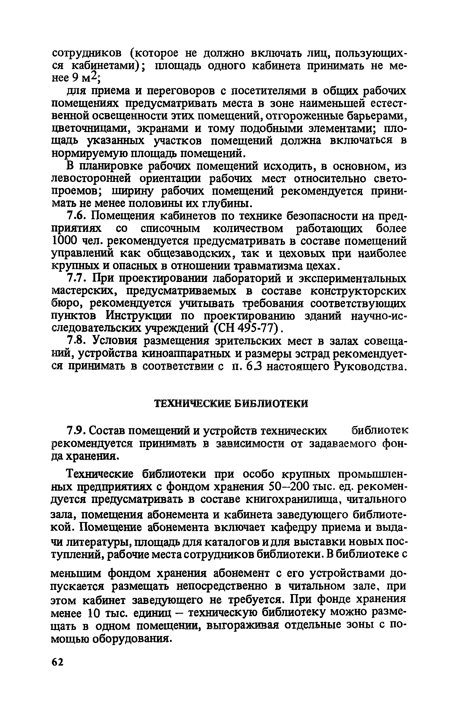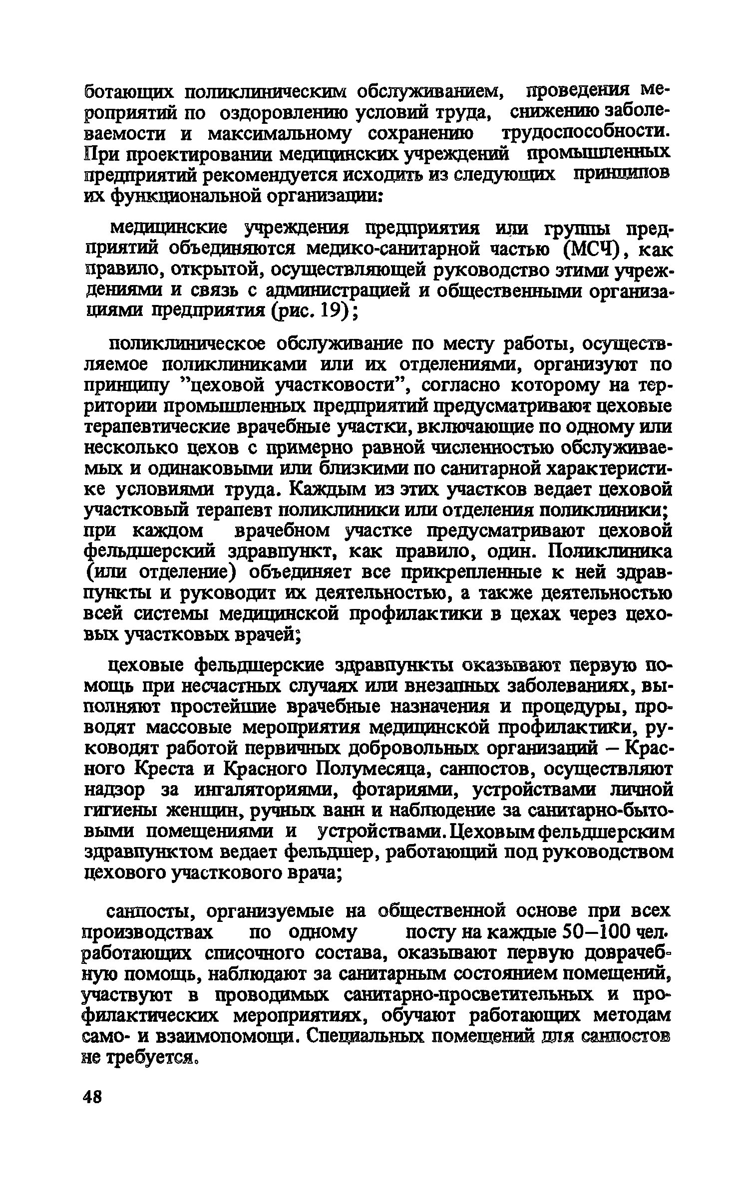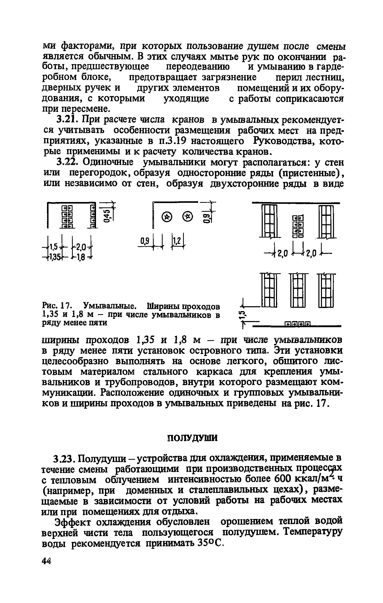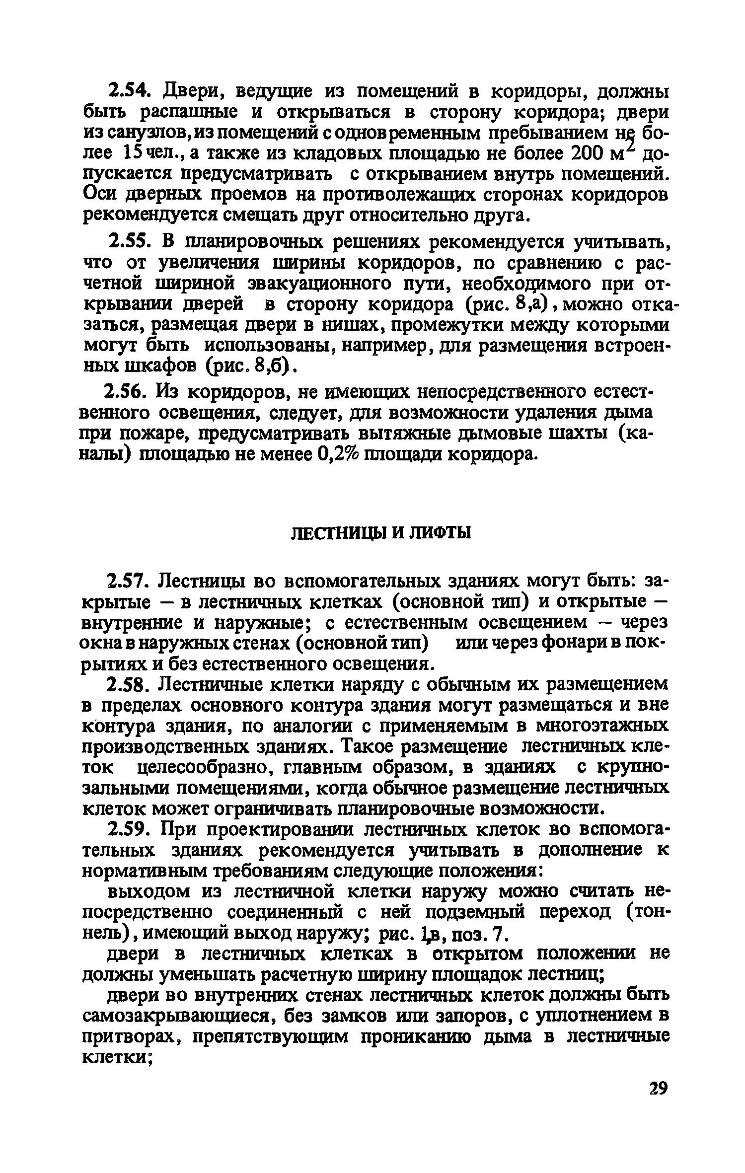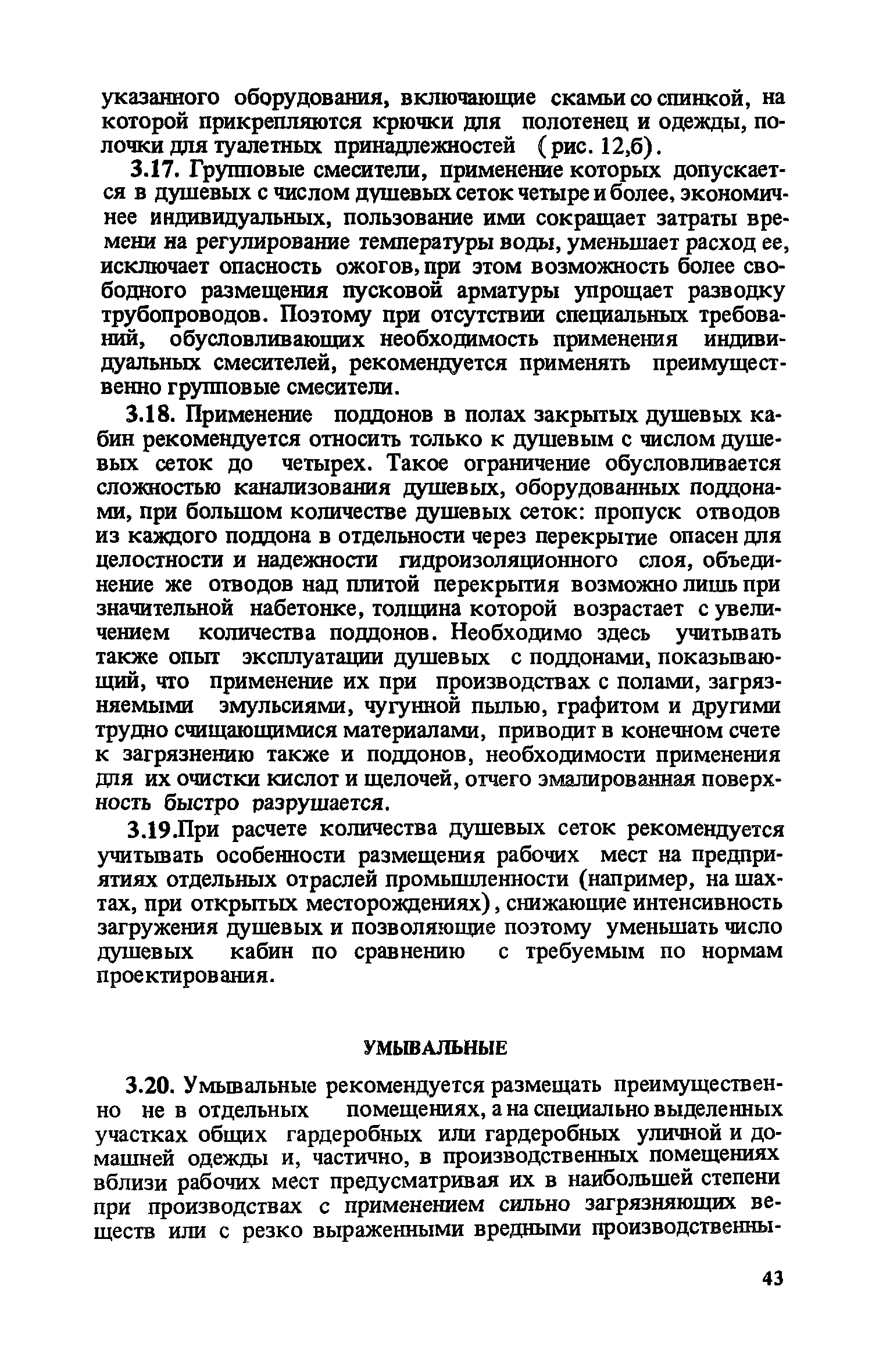 | Оглавление: | 1. Общие положения Условия и организация труда 2. Объемно-планировочные и конструктивные решения Основные планировочные принципы Разновидности вспомогательных зданий Основные параметры вспомогательных зданий Планировочная организация людских потоков Эвакуация людей из зданий и помещений Помещения и устройства людских коммуникаций 3. Санитарно-бытовые помещения и устройства Гардеробные блоки Гардеробные Душевые Умывальные Полудуши Уборные Курительные Помещения для отдыха в рабочее время, помещения и устройства для обогревания и охлаждения Помещения для стирки, химической щетки, сушки, обеспыливания, обезвреживания и ремонта специальной одежды и обуви 4. Помещения здравоохранения Здравпункты Ингалятории Фотарии Помещения для личной гигиены женщин 5. Помещения общественного питания 6. Помещения культурного обслуживания Красные уголки Залы собраний Площадки для гимнастических упражнений и спортивных игр Кабинеты политического просвещения 7. Помещения административно-технического назначения. Рабочие помещения Технические библиотеки Технические архивы Помещения копировально-множительных служб Приложение 1. Укрупненные показатели расхода площади вспомогательных помещений Приложение 2. Санитарная характеристика производственных процессов Приложение 3. Перечень профессий работающих с указанием групп производственных процессов и необходимых санитарно-бытовых помещений и устройств (форма) Приложение 4. Перечень профессий работающих с указанием групп производственных процессов и необходимых санитарно-бытовых помещений и устройств (пример заполнения) |