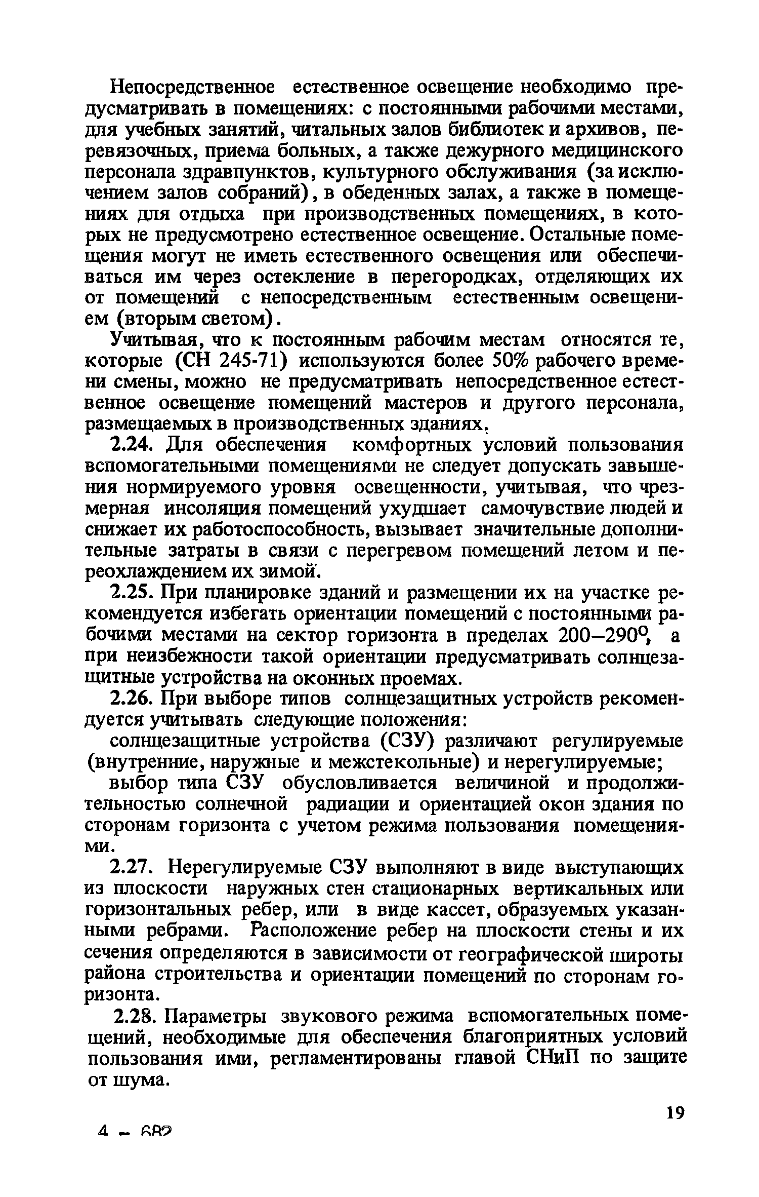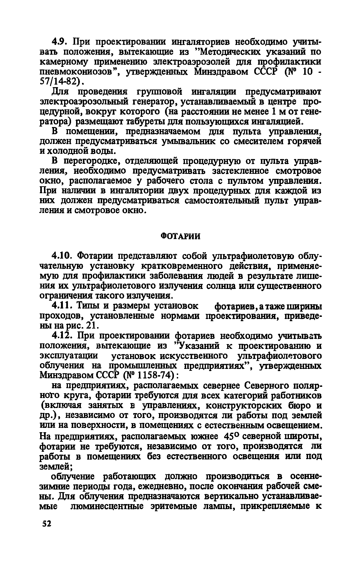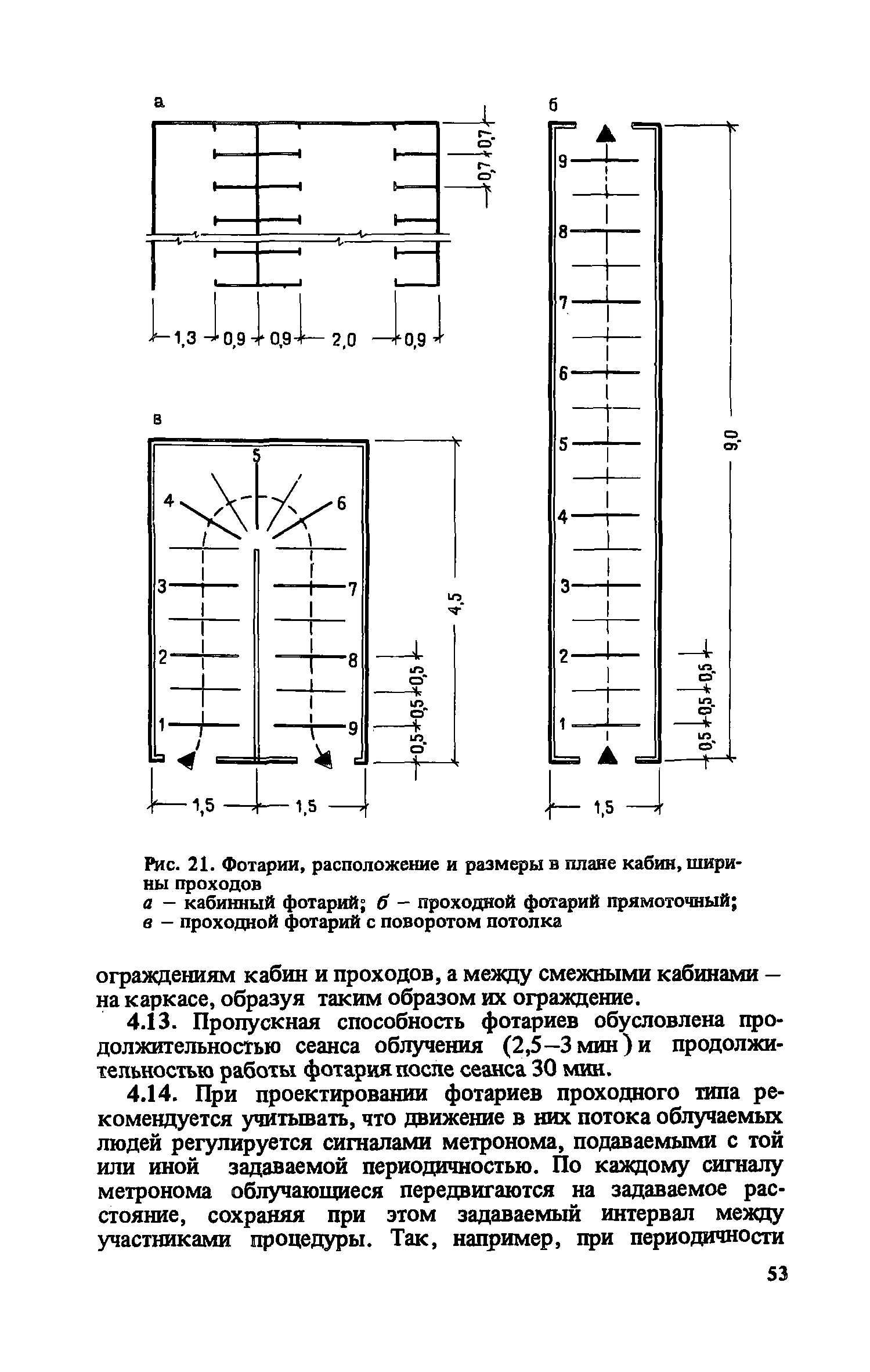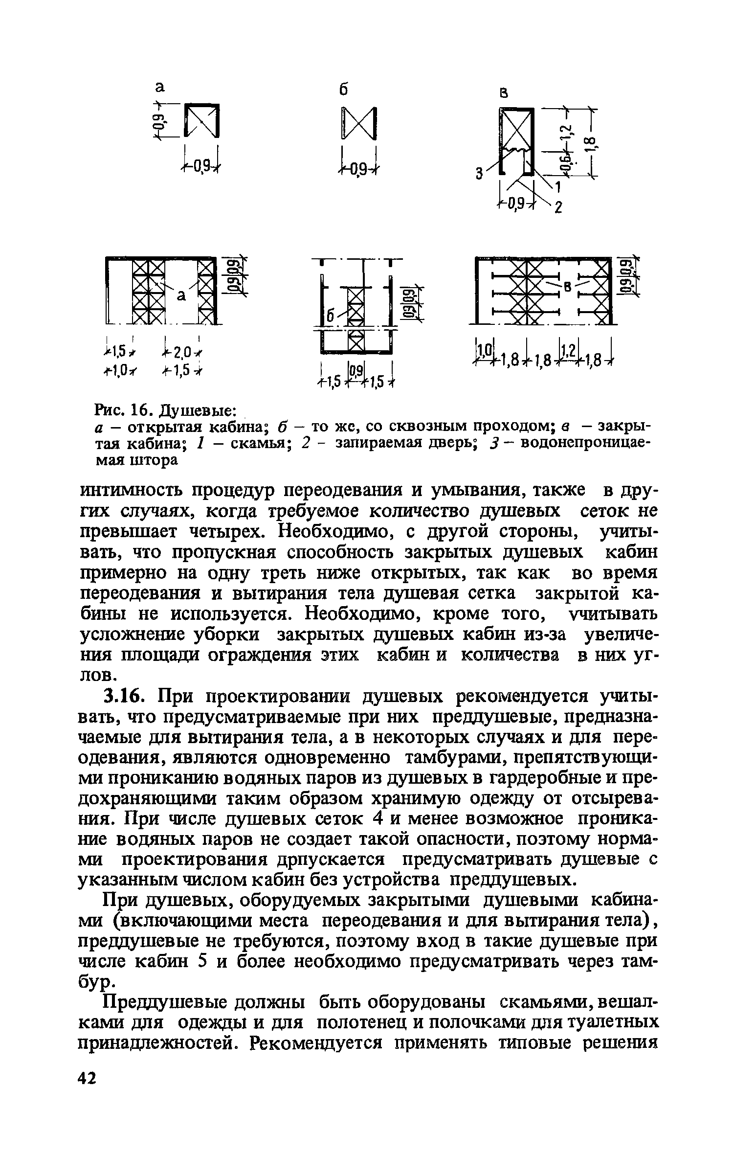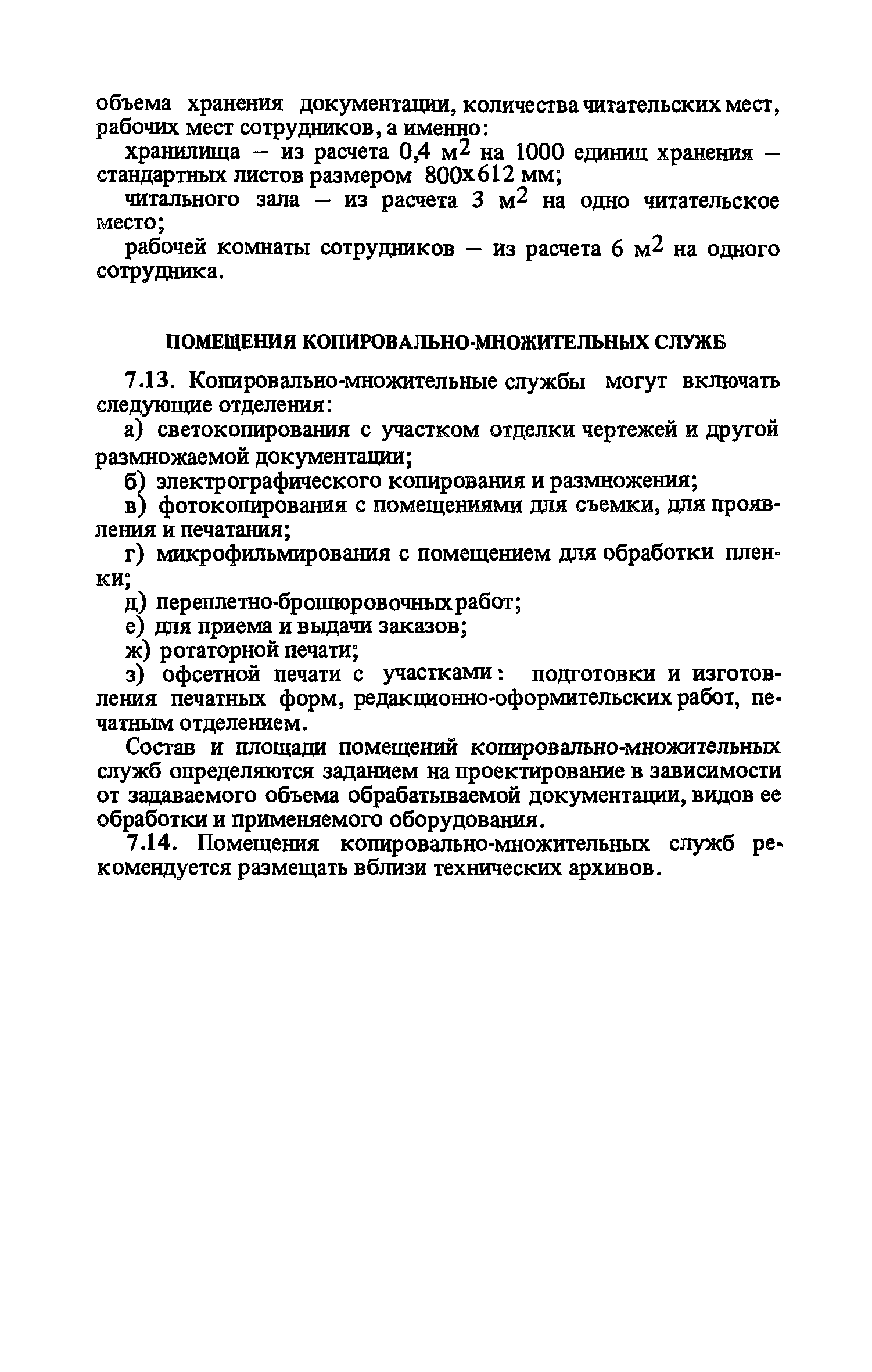 | Оглавление: | 1. Общие положения Условия и организация труда 2. Объемно-планировочные и конструктивные решения Основные планировочные принципы Разновидности вспомогательных зданий Основные параметры вспомогательных зданий Планировочная организация людских потоков Эвакуация людей из зданий и помещений Помещения и устройства людских коммуникаций 3. Санитарно-бытовые помещения и устройства Гардеробные блоки Гардеробные Душевые Умывальные Полудуши Уборные Курительные Помещения для отдыха в рабочее время, помещения и устройства для обогревания и охлаждения Помещения для стирки, химической щетки, сушки, обеспыливания, обезвреживания и ремонта специальной одежды и обуви 4. Помещения здравоохранения Здравпункты Ингалятории Фотарии Помещения для личной гигиены женщин 5. Помещения общественного питания 6. Помещения культурного обслуживания Красные уголки Залы собраний Площадки для гимнастических упражнений и спортивных игр Кабинеты политического просвещения 7. Помещения административно-технического назначения. Рабочие помещения Технические библиотеки Технические архивы Помещения копировально-множительных служб Приложение 1. Укрупненные показатели расхода площади вспомогательных помещений Приложение 2. Санитарная характеристика производственных процессов Приложение 3. Перечень профессий работающих с указанием групп производственных процессов и необходимых санитарно-бытовых помещений и устройств (форма) Приложение 4. Перечень профессий работающих с указанием групп производственных процессов и необходимых санитарно-бытовых помещений и устройств (пример заполнения) |