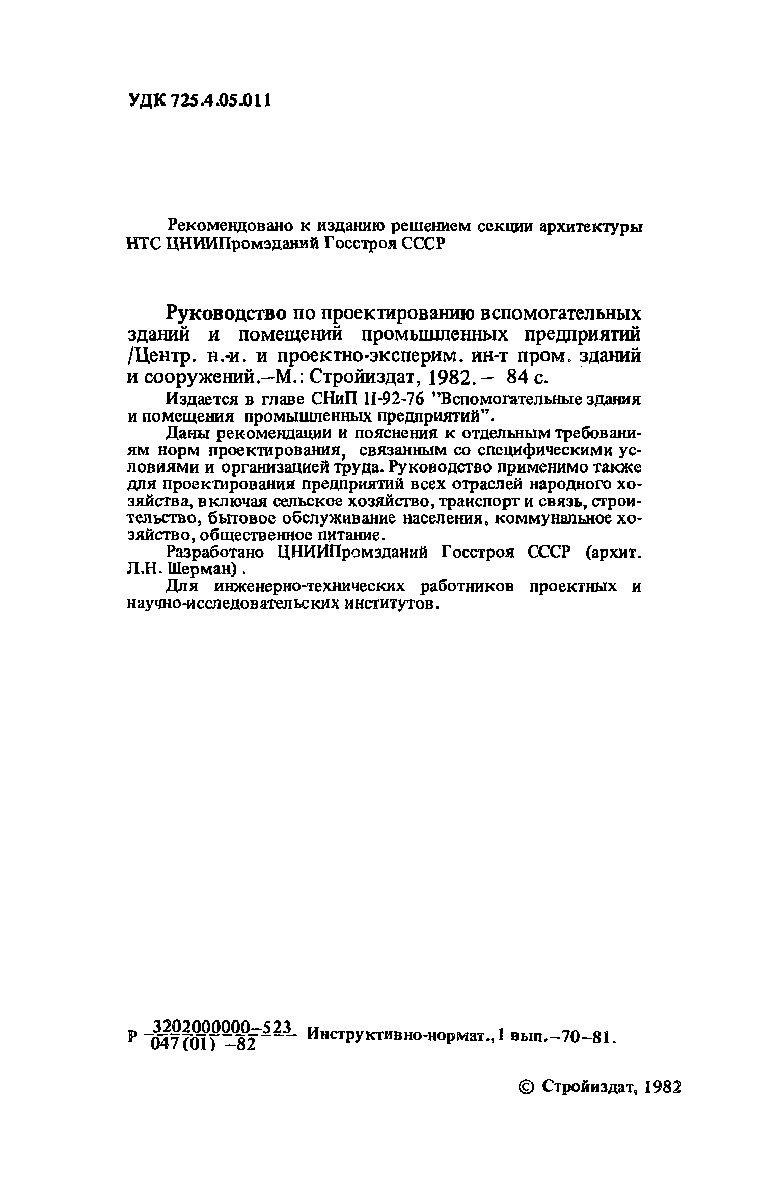| Название рус.: | Руководство по проектированию вспомогательных зданий и помещений промышленных предприятий |