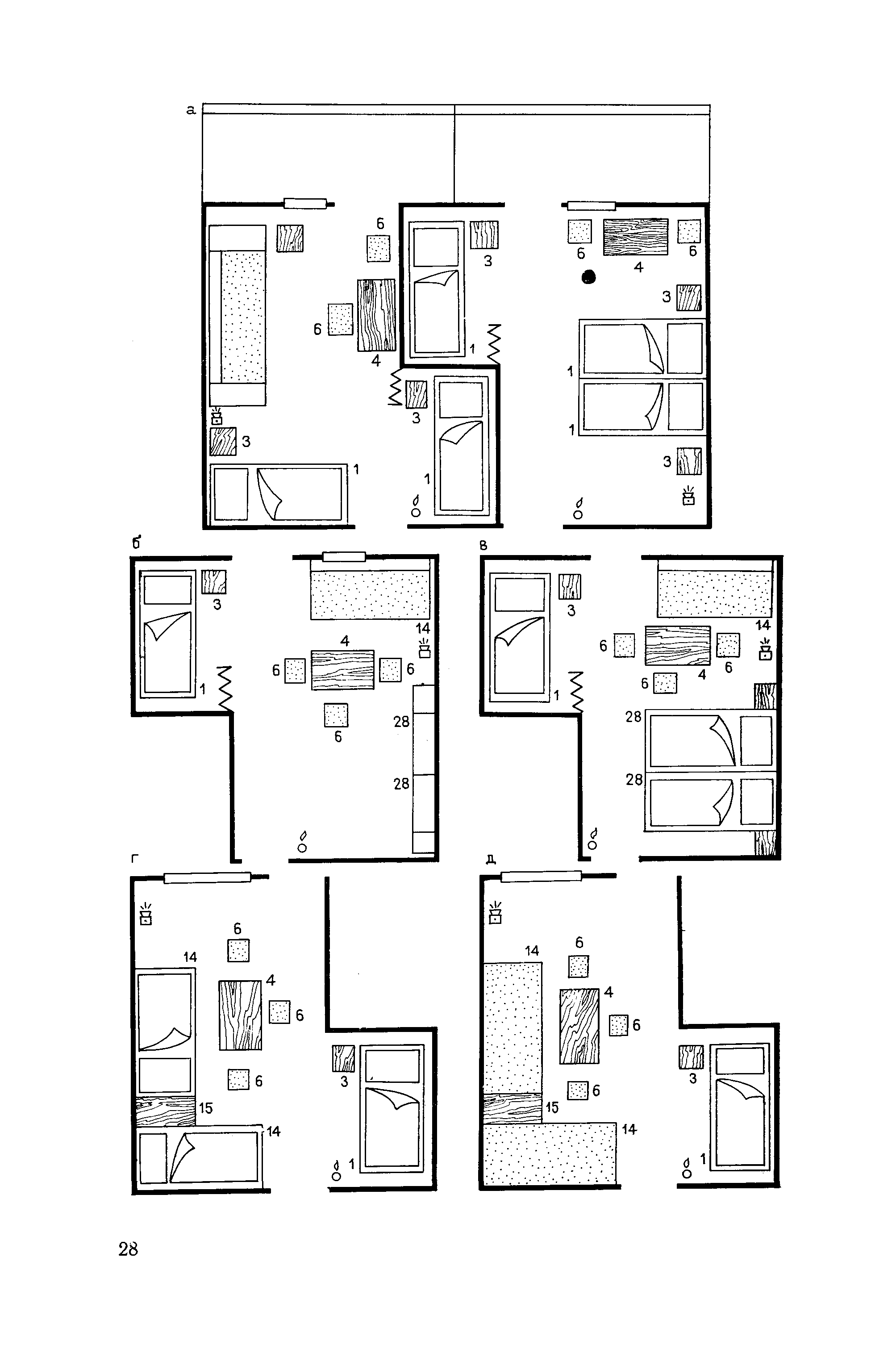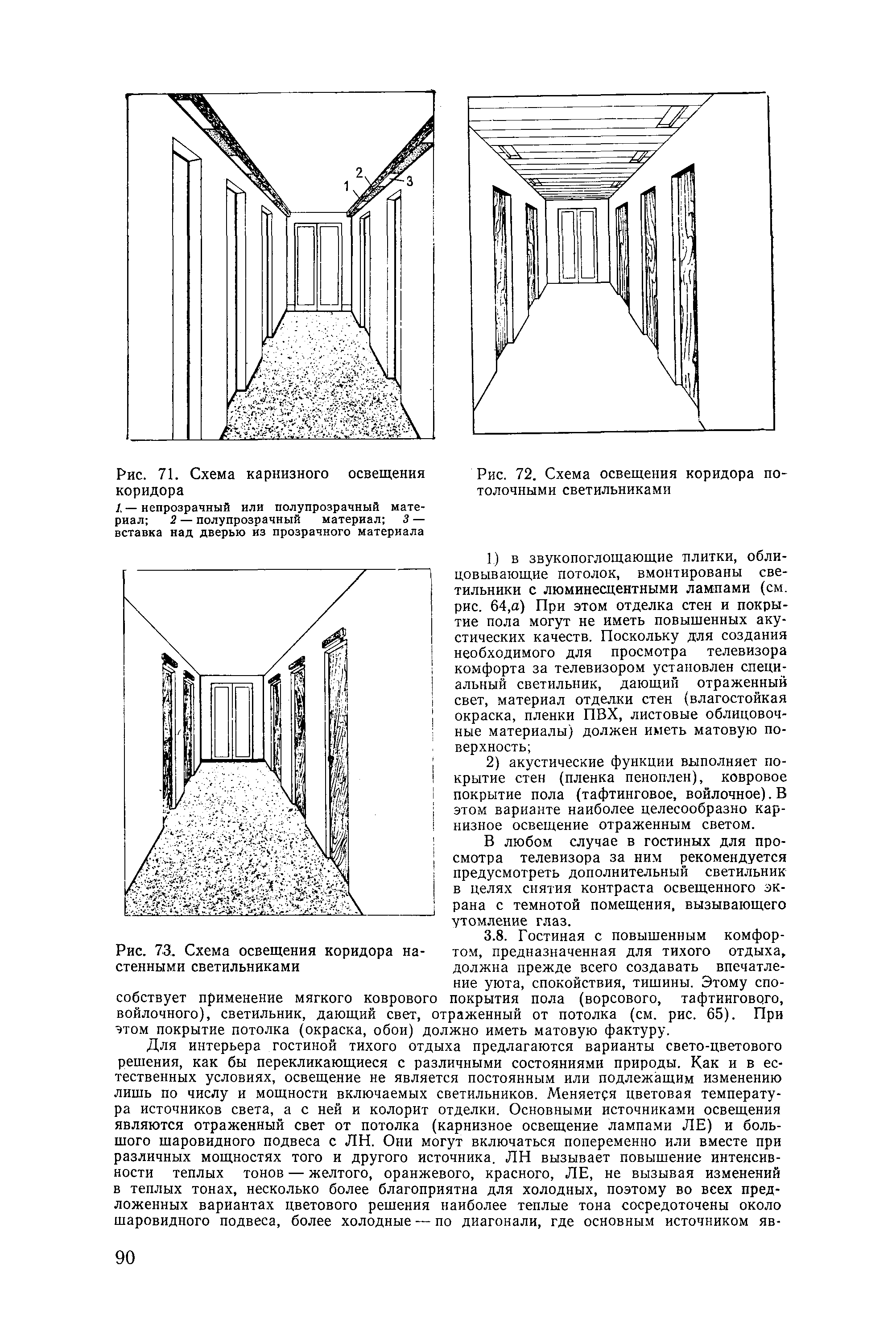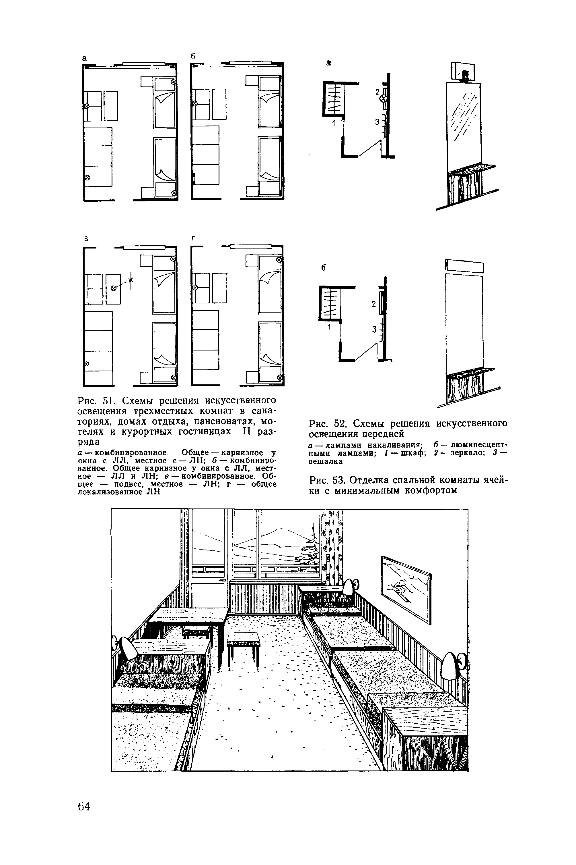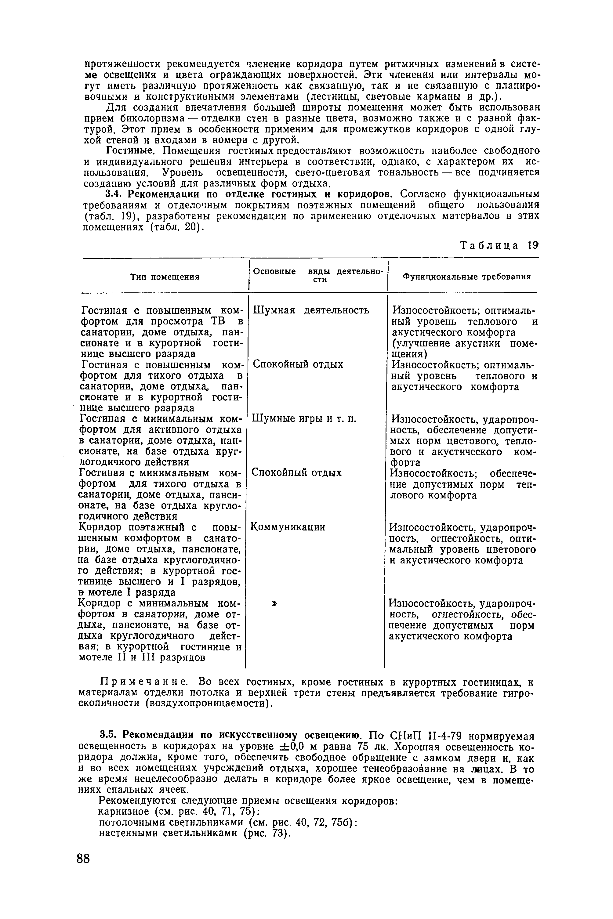 | Оглавление: | Предисловие 1. Общие положения формирования интерьера спальных корпусов 2. Спальные ячейки и номера Спальные комнаты, передние, лоджии Архитектурно-планировочные особенности спальных комнат, передних, лоджии и их оборудования Мебель и оборудование Свето-цветовая среда и отделка спальных ячеек и номеров Санитарные узлы спальных ячеек Отделка и освещение различных типов санузлов спальной ячейки 3. Поэтажные помещения общего пользования Архитектурно-планировочные особенности Мебель и оборудование Свето-цветовая среда и отделка поэтажных помещений общего пользования Приложение 1. Номенклатура материалов покрытия пола Приложение 2. Номенклатура материалов отделки стен. потолка и оборудования Приложение 3. Список предприятий-изготовителей отделочных материалов Приложение 4. Примеры рекомендуемых светильников Использованная литература |