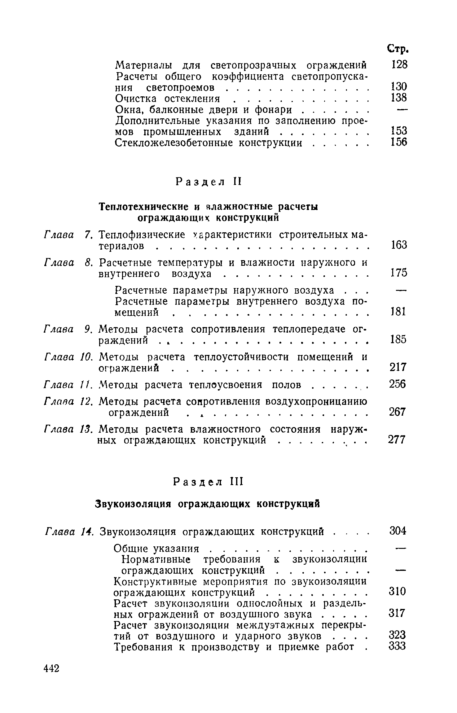 | Оглавление: | Введение Раздел 1. Ограждающие конструкции зданий Глава 1. Общие требования Глава 2. Общие требования, предъявляемые к наружным и внутренним стенам Конструкции наружных стен Классификация, рекомендации по конструктивным решениям и применяемые материалы Кирпичные (каменные) стены Крупноблочные стены Панельные стены Стыки панелей наружных стен Глава 3. Внутренние стены Внутренние стены и перегородки Особенности проектирования стен производственных зданий Особенности проектирования стен производственных сельскохозяйственных зданий Шкафы-перегородки Глава 4. Перекрытия и полы Назначение полов и общие положения их проектирования Классификация крупнопанельных перекрытий Конструирование междуэтажных перекрытий Конструирование подвесных самонесущих потолков Конструирование полов Глава 5. Покрытия, чердачные перекрытия и крыши Общие указания Покрытия Чердачные перекрытия Кровли и водостоки Глава 6. Окна, световые проемы и другие виды светопрозрачных ограждений Указания по выбору светопрозрачных ограждений Материалы для светопрозрачных ограждений Расчеты общего коэффициента светопропускания светопроемов Очистка остекления Окна, балконные двери и фонари Дополнительные указания по заполнению проемов промышленных зданий Стекложелезобетонные конструкции Раздел II. Теплотехнические и влажностные расчеты ограждающих конструкций Глава 7. Теплофизические характеристики строительных материалов Глава 8. Расчетные температуры и влажности наружного и внутреннего воздуха Расчетные параметры наружного воздуха Расчетные параметры внутреннего воздуха помещений Глава 9. Методы расчета сопротивления теплопередаче ограждений Глава 10. Методы расчета теплоустойчивости помещений и ограждений Глава 11. Методы расчета теплоусвоения полов Глава 12. Методы расчета сопротивления воздухопроницанию ограждений Глава 13. Методы расчета влажностного состояния наружных ограждающих конструкций Раздел III. Звукоизоляция ограждающих конструкций Глава 14. Звукоизоляция ограждающих конструкций Общие указания Нормативные требования к звукоизоляции ограждающих конструкций Конструктивные мероприятия по звукоизоляции ограждающих конструкций Расчет звукоизоляции однослойных и раздельных ограждений от воздушного звука Расчет звукоизоляции междуэтажных перекрытий от воздушного и ударного звуков Требования к производству и приемке работ Раздел IV. Долговечность ограждающих конструкций Глава 15. Методы оценки долговечности ограждающих конструкций Раздел V. Экономика тепло-звукоизоляции зданий Глава 16. Технико-экономические показатели теплоизоляционных материалов Глава 17. Определение оптимального сопротивления теплопередаче наружных ограждений зданий Приложения |