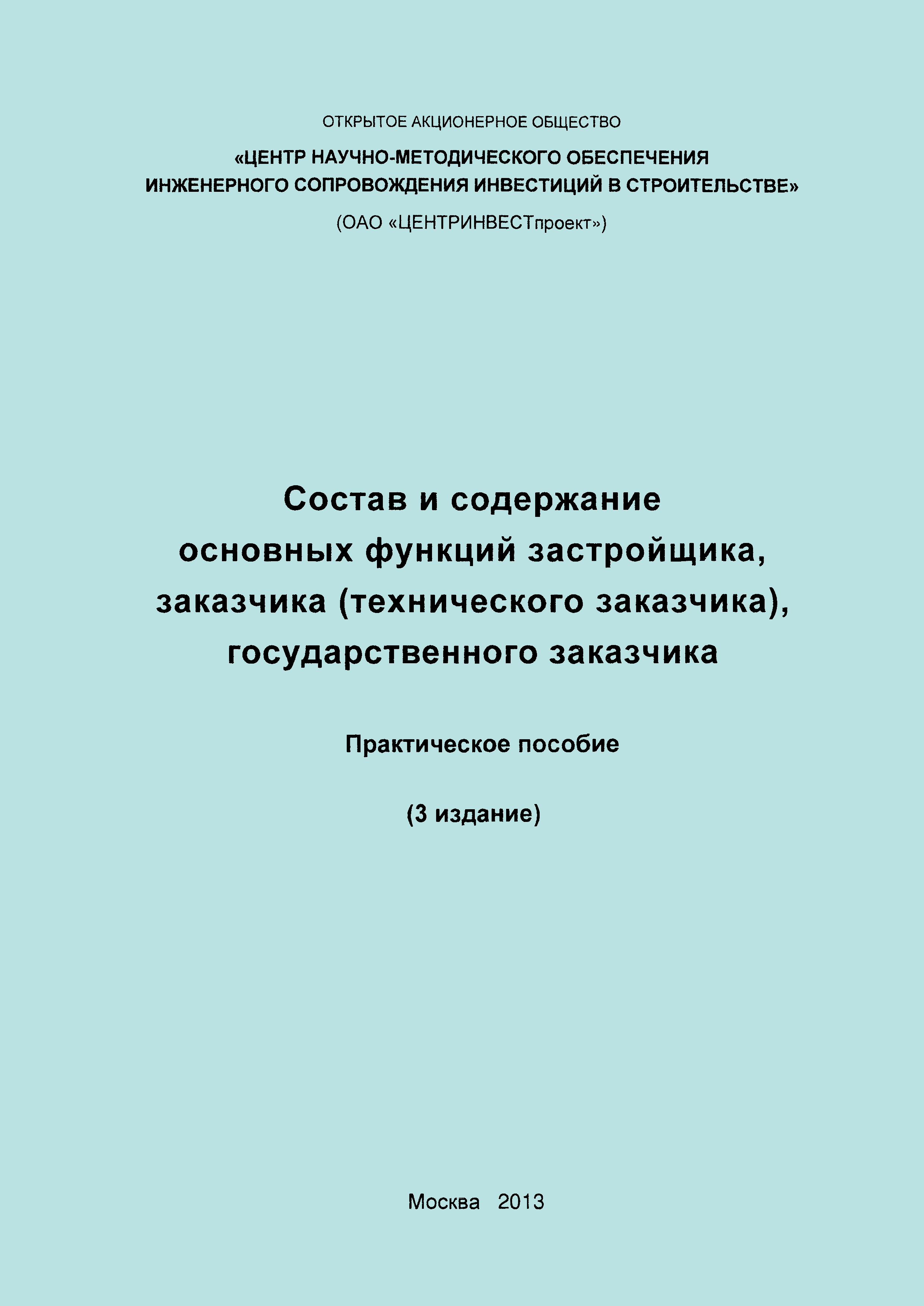 Скачать Состав и содержание основных функций застройщика, заказчика (технического заказчика), государственного заказчика. Практическое пособиеДата актуализации: 01.01.2021