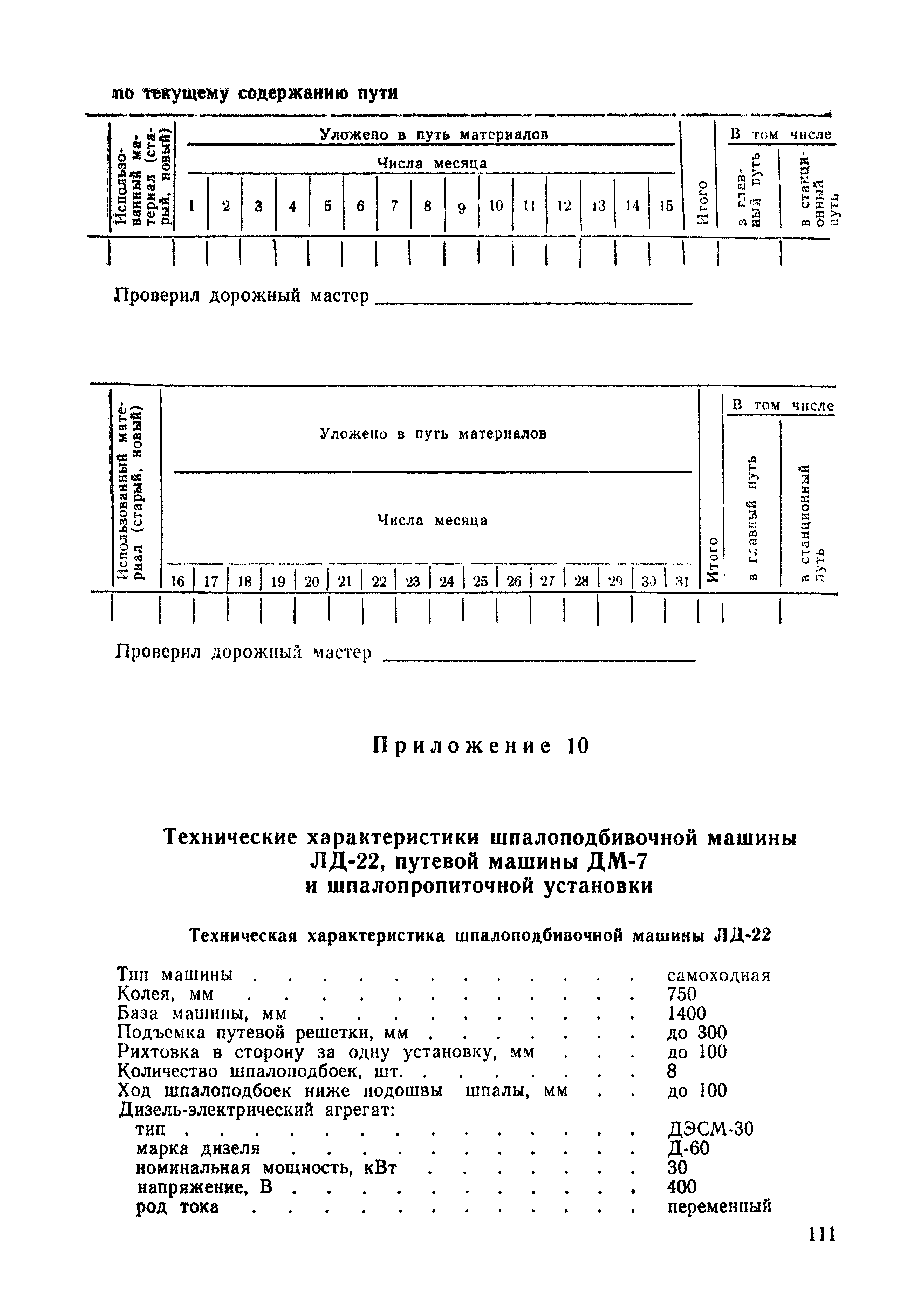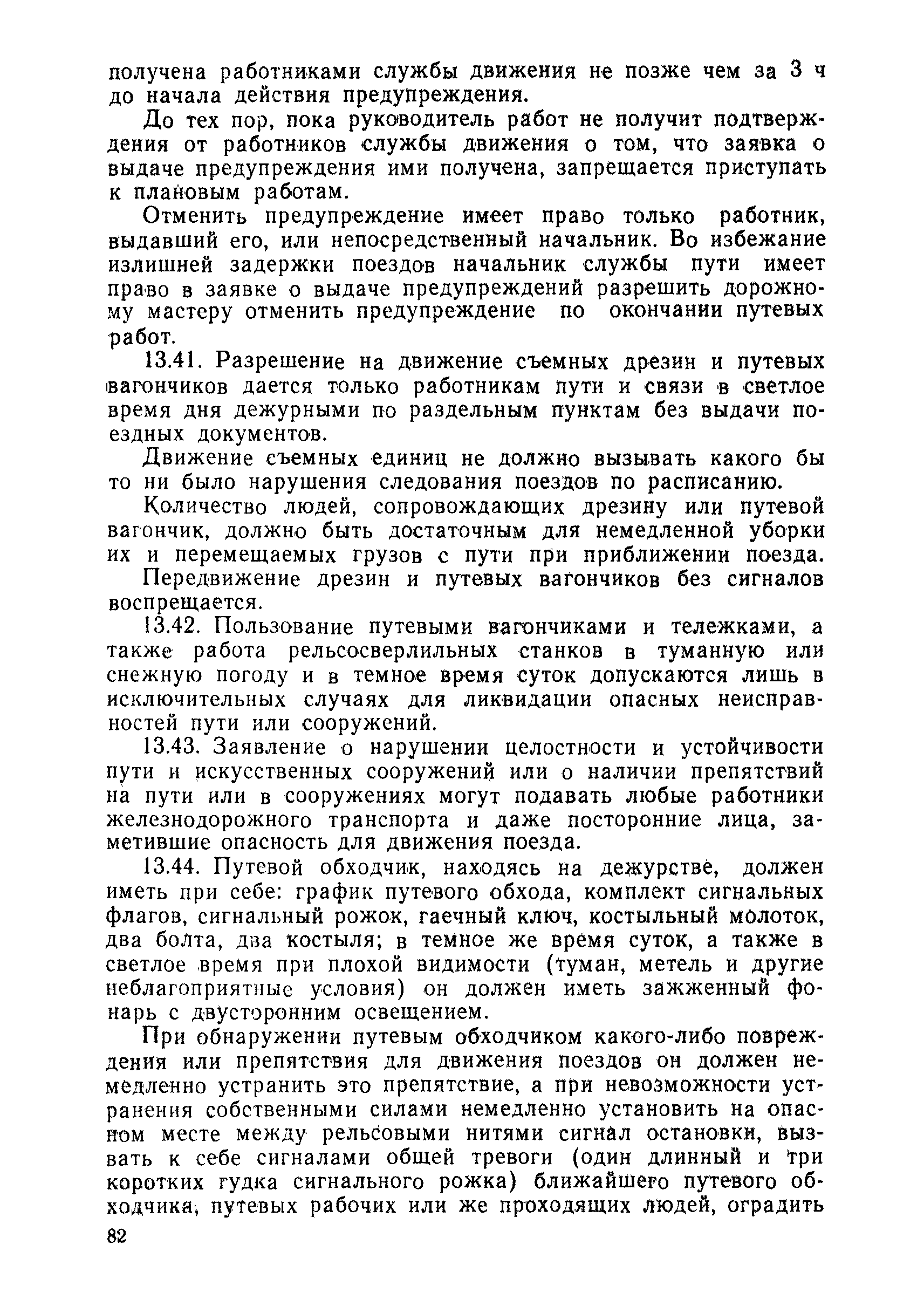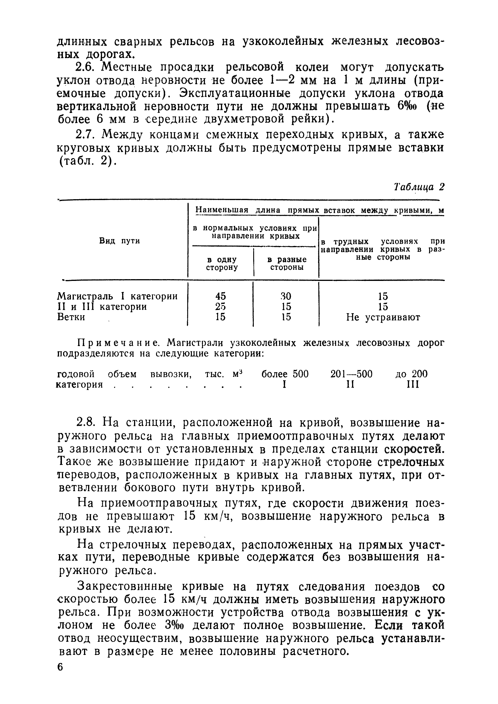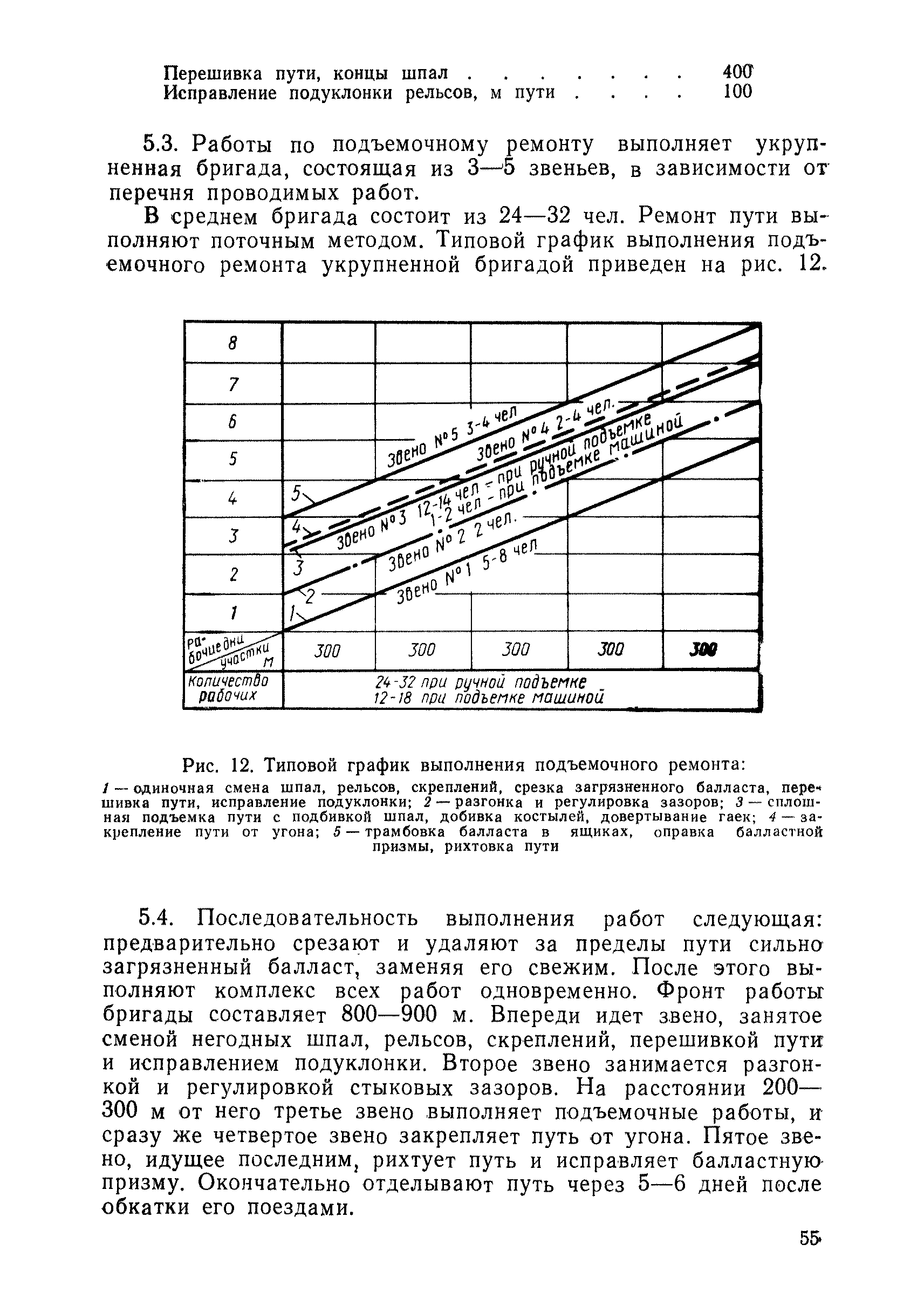 | Оглавление: | 1 Основные положения 2 Технические условия и нормы содержания пути 3 Предупреждение появления в пути неисправностей 4 Планирование и организация работ но текущему содержанию пути 5 Подъемочный ремонт пути 6 Капитальный ремонт и реконструкция пути 7 Звеньевая укладка и разборка временных путей и блочных стрелочных переводов 8 Особенности содержания пути на усах 9 Организация консервирования шпал 10 Периодические проверки и оценка состояния пути 11 Содержание и хранение механизмов, приборов, инструментов и материалов 12 Организация снегоборьбы 13 Основные правила техники безопасности Приложение 1. Рельсы Приложение 2. Скрепления. Накладки Приложение 3. Типовые поперечные профили верхнего строения узкоколейных железных лесовозных дорог Приложение 4. Порядок размещения шпал на звене Приложение 5. Шпалы и переводные брусья Приложение 6. Переезды Приложение 7. Типовые поверечные профили земляного полотна узкоколейных железных лесовозных дорог Приложение 8. Стрелочные переводы Приложение 9. График работ по текущему содержанию и оценке состояния пути и путевых устройств Приложение 10. Технические характеристики шпалоподбивочной машины ЛД-22, путевой машины ДМ-7 и шпалопропиточной установки Приложение 11. Технические характеристики путевых механизмов Приложение 12. Табель инструмента, сигнальных принадлежностей и инвентаря для бригад по текущему содержанию пути Приложение 13. Технические характеристики строительно-ремонтного поезда ТУ6СП, путеперекладчика ППР-2МА, крановой установки ЛТ-110 Приложение 14. Книга осмотра пути и сооружений Приложение 15. Книга проверки пути Приложение 16. Характеристика тягового и подвижного состава Приложение 17. Нормы расхода материалов на текущее содержание узкоколейных железных лесовозных дорог и нормы покилометрового запаса Приложение 18. Снеговые щиты Приложение 19. Книга записи предупреждений, выдаваемых на поезда Приложение 20. Обязательство |
