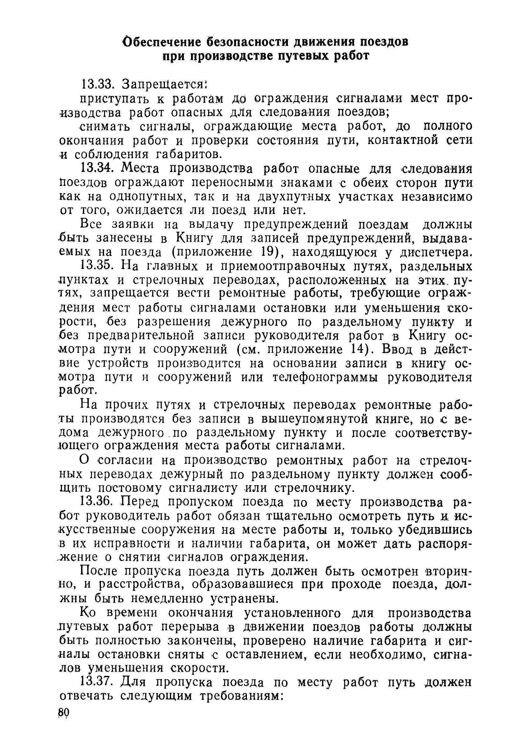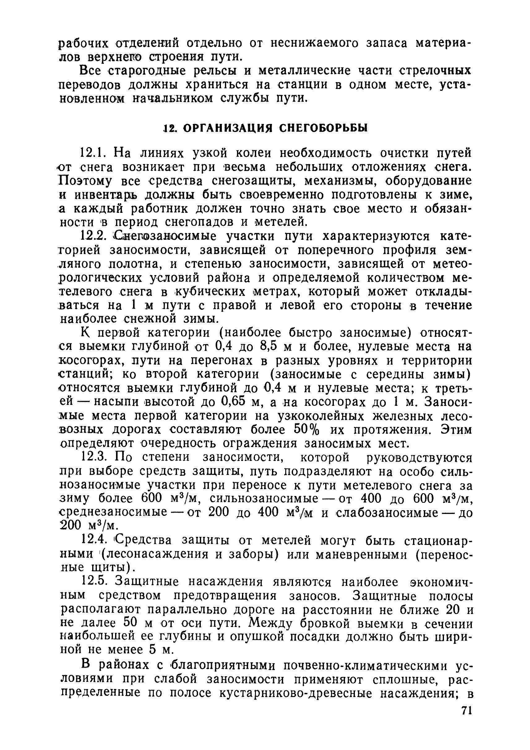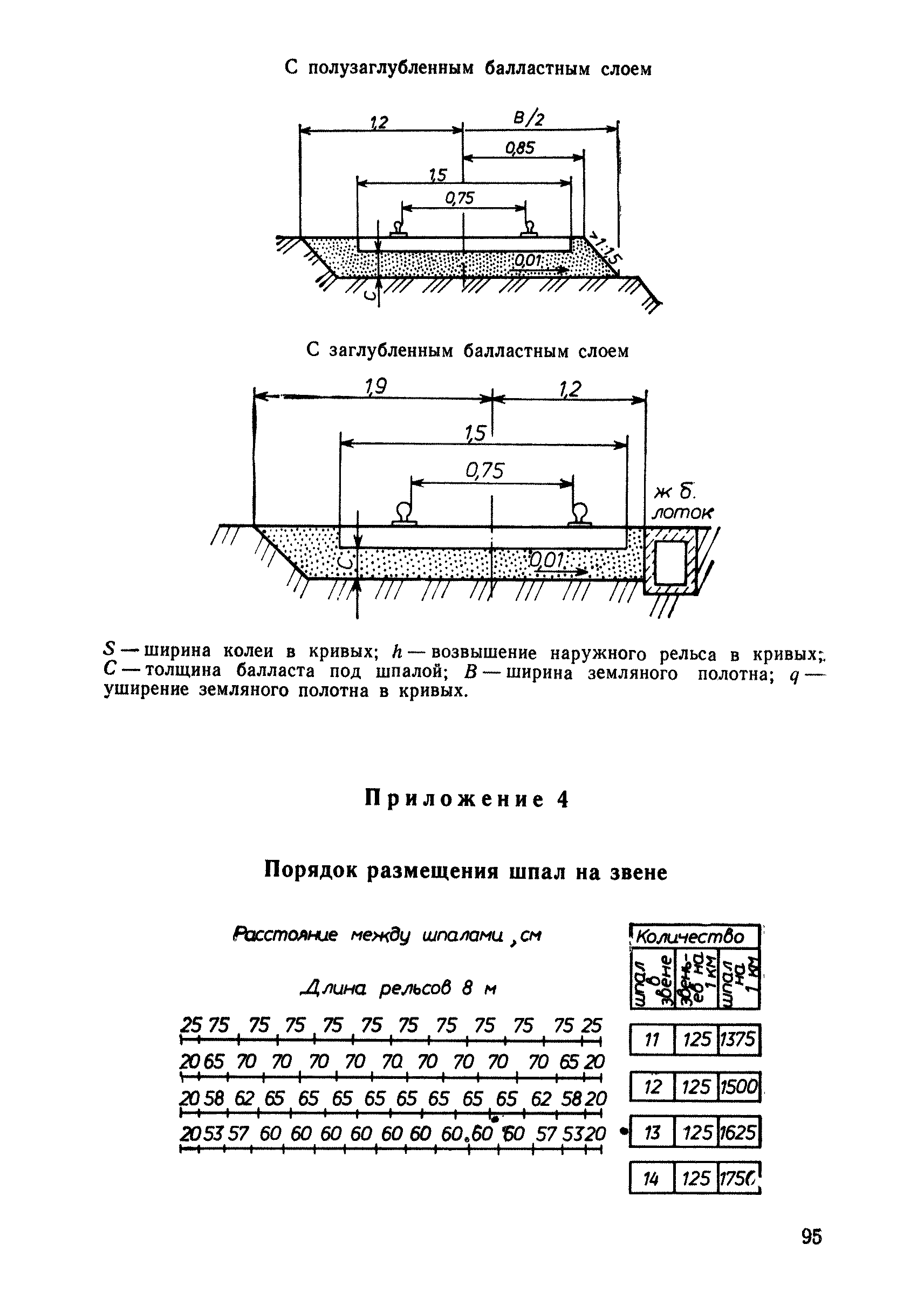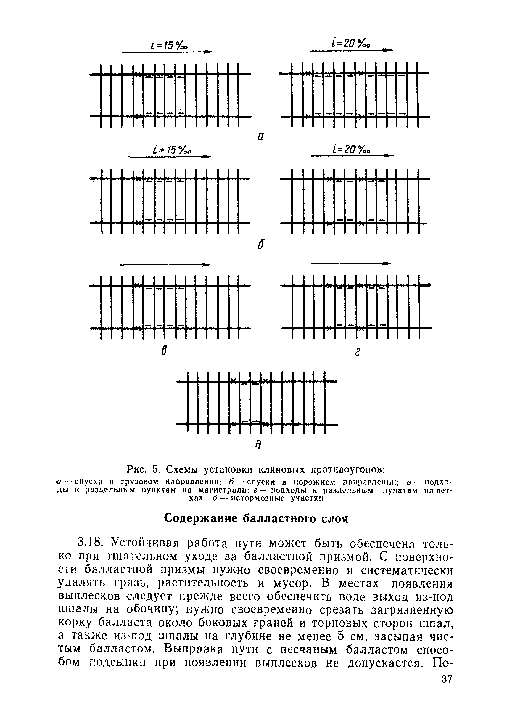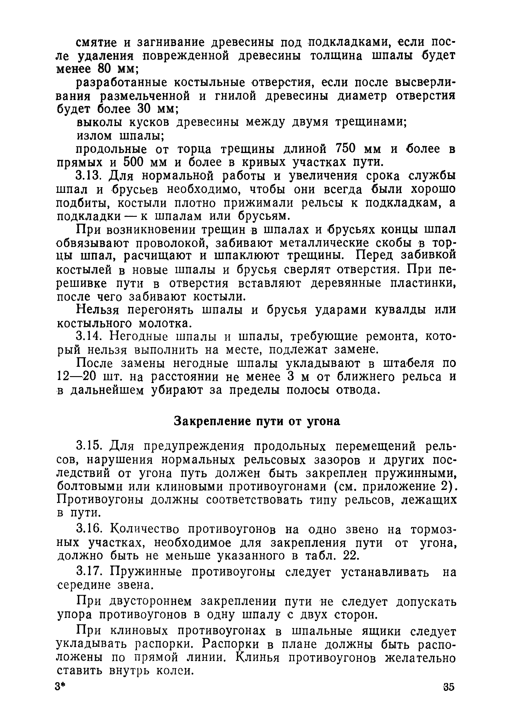 | Оглавление: | 1 Основные положения 2 Технические условия и нормы содержания пути 3 Предупреждение появления в пути неисправностей 4 Планирование и организация работ но текущему содержанию пути 5 Подъемочный ремонт пути 6 Капитальный ремонт и реконструкция пути 7 Звеньевая укладка и разборка временных путей и блочных стрелочных переводов 8 Особенности содержания пути на усах 9 Организация консервирования шпал 10 Периодические проверки и оценка состояния пути 11 Содержание и хранение механизмов, приборов, инструментов и материалов 12 Организация снегоборьбы 13 Основные правила техники безопасности Приложение 1. Рельсы Приложение 2. Скрепления. Накладки Приложение 3. Типовые поперечные профили верхнего строения узкоколейных железных лесовозных дорог Приложение 4. Порядок размещения шпал на звене Приложение 5. Шпалы и переводные брусья Приложение 6. Переезды Приложение 7. Типовые поверечные профили земляного полотна узкоколейных железных лесовозных дорог Приложение 8. Стрелочные переводы Приложение 9. График работ по текущему содержанию и оценке состояния пути и путевых устройств Приложение 10. Технические характеристики шпалоподбивочной машины ЛД-22, путевой машины ДМ-7 и шпалопропиточной установки Приложение 11. Технические характеристики путевых механизмов Приложение 12. Табель инструмента, сигнальных принадлежностей и инвентаря для бригад по текущему содержанию пути Приложение 13. Технические характеристики строительно-ремонтного поезда ТУ6СП, путеперекладчика ППР-2МА, крановой установки ЛТ-110 Приложение 14. Книга осмотра пути и сооружений Приложение 15. Книга проверки пути Приложение 16. Характеристика тягового и подвижного состава Приложение 17. Нормы расхода материалов на текущее содержание узкоколейных железных лесовозных дорог и нормы покилометрового запаса Приложение 18. Снеговые щиты Приложение 19. Книга записи предупреждений, выдаваемых на поезда Приложение 20. Обязательство |