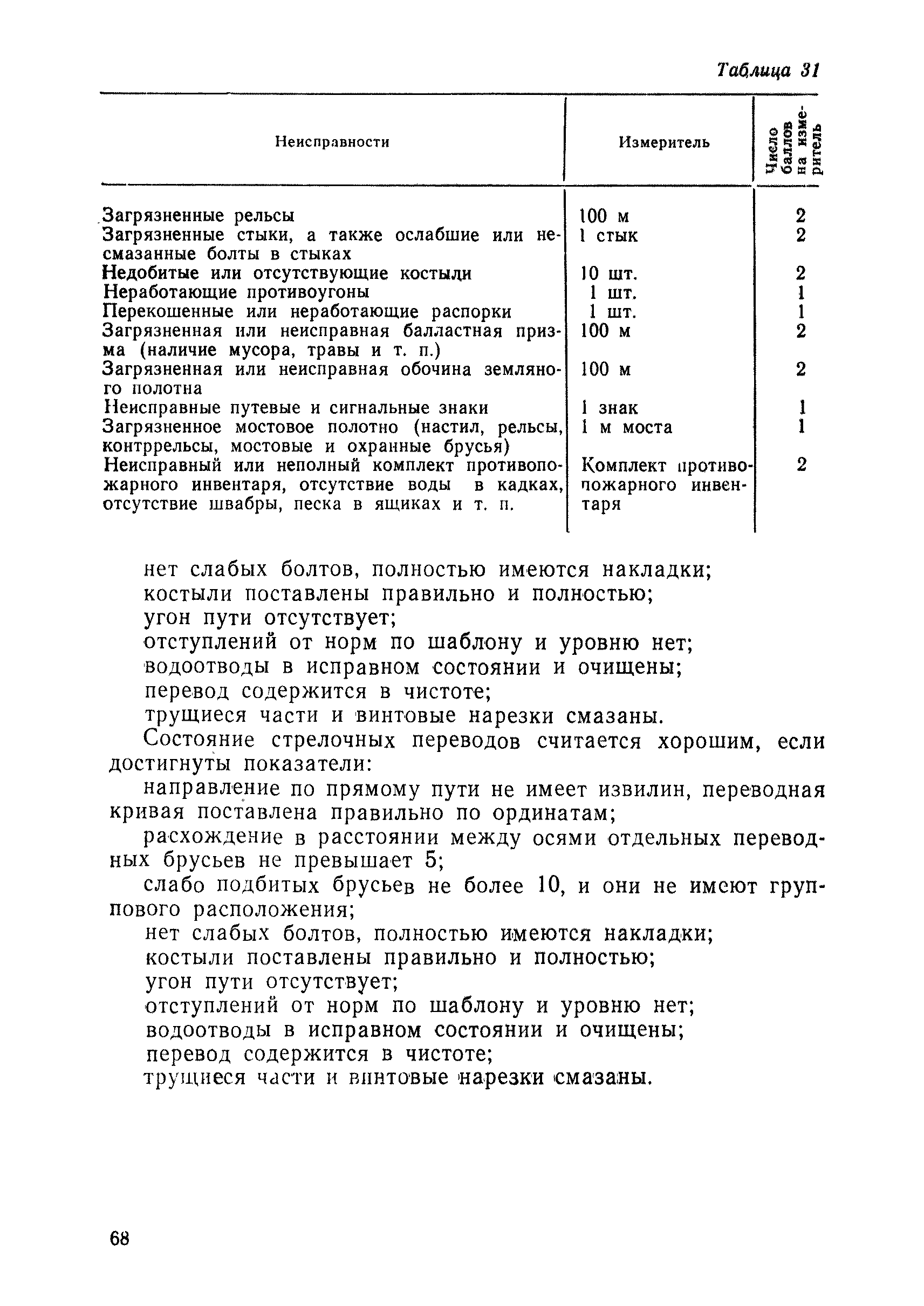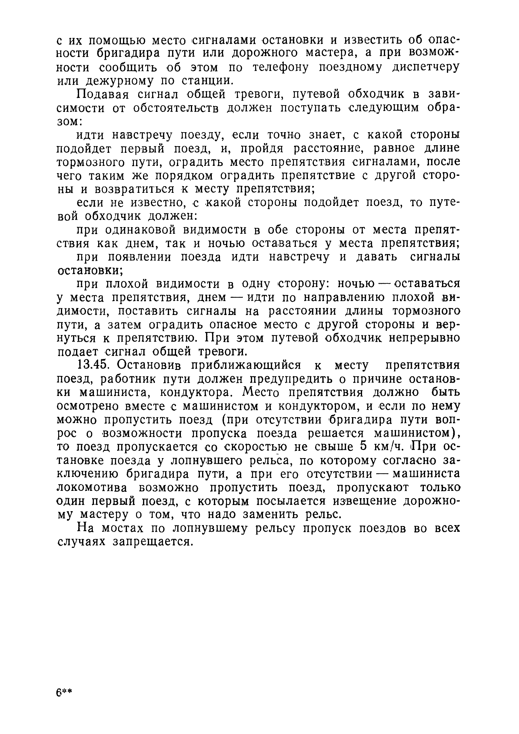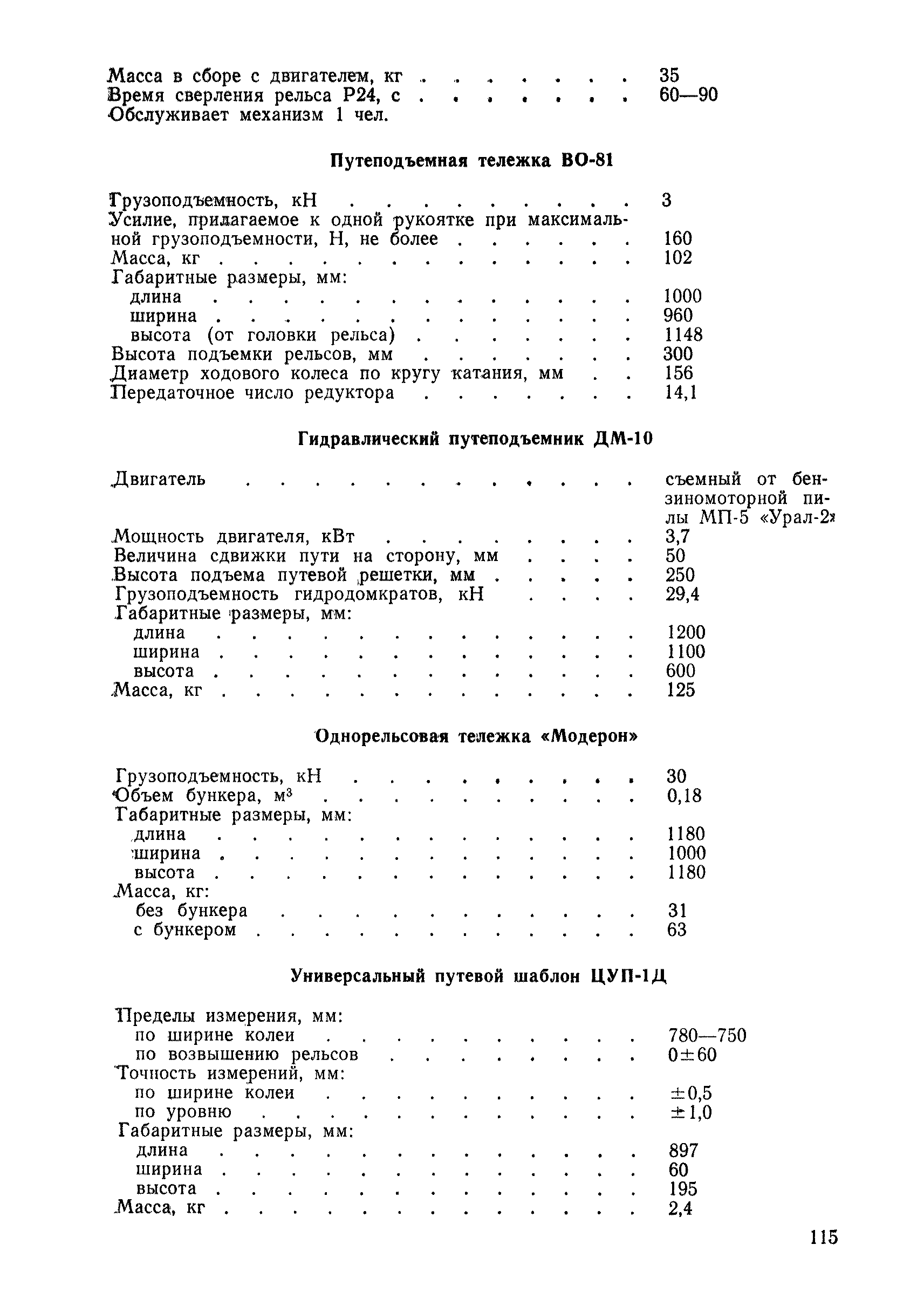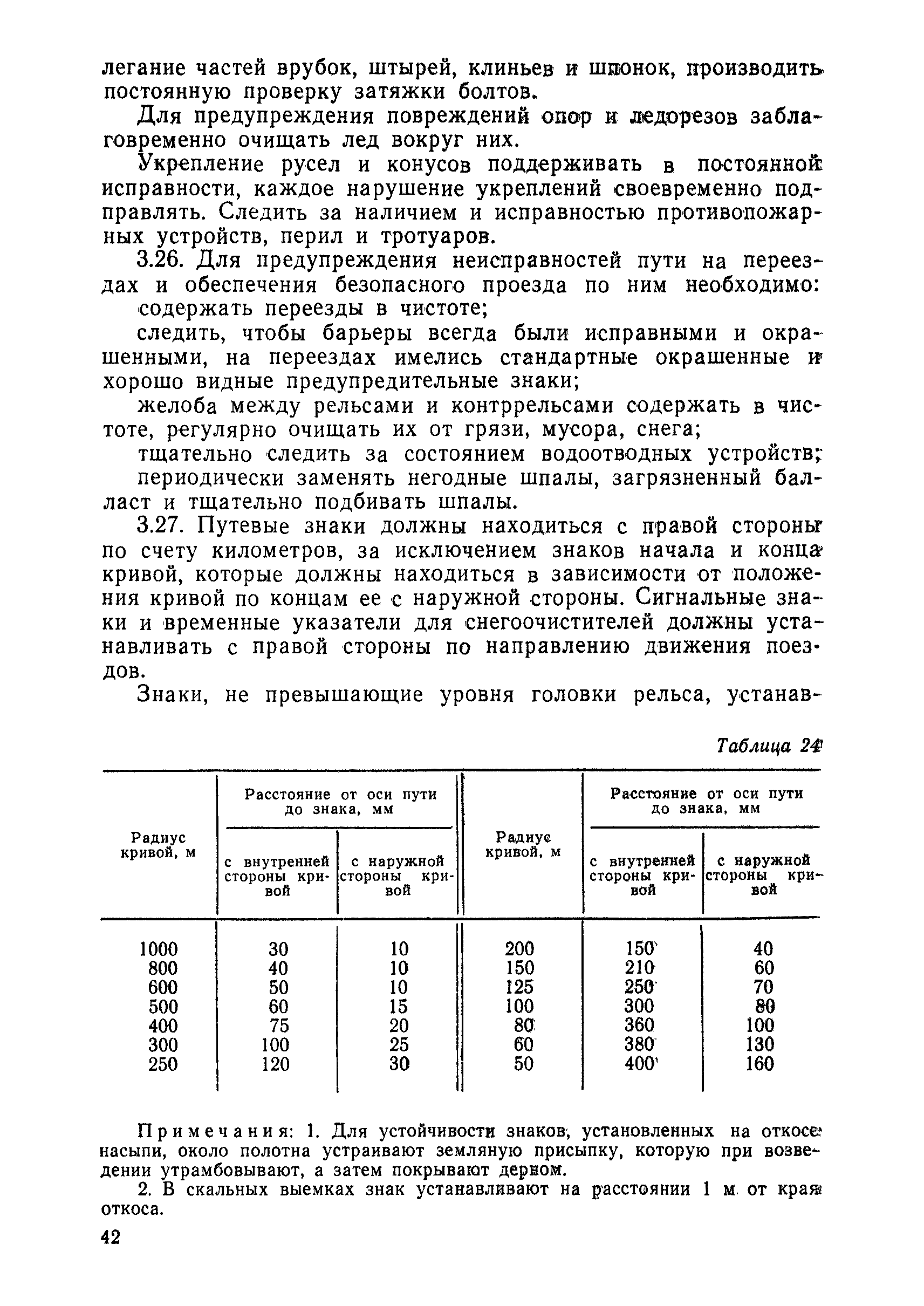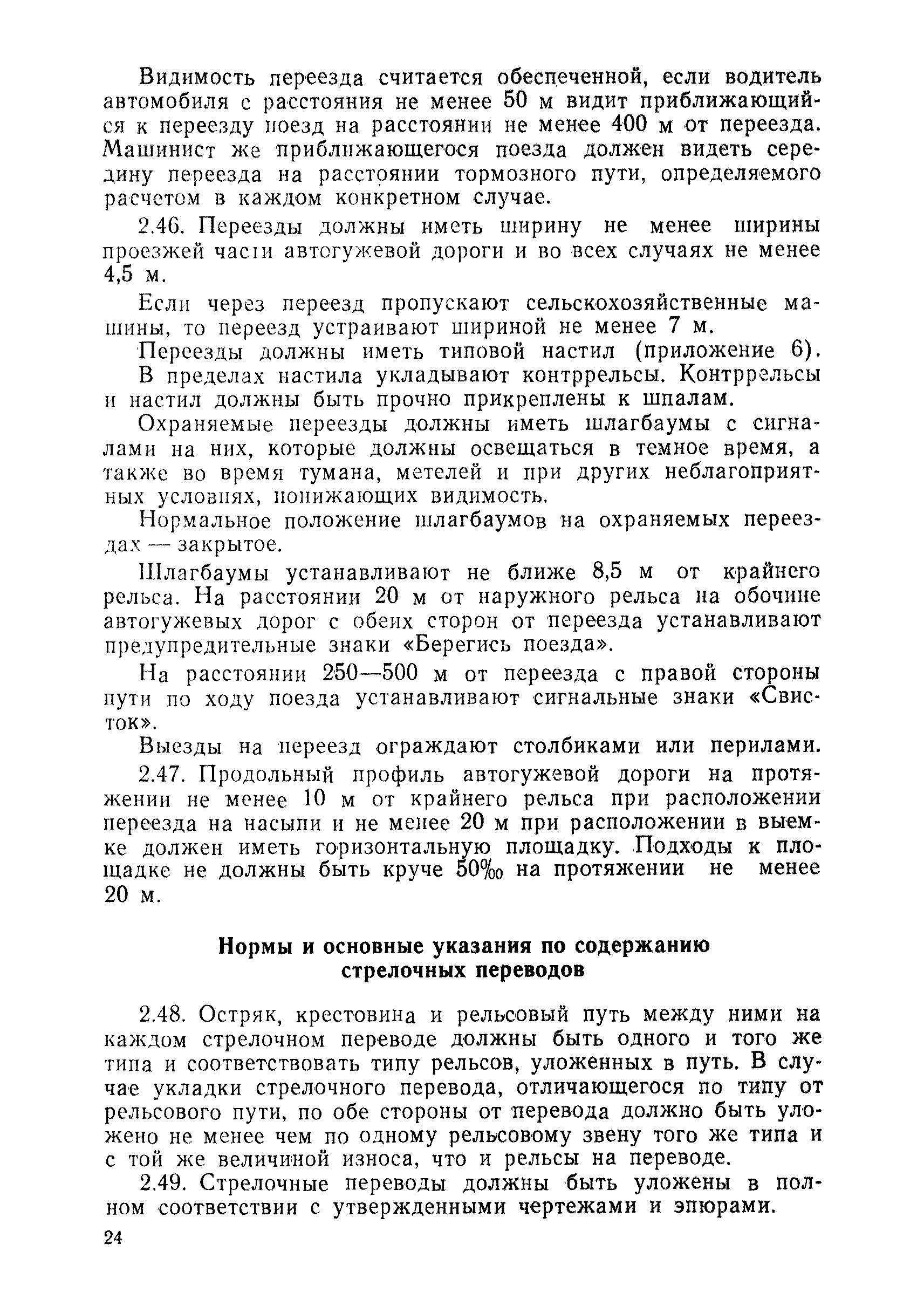 | Оглавление: | 1 Основные положения 2 Технические условия и нормы содержания пути 3 Предупреждение появления в пути неисправностей 4 Планирование и организация работ но текущему содержанию пути 5 Подъемочный ремонт пути 6 Капитальный ремонт и реконструкция пути 7 Звеньевая укладка и разборка временных путей и блочных стрелочных переводов 8 Особенности содержания пути на усах 9 Организация консервирования шпал 10 Периодические проверки и оценка состояния пути 11 Содержание и хранение механизмов, приборов, инструментов и материалов 12 Организация снегоборьбы 13 Основные правила техники безопасности Приложение 1. Рельсы Приложение 2. Скрепления. Накладки Приложение 3. Типовые поперечные профили верхнего строения узкоколейных железных лесовозных дорог Приложение 4. Порядок размещения шпал на звене Приложение 5. Шпалы и переводные брусья Приложение 6. Переезды Приложение 7. Типовые поверечные профили земляного полотна узкоколейных железных лесовозных дорог Приложение 8. Стрелочные переводы Приложение 9. График работ по текущему содержанию и оценке состояния пути и путевых устройств Приложение 10. Технические характеристики шпалоподбивочной машины ЛД-22, путевой машины ДМ-7 и шпалопропиточной установки Приложение 11. Технические характеристики путевых механизмов Приложение 12. Табель инструмента, сигнальных принадлежностей и инвентаря для бригад по текущему содержанию пути Приложение 13. Технические характеристики строительно-ремонтного поезда ТУ6СП, путеперекладчика ППР-2МА, крановой установки ЛТ-110 Приложение 14. Книга осмотра пути и сооружений Приложение 15. Книга проверки пути Приложение 16. Характеристика тягового и подвижного состава Приложение 17. Нормы расхода материалов на текущее содержание узкоколейных железных лесовозных дорог и нормы покилометрового запаса Приложение 18. Снеговые щиты Приложение 19. Книга записи предупреждений, выдаваемых на поезда Приложение 20. Обязательство |
