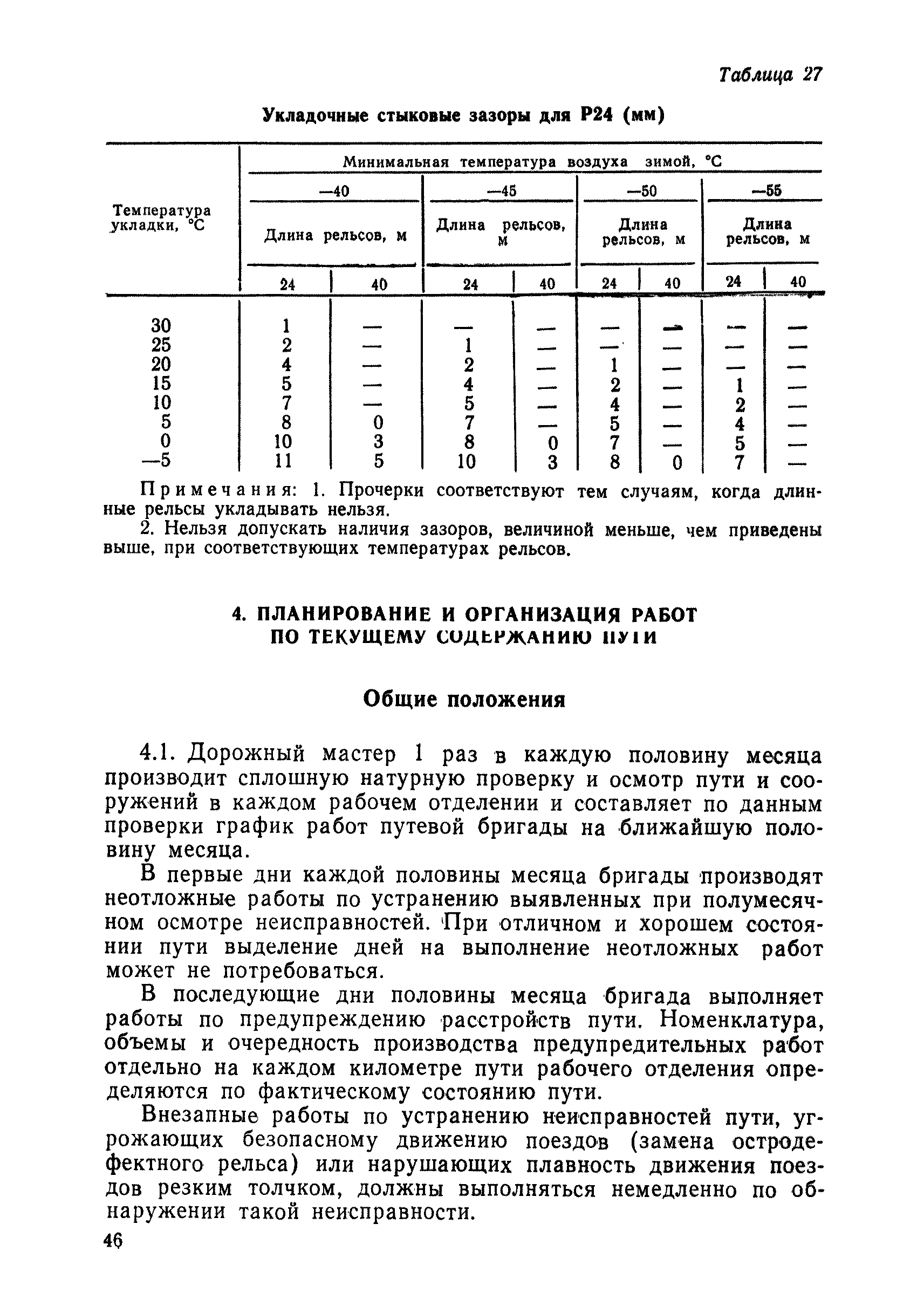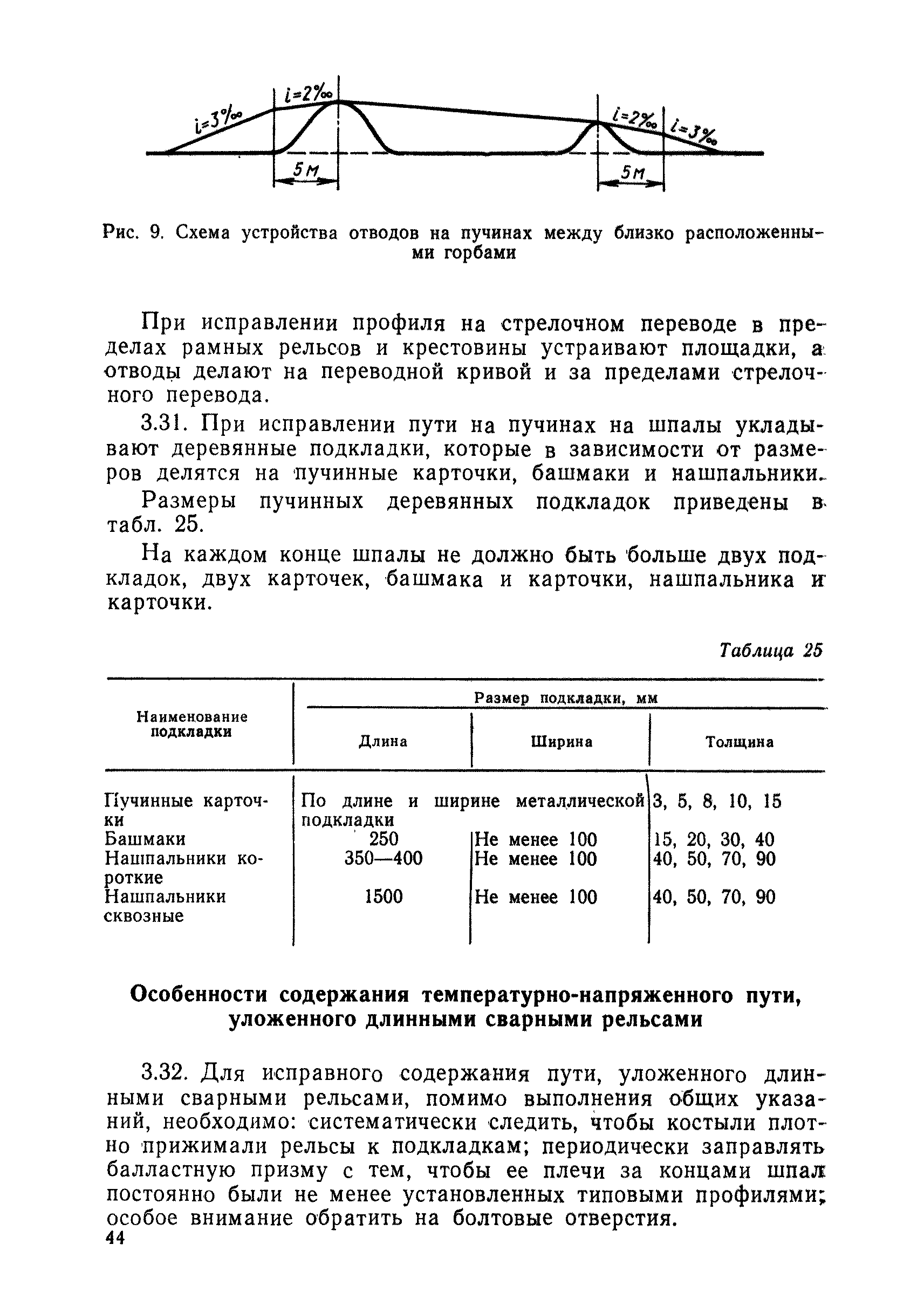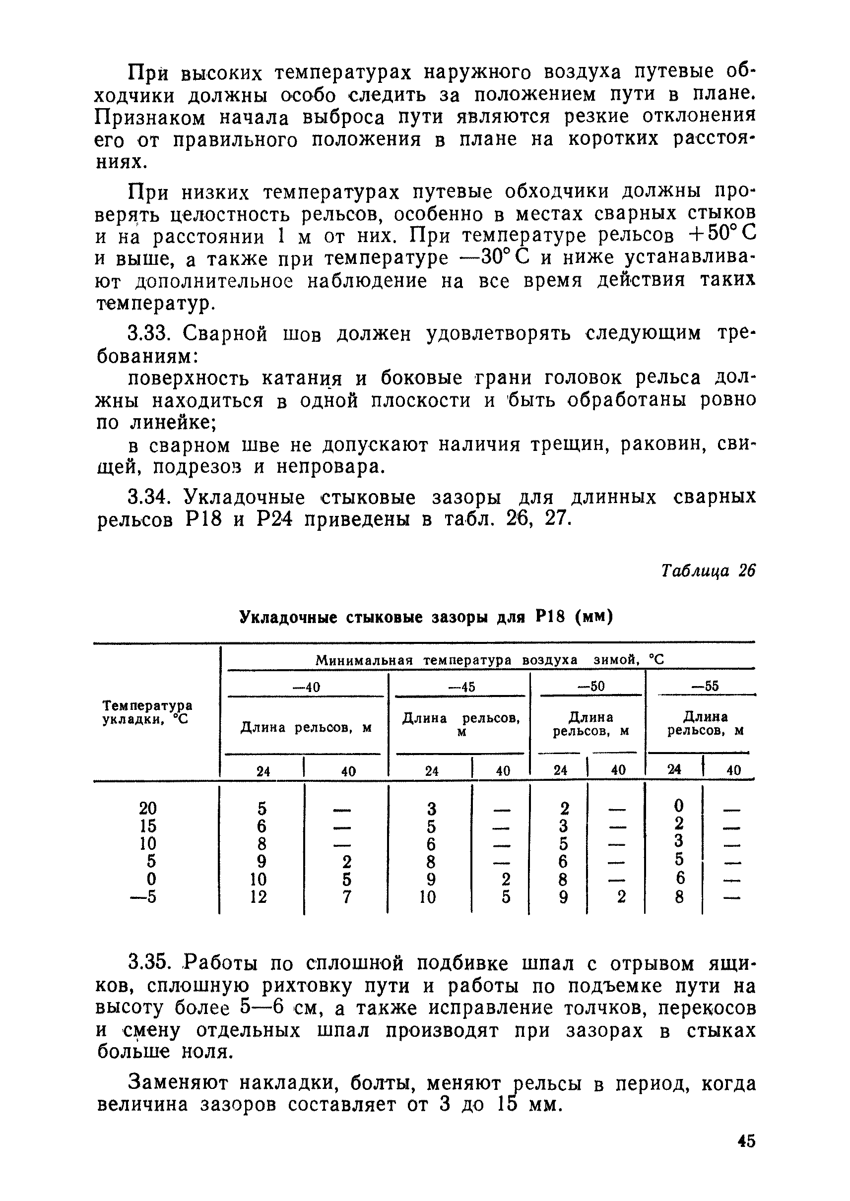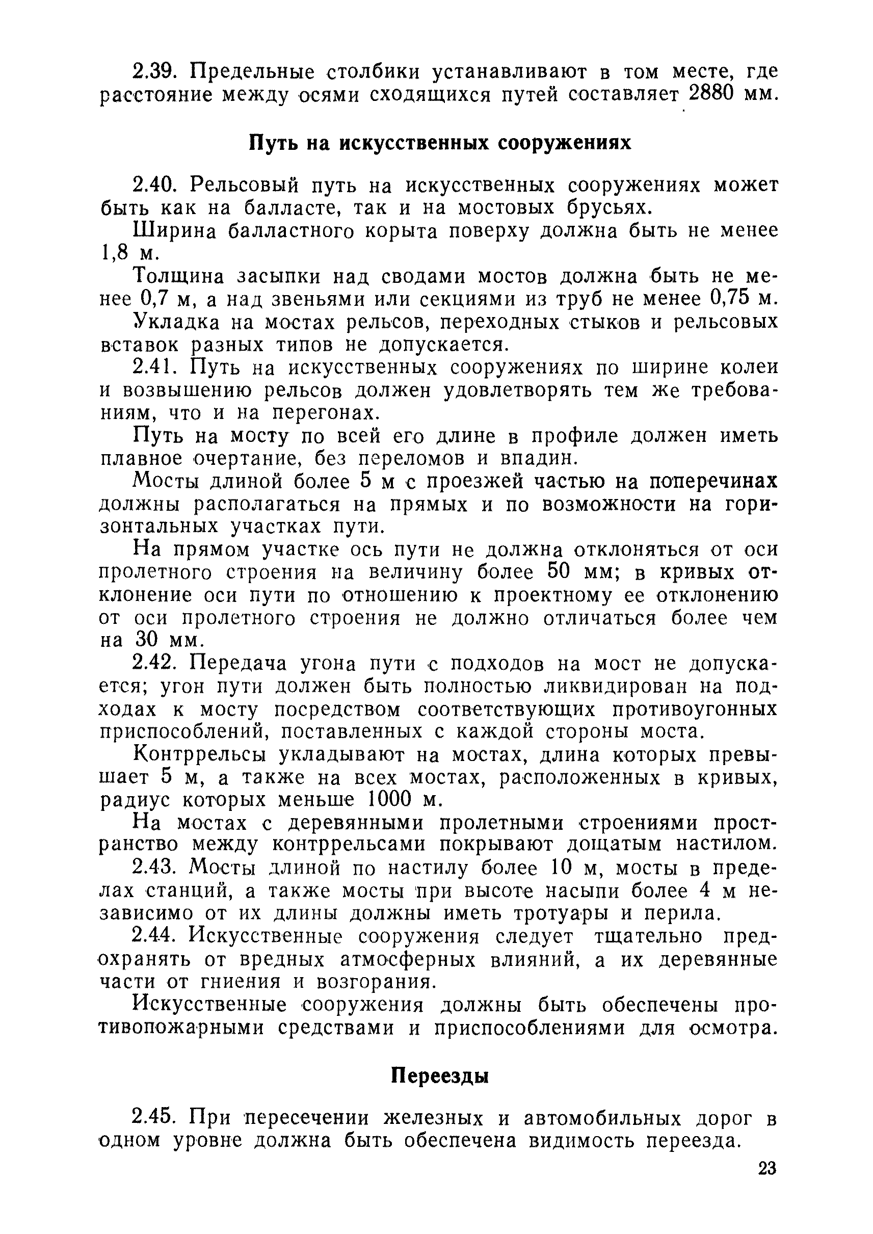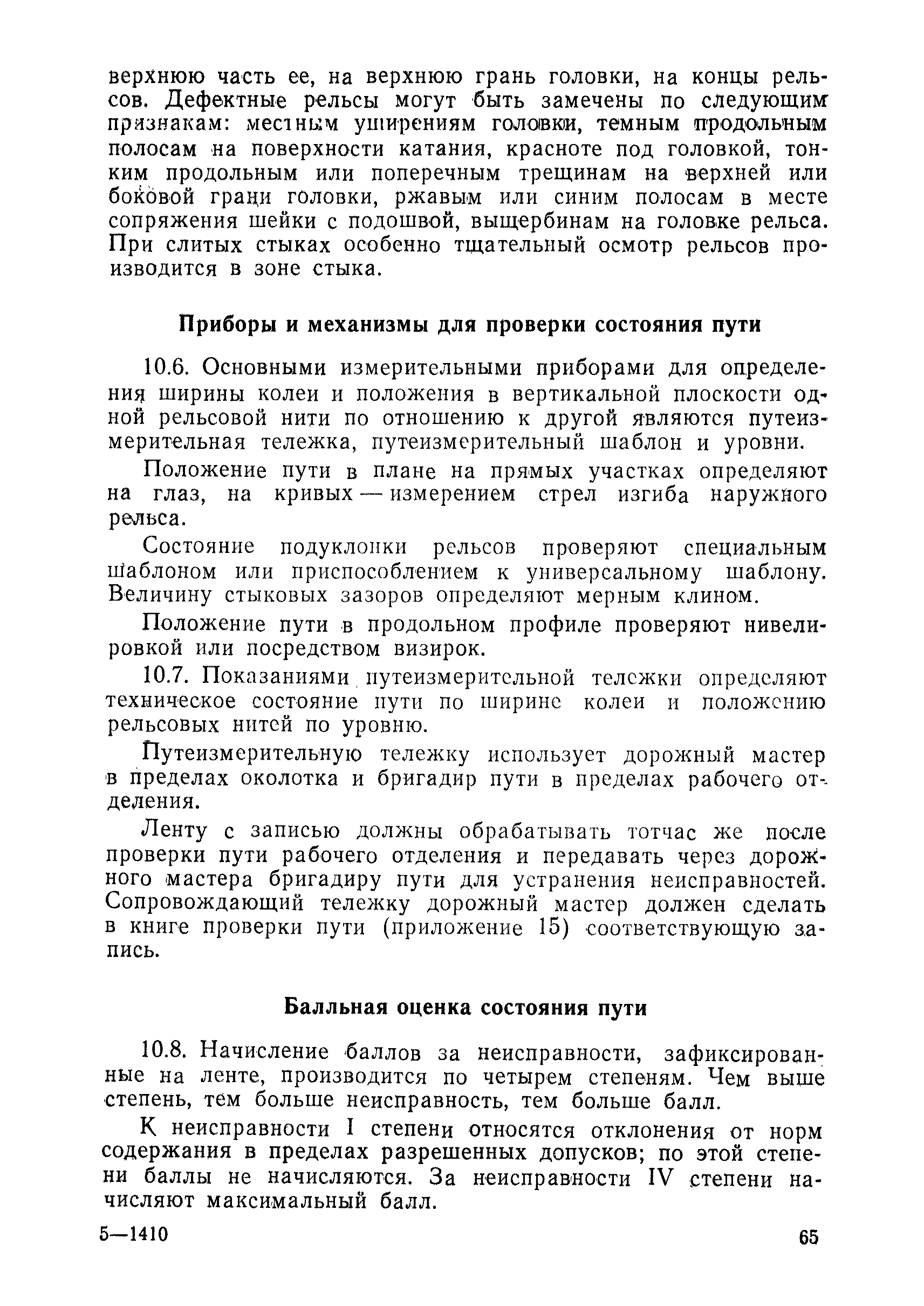 | Оглавление: | 1 Основные положения 2 Технические условия и нормы содержания пути 3 Предупреждение появления в пути неисправностей 4 Планирование и организация работ но текущему содержанию пути 5 Подъемочный ремонт пути 6 Капитальный ремонт и реконструкция пути 7 Звеньевая укладка и разборка временных путей и блочных стрелочных переводов 8 Особенности содержания пути на усах 9 Организация консервирования шпал 10 Периодические проверки и оценка состояния пути 11 Содержание и хранение механизмов, приборов, инструментов и материалов 12 Организация снегоборьбы 13 Основные правила техники безопасности Приложение 1. Рельсы Приложение 2. Скрепления. Накладки Приложение 3. Типовые поперечные профили верхнего строения узкоколейных железных лесовозных дорог Приложение 4. Порядок размещения шпал на звене Приложение 5. Шпалы и переводные брусья Приложение 6. Переезды Приложение 7. Типовые поверечные профили земляного полотна узкоколейных железных лесовозных дорог Приложение 8. Стрелочные переводы Приложение 9. График работ по текущему содержанию и оценке состояния пути и путевых устройств Приложение 10. Технические характеристики шпалоподбивочной машины ЛД-22, путевой машины ДМ-7 и шпалопропиточной установки Приложение 11. Технические характеристики путевых механизмов Приложение 12. Табель инструмента, сигнальных принадлежностей и инвентаря для бригад по текущему содержанию пути Приложение 13. Технические характеристики строительно-ремонтного поезда ТУ6СП, путеперекладчика ППР-2МА, крановой установки ЛТ-110 Приложение 14. Книга осмотра пути и сооружений Приложение 15. Книга проверки пути Приложение 16. Характеристика тягового и подвижного состава Приложение 17. Нормы расхода материалов на текущее содержание узкоколейных железных лесовозных дорог и нормы покилометрового запаса Приложение 18. Снеговые щиты Приложение 19. Книга записи предупреждений, выдаваемых на поезда Приложение 20. Обязательство |