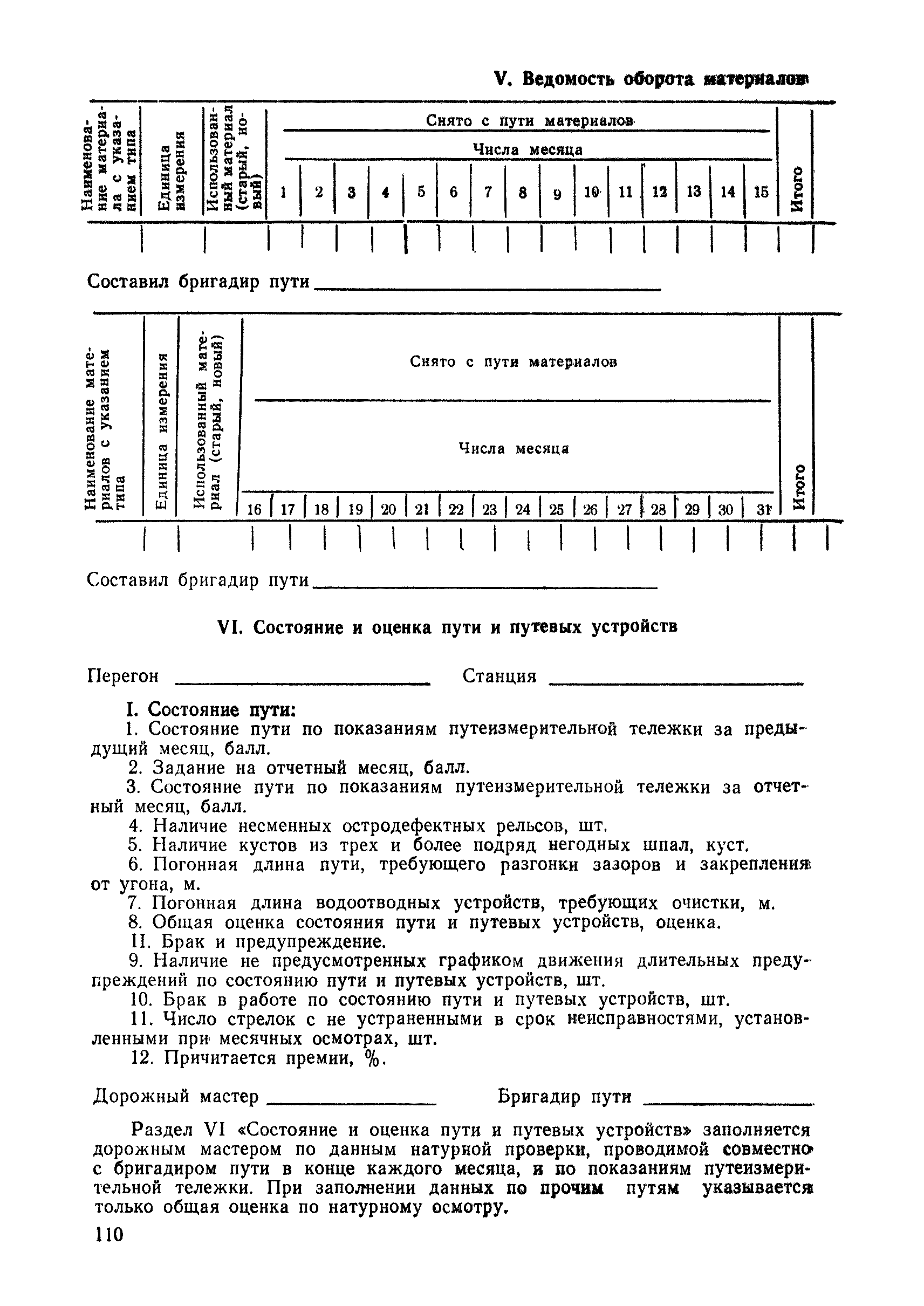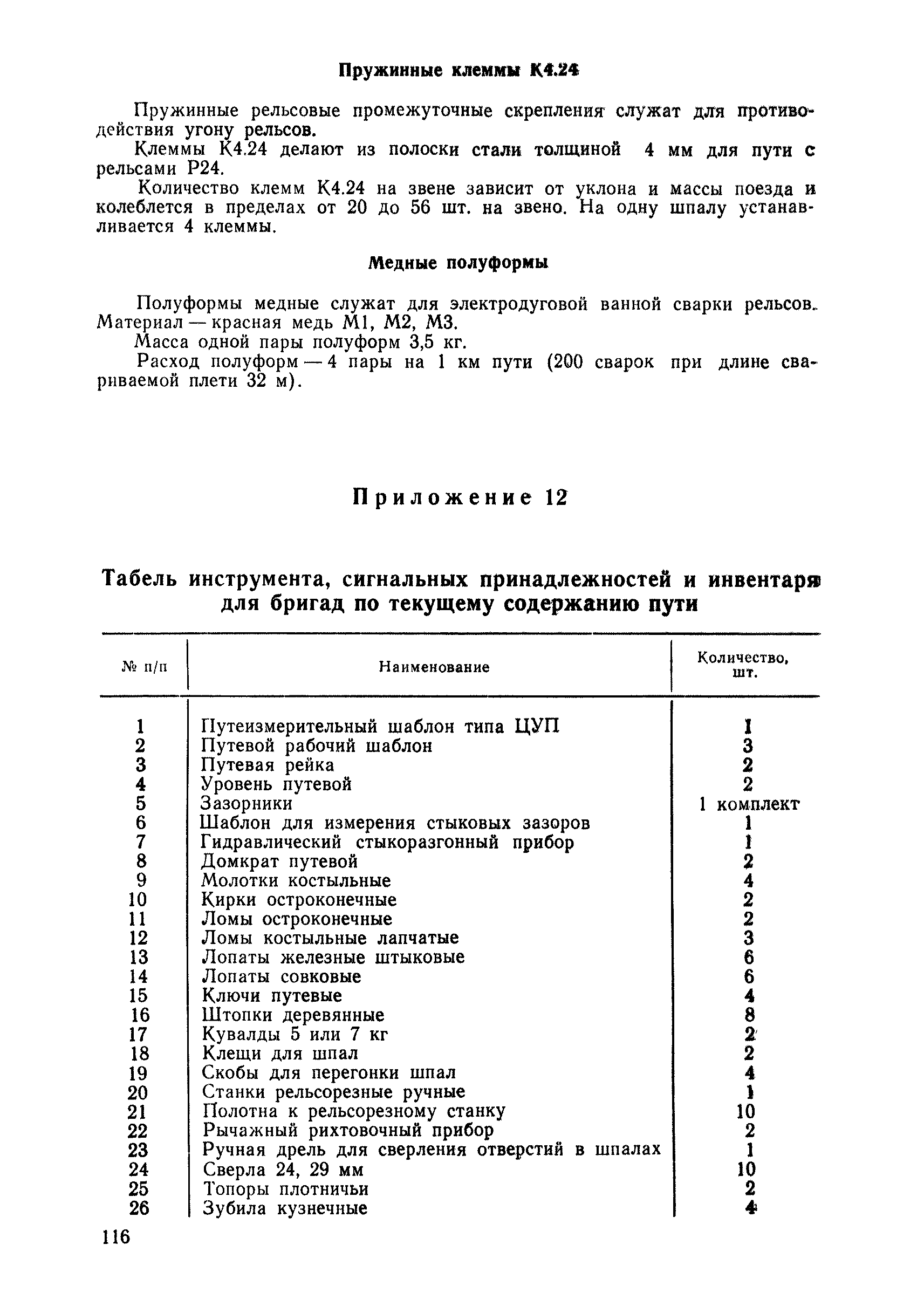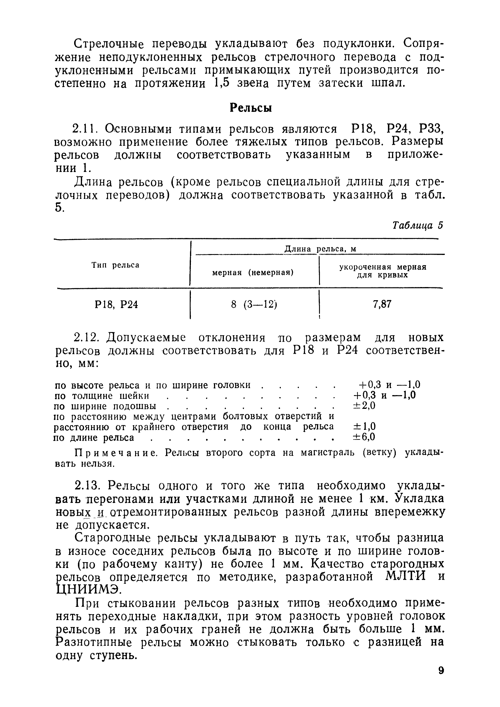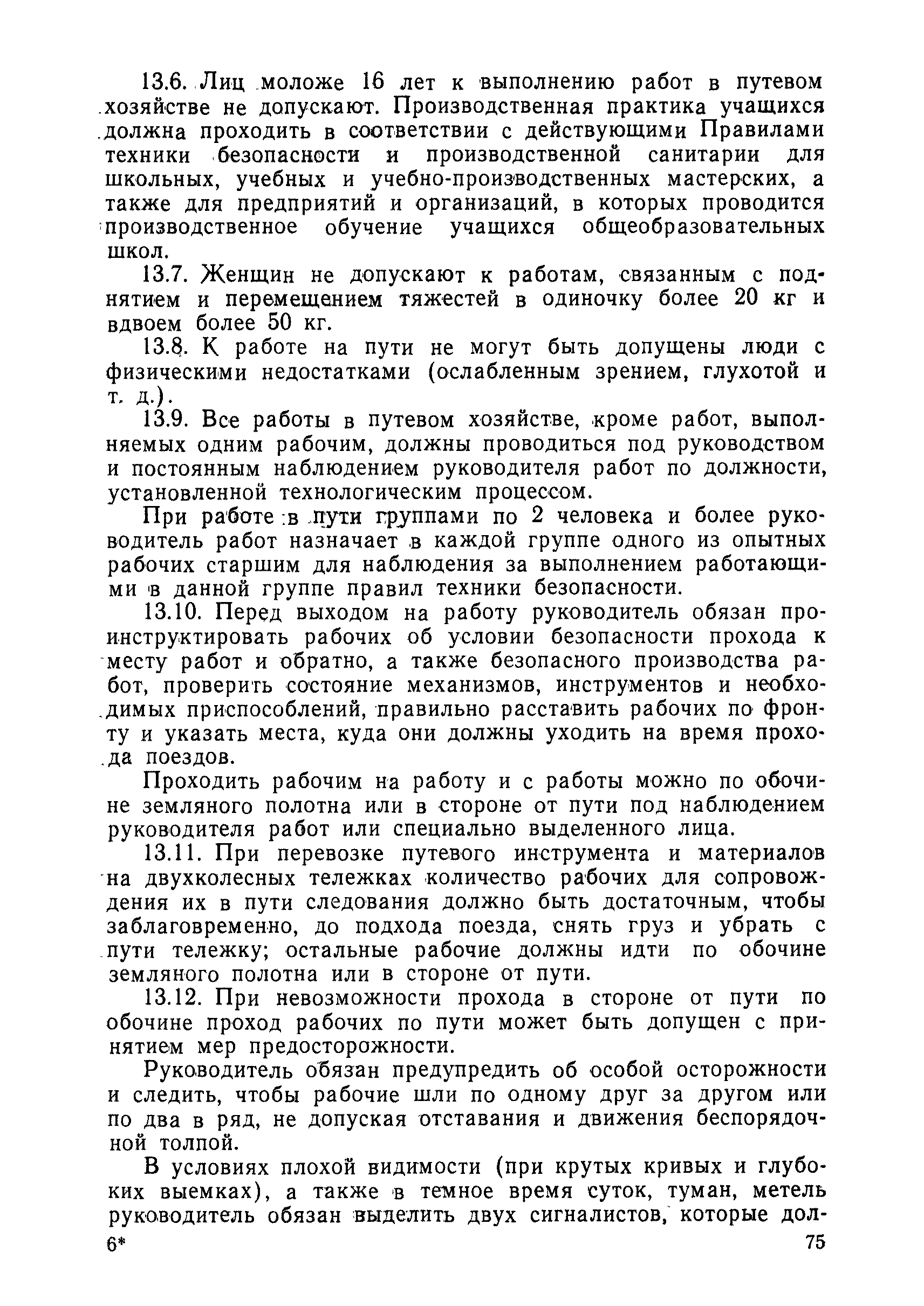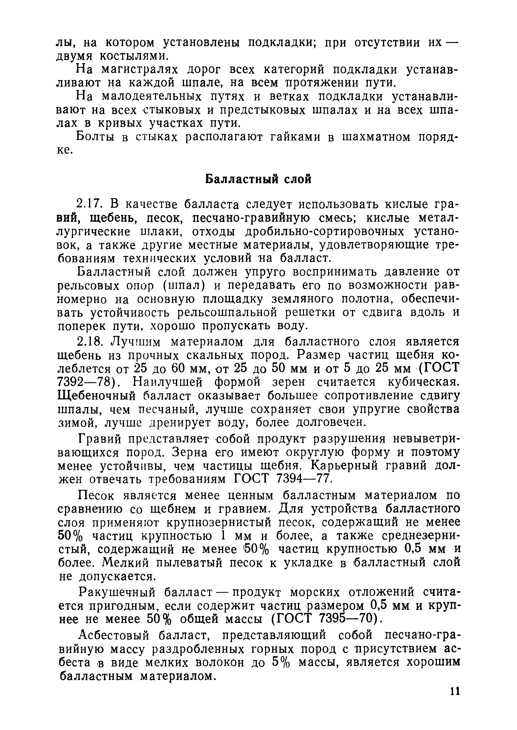 | Оглавление: | 1 Основные положения 2 Технические условия и нормы содержания пути 3 Предупреждение появления в пути неисправностей 4 Планирование и организация работ но текущему содержанию пути 5 Подъемочный ремонт пути 6 Капитальный ремонт и реконструкция пути 7 Звеньевая укладка и разборка временных путей и блочных стрелочных переводов 8 Особенности содержания пути на усах 9 Организация консервирования шпал 10 Периодические проверки и оценка состояния пути 11 Содержание и хранение механизмов, приборов, инструментов и материалов 12 Организация снегоборьбы 13 Основные правила техники безопасности Приложение 1. Рельсы Приложение 2. Скрепления. Накладки Приложение 3. Типовые поперечные профили верхнего строения узкоколейных железных лесовозных дорог Приложение 4. Порядок размещения шпал на звене Приложение 5. Шпалы и переводные брусья Приложение 6. Переезды Приложение 7. Типовые поверечные профили земляного полотна узкоколейных железных лесовозных дорог Приложение 8. Стрелочные переводы Приложение 9. График работ по текущему содержанию и оценке состояния пути и путевых устройств Приложение 10. Технические характеристики шпалоподбивочной машины ЛД-22, путевой машины ДМ-7 и шпалопропиточной установки Приложение 11. Технические характеристики путевых механизмов Приложение 12. Табель инструмента, сигнальных принадлежностей и инвентаря для бригад по текущему содержанию пути Приложение 13. Технические характеристики строительно-ремонтного поезда ТУ6СП, путеперекладчика ППР-2МА, крановой установки ЛТ-110 Приложение 14. Книга осмотра пути и сооружений Приложение 15. Книга проверки пути Приложение 16. Характеристика тягового и подвижного состава Приложение 17. Нормы расхода материалов на текущее содержание узкоколейных железных лесовозных дорог и нормы покилометрового запаса Приложение 18. Снеговые щиты Приложение 19. Книга записи предупреждений, выдаваемых на поезда Приложение 20. Обязательство |