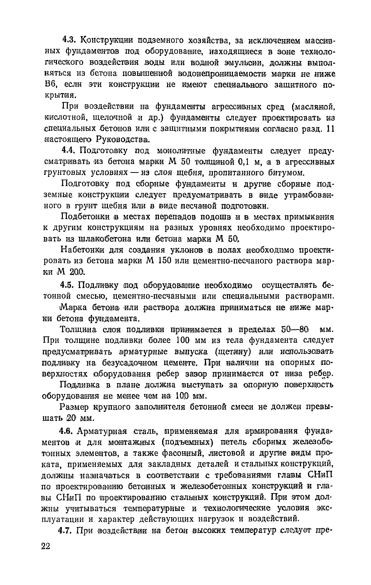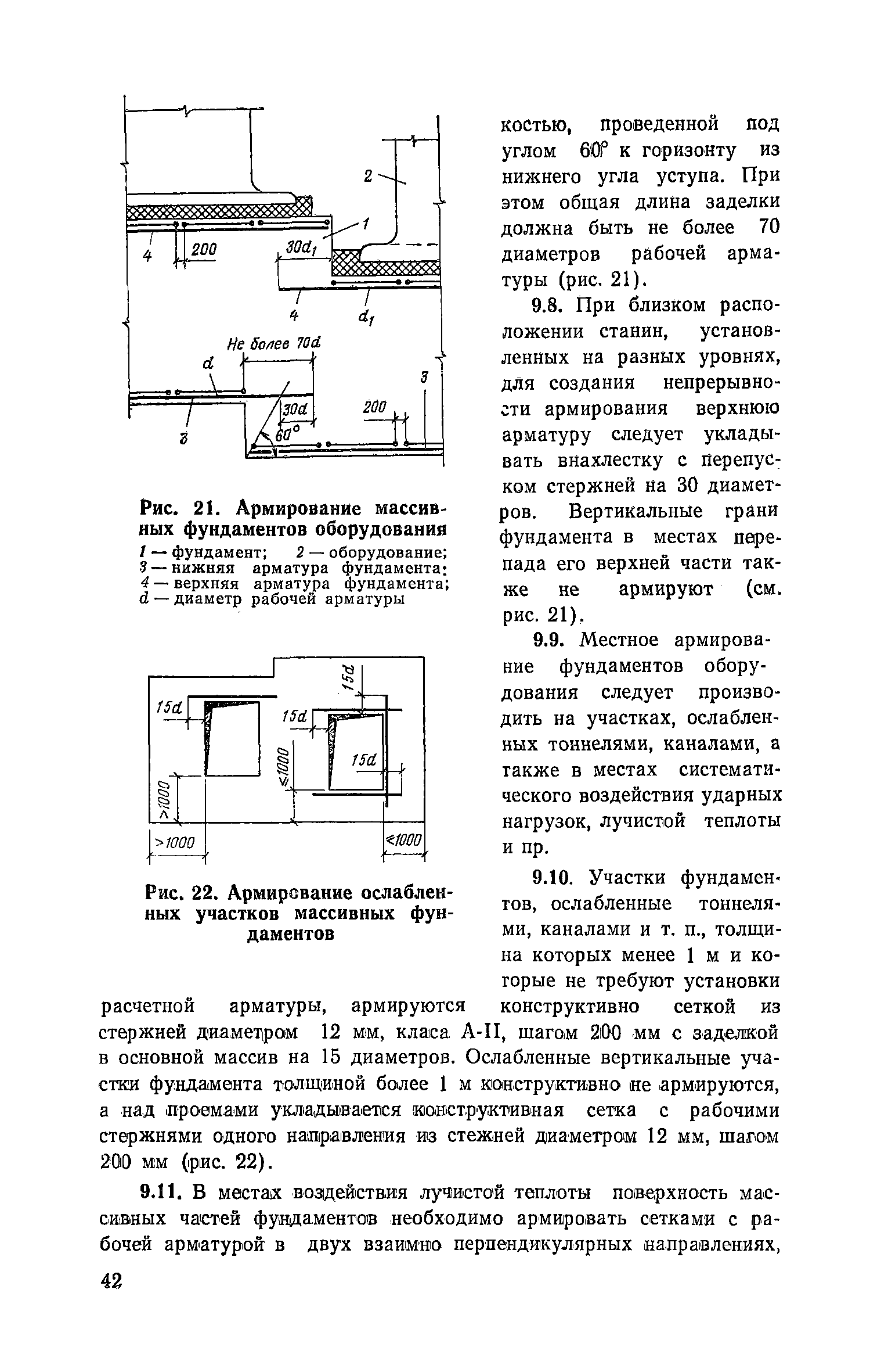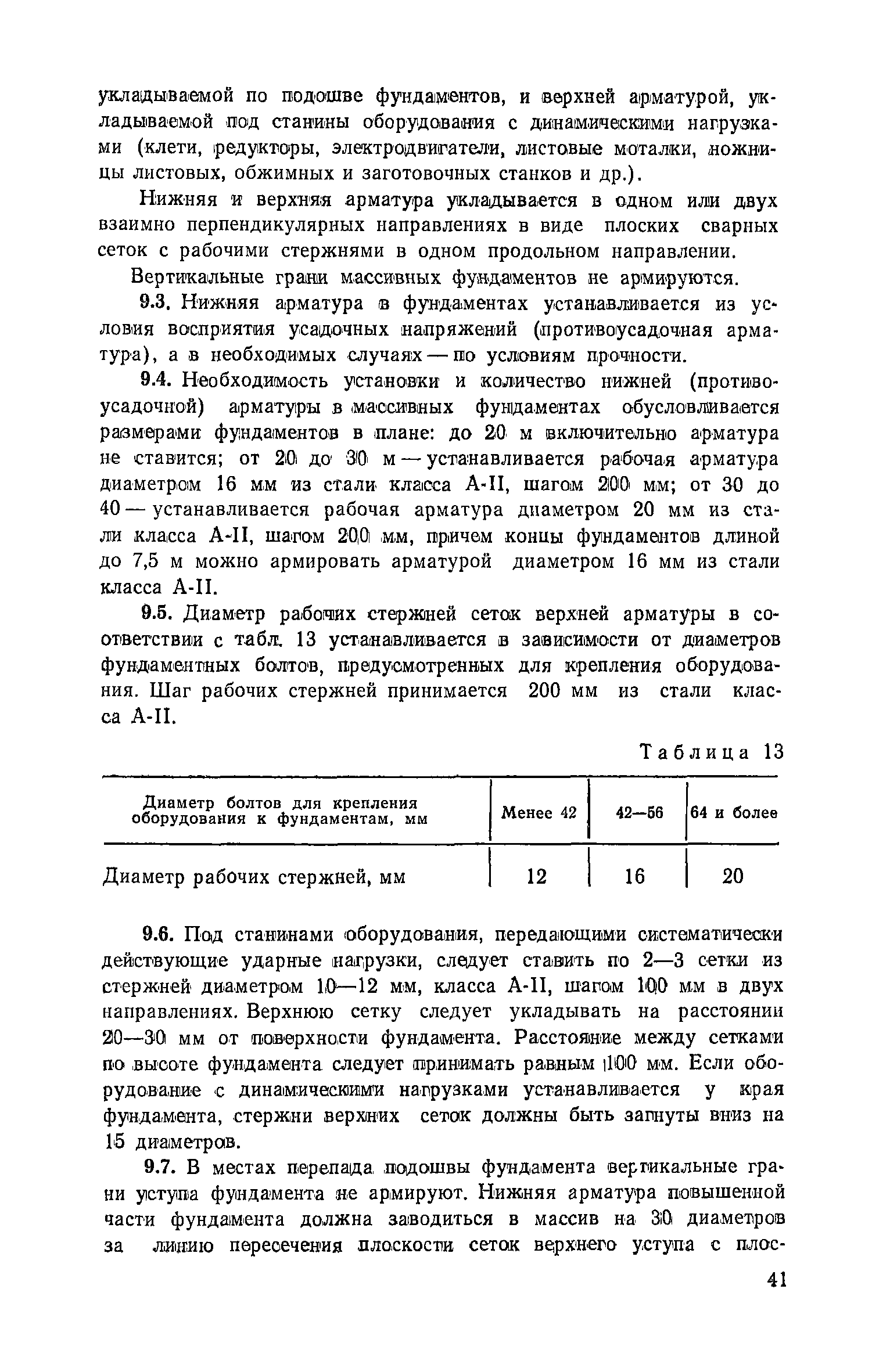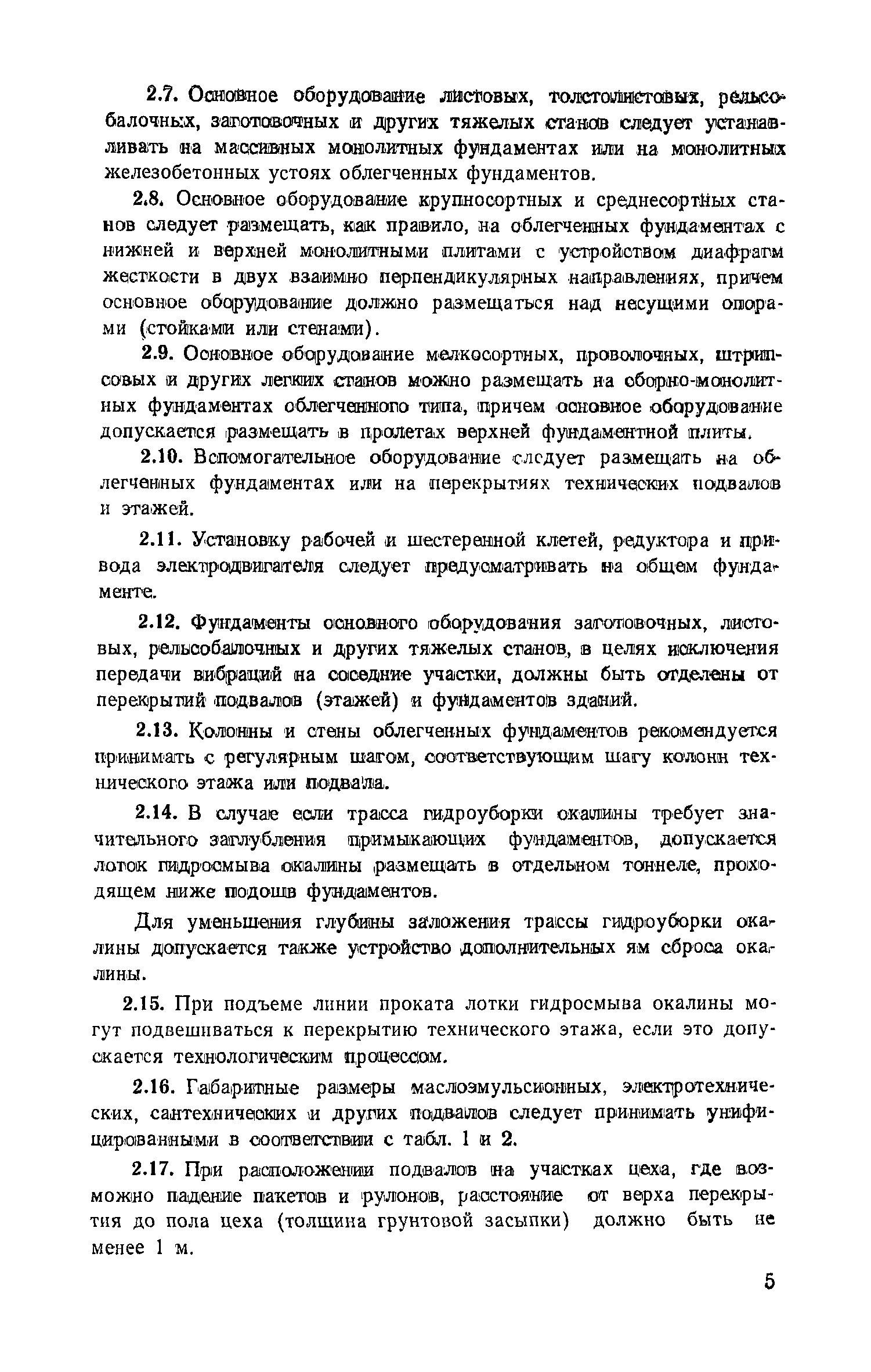 | Оглавление: | 1 Общие положения 2 Компоновочные решения фундаментов оборудования и подземных сооружений 3 Нагрузки и расчет фундаментов 4 Материалы 5 Конструктивные решения 6 Температурно-усадочные и деформационные швы, временные усадочные и рабочие швы бетонирования 7 Фундаментные болты 8 Закладные детали и стальные конструкции фундаментов 9 Армирование 10 Защита от грунтовых вод 11 Защита от воздействия агрессивных сред 12 Несъемная опалубка 13 Реконструкция фундаментов Приложение 1. Общие сведения о прокатном оборудовании Приложение 2. Пример определения технологических нагрузок от оборудования Приложение 3. Пример определения эквивалентных временных нагрузок для балок, колонн и стен подвала Приложение 4. Состав и оформление рабочих чертежей фундаментов оборудования |