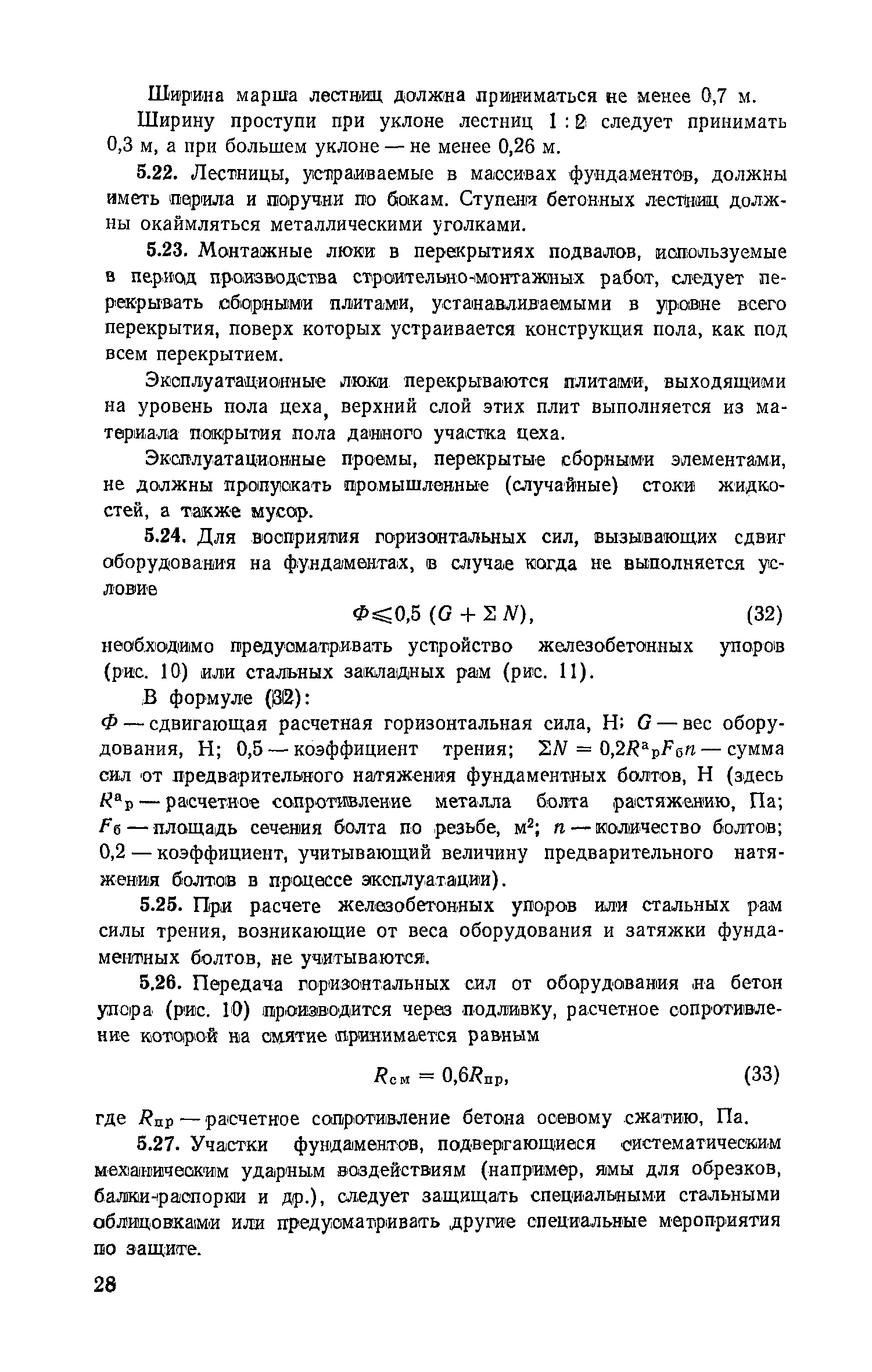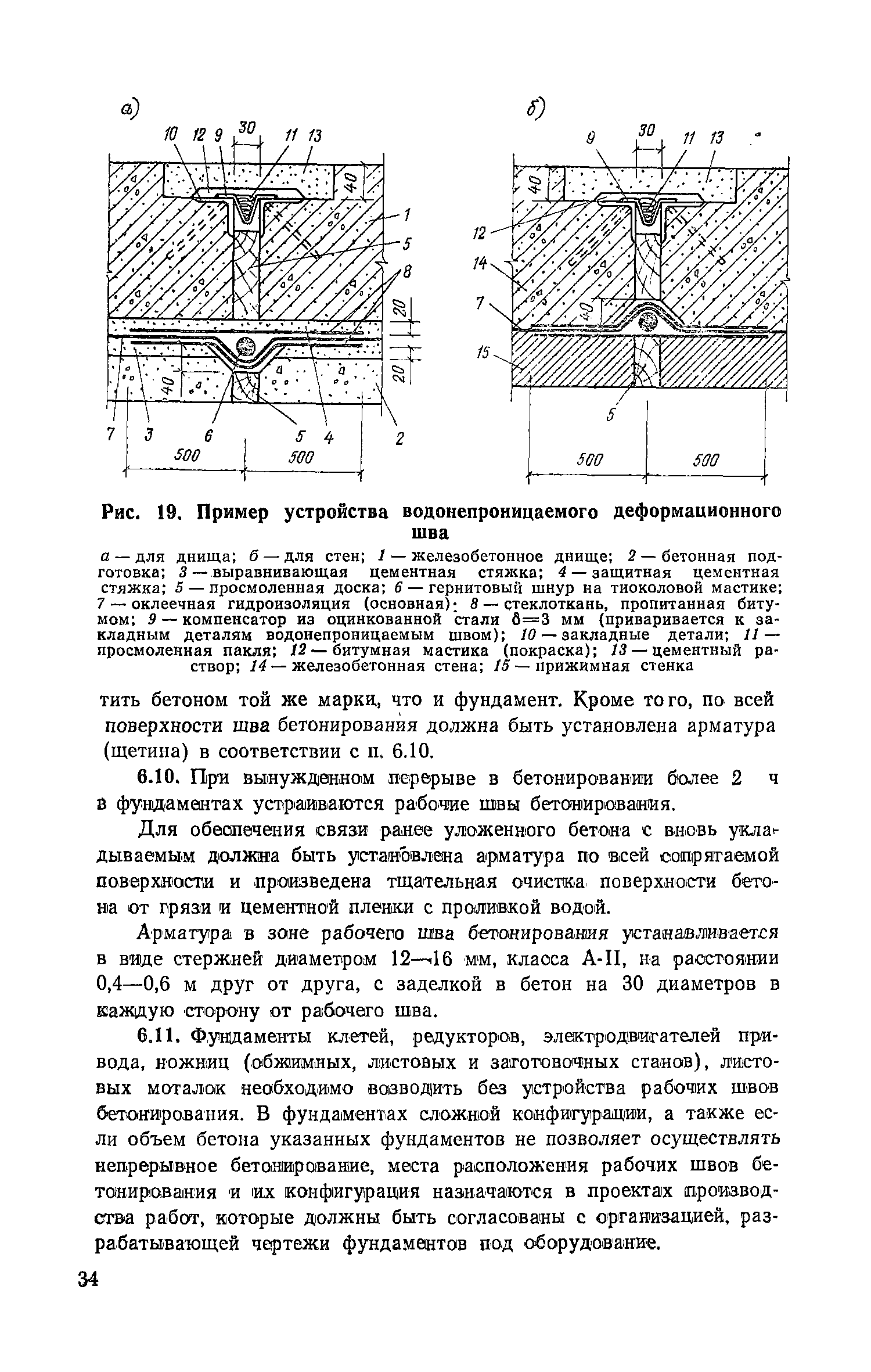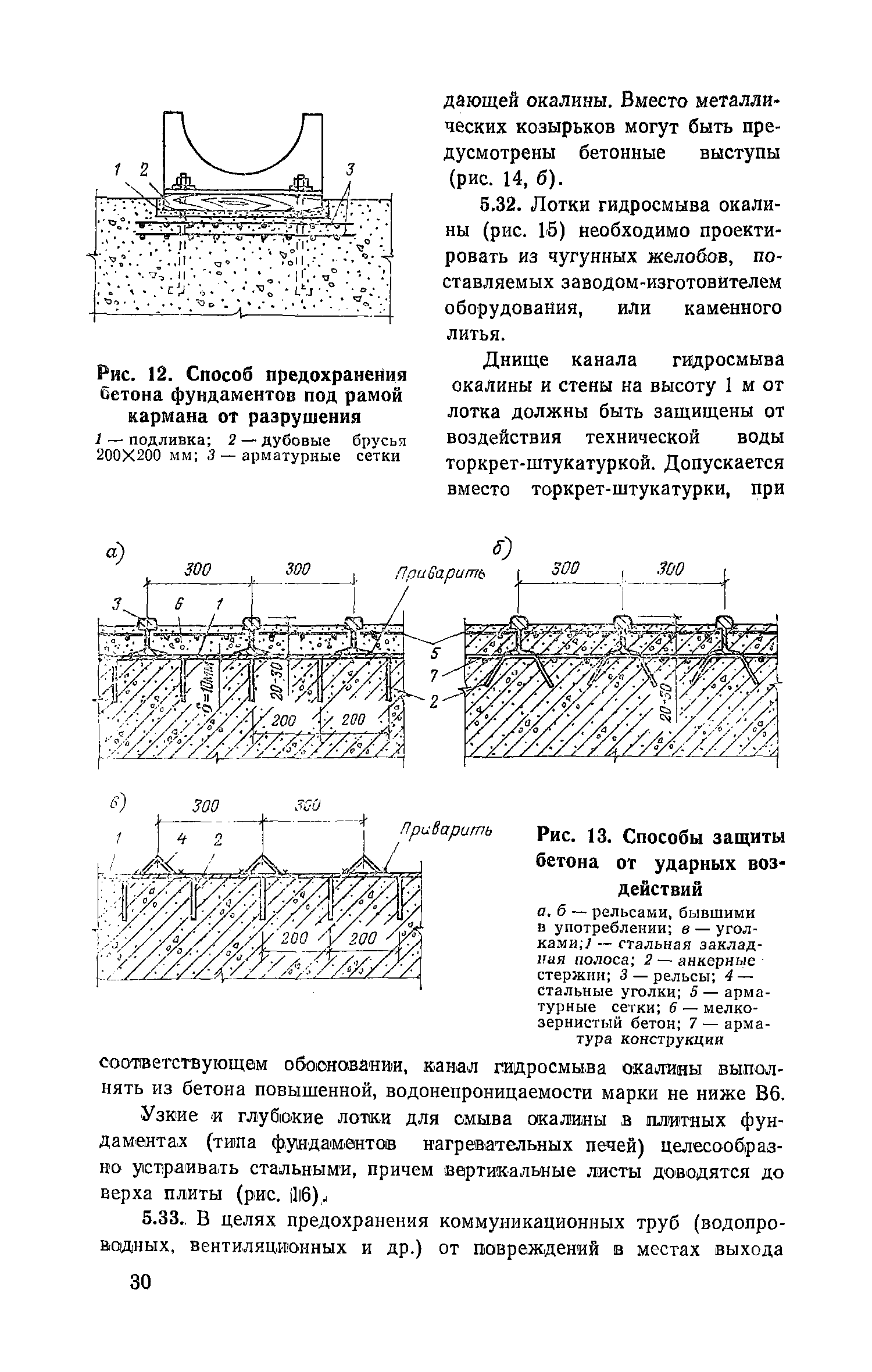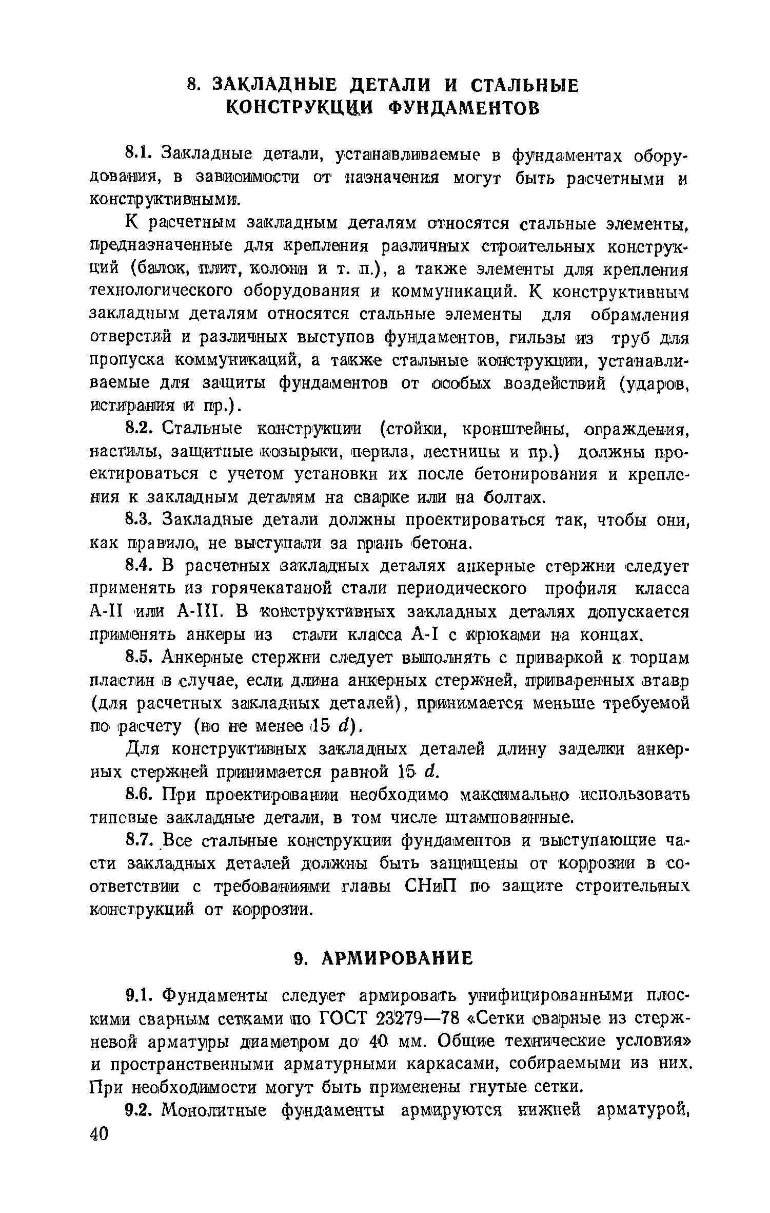 | Оглавление: | 1 Общие положения 2 Компоновочные решения фундаментов оборудования и подземных сооружений 3 Нагрузки и расчет фундаментов 4 Материалы 5 Конструктивные решения 6 Температурно-усадочные и деформационные швы, временные усадочные и рабочие швы бетонирования 7 Фундаментные болты 8 Закладные детали и стальные конструкции фундаментов 9 Армирование 10 Защита от грунтовых вод 11 Защита от воздействия агрессивных сред 12 Несъемная опалубка 13 Реконструкция фундаментов Приложение 1. Общие сведения о прокатном оборудовании Приложение 2. Пример определения технологических нагрузок от оборудования Приложение 3. Пример определения эквивалентных временных нагрузок для балок, колонн и стен подвала Приложение 4. Состав и оформление рабочих чертежей фундаментов оборудования |