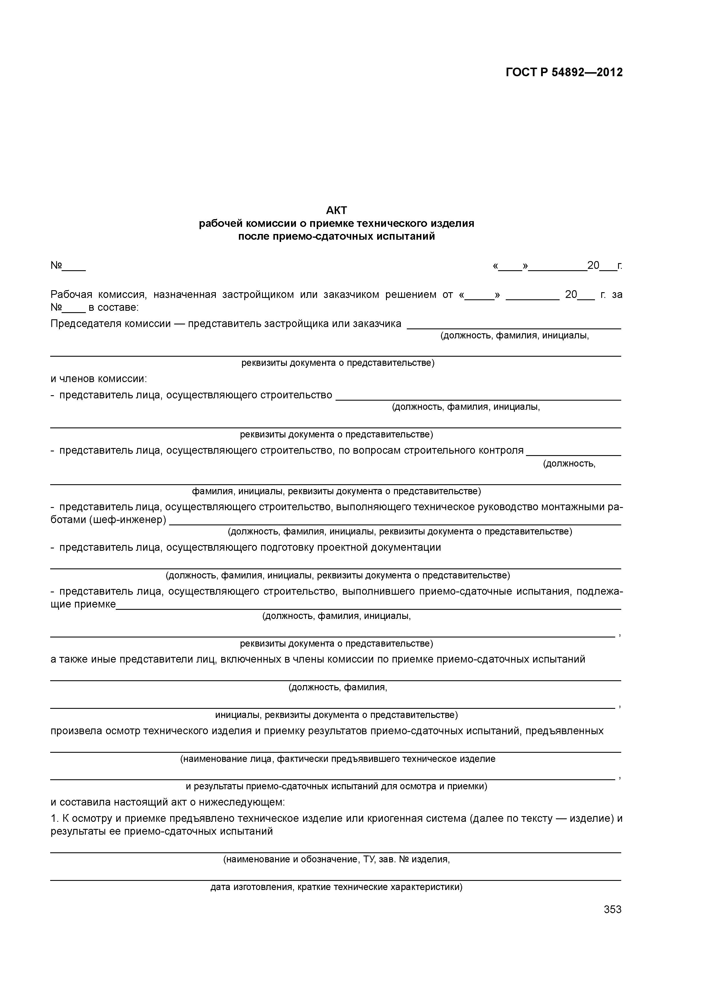 | Название рус.: | Акт рабочей комиссии о приемке технического изделия после приемо-сдаточных испытаний |