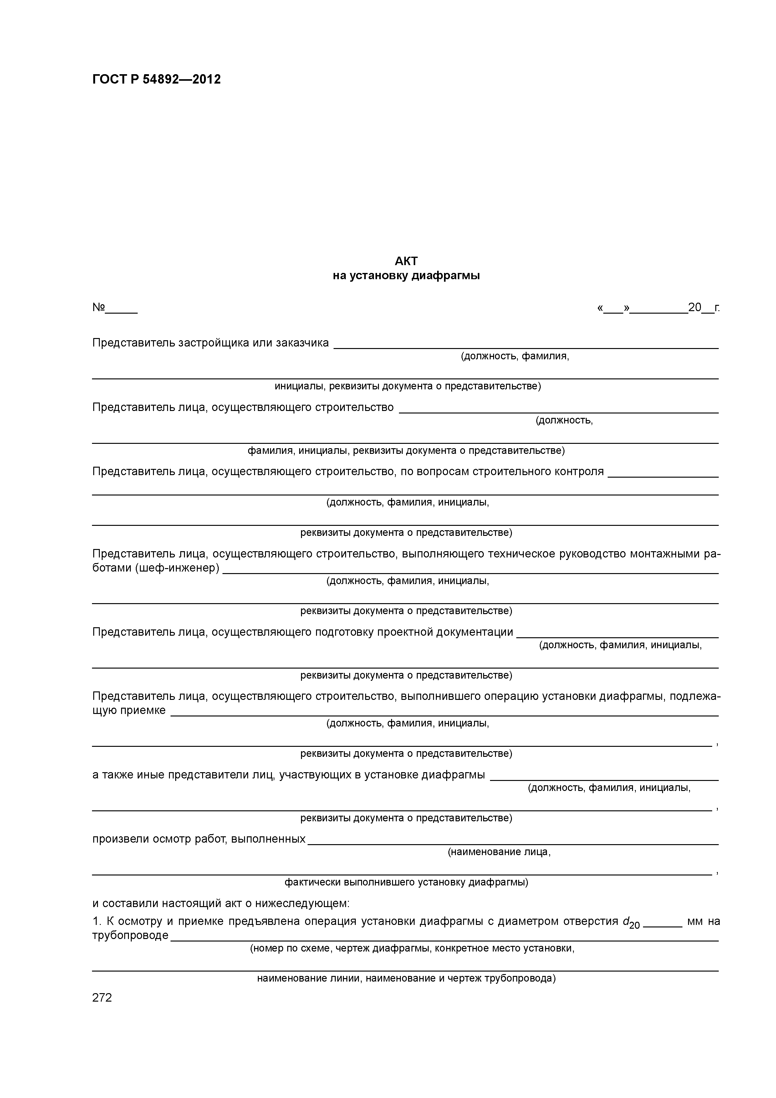| Оглавление: | Акт на установку диафрагмы Форма акта на установку диафрагмы |