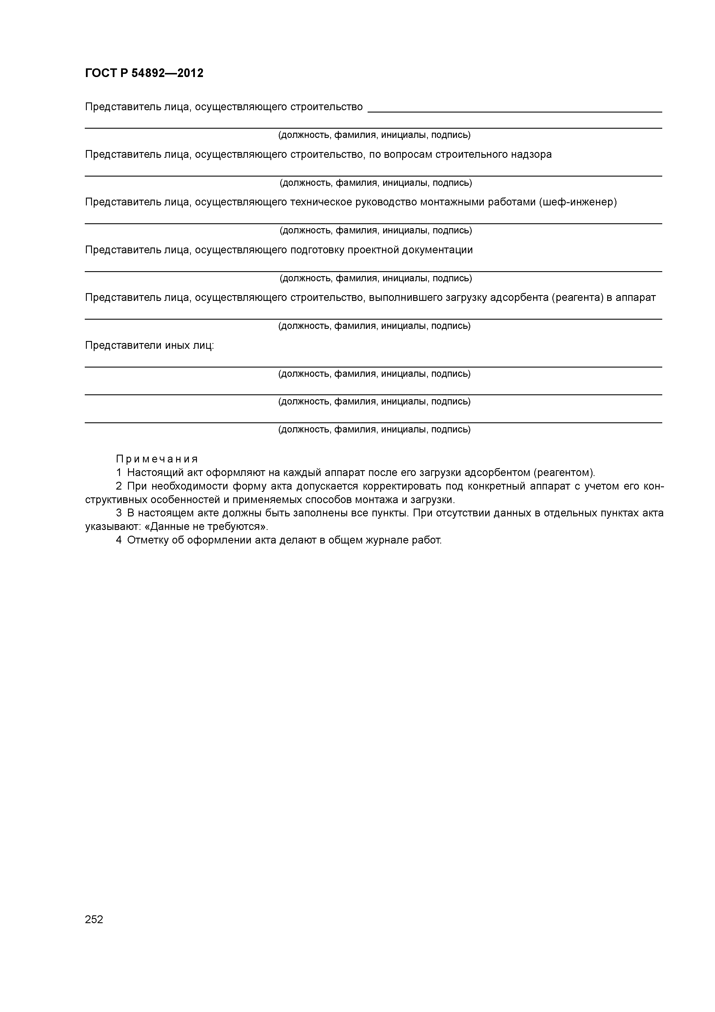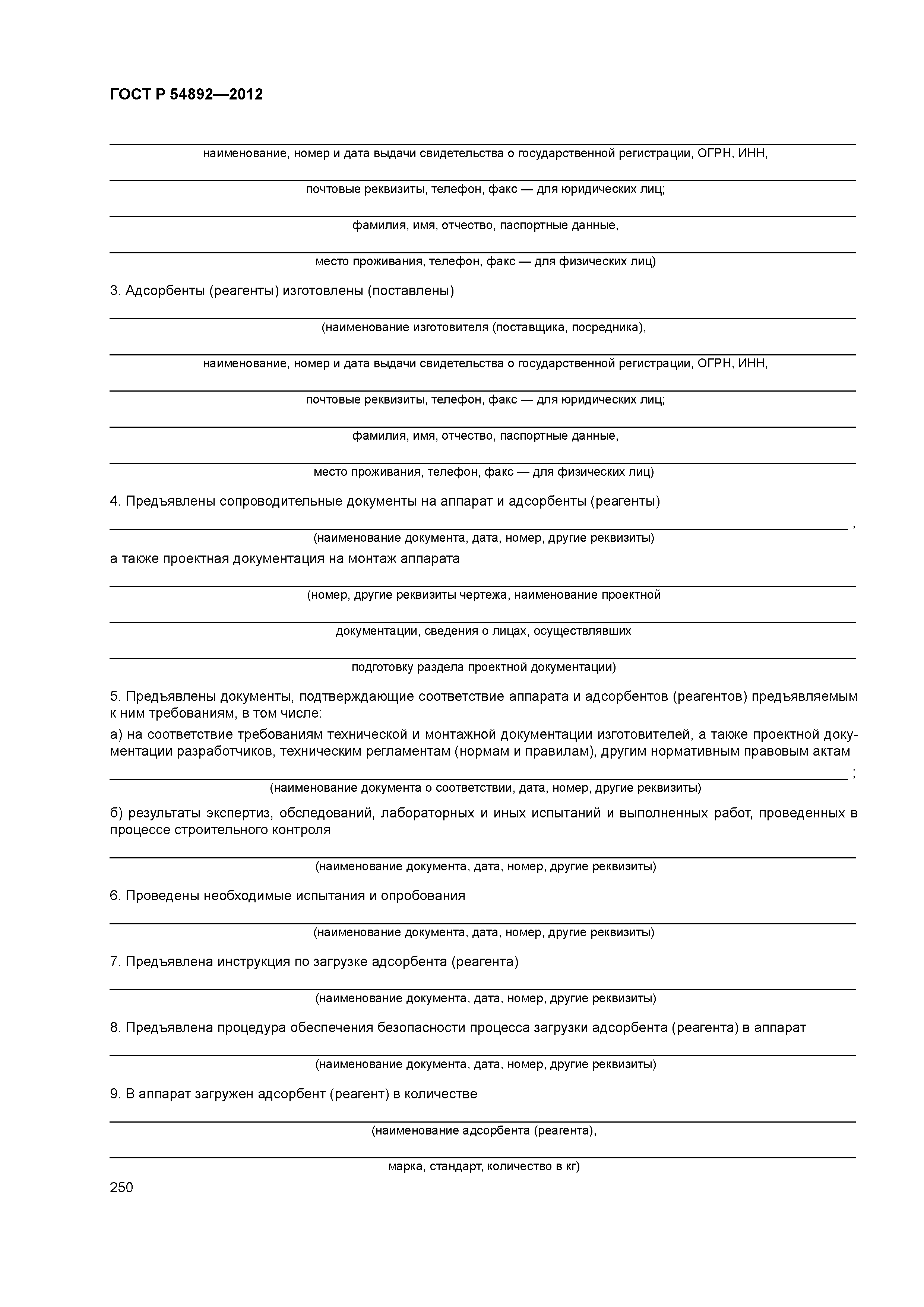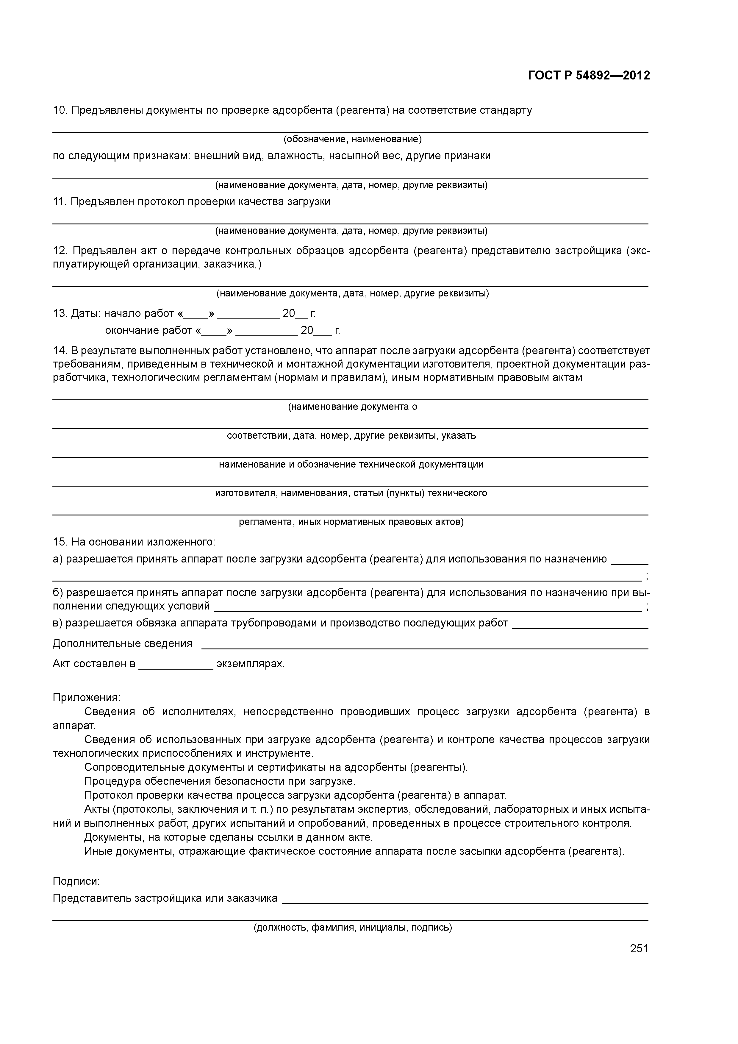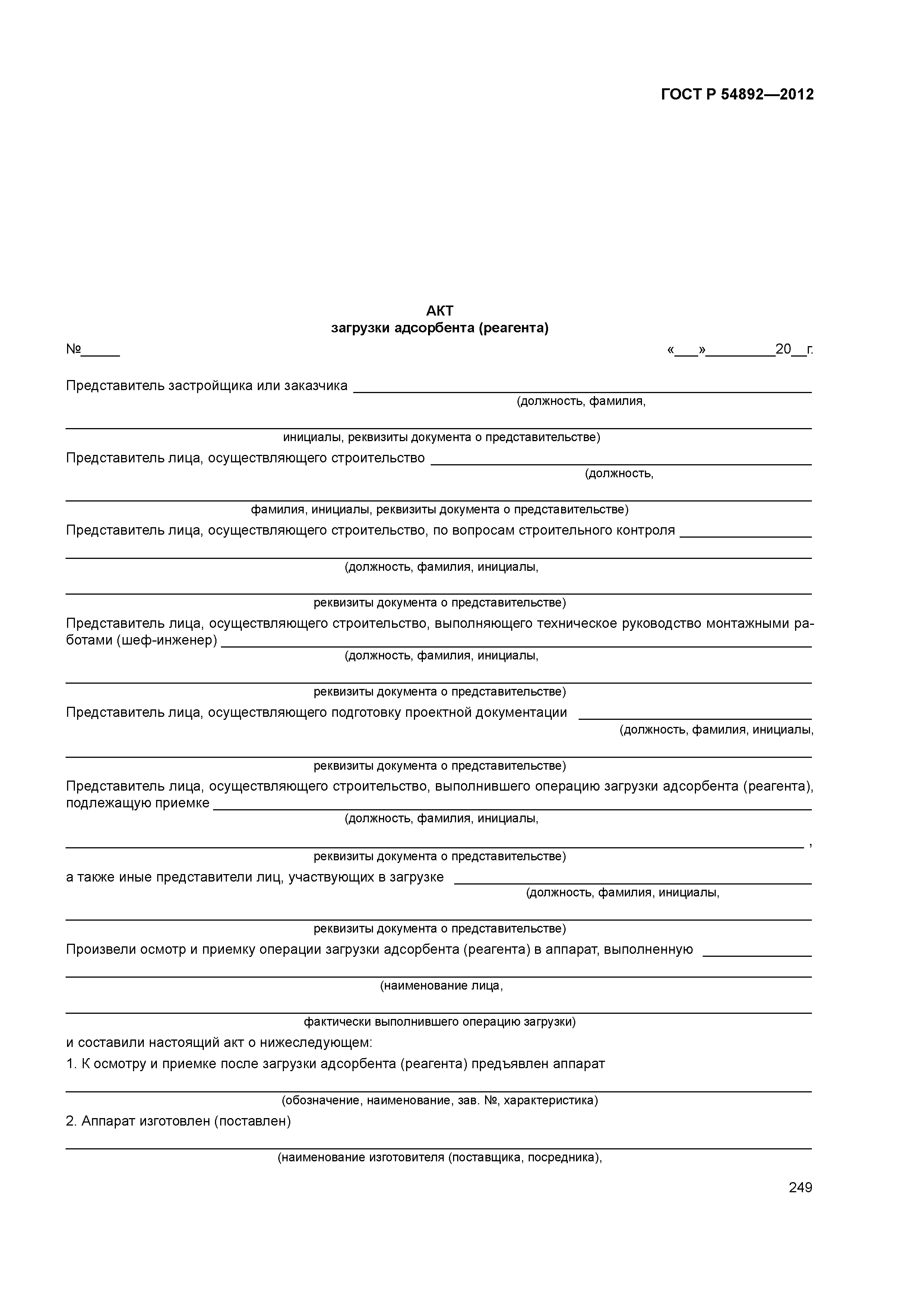 | Название рус.: | Акт загрузки адсорбента (реагента) |