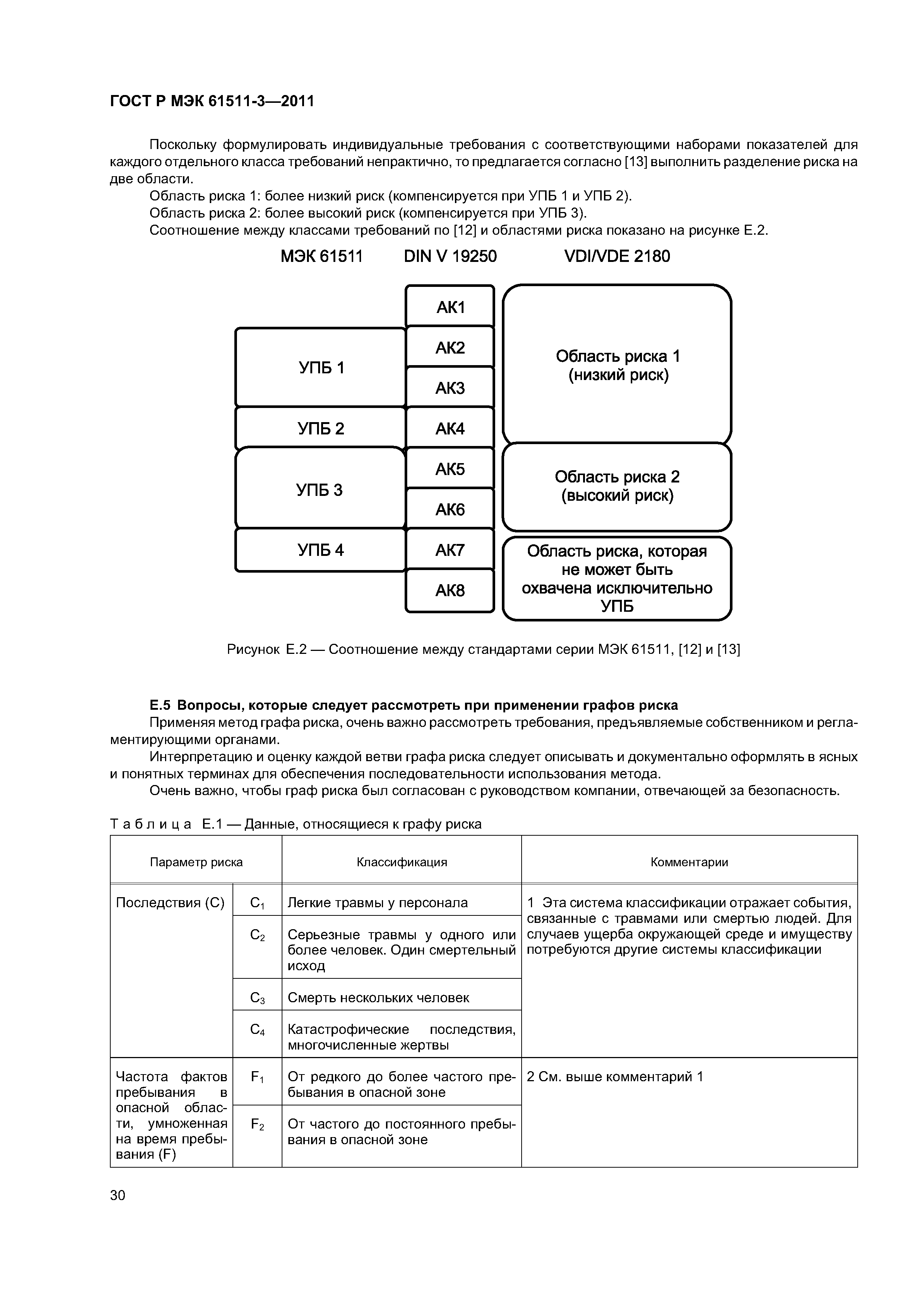 | Область применения: | Стандарт содержит: - основные положения концепции риска и описание отношения между риском и полнотой безопасности; - определение допустимого риска; - описание различных методов, позволяющих определить уровень полноты безопасности для функций безопасности приборных систем безопасности. |