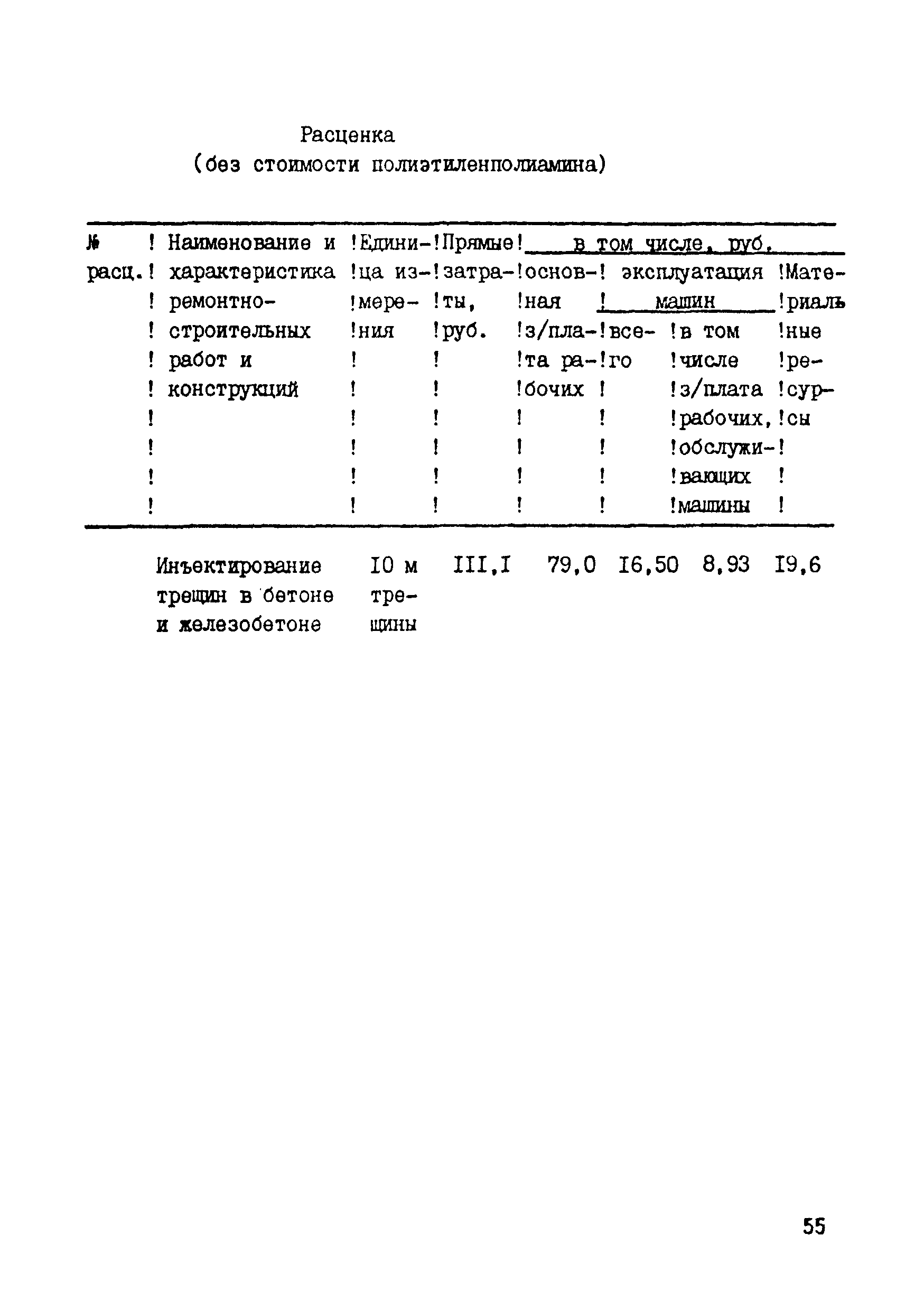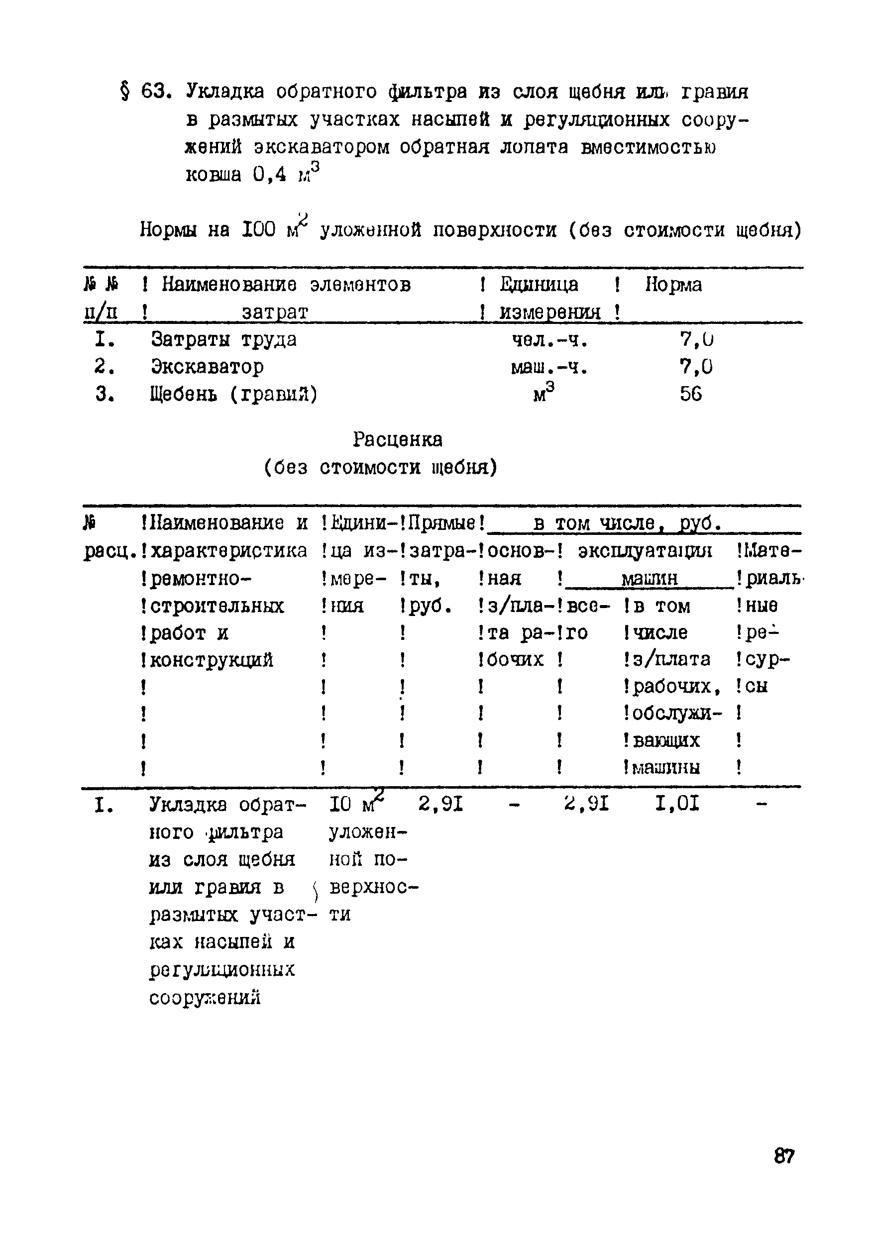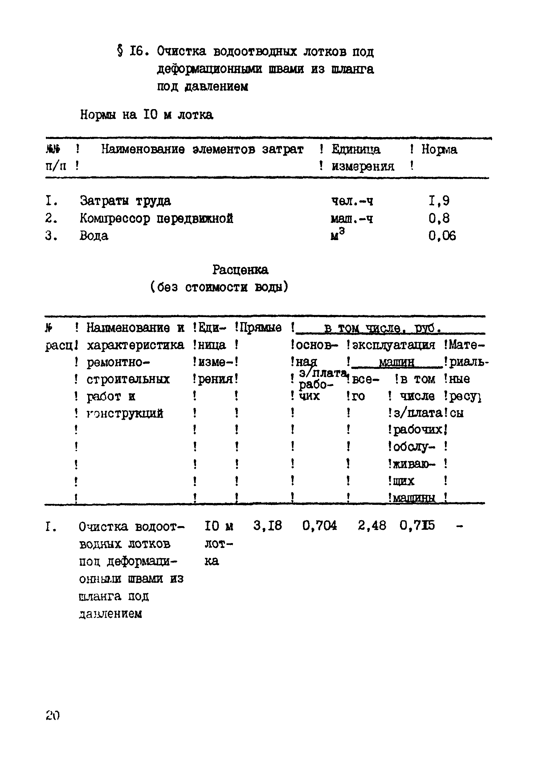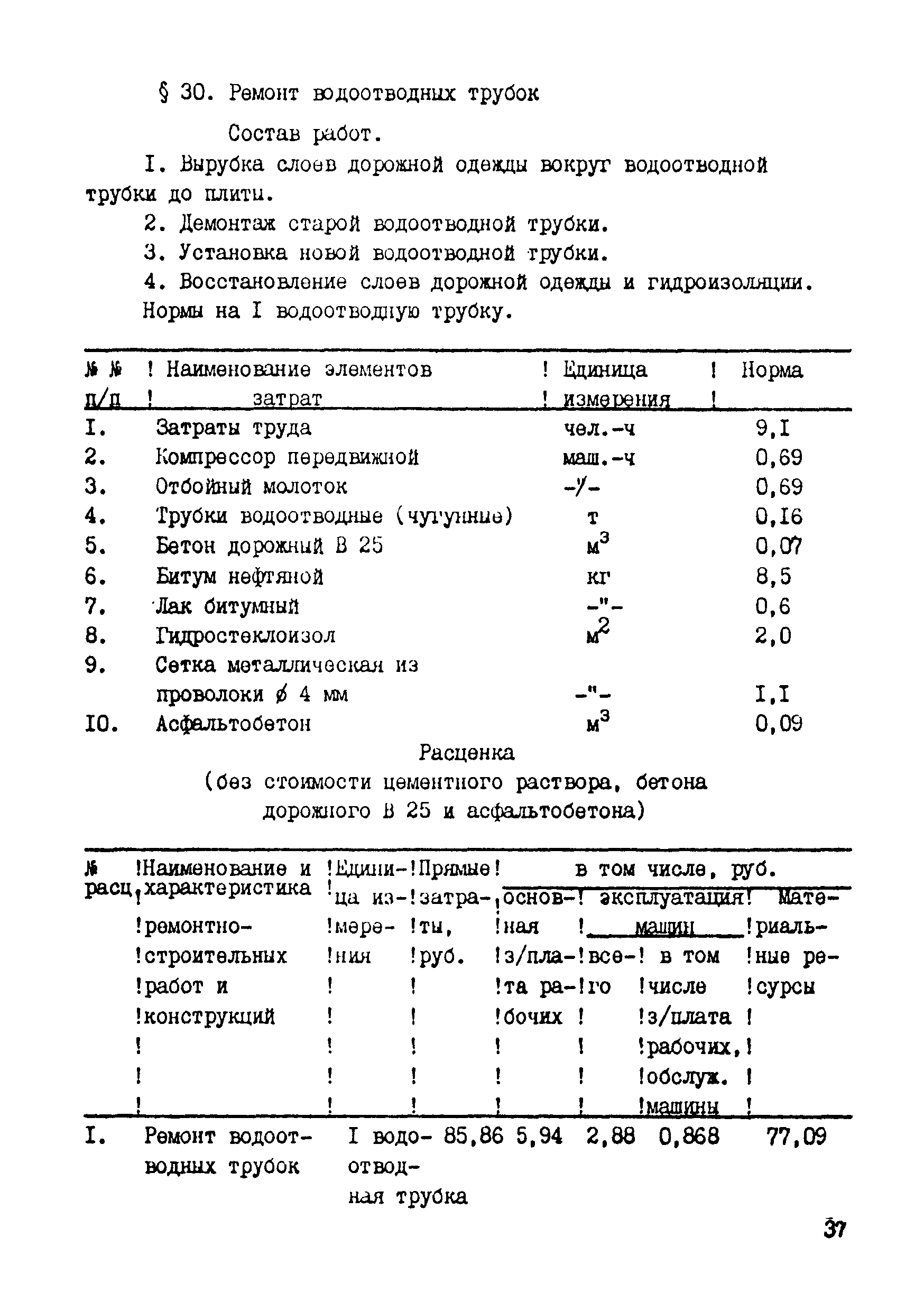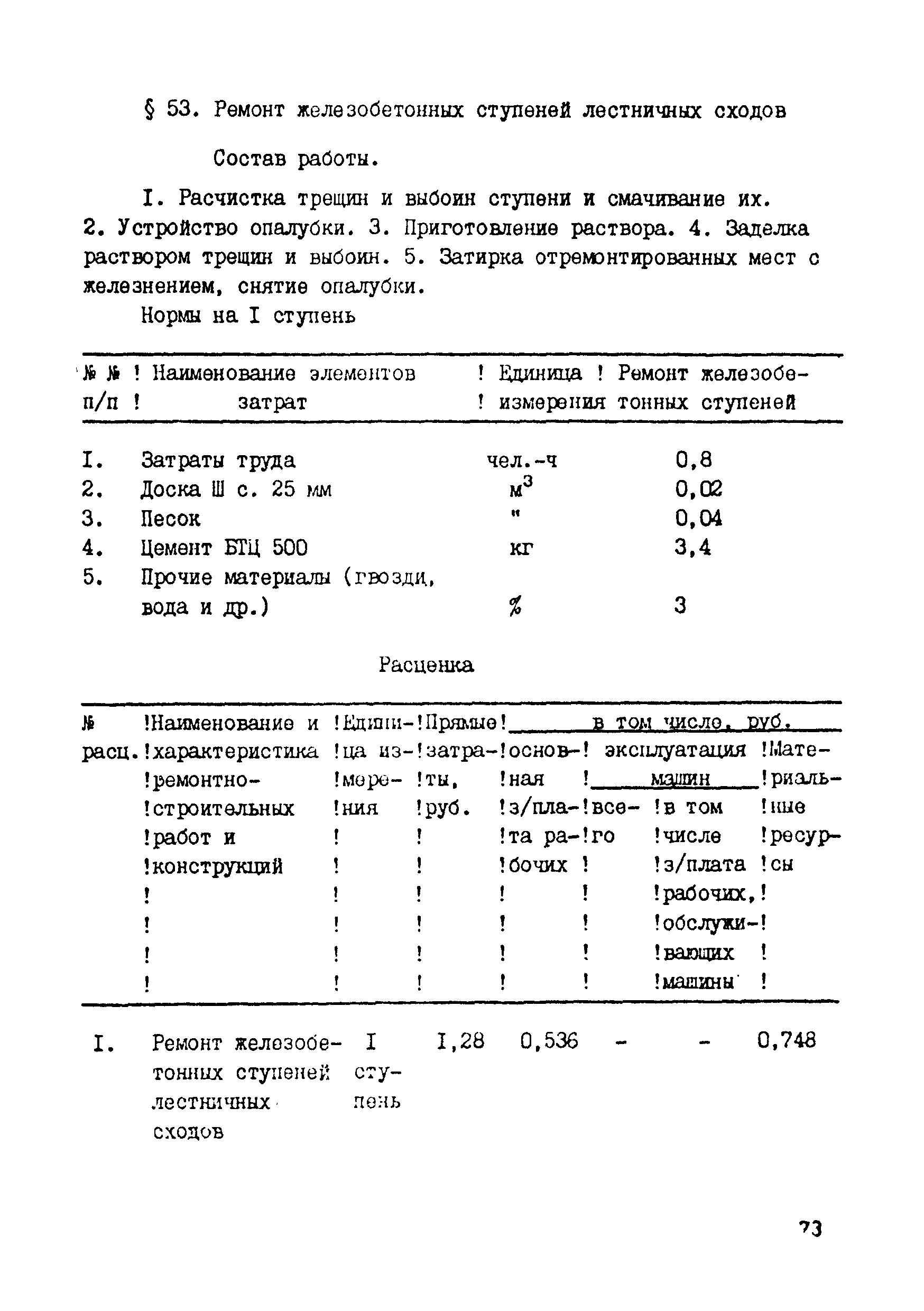 | Оглавление: | Вводная часть Глава I. Текущий и периодический осмотр мостов и путепроводов независимо от материалов пролетных строений и опор 1. Осмотр подходов 2. Осмотр подмостовой зоны 3. Осмотр мостового полотна 4. Осмотр пролетных строений 5. Осмотр опорных частей и узлов опирания 6. Осмотр опор 7. Осмотр мостов при помощи машины РД-803 8. Проверка плотности заклепочных соединений отстукиванием молотком (выборочно) 9. Выборочная проверка затяжка высокопрочных болтов динамометрическим ключом 10 Промеры глубины русла рек с моста 11 Промеры глубины русла рек с лодок 12. Проверка наличия и сохранности средств пожарной безопасности Глава II. Содержание мостов 13. Очистка водоприемных колодцев и лотков вручную 14. Прочистка водоотводных трубок на проезжей части мостов и путепроводов вручную 15. Промывка деформационных швов из шланга под давлением и очистка гребенки вручную от мусора на проезжей части моста 16. Очистка водоотводных лотков под деформационными швами из шланга под давлением 17. Санитарная уборка подмостовой зоны 18. Ремонт противопожарного инвентаря на мостах 19. Очистка и натирка опорных частей графитом 20. Очистка подферменных площадок от грязи, мусора и снега вручную 21. Очистка элементов моста ниже проезжей части от грязи, мусора и снега вручную 22. 0чистка лестничных сходов мостов вручную Глава III. Ремонт мостов 23. Ремонт металлических перильных ограждений 24. Снятие сборных железобетонных перильных ограждений из отдельных элементов 25. Устройство ограждений из профильного металла 26. Снятие поврежденного и установка нового ограждения смотровых устройств 27. Окраска сборного металлического перильного ограждения 28. Разборка дефектного бордюрного ограждения 29. Устранение мелких наплывов, волн и сдвигов на асфальтобетонном покрытии 30. Ремонт водоотводных трубок 31. Заделка проломов плит проезжей части 32. Замена поврежденных тротуарных блоков 33. Установка элементов деформационного шва 34. Заливка деформационного шва битумной мастикой при ремонте деформационных швов закрытого типа 35. Ремонт деформационных швов открытого типа со скользящим листом 36. Ремонт водоотводного лотка под деформационным швом открытого типа со скользящим листом 37. Замена дефектных чугунных решеток при ремонте водоотводных устройств 38. Снятие дефектных и установка новых железобетонных лотков при ремонте водосбросных устройств 39. Разборка старых и монтаж новых каменных водоприемных колодцев при ремонте водосбросных устройств 40. Ремонт бетонных водоприемных колодцев 41. Герметизация трещин в бетоне и железобетоне 42. Инъектирование трещин в бетоне и железобетоне 43. Восстановление защитного слоя железобетонных и бетонных конструкций 44. Восстановление бетона конструкций, поврежденного на глубину свыше 30 л с оголением арматуры 45. Замена стыковых накладок диафрагм пролетных строений 46. Ремонт сливов под ферменных площадок опор, мостов (заделка околов, раковин и пустот) 47. Ремонт футляров подвижных опорных частей 48. Замена футляров подвижных опорных частей 49. Выправка перекоса и угона катков подвижных опорных частей в сталежелезобетонных пролетных строениях 50. Окраска бетонных поверхностей 51. Окраска металлических поверхностей 52. Укатка асфальтобетонного покрытия ручным катком 53. Ремонт железобетонных ступеней лестничных сходов 54. Постановка нак