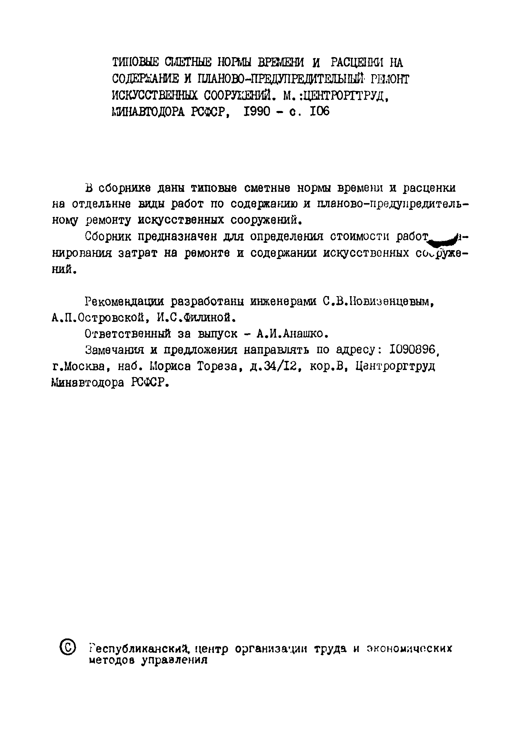 | Название рус.: | Типовые сметные нормы времени и расценки на содержание и планово-предупредительный ремонт искусственных сооружений |