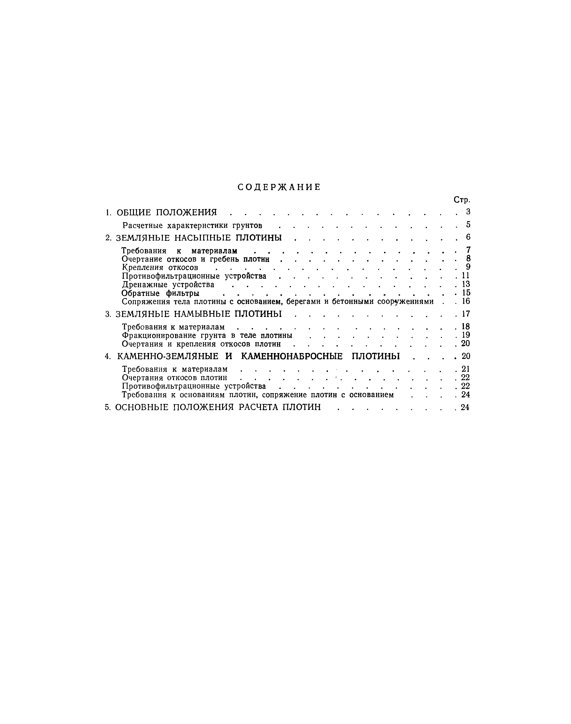 | Оглавление: | 1 Общие положения Расчетные характеристики грунтов 2 Земляные насыпные плотины Требования к материалам Очертания откосов и гребня плотины Крепление откосов Противофильтрационные устройства Дренажные устройства Обратные фильтры Сопряжение тела плотины с основанием, берегами и бетонными сооружениями 3 Земляные намывные плотины Требования к материалам Фракционирование грунта в теле плотины Очертание и крепление откосов плотины 4 Каменно-земляные и каменно-набросные плотины Требования к материалам Очертание откосов плотины Противофильтрационные устройства Требования к основаниям плотин, сопряжение плотин с основанием 5 Основные положения расчета плотин |