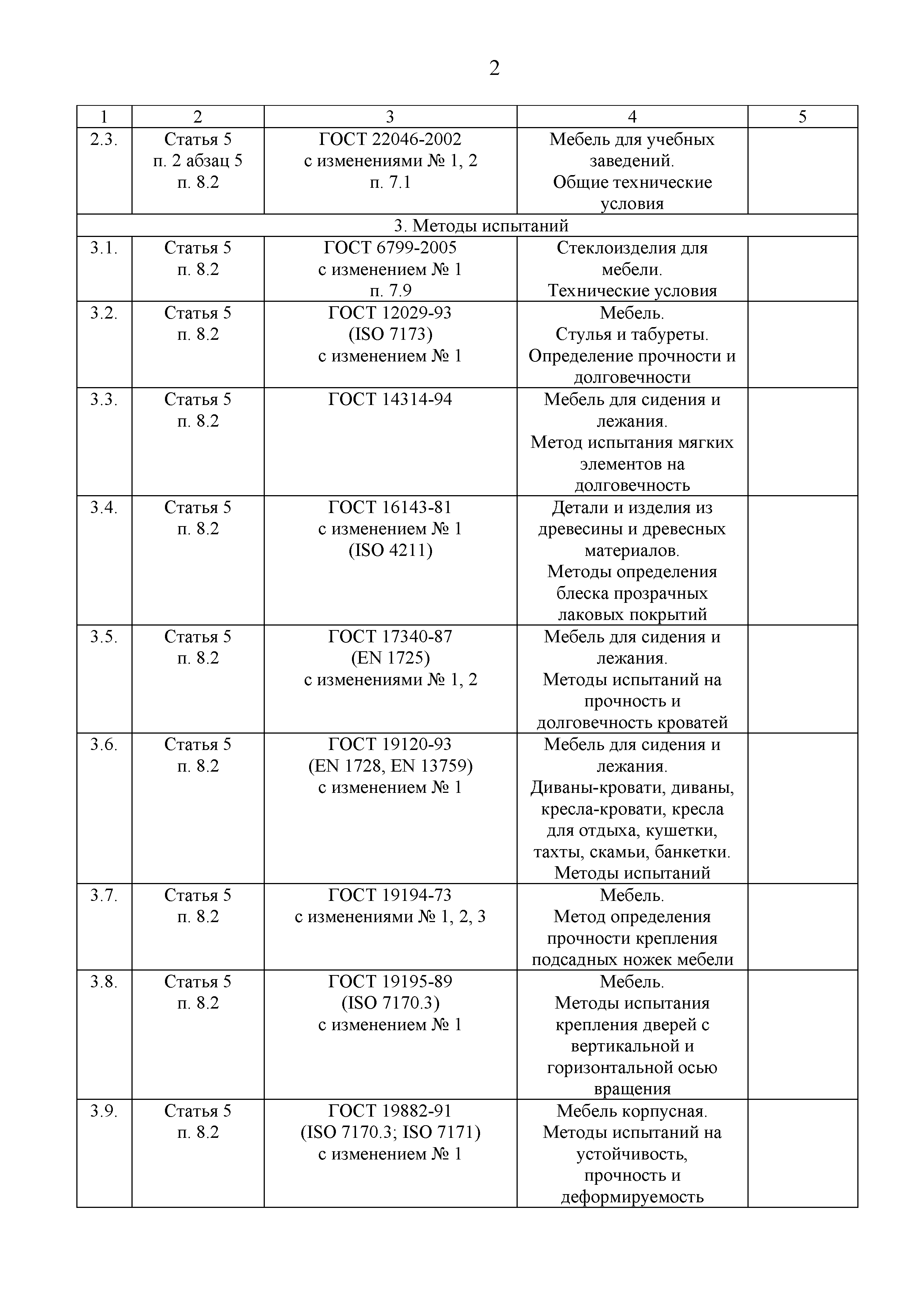 Скачать Перечень стандартов, содержащих правила и методы исследований (испытаний) и измерений, в том числе правила отбора образцов, необходимые для применения и исполнения требований технического регламента Таможенного союза О безопасности мебельной продукции (ТР ТС 025/2012) и осуществления оценки (подтверждения) соответствия мебельной продукции. Редакция 1