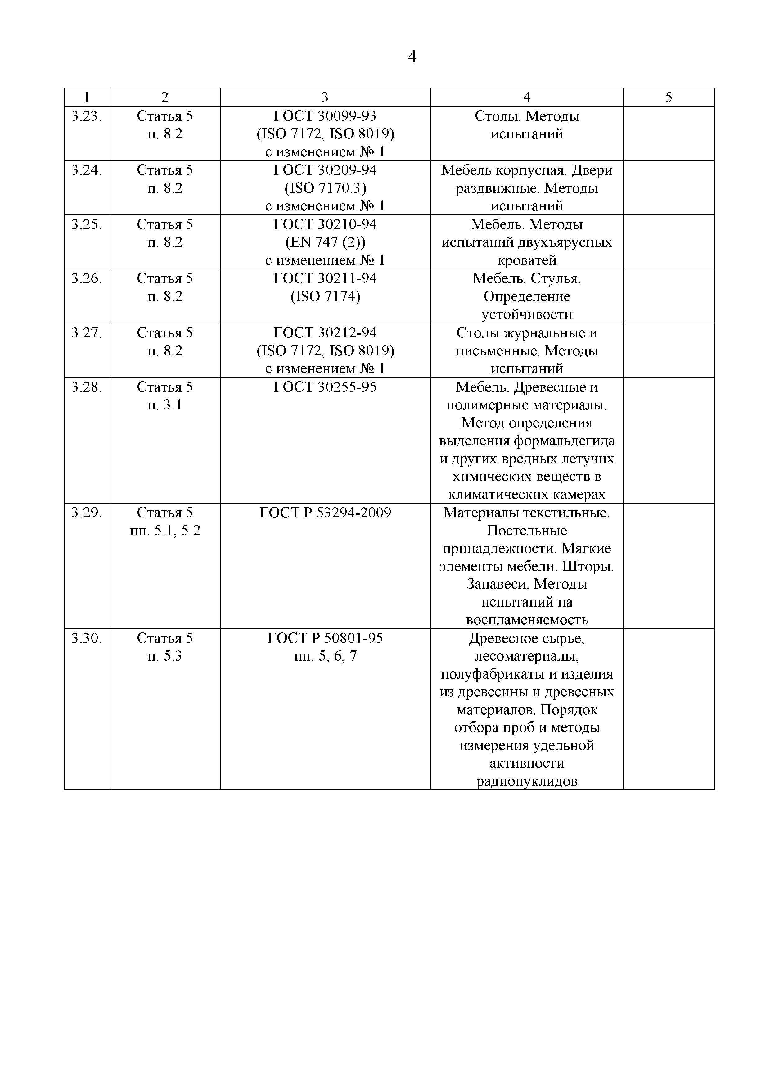 Перечень стандартов, содержащих правила и методы исследований (испытаний) и измерений, в том числе правила отбора образцов, необходимые для применения и исполнения требований технического регламента Таможенного союза "О безопасности мебельной продукции" (ТР ТС 025/2012) и осуществления оценки (подтверждения) соответствия мебельной продукции. Редакция 1