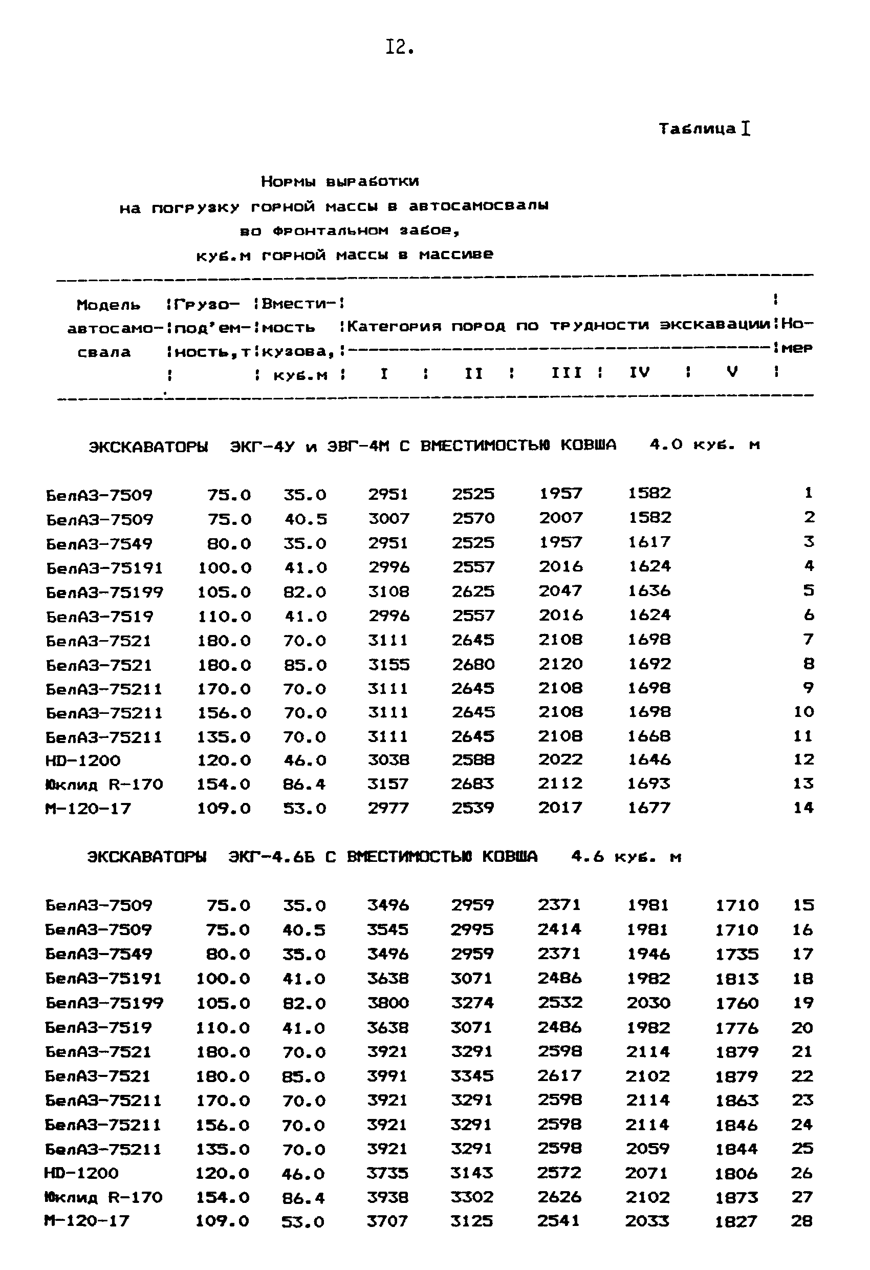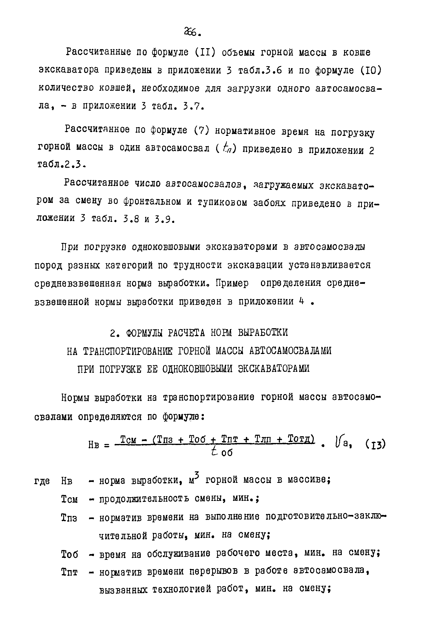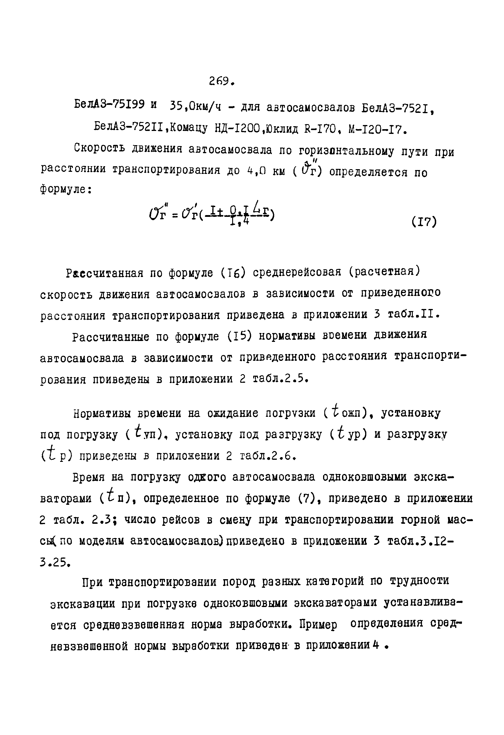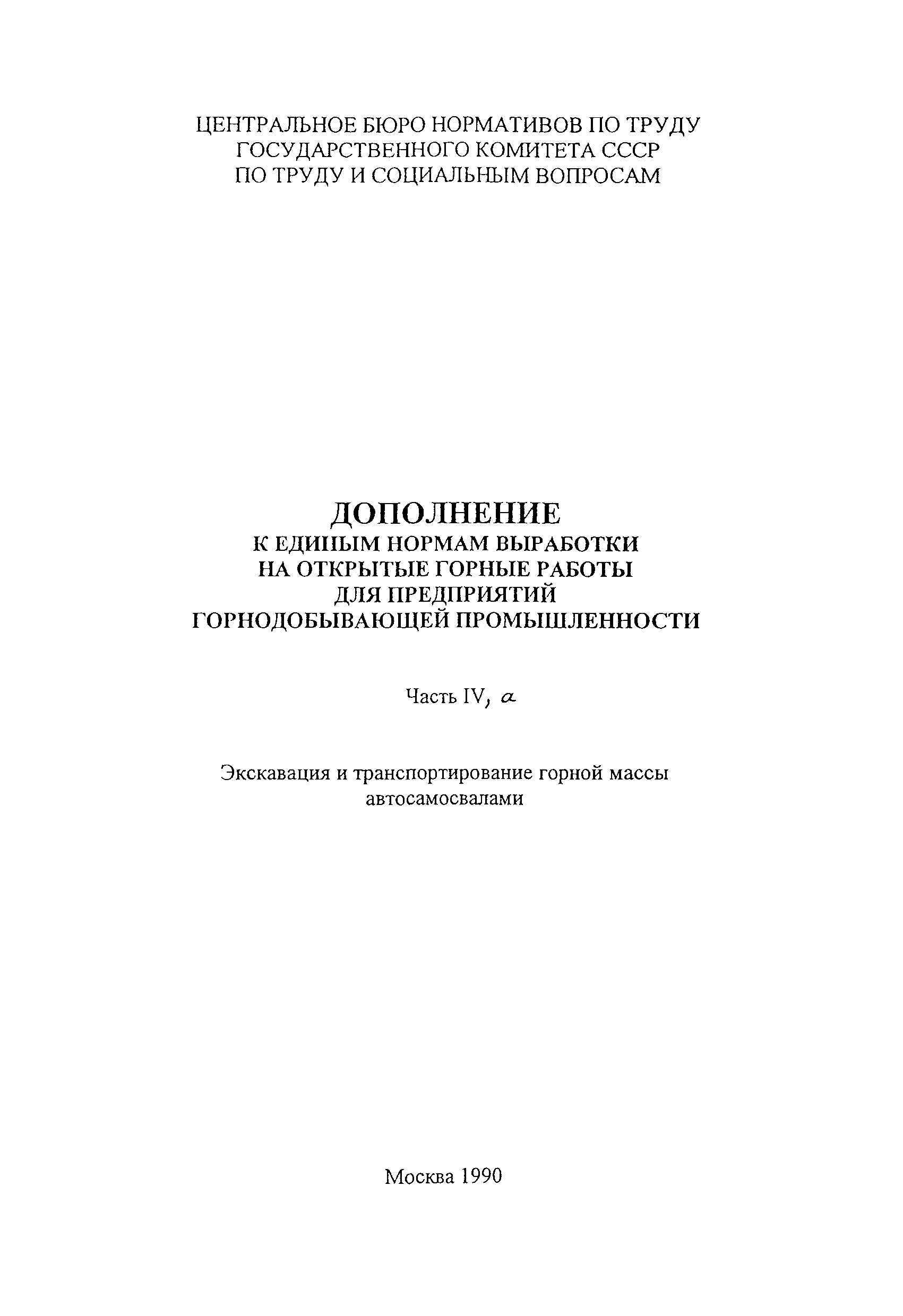 | Оглавление: | Общая часть Нормативная часть 1. Погрузка горной массы в автосамосвалы 1.1 Организация труда 1.2 Содержание работы 1.3 Численный и профессиональный состав экипажа экскаватора 1.4 Факторы, учтенные нормами выработки на погрузку горной массы 2. Транспортирование горной массы автосамосвалами 2.1 Организация труда 2.2 Содержание работы 2.3 Численный и профессиональный состав экипажа экскаватора 2.4 Факторы, учтенные нормами выработки на погрузку горной массы 3. Поправочные коэффициенты к нормам выработки на погрузку и транспортирование горной массы Приложение 1. Методика расчета норм выработки Приложение 2. Нормативы времени на погрузку и транспортирование горной массы |