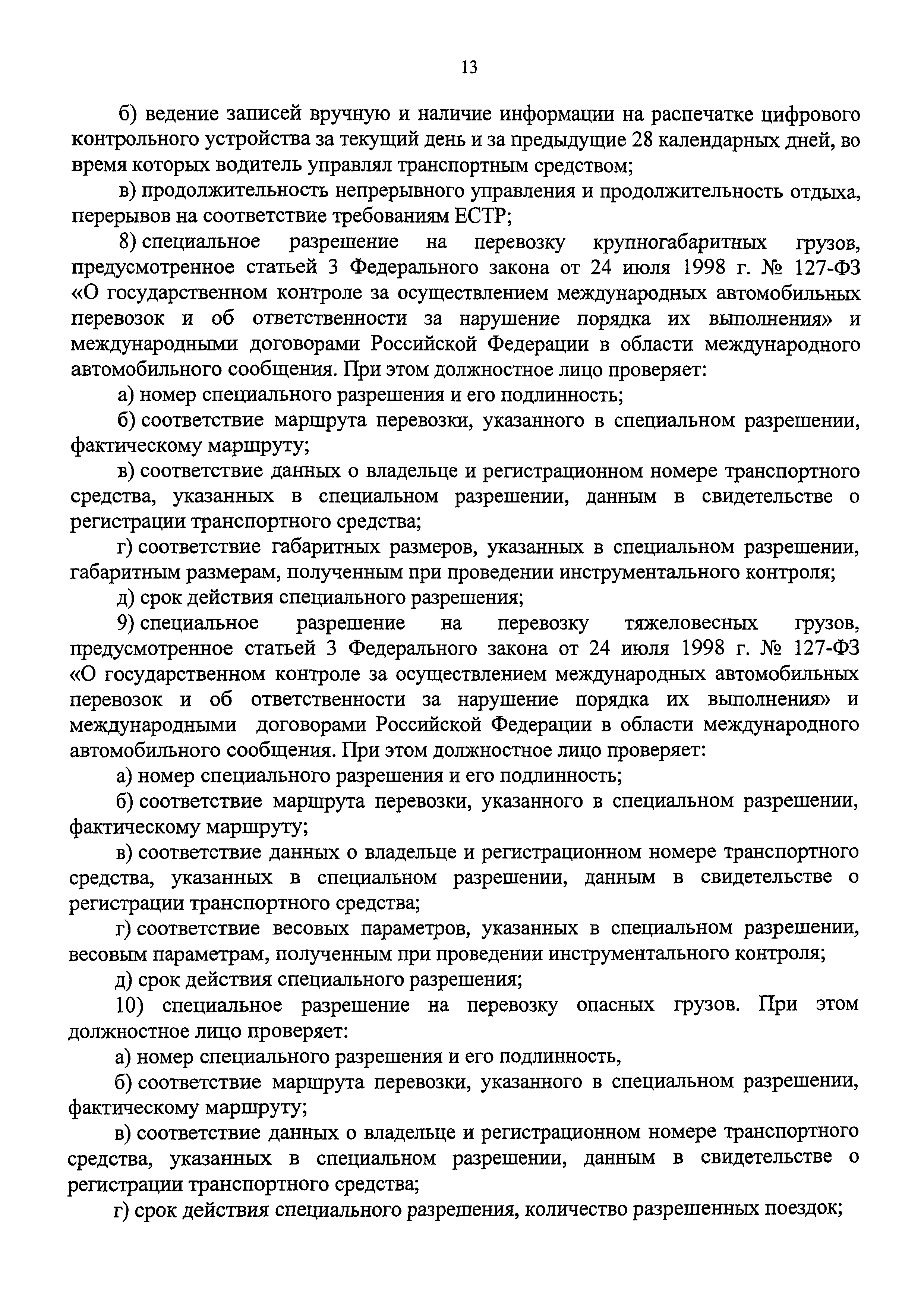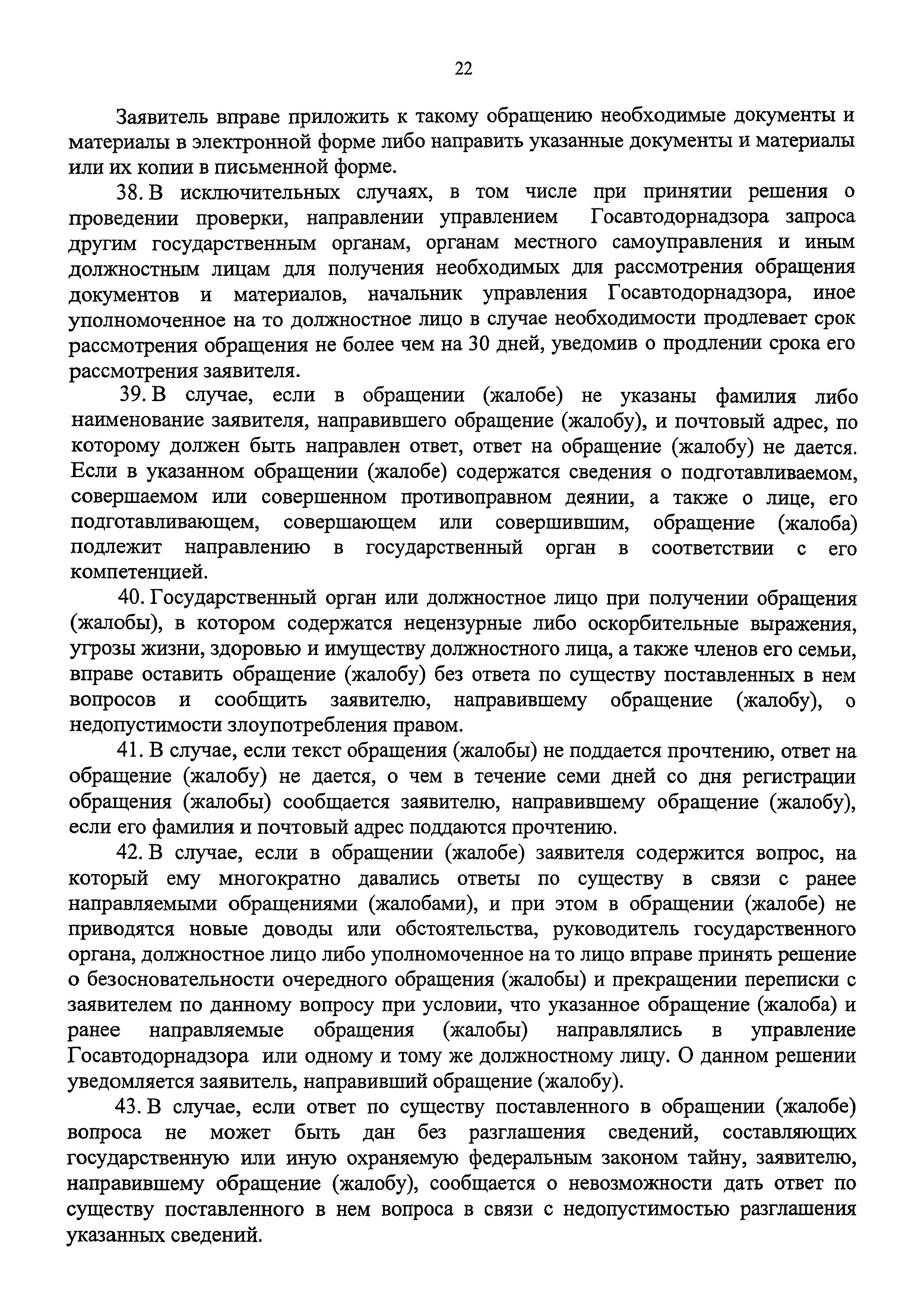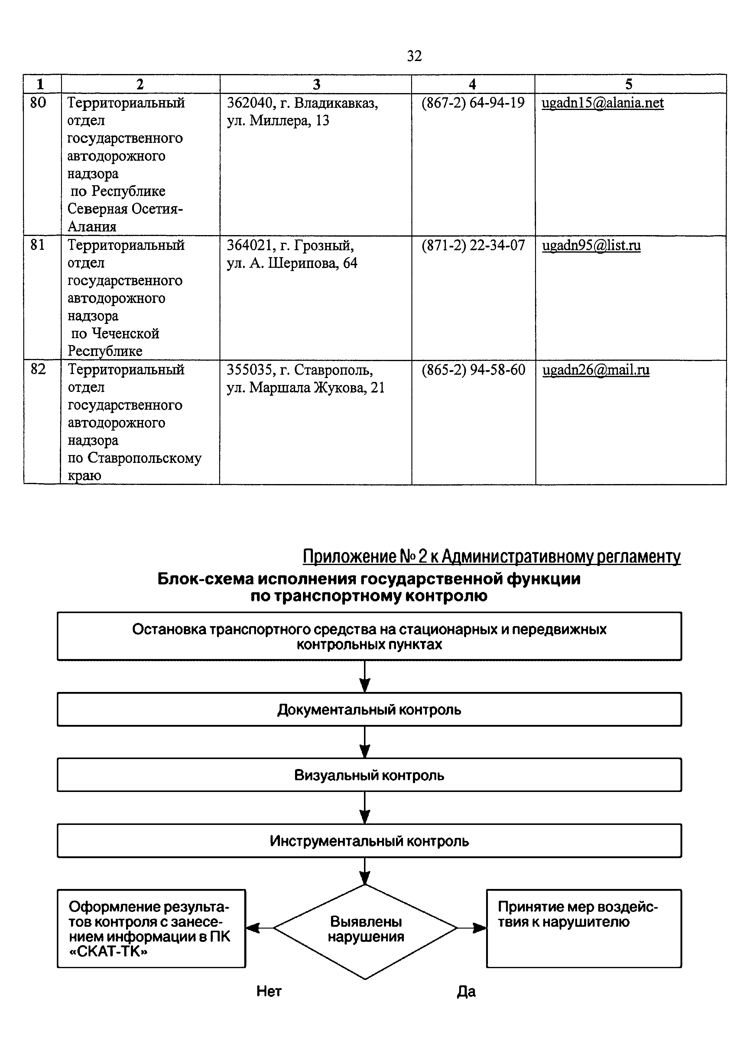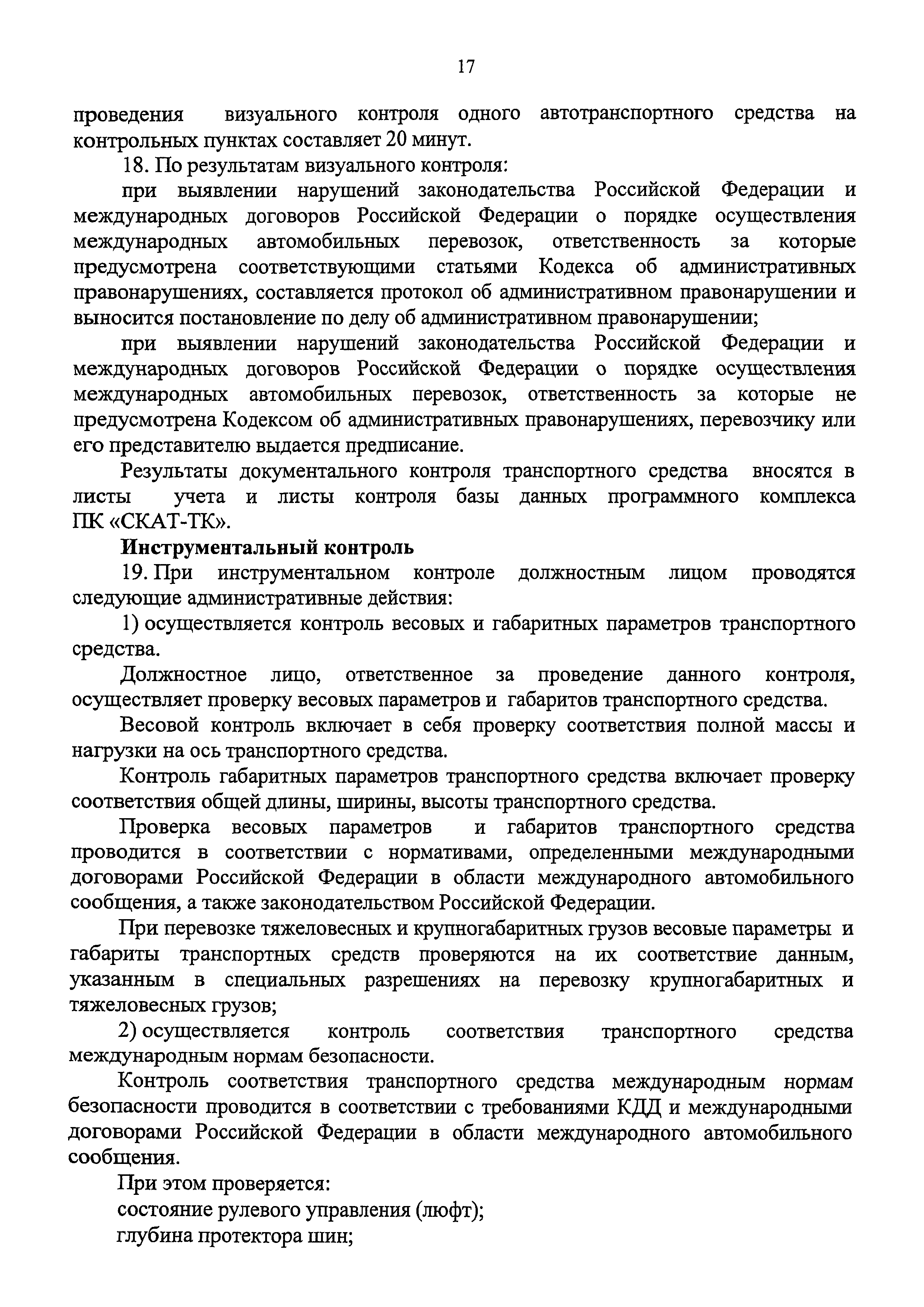 | Оглавление: | I. Общие положения II. Требования к порядку исполнения государственной функции III. Состав, последовательность и сроки выполнения административных процедур (действий), требования к порядку их выполнения, в том числе особенности выполнения административных процедур (действий) в электронной форме IV. Порядок и формы контроля за исполнением государственной функции V. Досудебный (внесудебный) порядок обжалования решений и действий (бездействия) Ространснадзора и (или) управления Госавтодорнадзора, исполняющих государственную функцию, а также их должностных лиц Приложение № 1. Местонахождение, справочные телефоны, почтовые адреса, адреса электронной почты территориальных управлений Госавтодорнадзора |