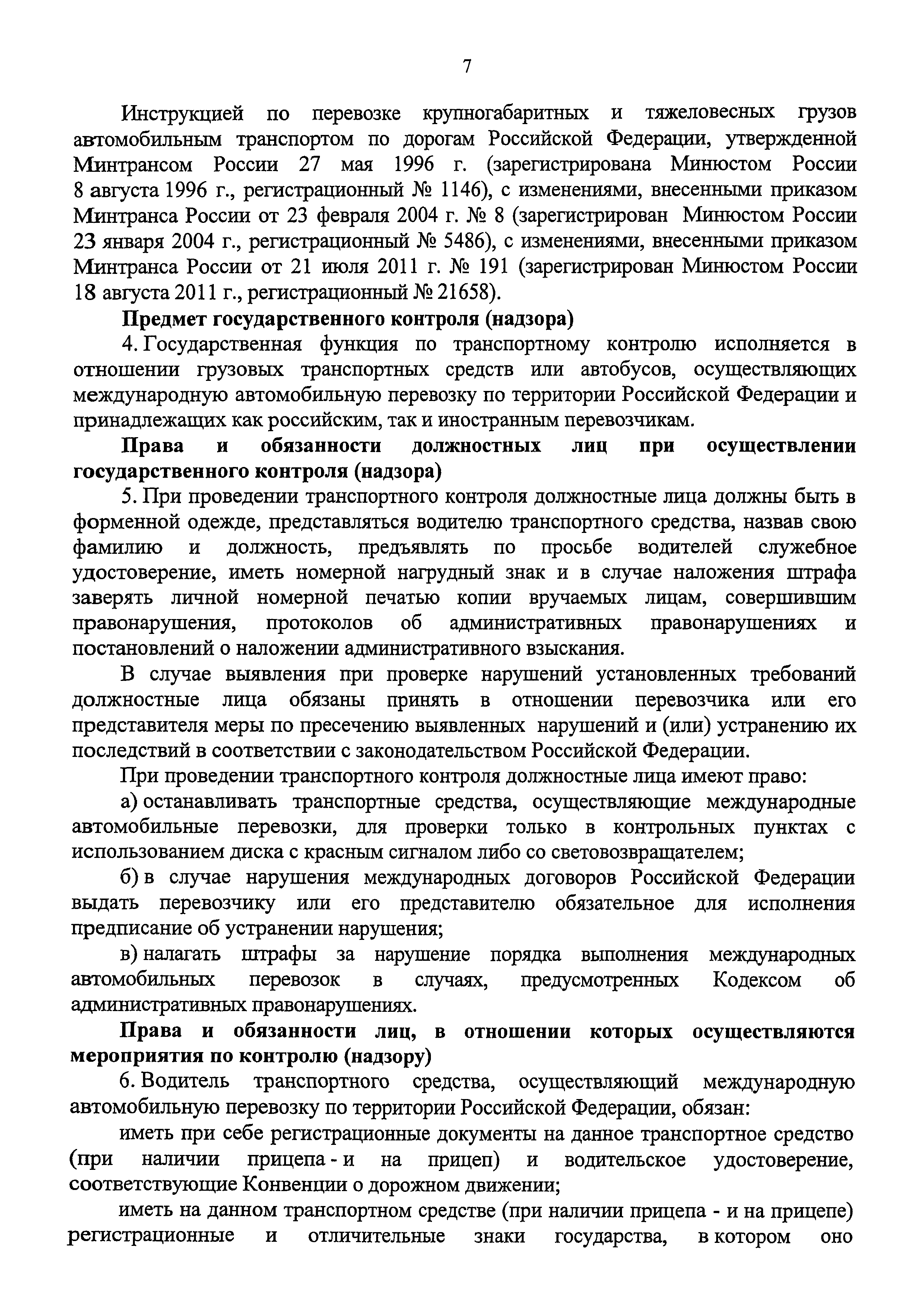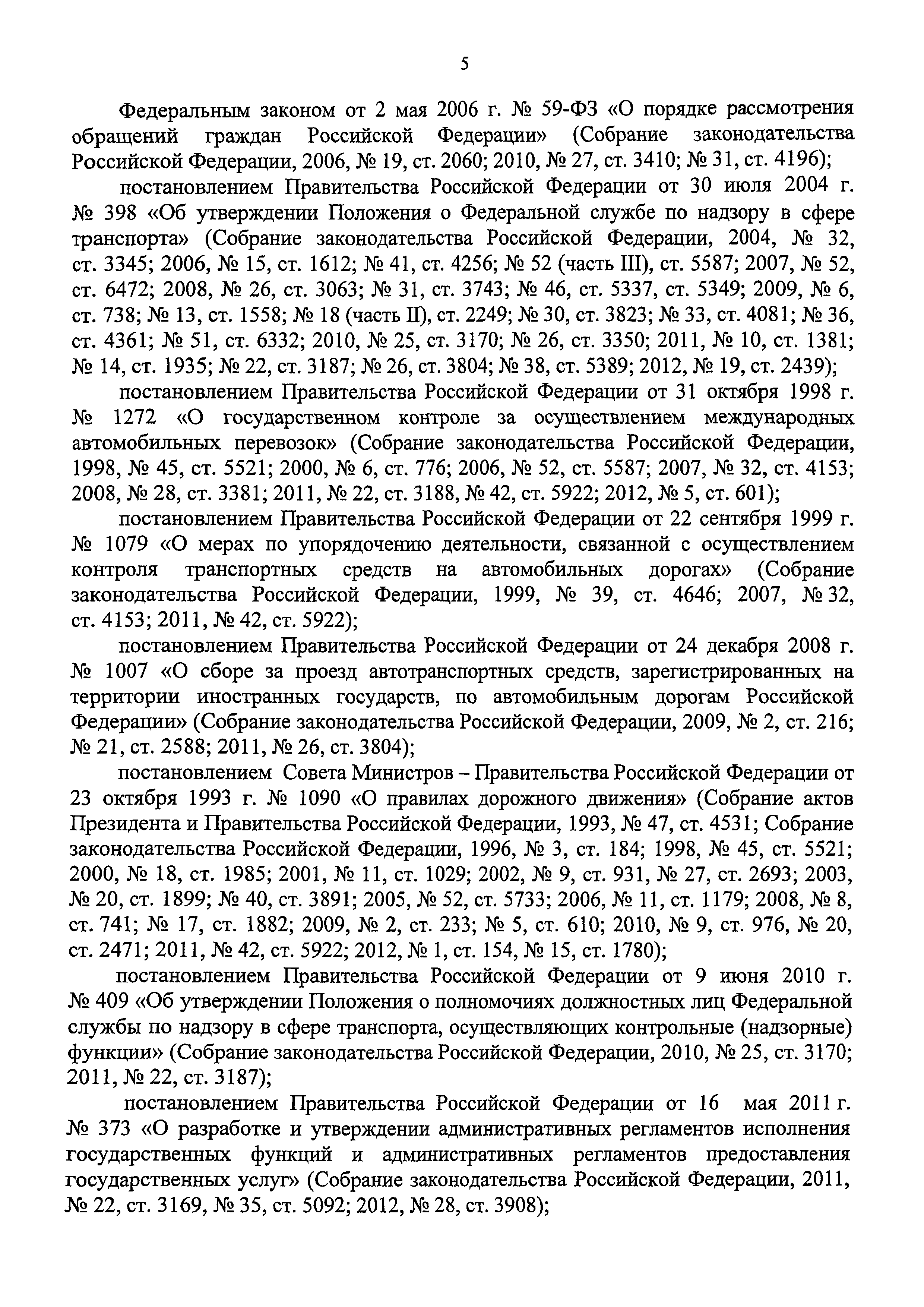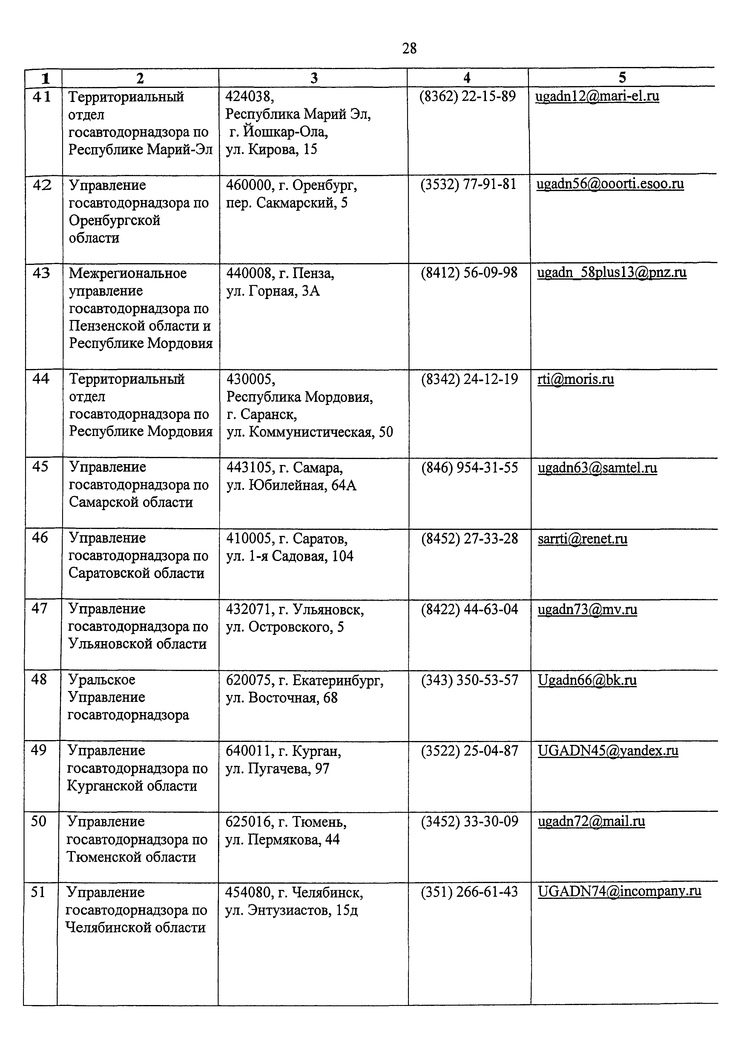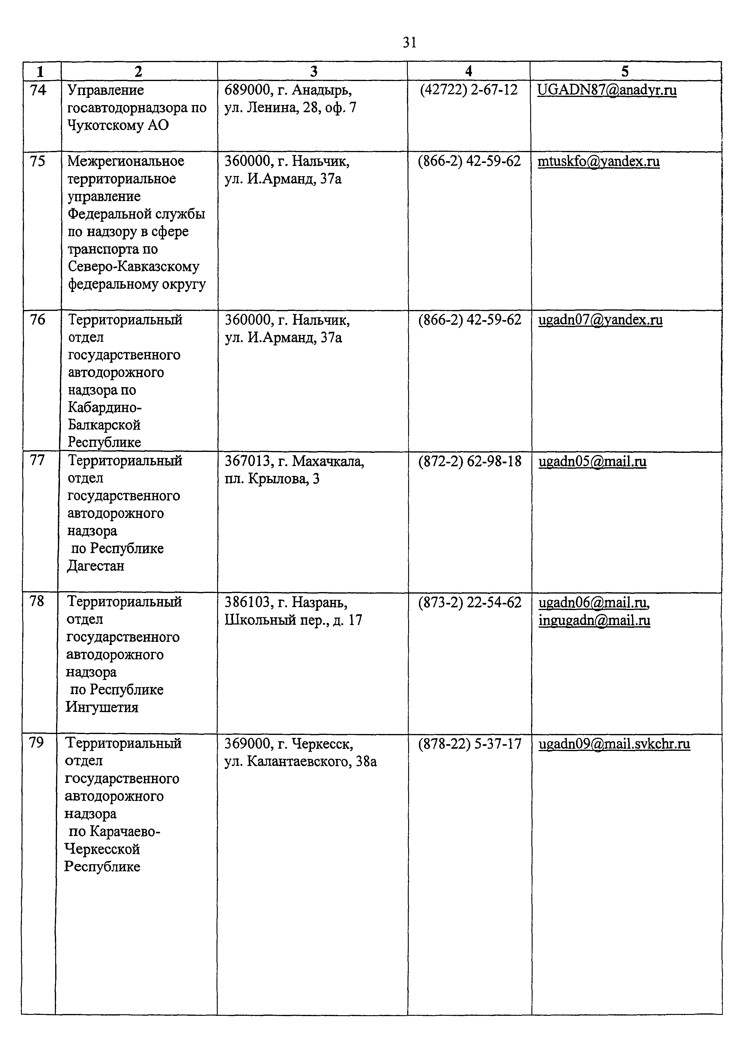 | Оглавление: | I. Общие положения II. Требования к порядку исполнения государственной функции III. Состав, последовательность и сроки выполнения административных процедур (действий), требования к порядку их выполнения, в том числе особенности выполнения административных процедур (действий) в электронной форме IV. Порядок и формы контроля за исполнением государственной функции V. Досудебный (внесудебный) порядок обжалования решений и действий (бездействия) Ространснадзора и (или) управления Госавтодорнадзора, исполняющих государственную функцию, а также их должностных лиц Приложение № 1. Местонахождение, справочные телефоны, почтовые адреса, адреса электронной почты территориальных управлений Госавтодорнадзора |