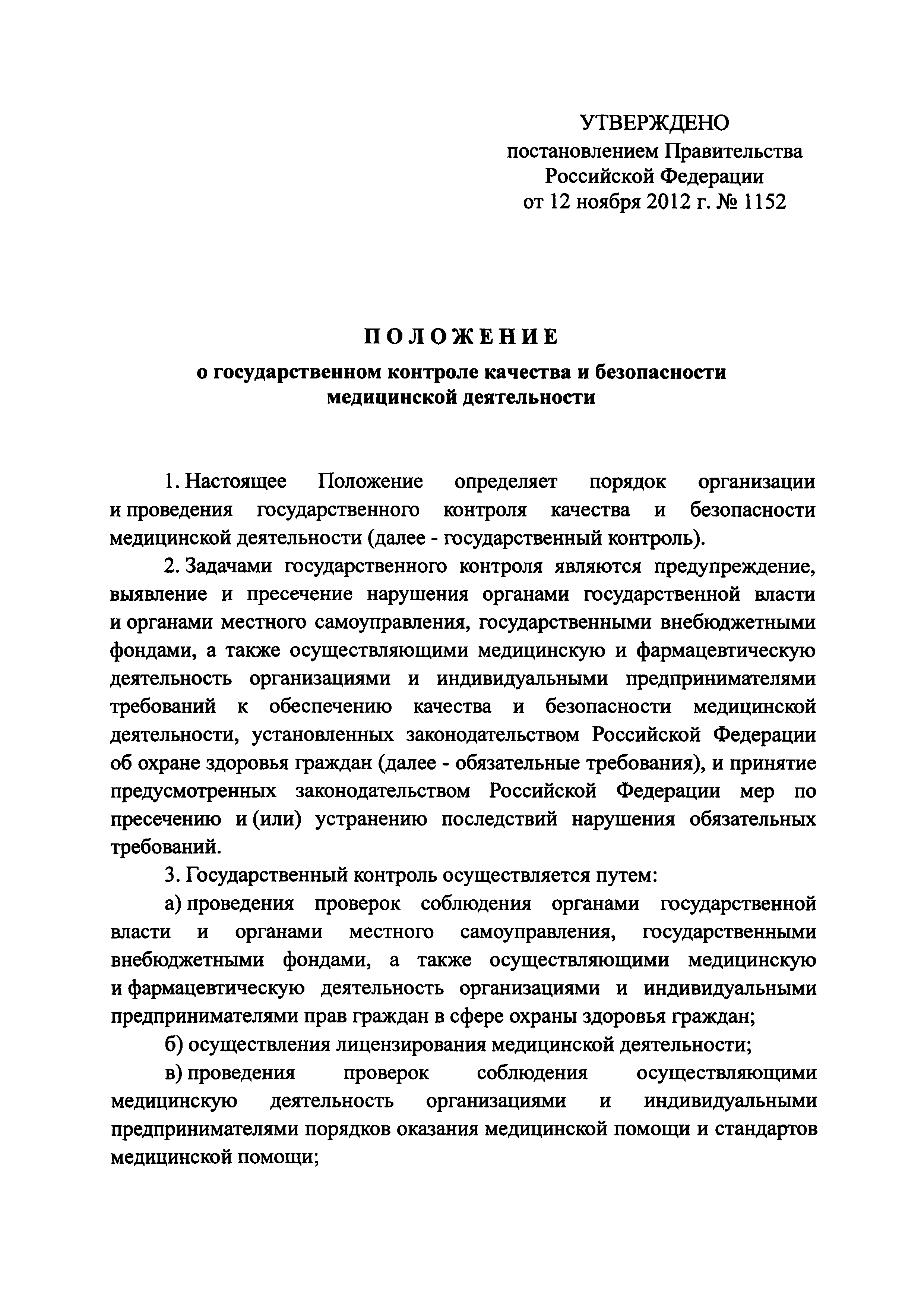 | Область применения: | Положение определяет порядок организации и проведения государственного контроля качества и безопасности медицинской деятельности. |