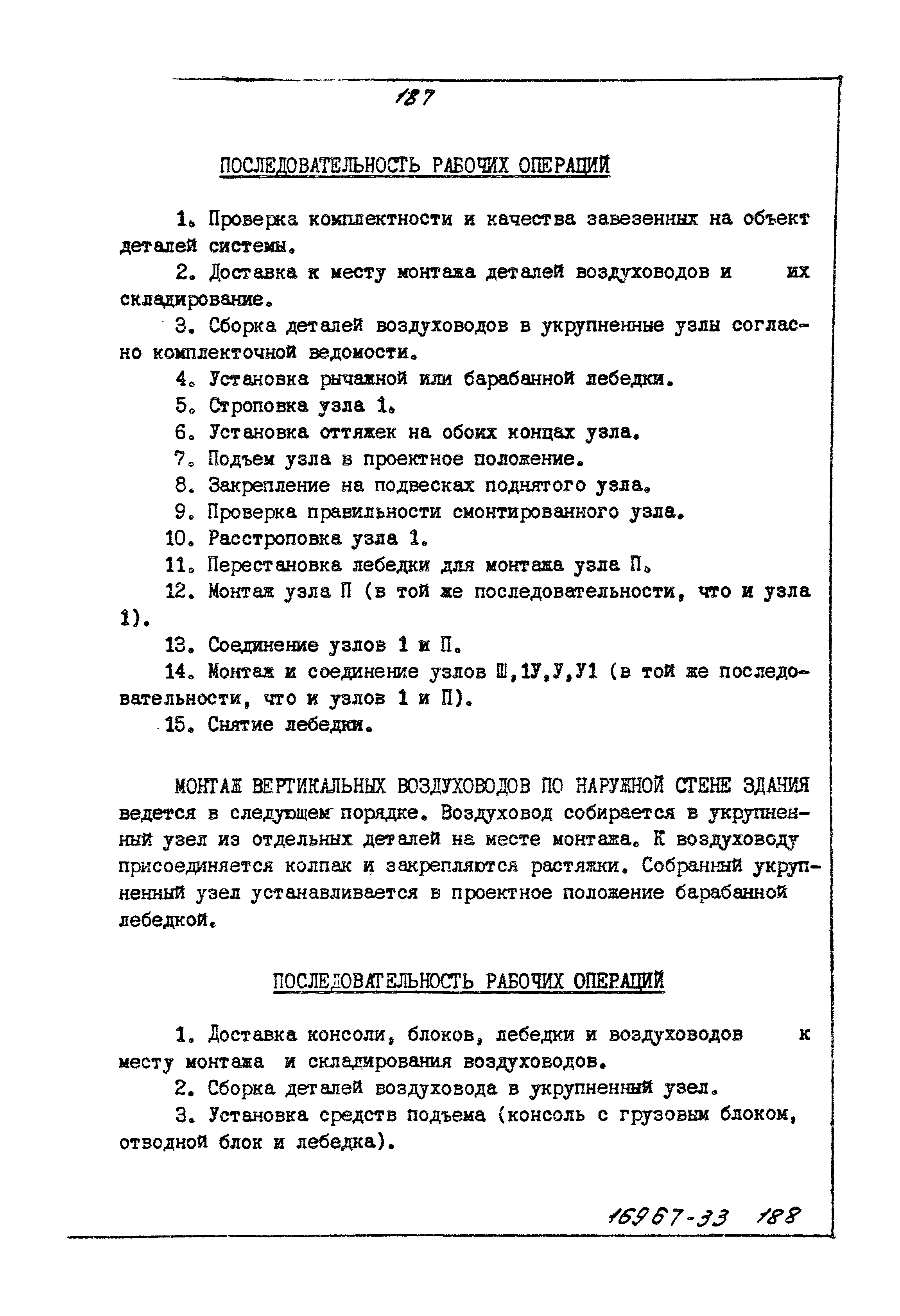 | Оглавление: | Общая часть Организация и технология монтажного процесса Монтаж горизонтальных воздуховодов Последовательность рабочих операций Монтаж вертикальных воздуховодов по наружной стене здания Последовательность рабочих операций Монтаж вертикальных воздуховодов по кровле здания Монтаж вертикальных воздуховодов по кровле здания с помощью мачты Последовательность рабочих операций Монтаж в здании вертикального воздуховода методом "наращивания снизу" Последовательность рабочих операций Техника безопасности при монтаже воздуховодов |