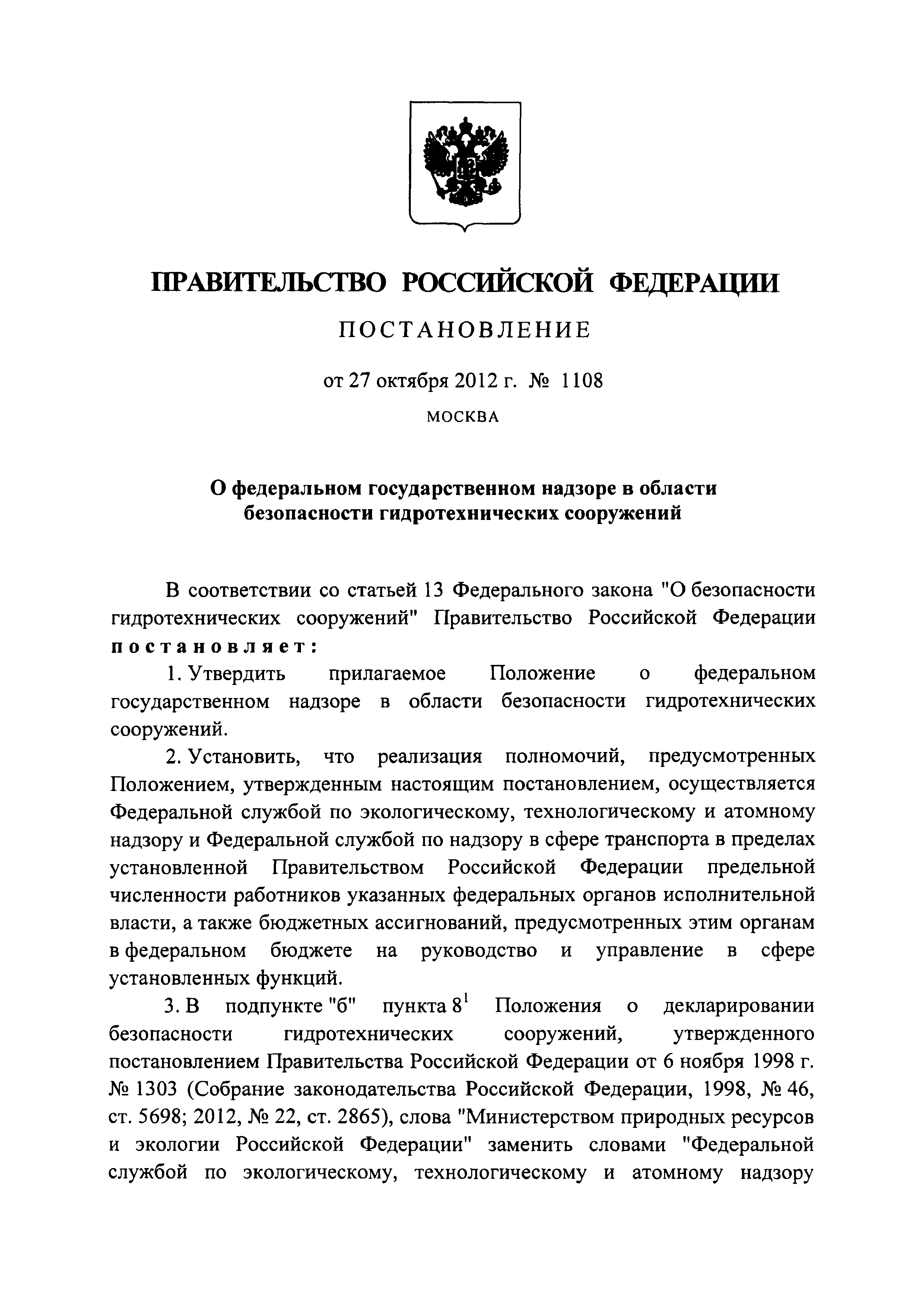 | Название рус.: | Положение о федеральном государственном надзоре в области безопасности гидротехнических сооружений |