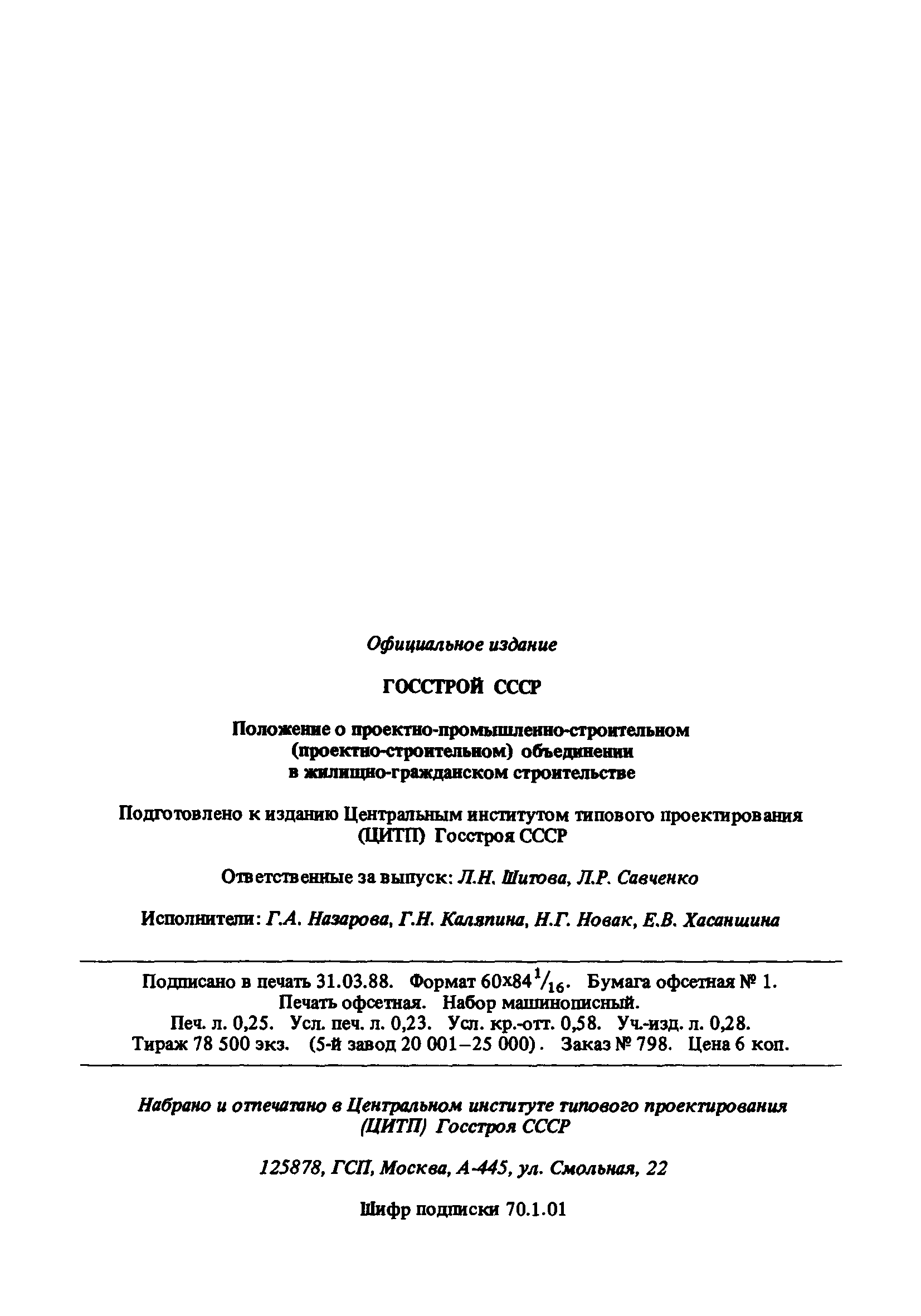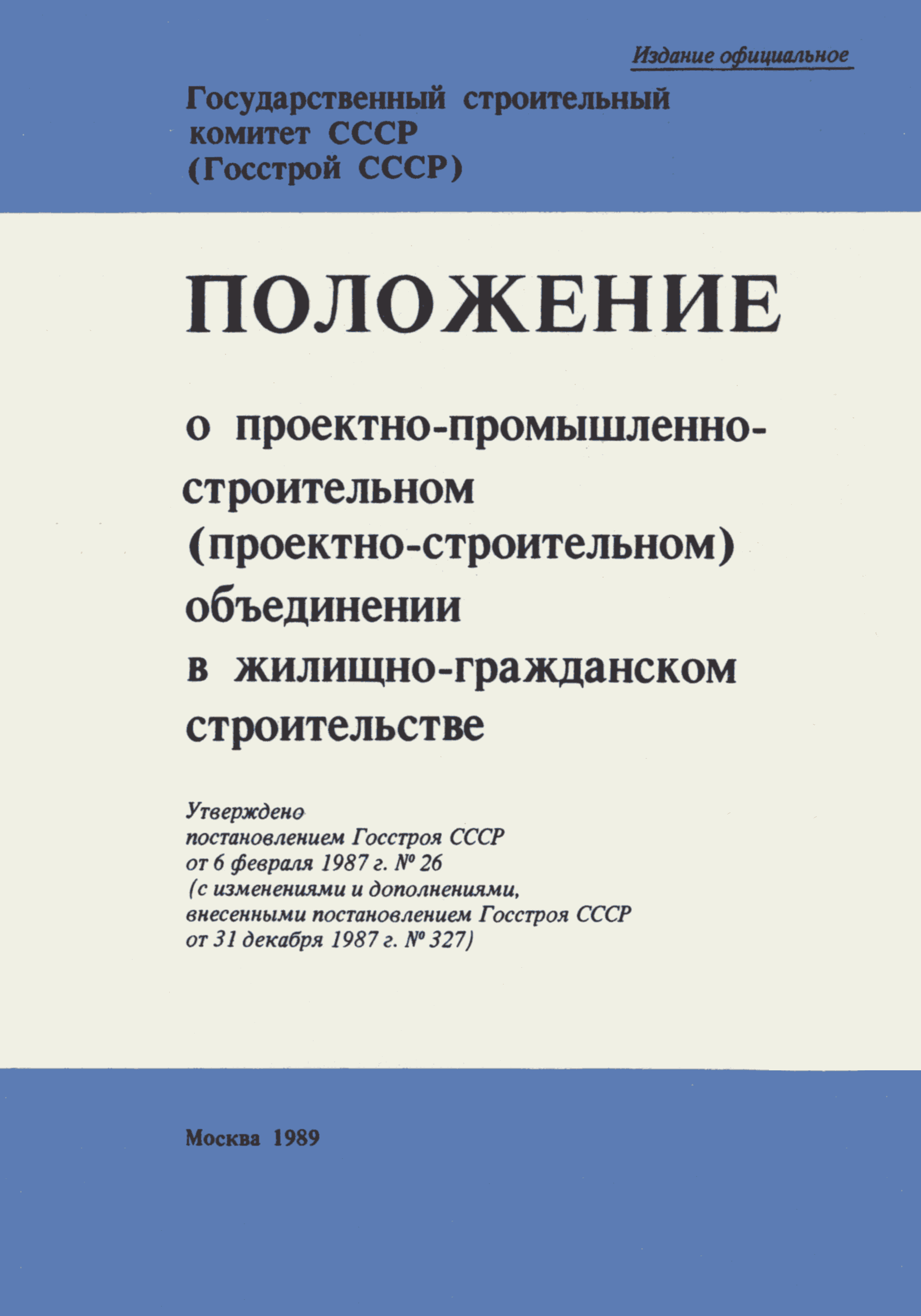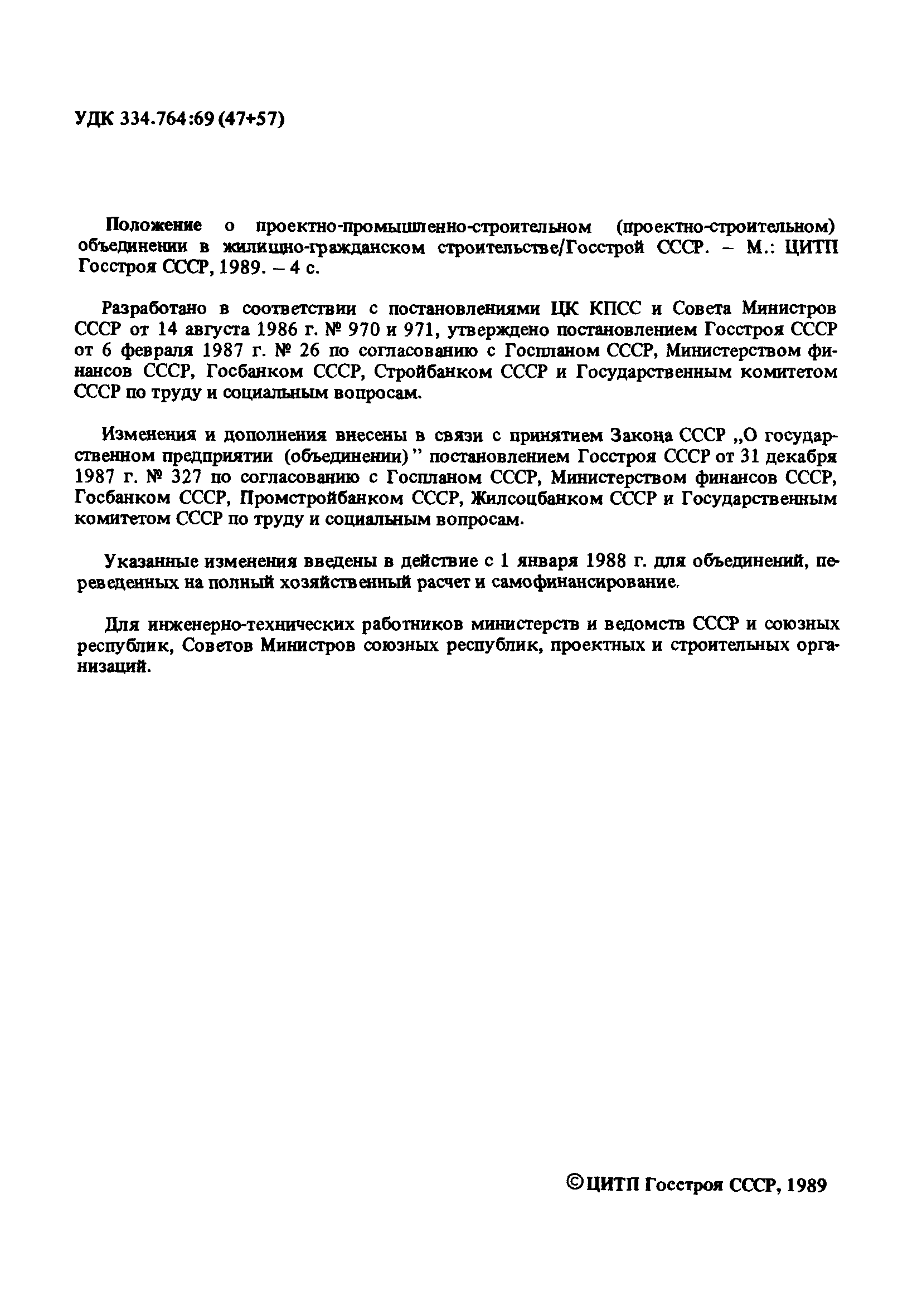 | Название рус.: | Положение о проектно-промышленно-строительном (проектно-строительном) объединении в жилищно-гражданском строительстве |